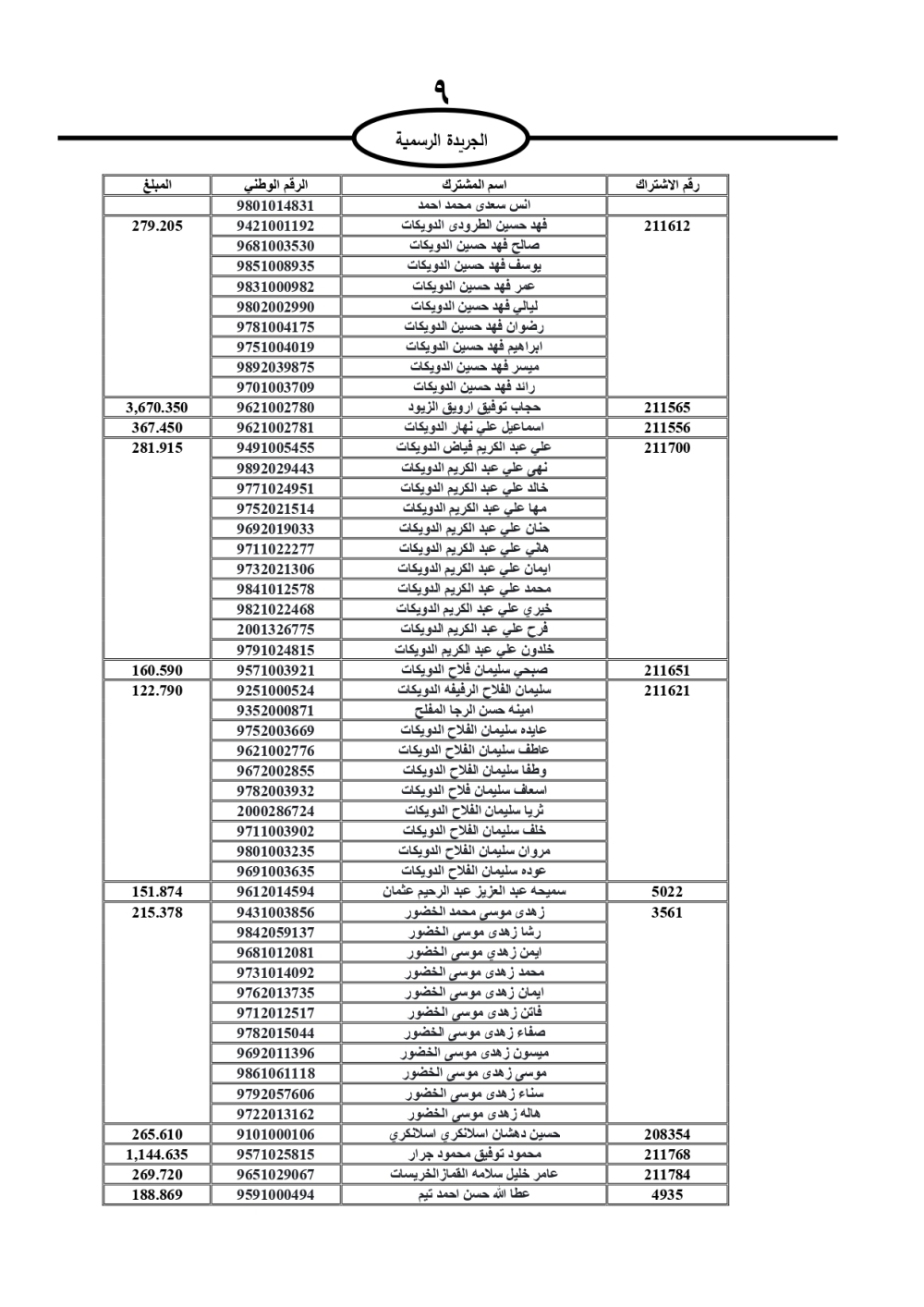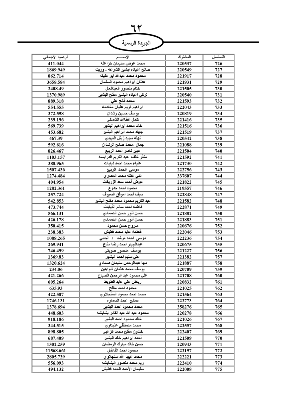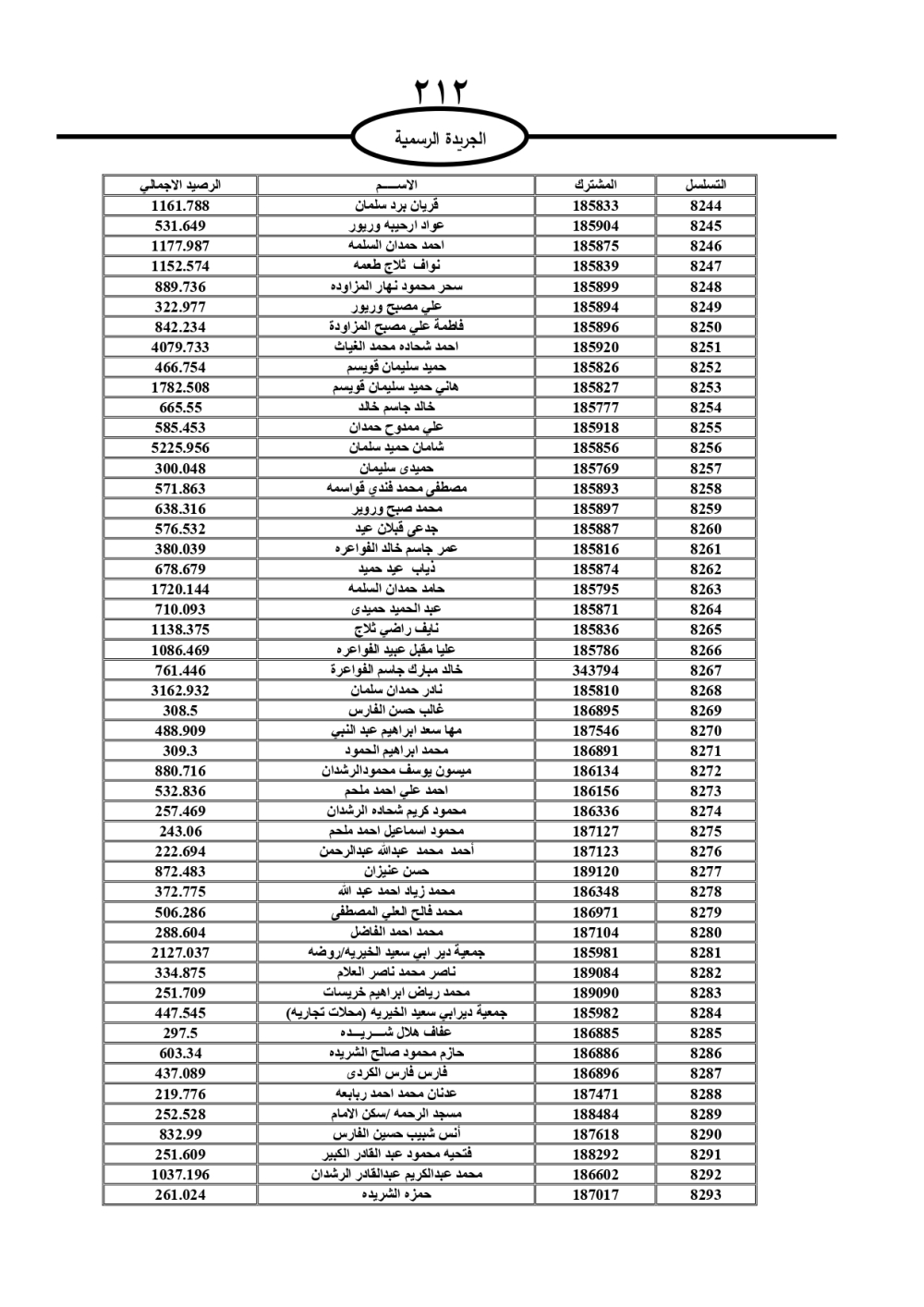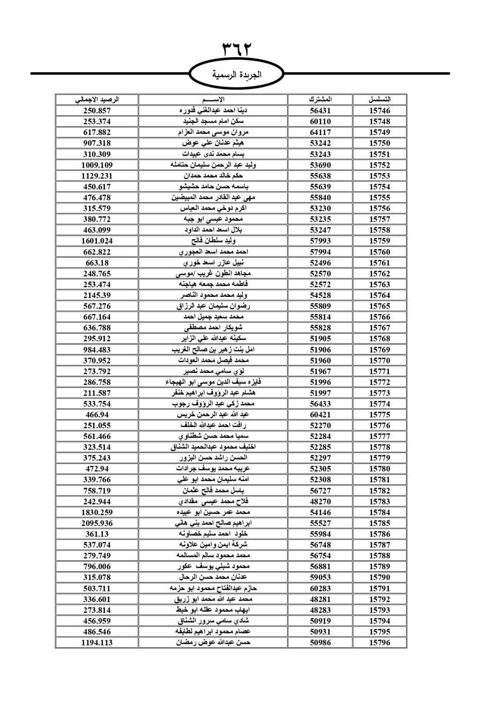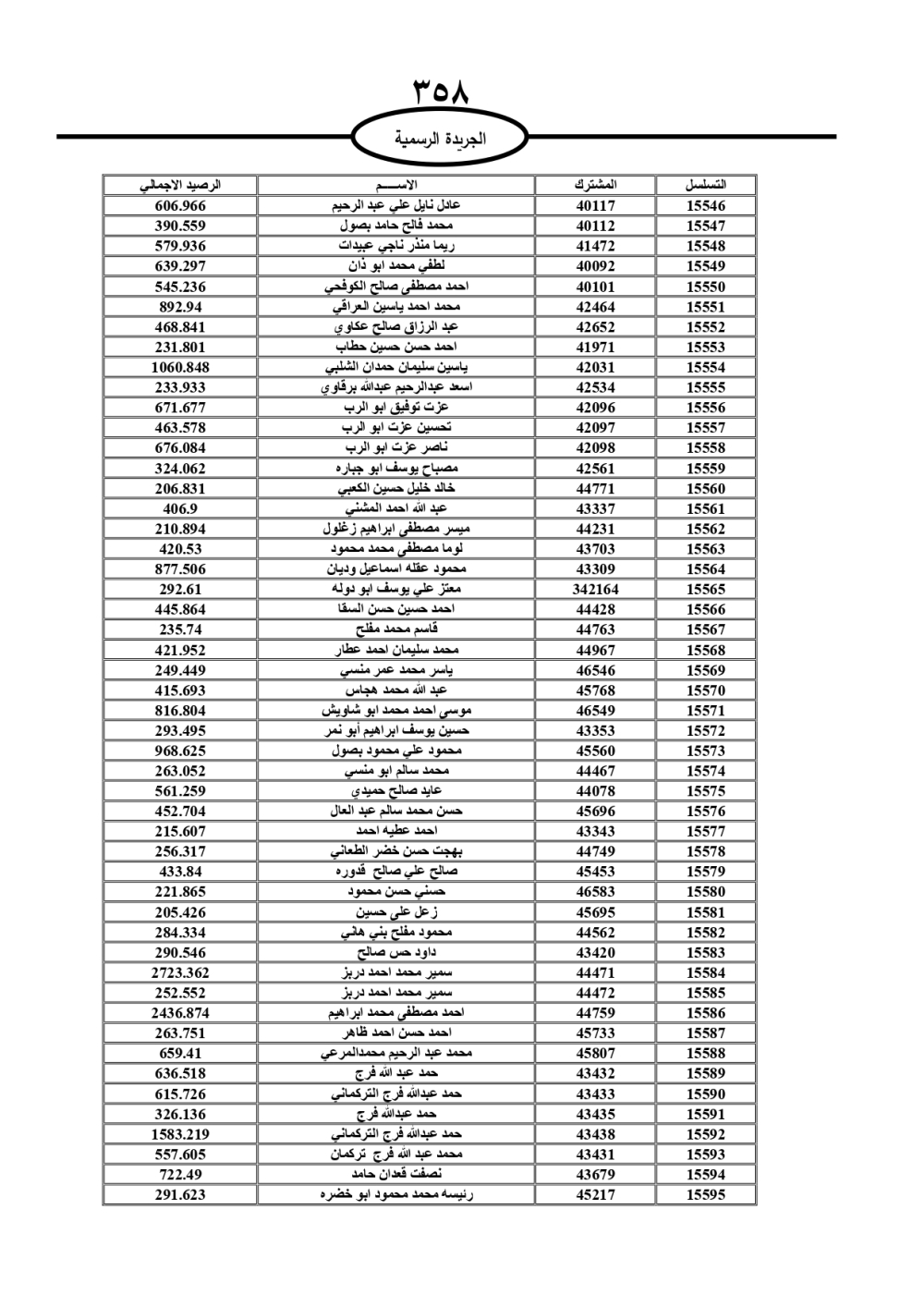 دعت سلطة المياه وبلدية الزرقاء، عشرات آلاف الأردنيين الواردة أسماؤهم بالكشوفات المرفقة، إلى ضرورة مراجعتها لتسوية أوضاعهم المالية كونه ترتب عليهم ذمم مالية، وذلك لتجنب الحجز على الأموال المنقولة وغير المنقولة بعد انقضاء 60 يوما من تاريخ النشر، علما أنه تم نشر هذه الأسماء في الجريدة الرسمية بتاريخ 16/2/2025.
