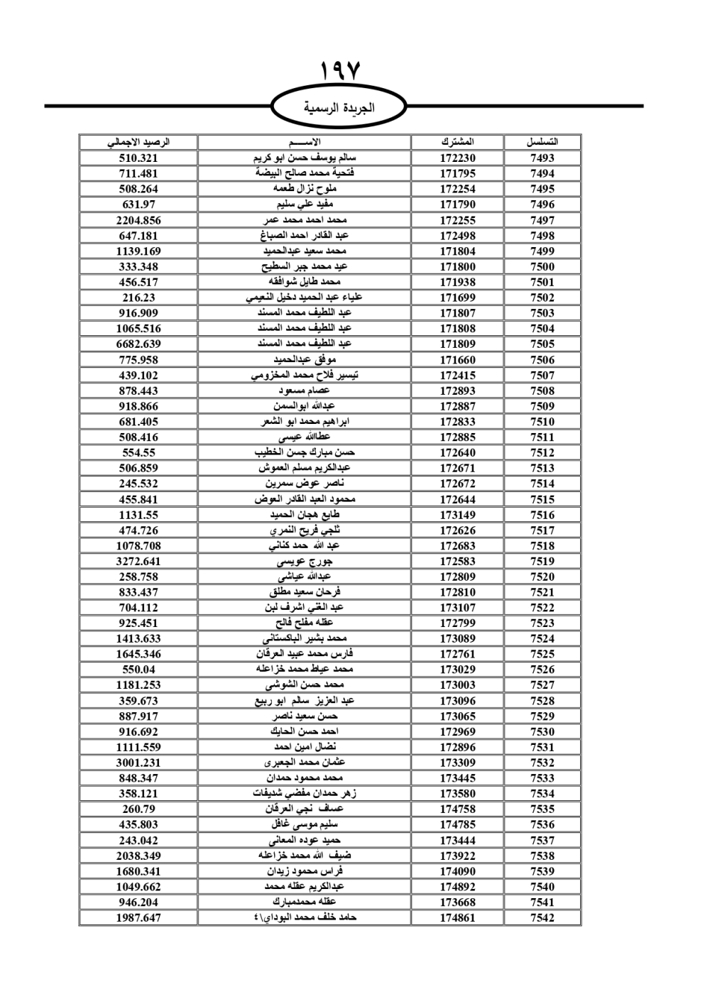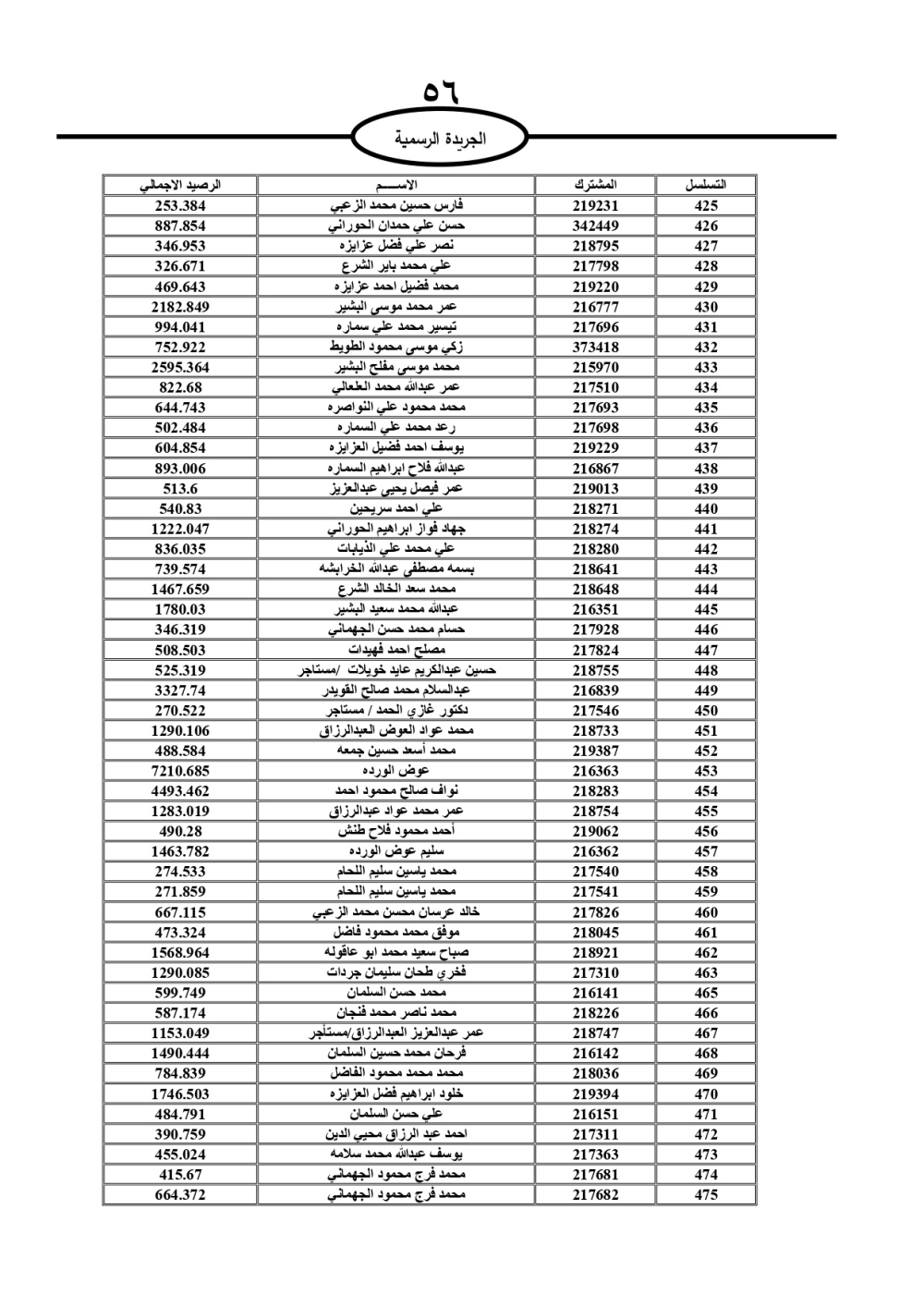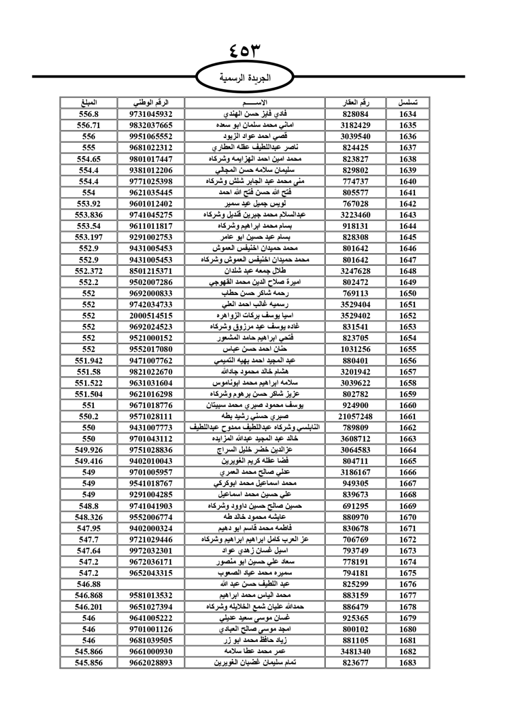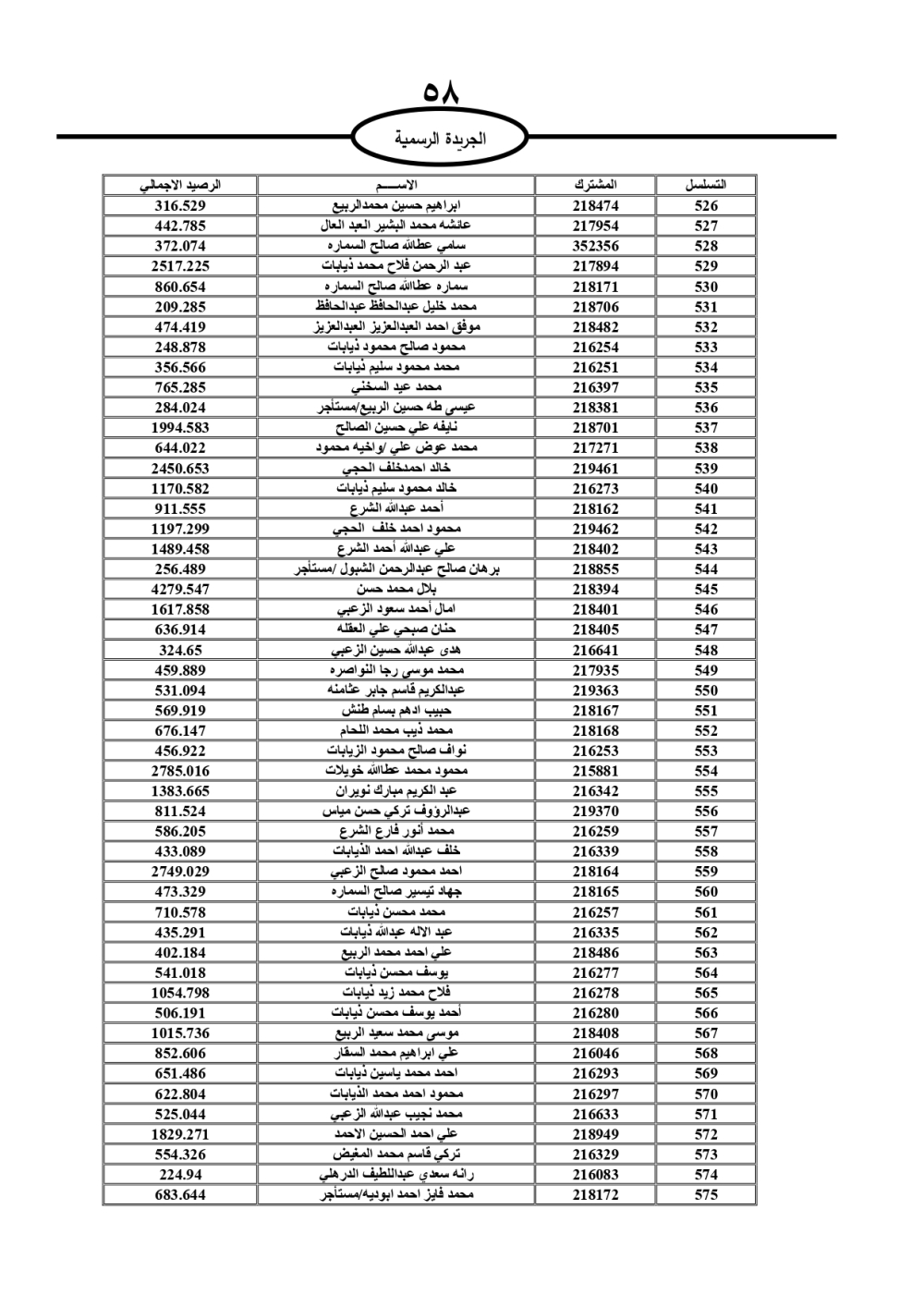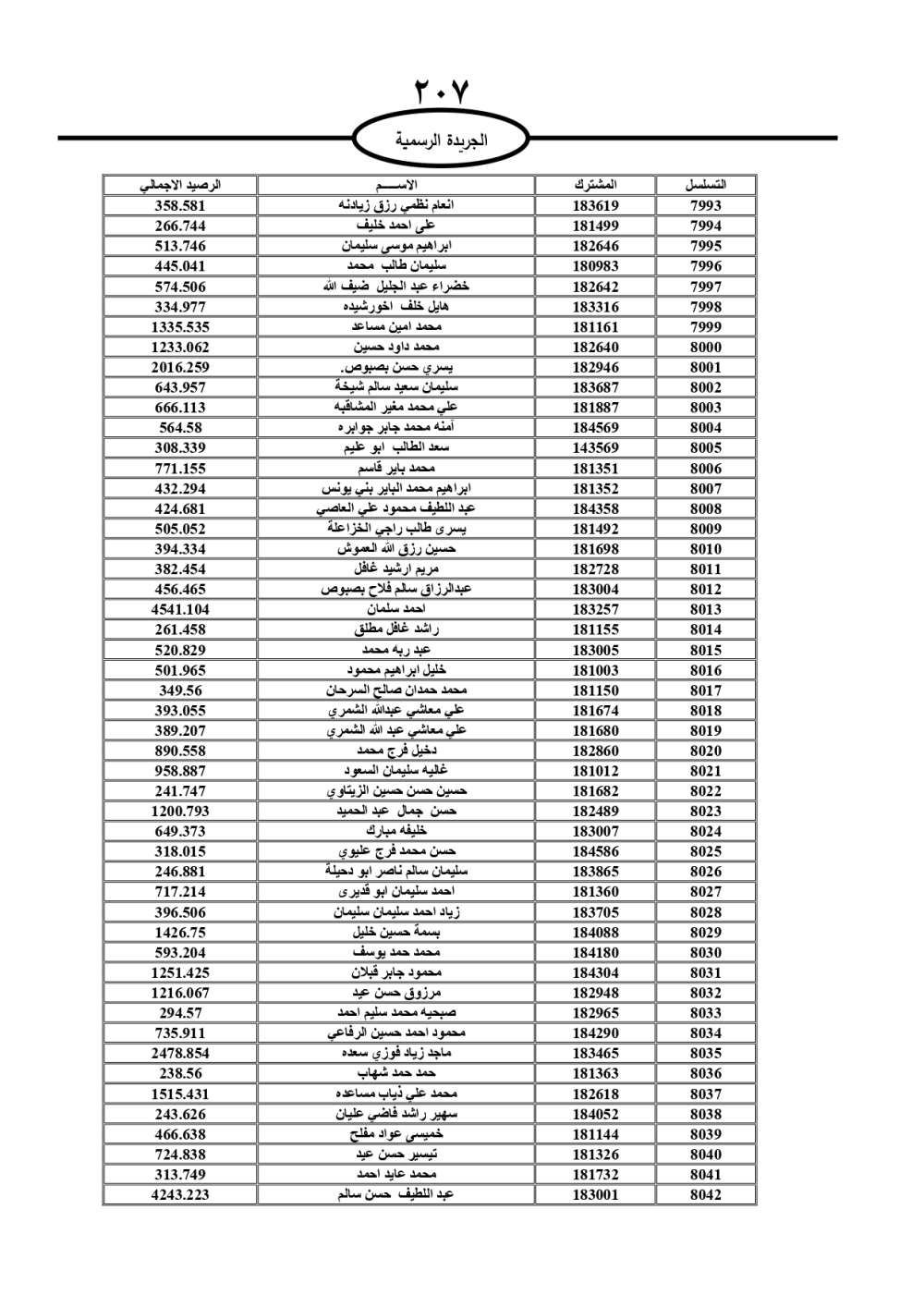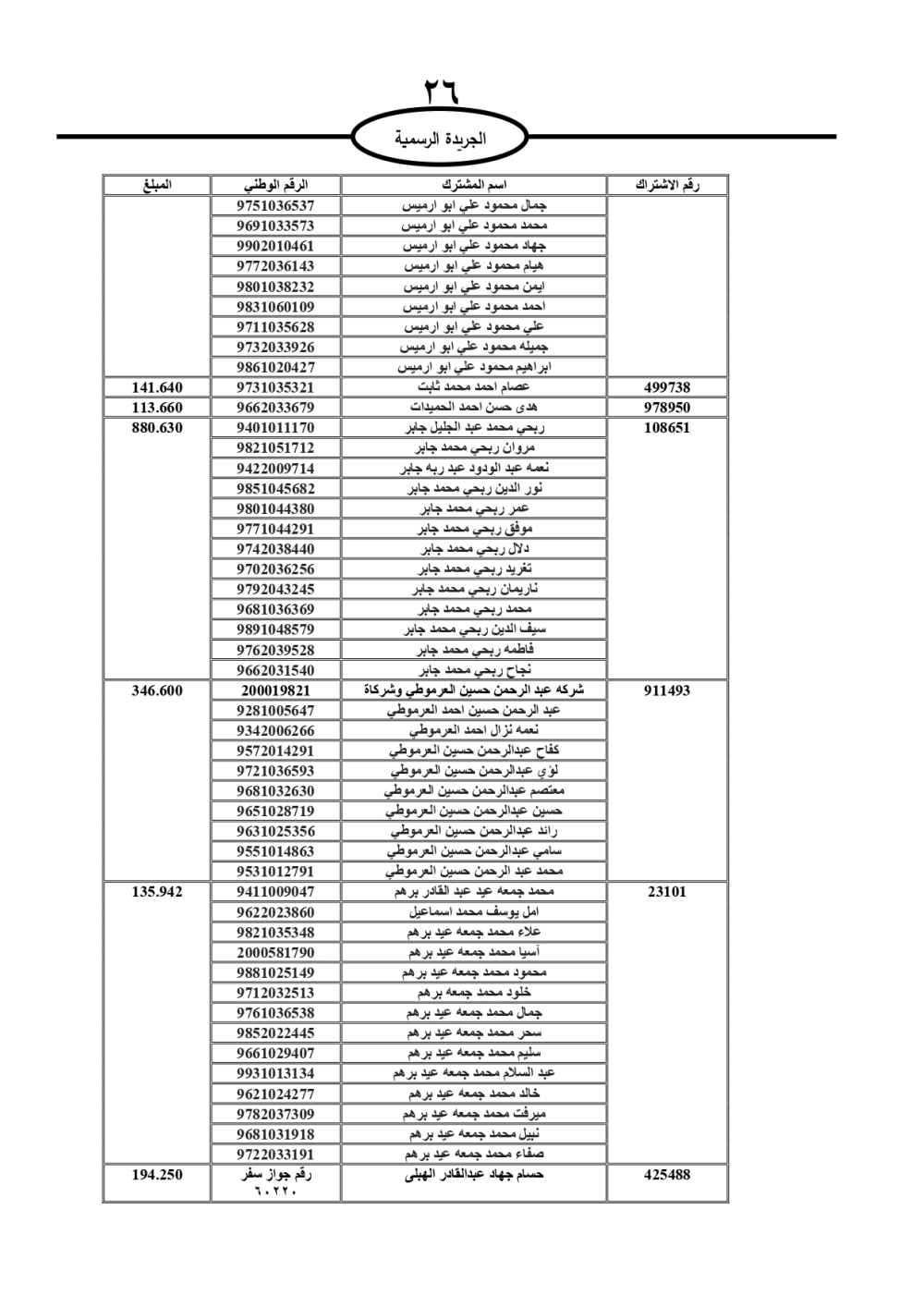 دعت سلطة المياه وبلدية الزرقاء، عشرات آلاف الأردنيين الواردة أسماؤهم بالكشوفات المرفقة، إلى ضرورة مراجعتها لتسوية أوضاعهم المالية كونه ترتب عليهم ذمم مالية، وذلك لتجنب الحجز على الأموال المنقولة وغير المنقولة بعد انقضاء 60 يوما من تاريخ النشر، علما أنه تم نشر هذه الأسماء في الجريدة الرسمية بتاريخ 16/2/2025.