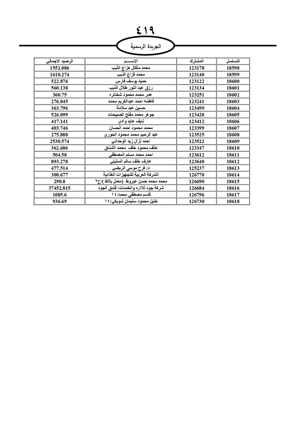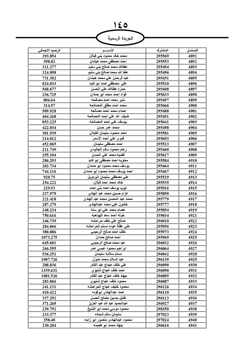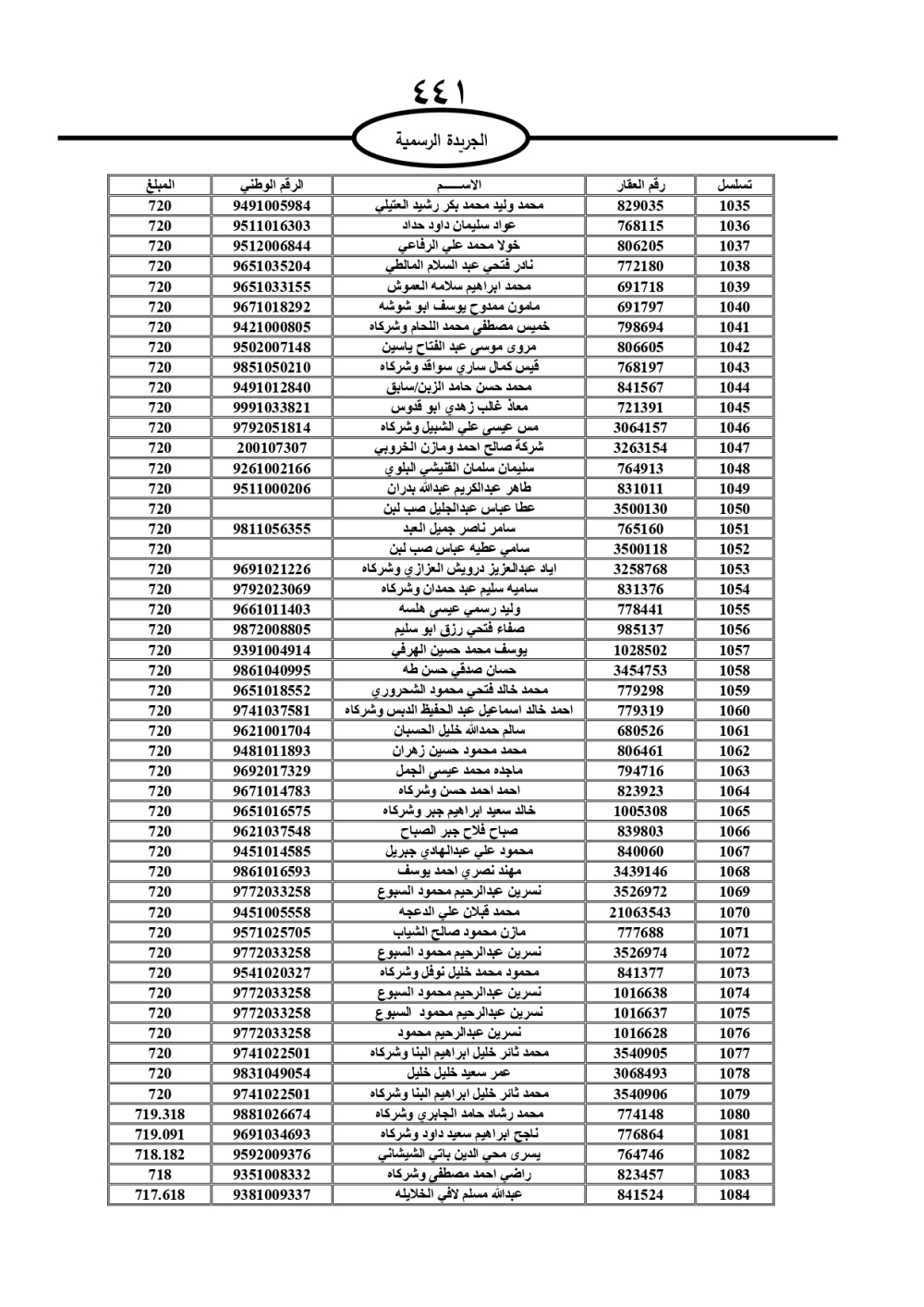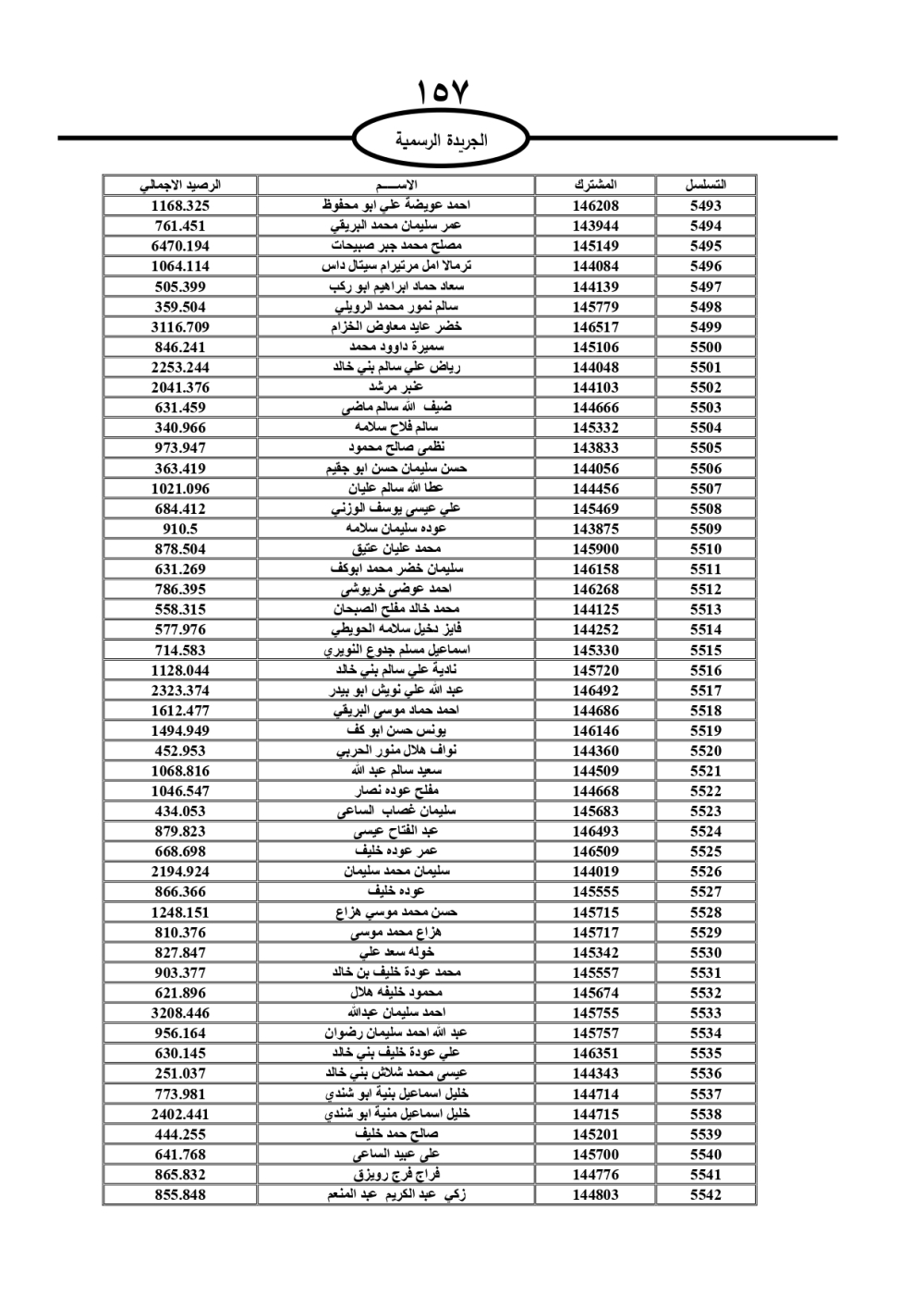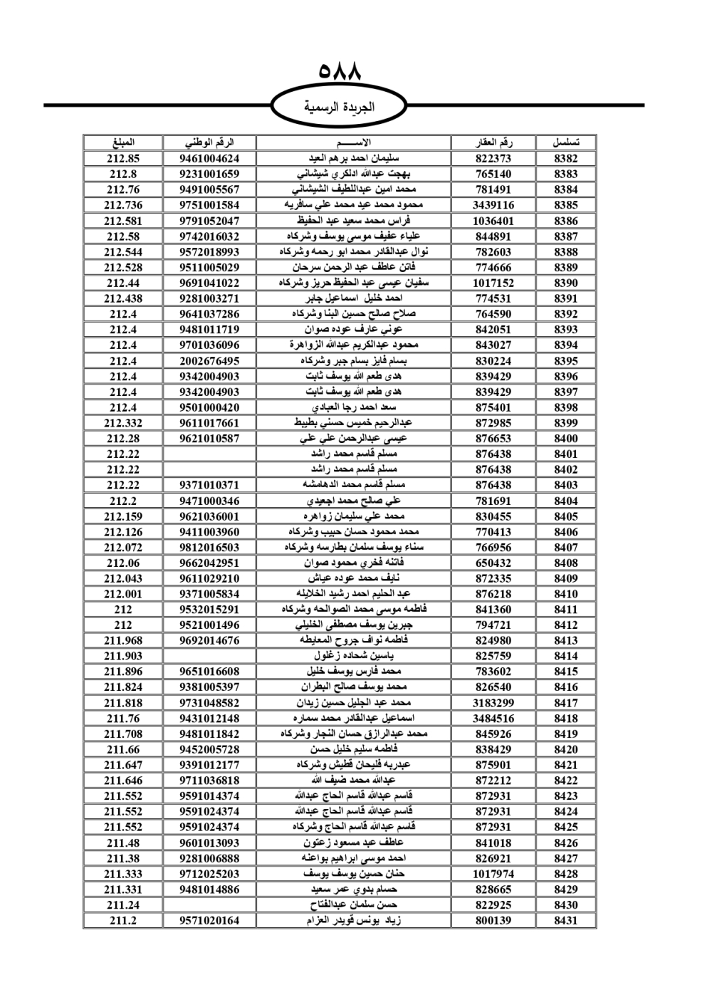 دعت سلطة المياه وبلدية الزرقاء، عشرات آلاف الأردنيين الواردة أسماؤهم بالكشوفات المرفقة، إلى ضرورة مراجعتها لتسوية أوضاعهم المالية كونه ترتب عليهم ذمم مالية، وذلك لتجنب الحجز على الأموال المنقولة وغير المنقولة بعد انقضاء 60 يوما من تاريخ النشر، علما أنه تم نشر هذه الأسماء في الجريدة الرسمية بتاريخ 16/2/2025.