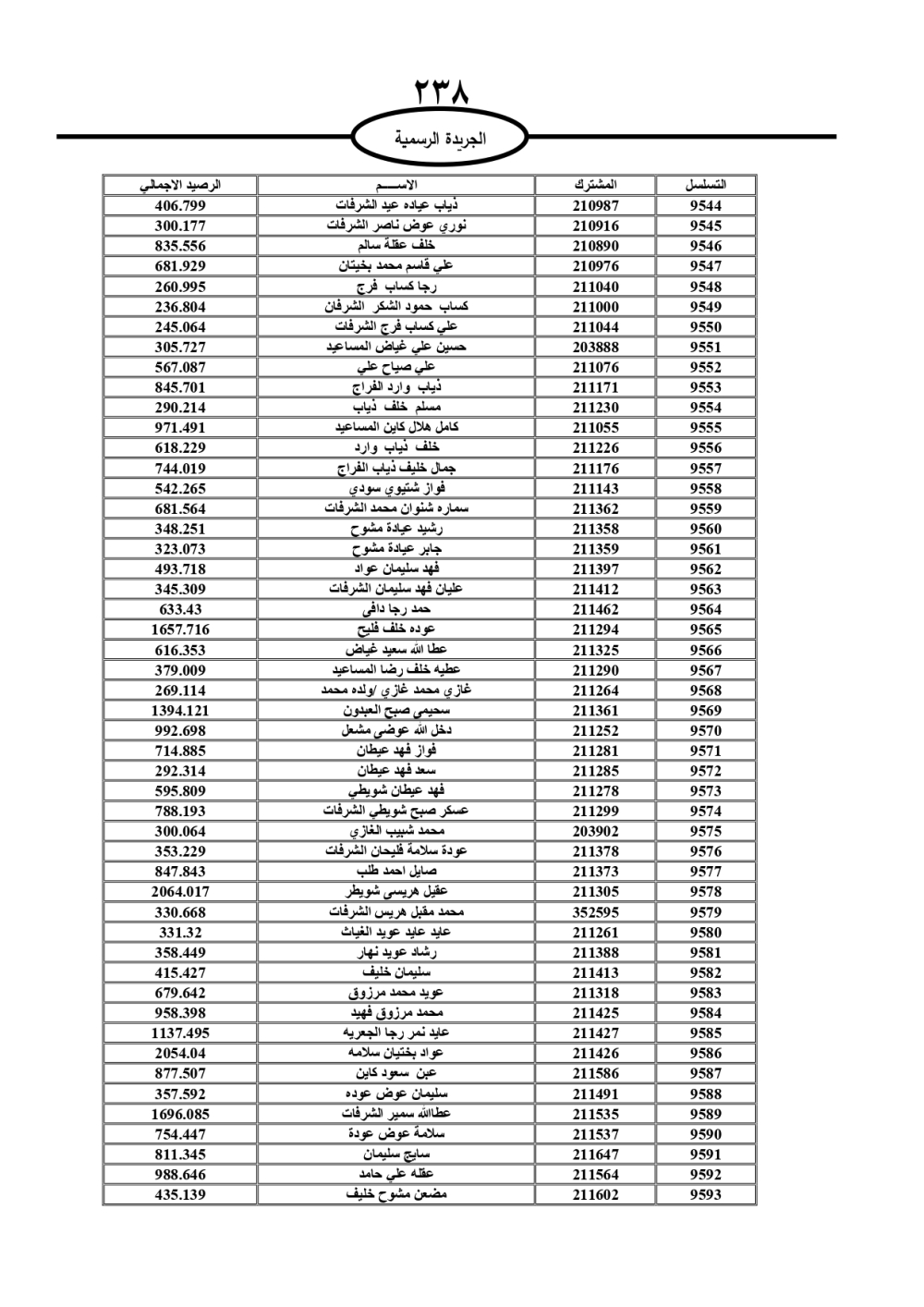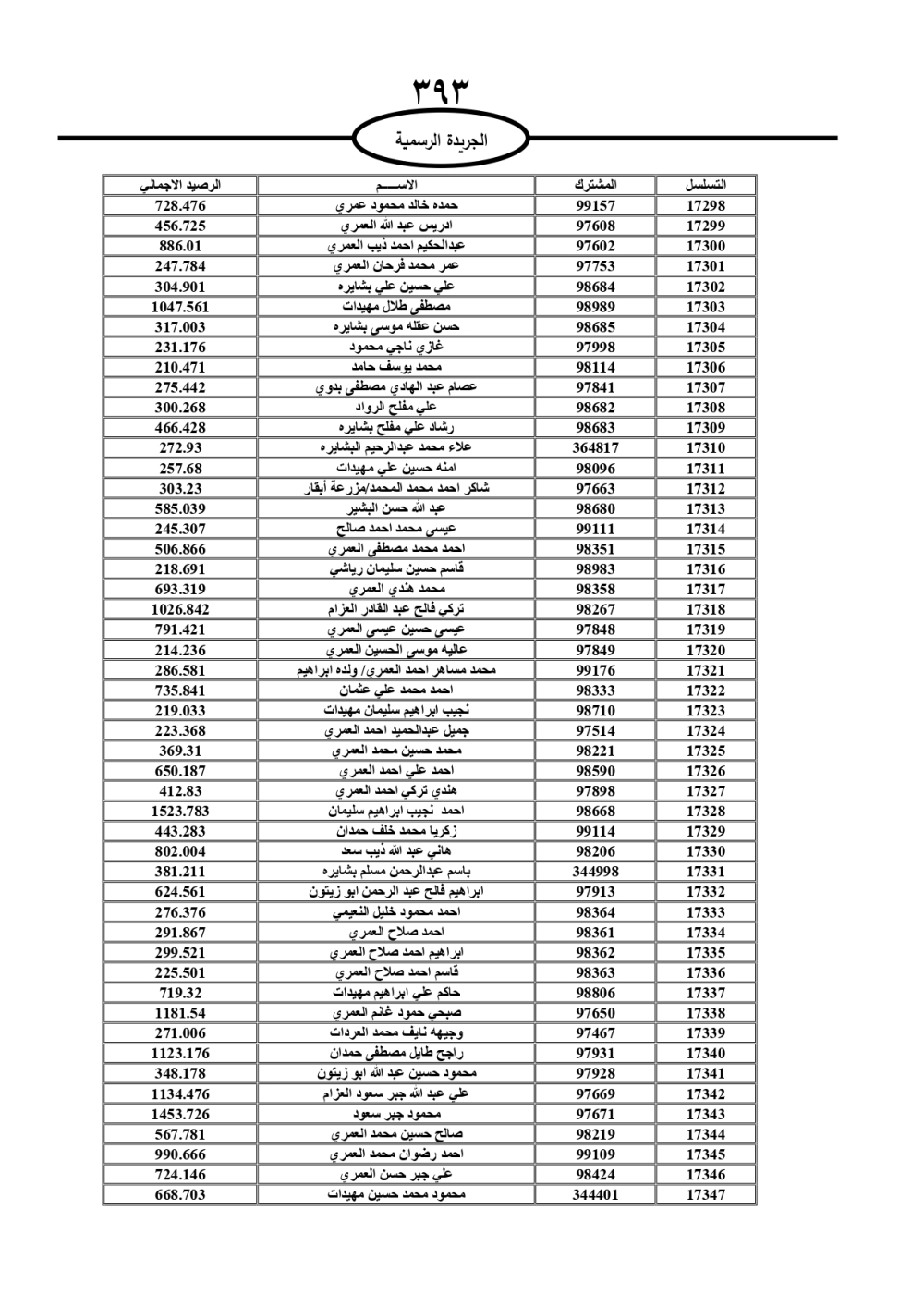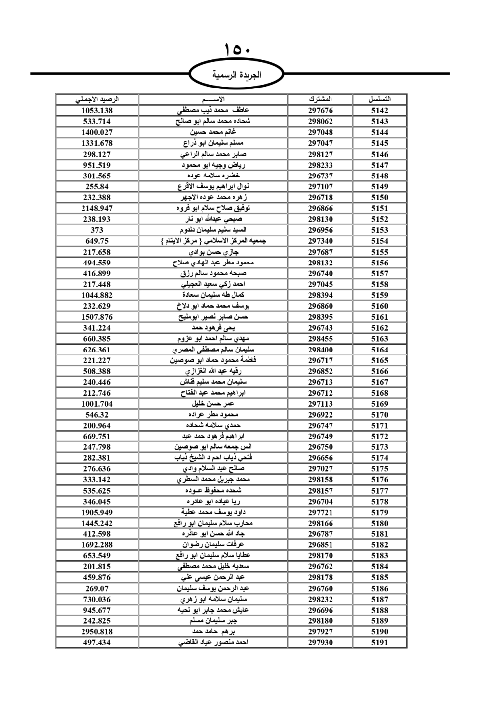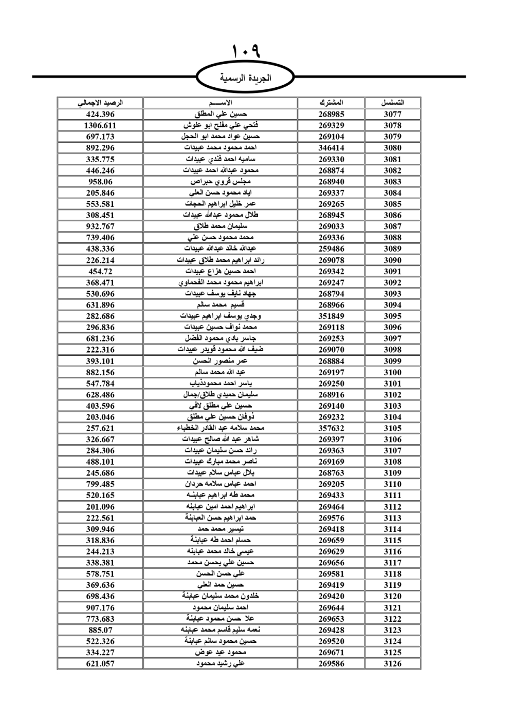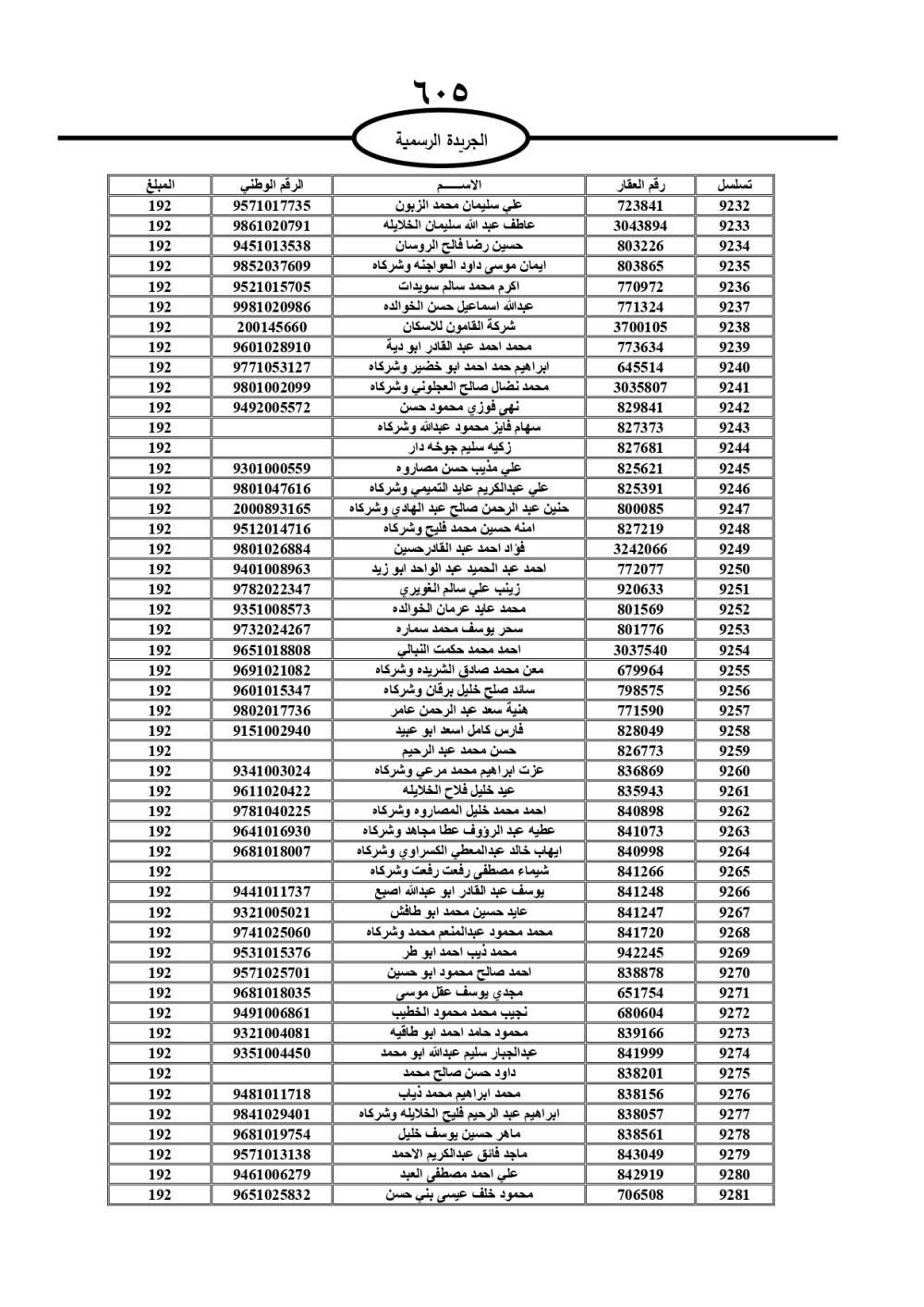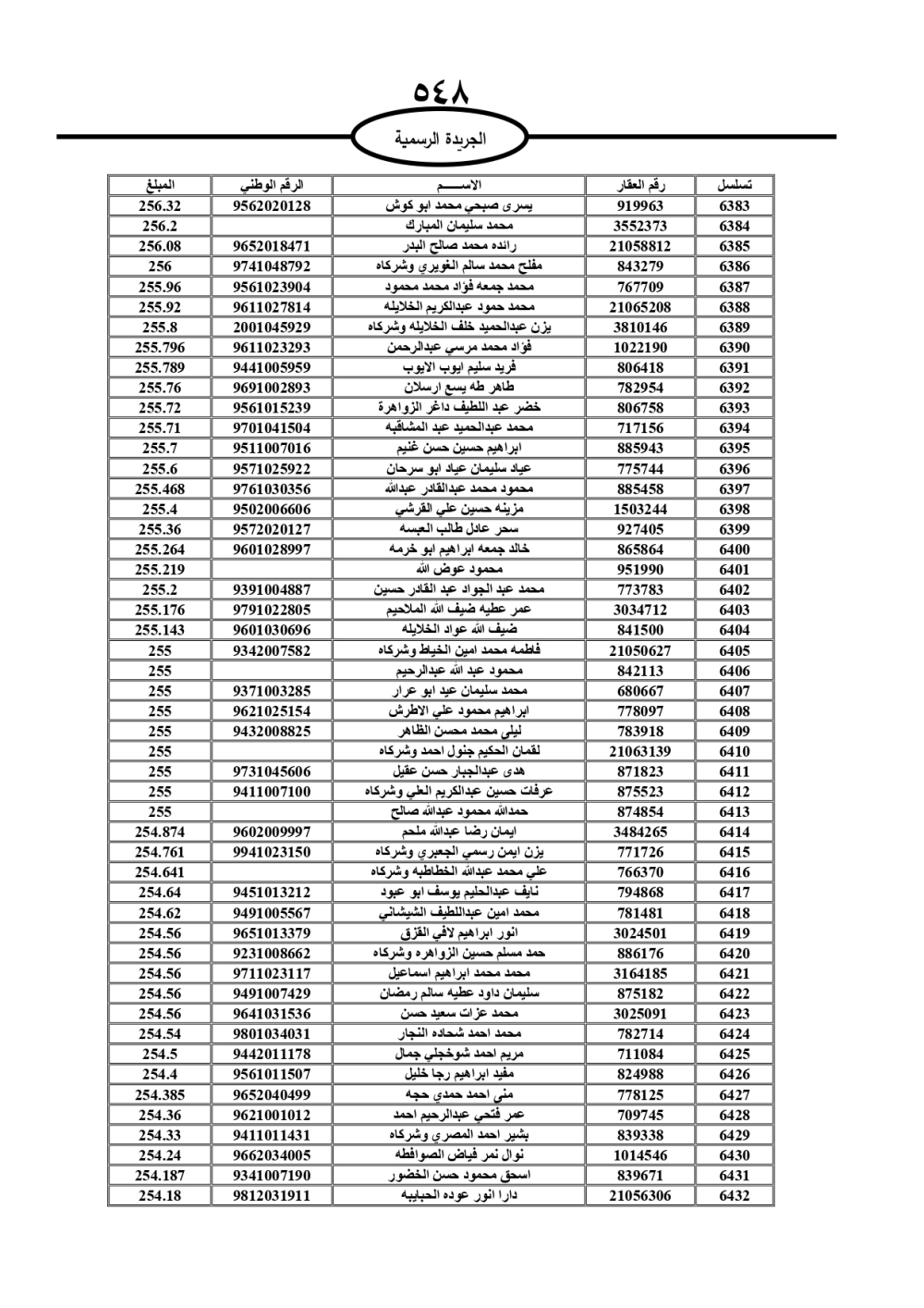 دعت سلطة المياه وبلدية الزرقاء، عشرات آلاف الأردنيين الواردة أسماؤهم بالكشوفات المرفقة، إلى ضرورة مراجعتها لتسوية أوضاعهم المالية كونه ترتب عليهم ذمم مالية، وذلك لتجنب الحجز على الأموال المنقولة وغير المنقولة بعد انقضاء 60 يوما من تاريخ النشر، علما أنه تم نشر هذه الأسماء في الجريدة الرسمية بتاريخ 16/2/2025.