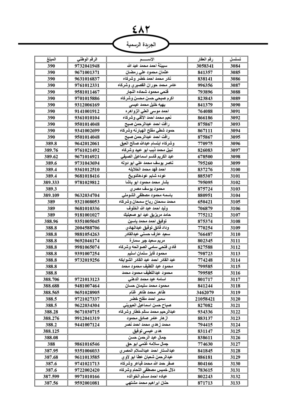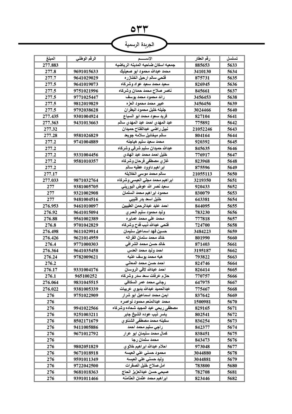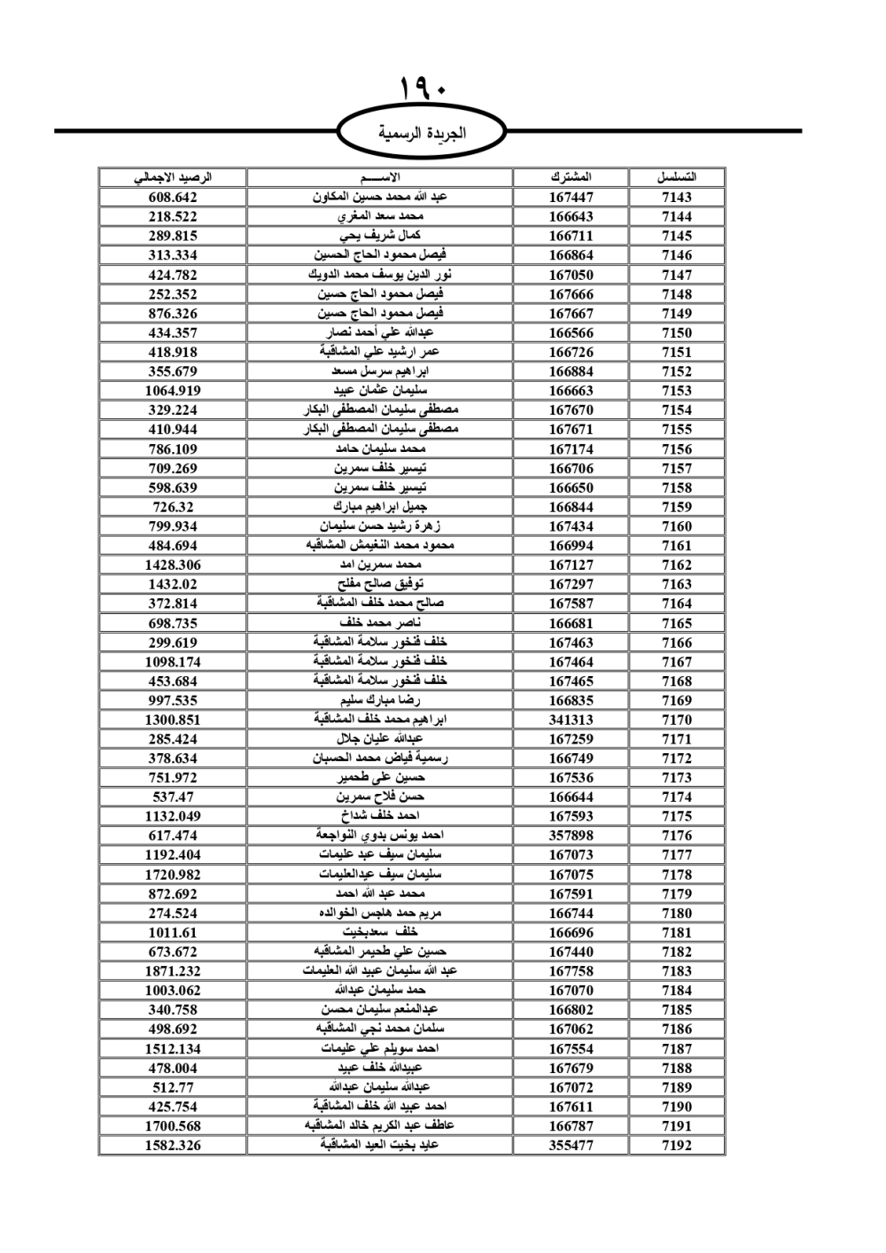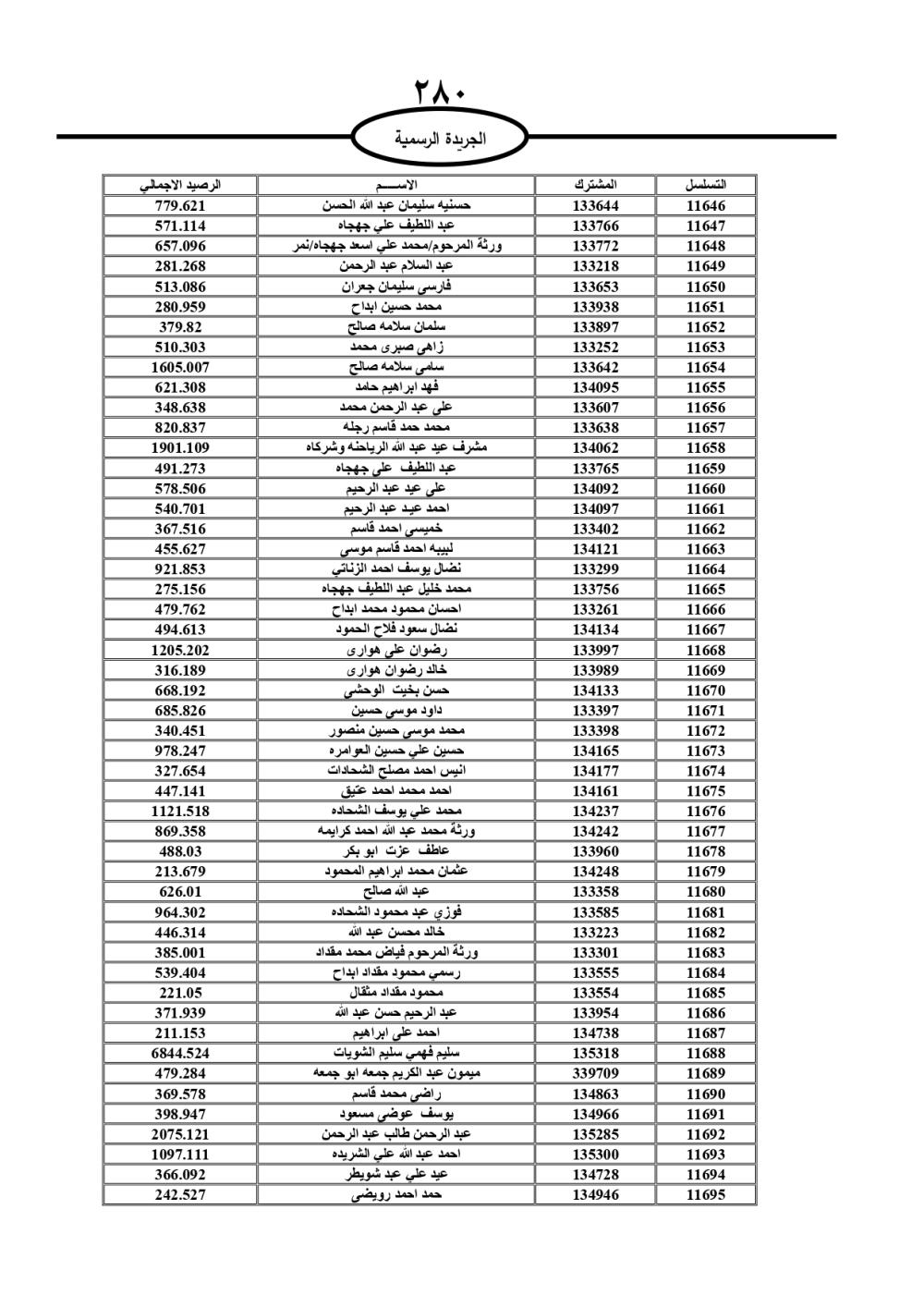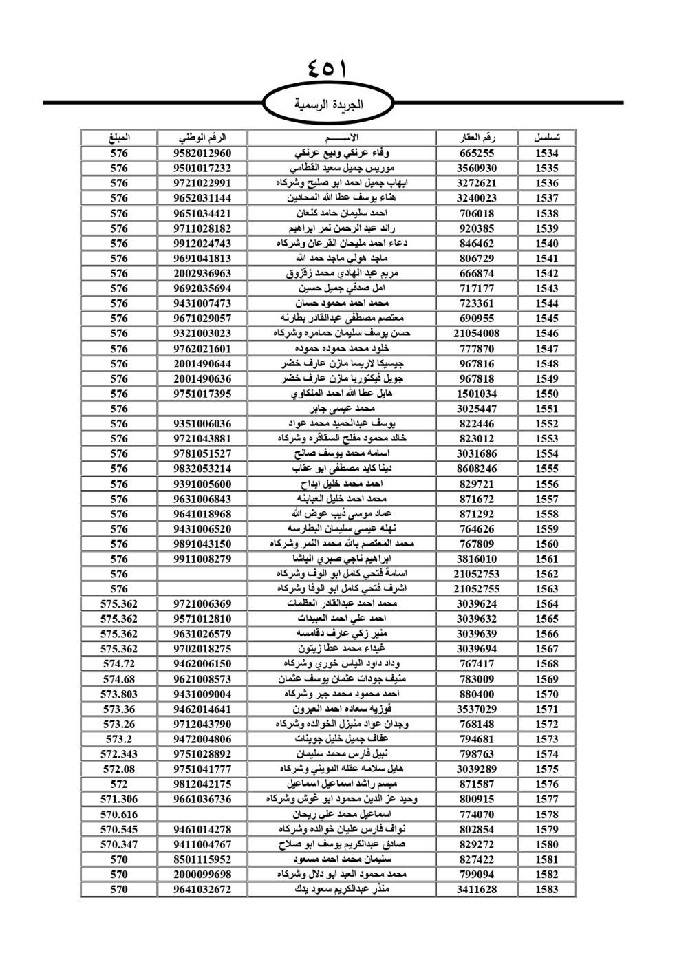 دعت سلطة المياه وبلدية الزرقاء، عشرات آلاف الأردنيين الواردة أسماؤهم بالكشوفات المرفقة، إلى ضرورة مراجعتها لتسوية أوضاعهم المالية كونه ترتب عليهم ذمم مالية، وذلك لتجنب الحجز على الأموال المنقولة وغير المنقولة بعد انقضاء 60 يوما من تاريخ النشر، علما أنه تم نشر هذه الأسماء في الجريدة الرسمية بتاريخ 16/2/2025.