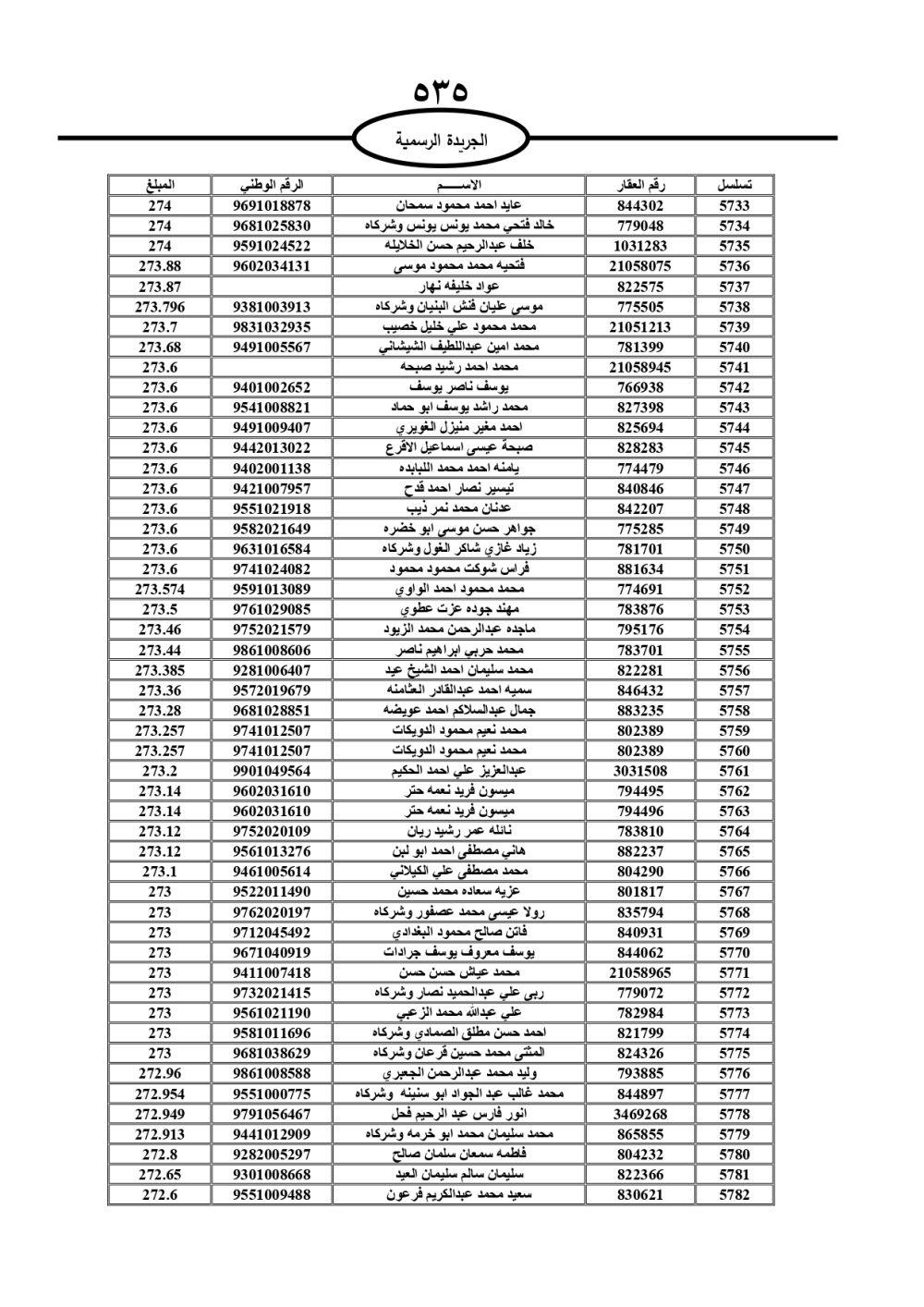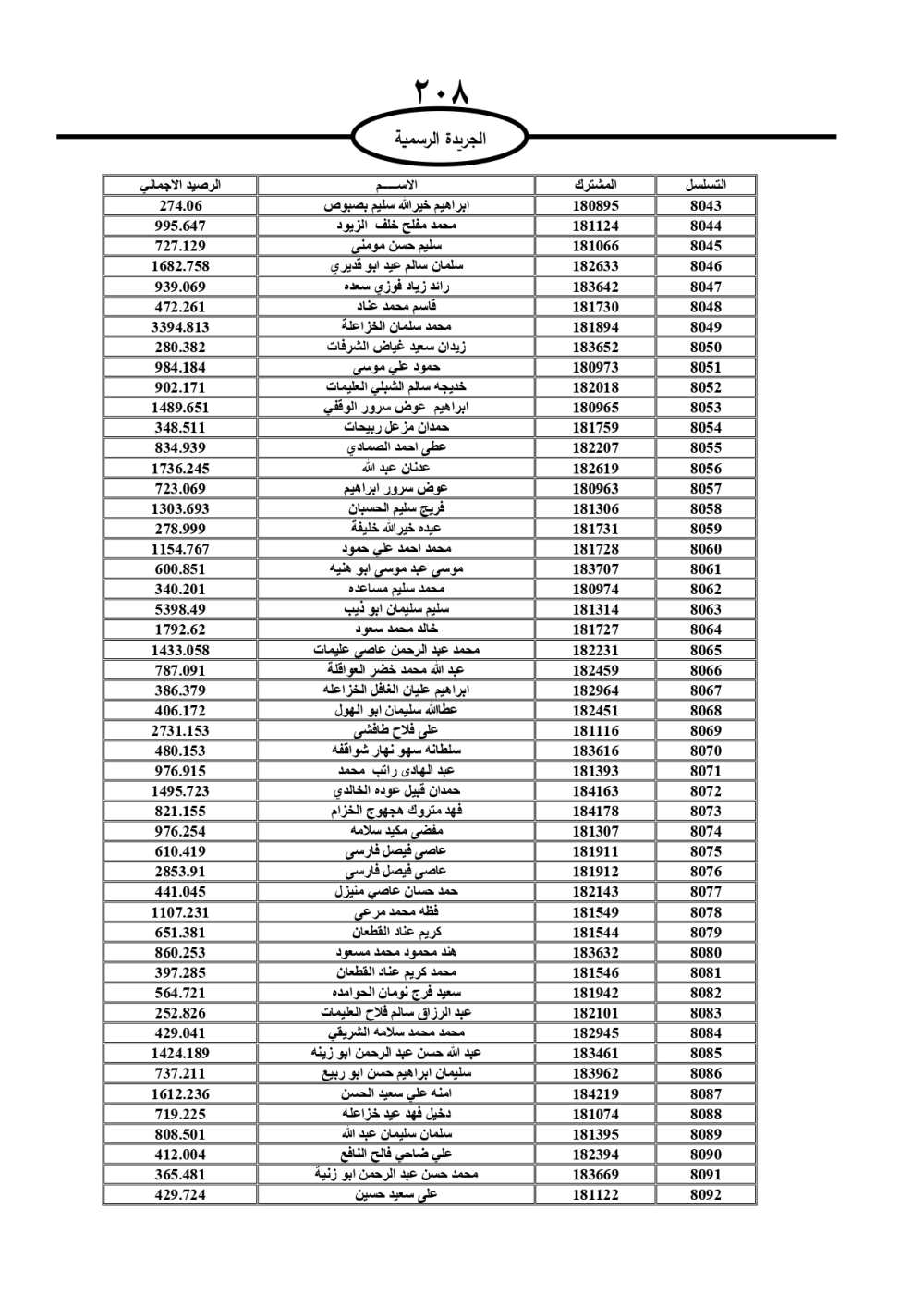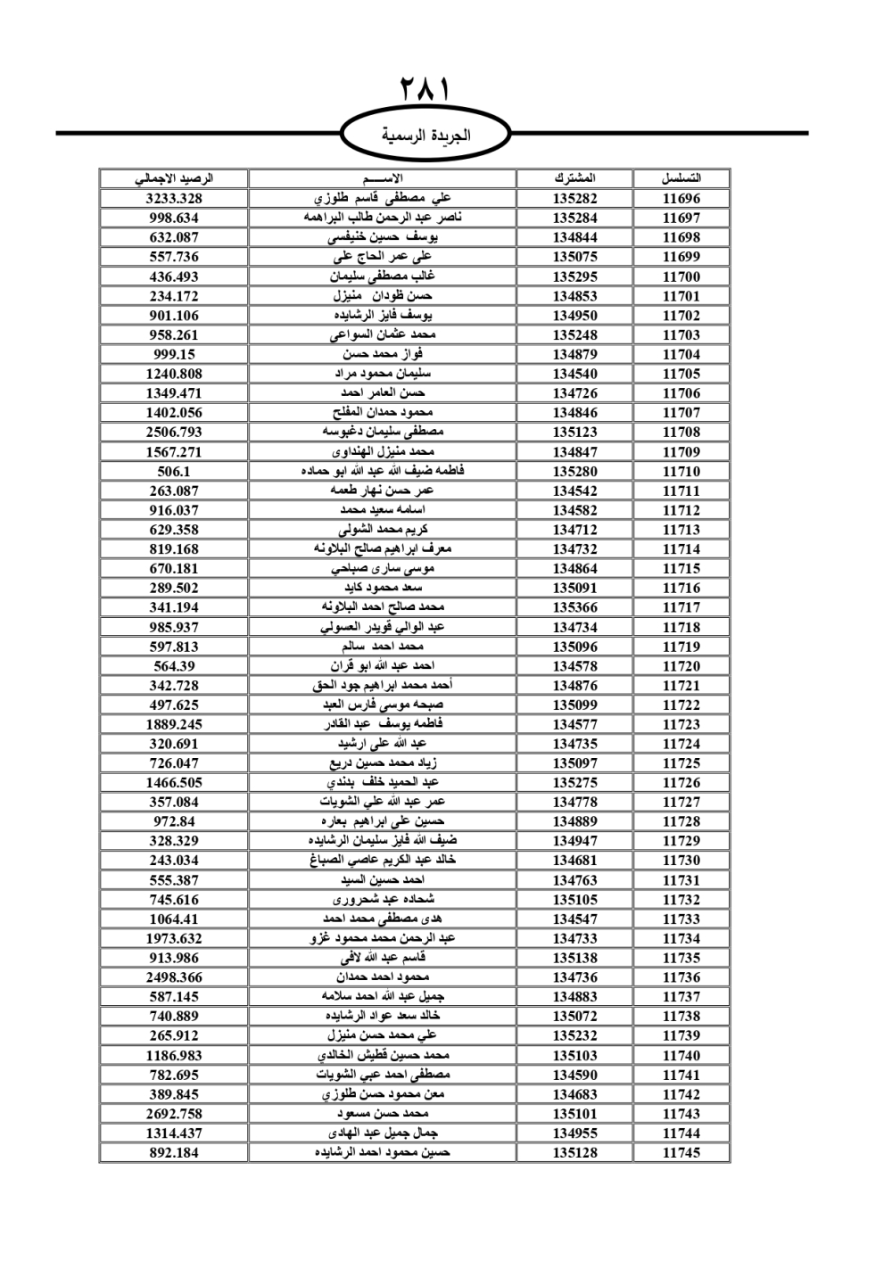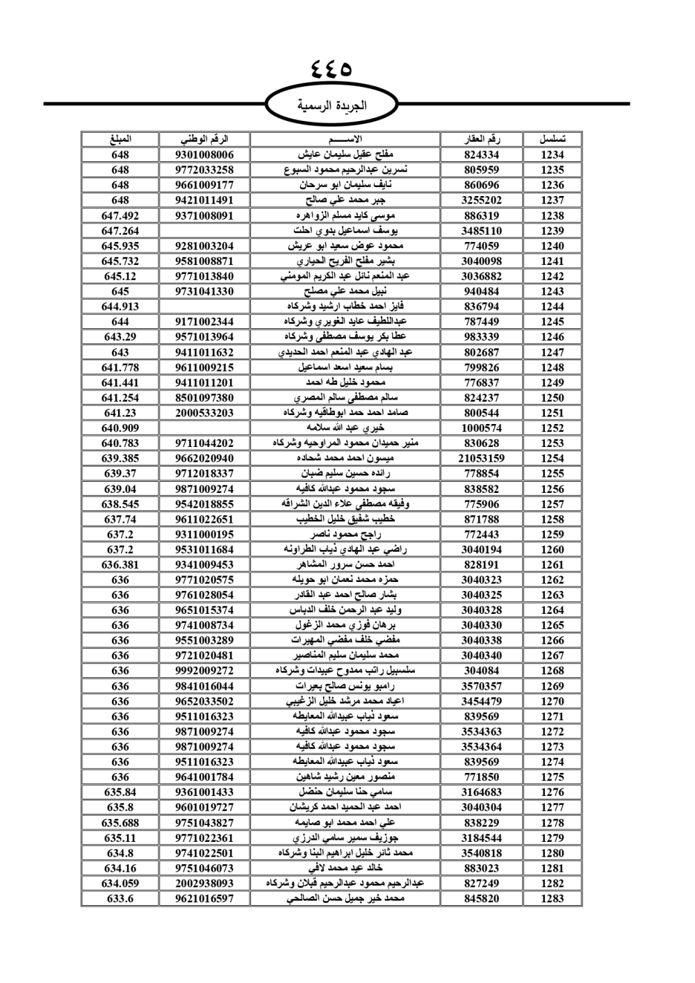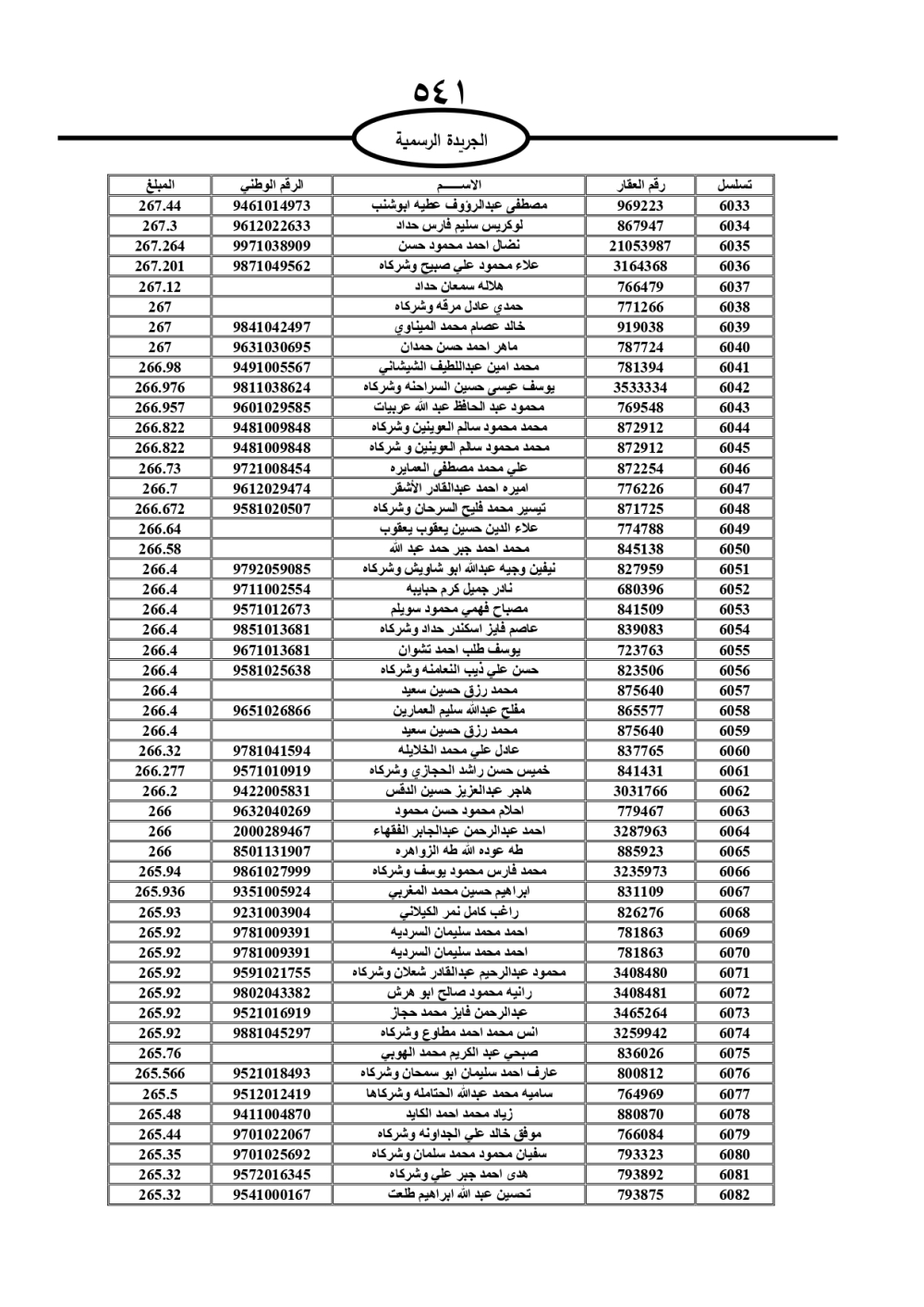 دعت سلطة المياه وبلدية الزرقاء، عشرات آلاف الأردنيين الواردة أسماؤهم بالكشوفات المرفقة، إلى ضرورة مراجعتها لتسوية أوضاعهم المالية كونه ترتب عليهم ذمم مالية، وذلك لتجنب الحجز على الأموال المنقولة وغير المنقولة بعد انقضاء 60 يوما من تاريخ النشر، علما أنه تم نشر هذه الأسماء في الجريدة الرسمية بتاريخ 16/2/2025.