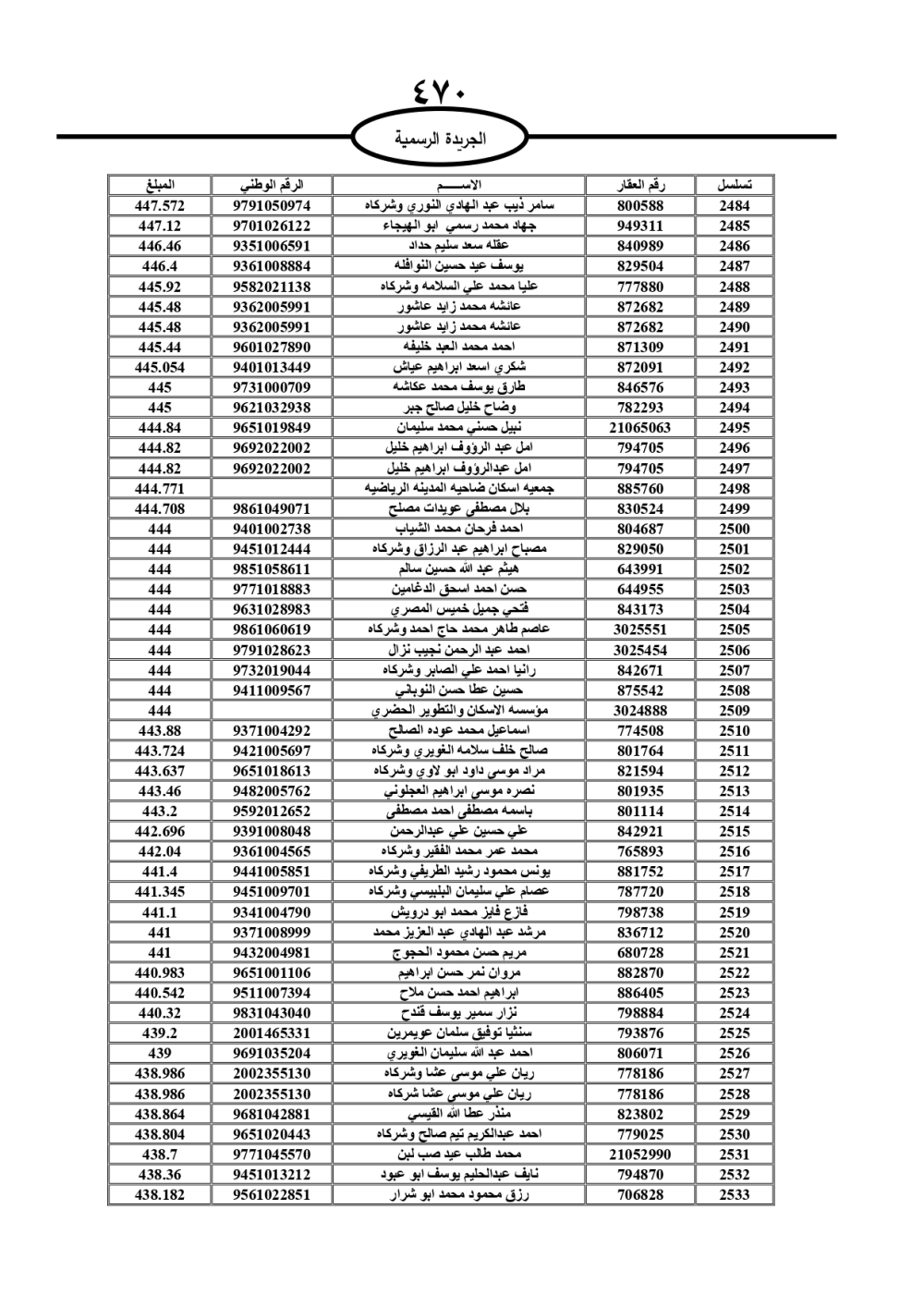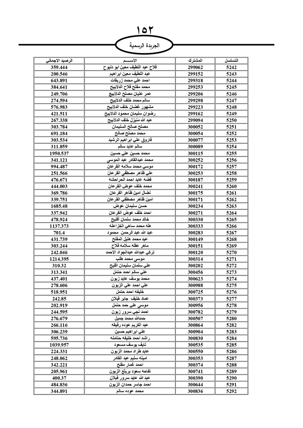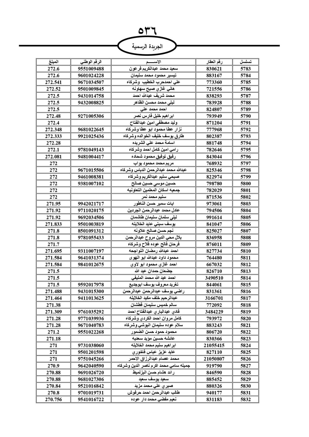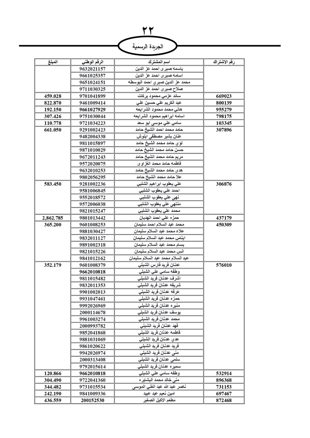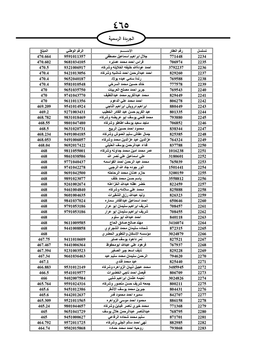 دعت سلطة المياه وبلدية الزرقاء، عشرات آلاف الأردنيين الواردة أسماؤهم بالكشوفات المرفقة، إلى ضرورة مراجعتها لتسوية أوضاعهم المالية كونه ترتب عليهم ذمم مالية، وذلك لتجنب الحجز على الأموال المنقولة وغير المنقولة بعد انقضاء 60 يوما من تاريخ النشر، علما أنه تم نشر هذه الأسماء في الجريدة الرسمية بتاريخ 16/2/2025.