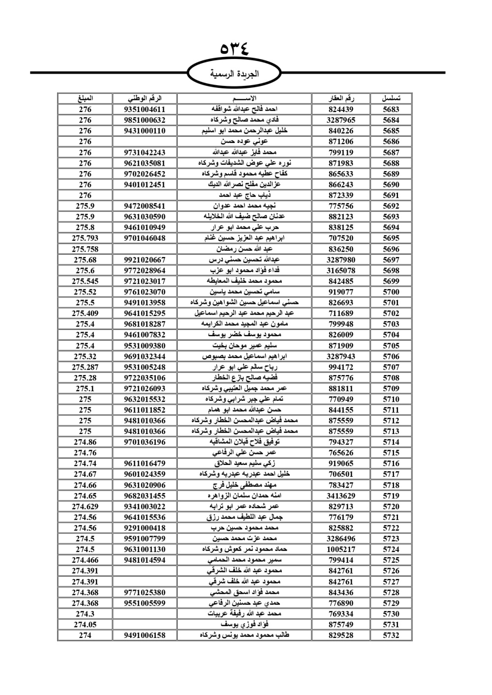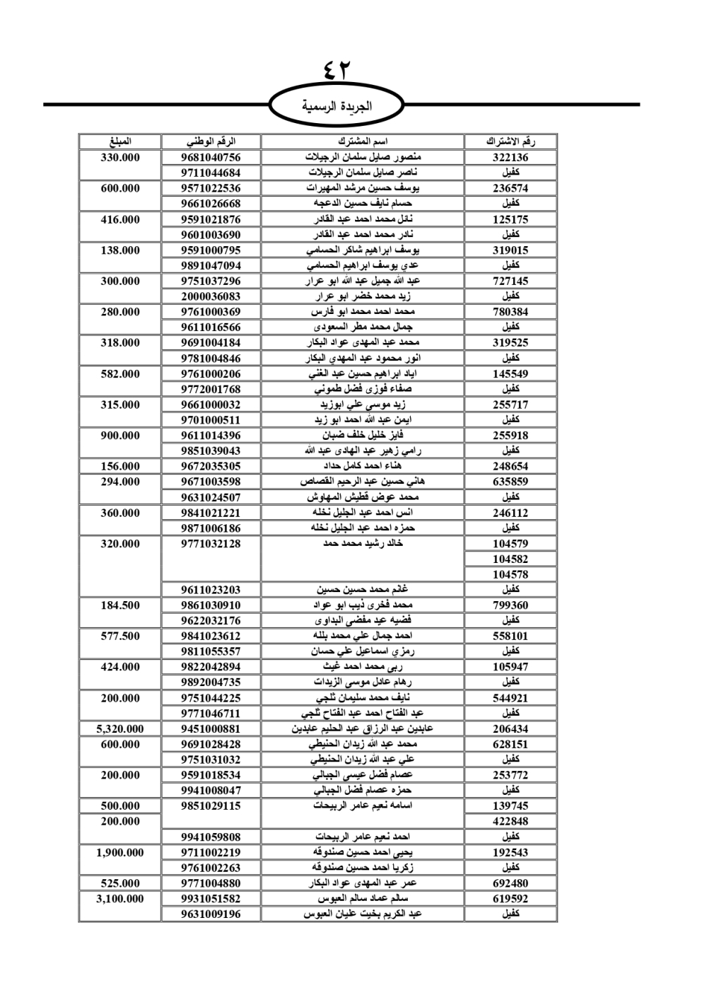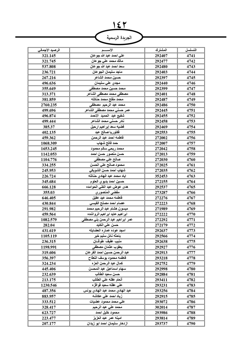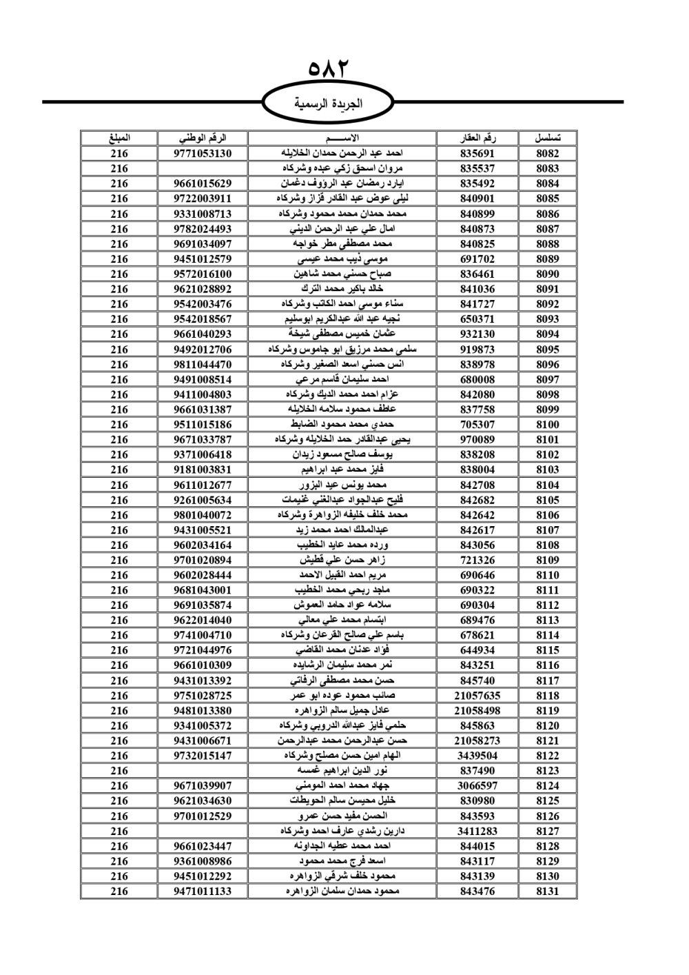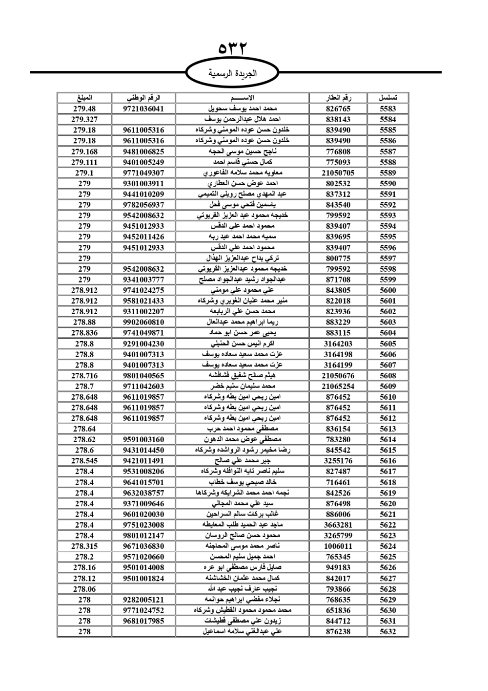 دعت سلطة المياه وبلدية الزرقاء، عشرات آلاف الأردنيين الواردة أسماؤهم بالكشوفات المرفقة، إلى ضرورة مراجعتها لتسوية أوضاعهم المالية كونه ترتب عليهم ذمم مالية، وذلك لتجنب الحجز على الأموال المنقولة وغير المنقولة بعد انقضاء 60 يوما من تاريخ النشر، علما أنه تم نشر هذه الأسماء في الجريدة الرسمية بتاريخ 16/2/2025.