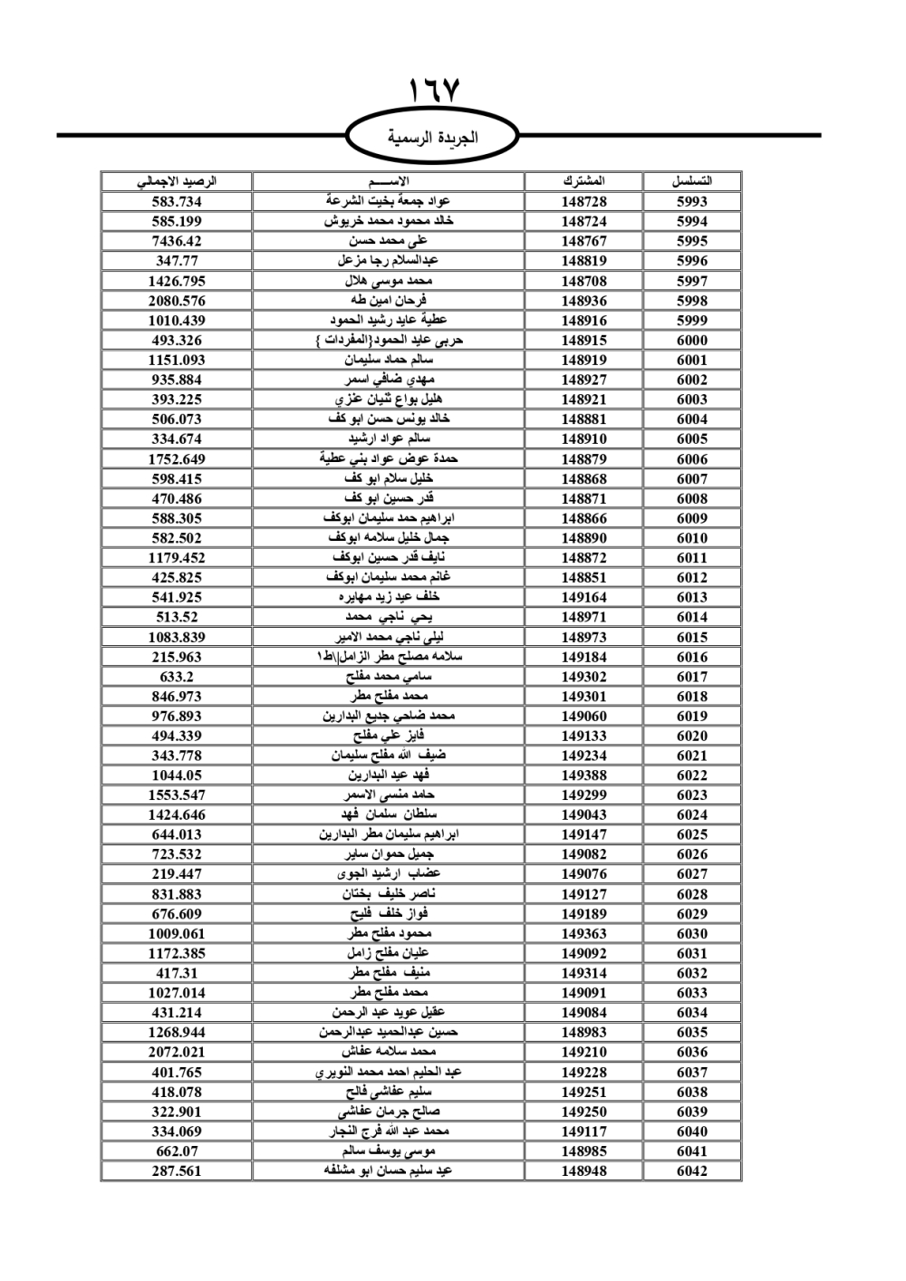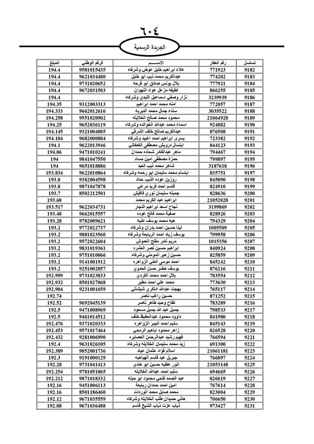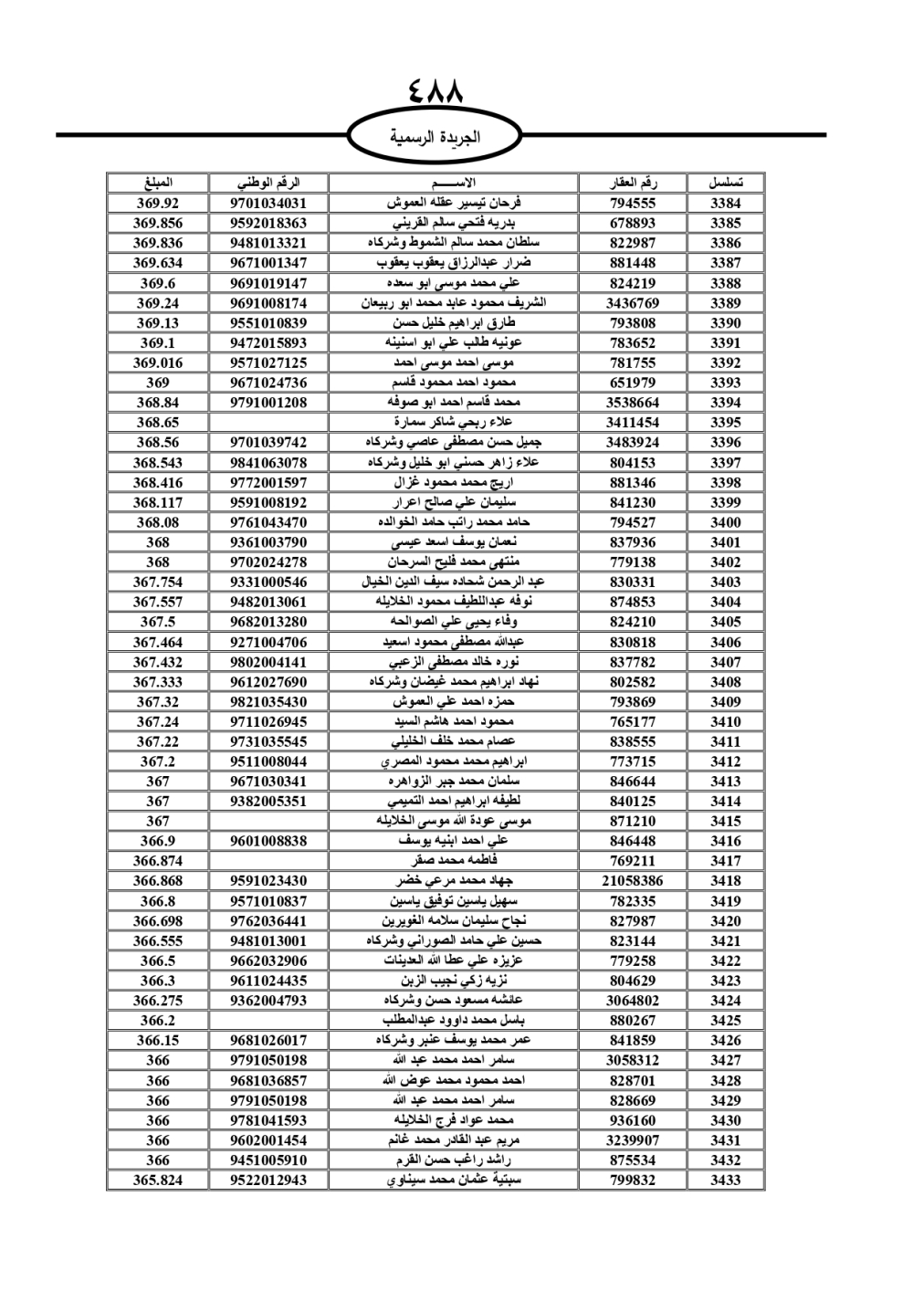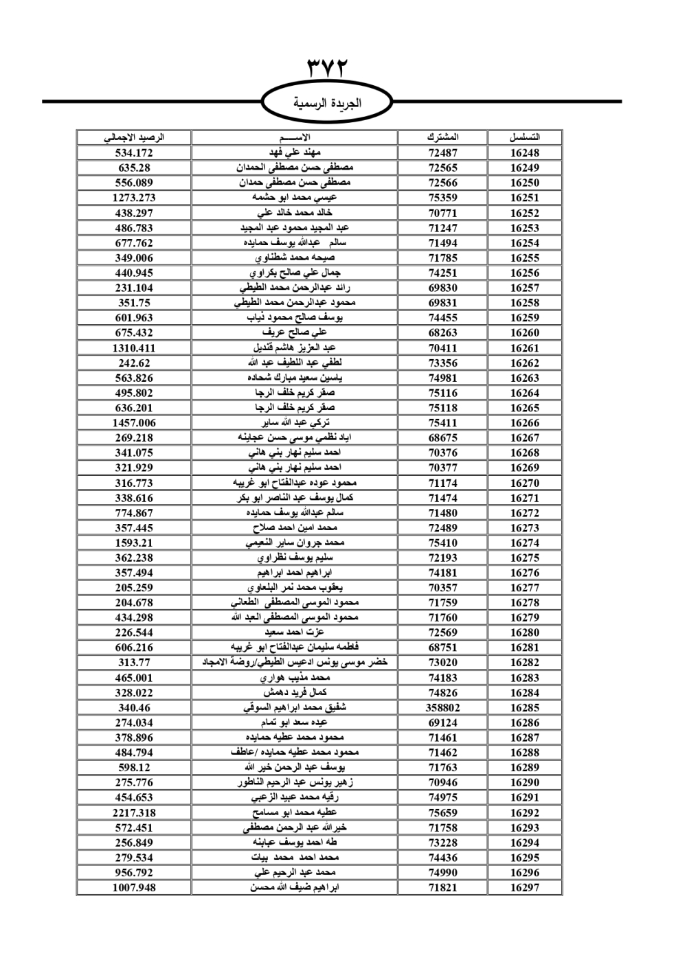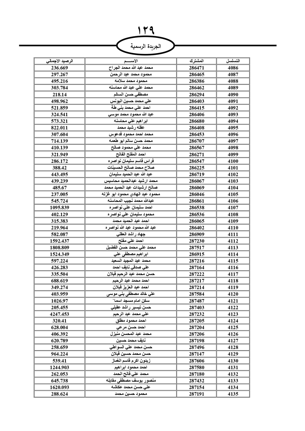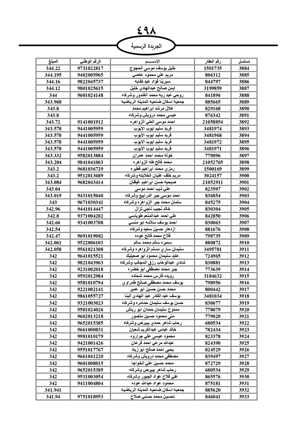 دعت سلطة المياه وبلدية الزرقاء، عشرات آلاف الأردنيين الواردة أسماؤهم بالكشوفات المرفقة، إلى ضرورة مراجعتها لتسوية أوضاعهم المالية كونه ترتب عليهم ذمم مالية، وذلك لتجنب الحجز على الأموال المنقولة وغير المنقولة بعد انقضاء 60 يوما من تاريخ النشر، علما أنه تم نشر هذه الأسماء في الجريدة الرسمية بتاريخ 16/2/2025.