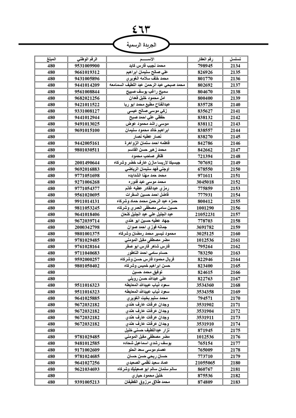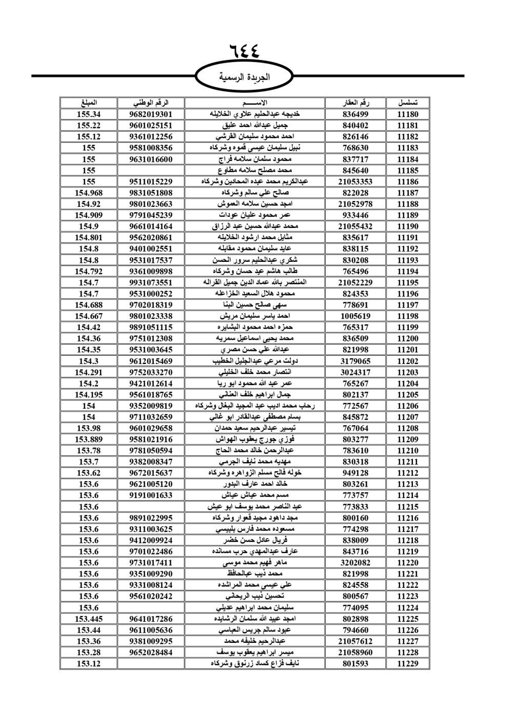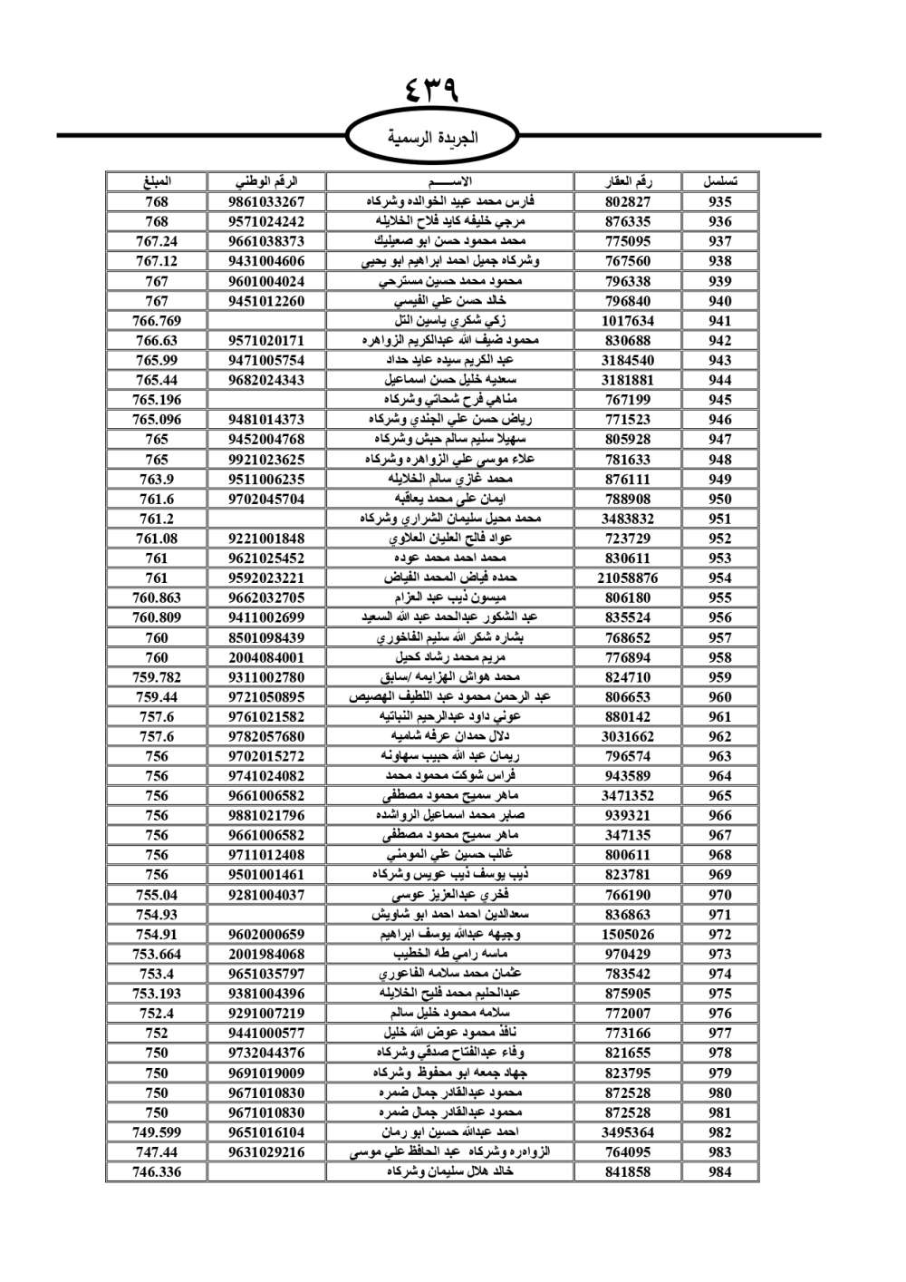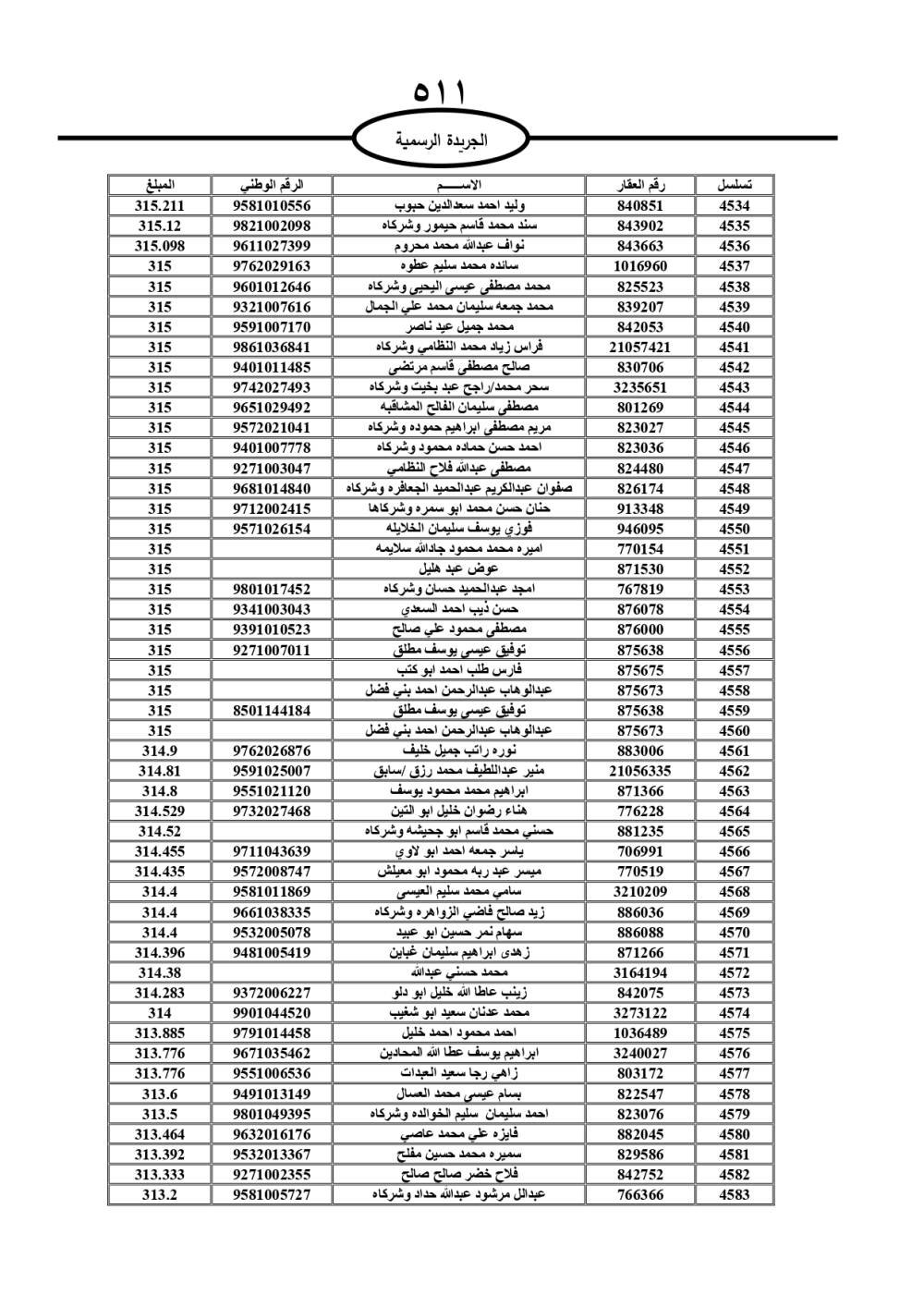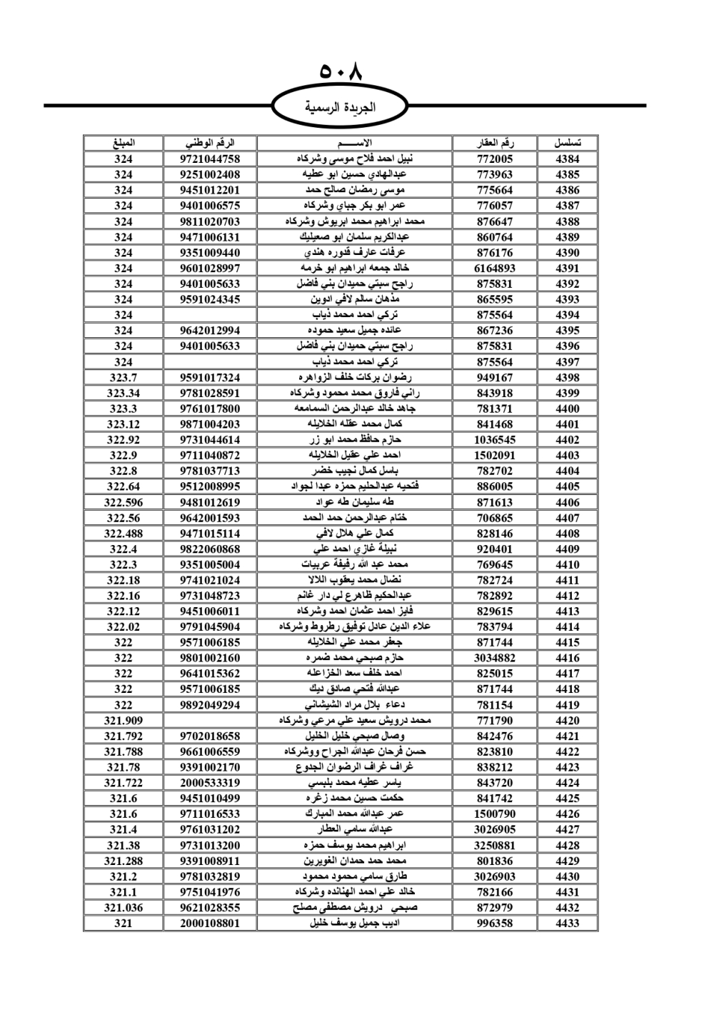 دعت سلطة المياه وبلدية الزرقاء، عشرات آلاف الأردنيين الواردة أسماؤهم بالكشوفات المرفقة، إلى ضرورة مراجعتها لتسوية أوضاعهم المالية كونه ترتب عليهم ذمم مالية، وذلك لتجنب الحجز على الأموال المنقولة وغير المنقولة بعد انقضاء 60 يوما من تاريخ النشر، علما أنه تم نشر هذه الأسماء في الجريدة الرسمية بتاريخ 16/2/2025.