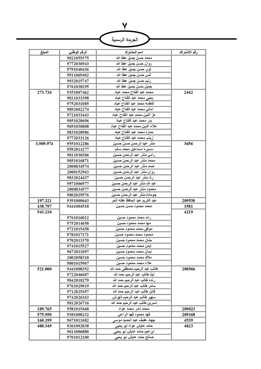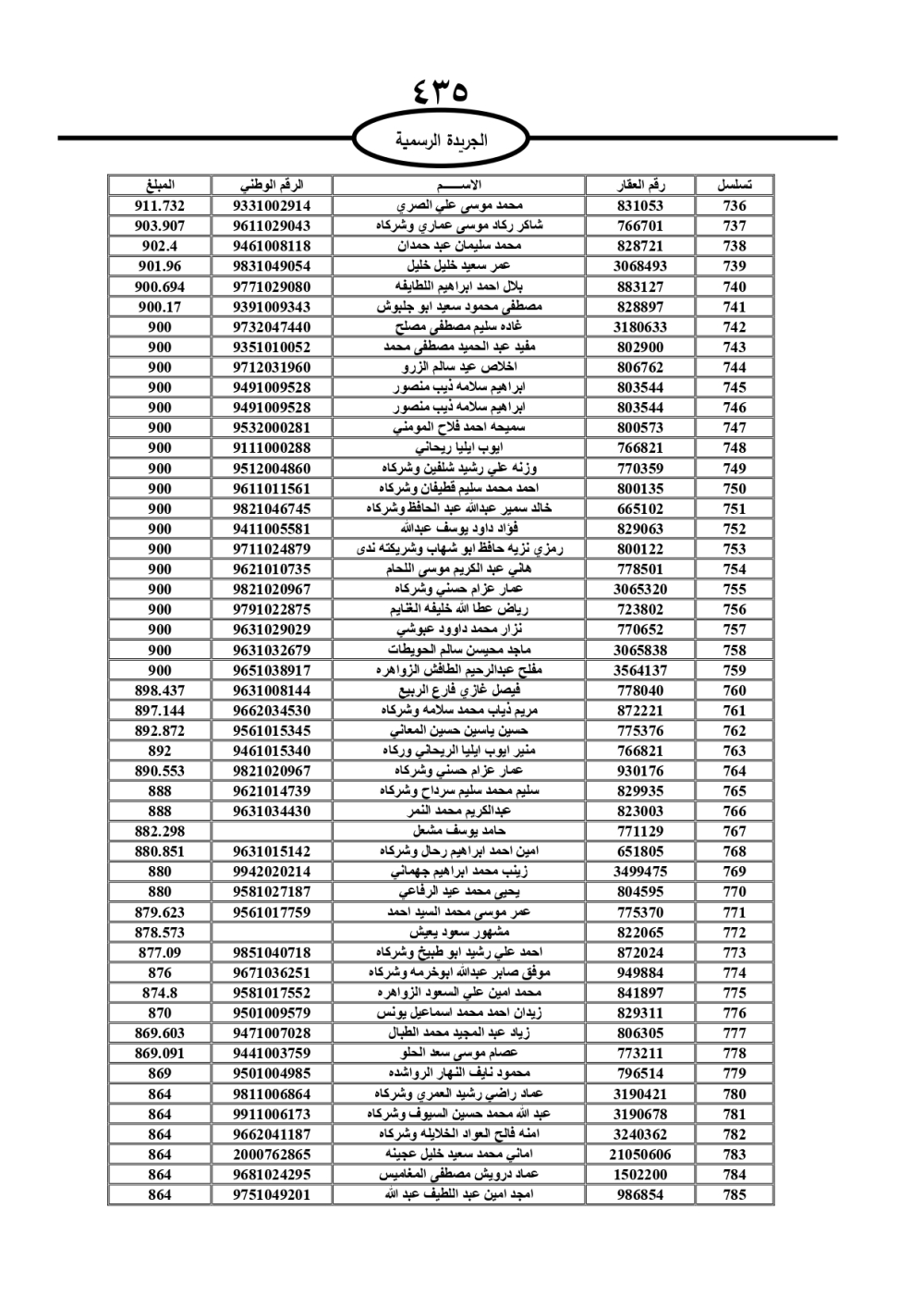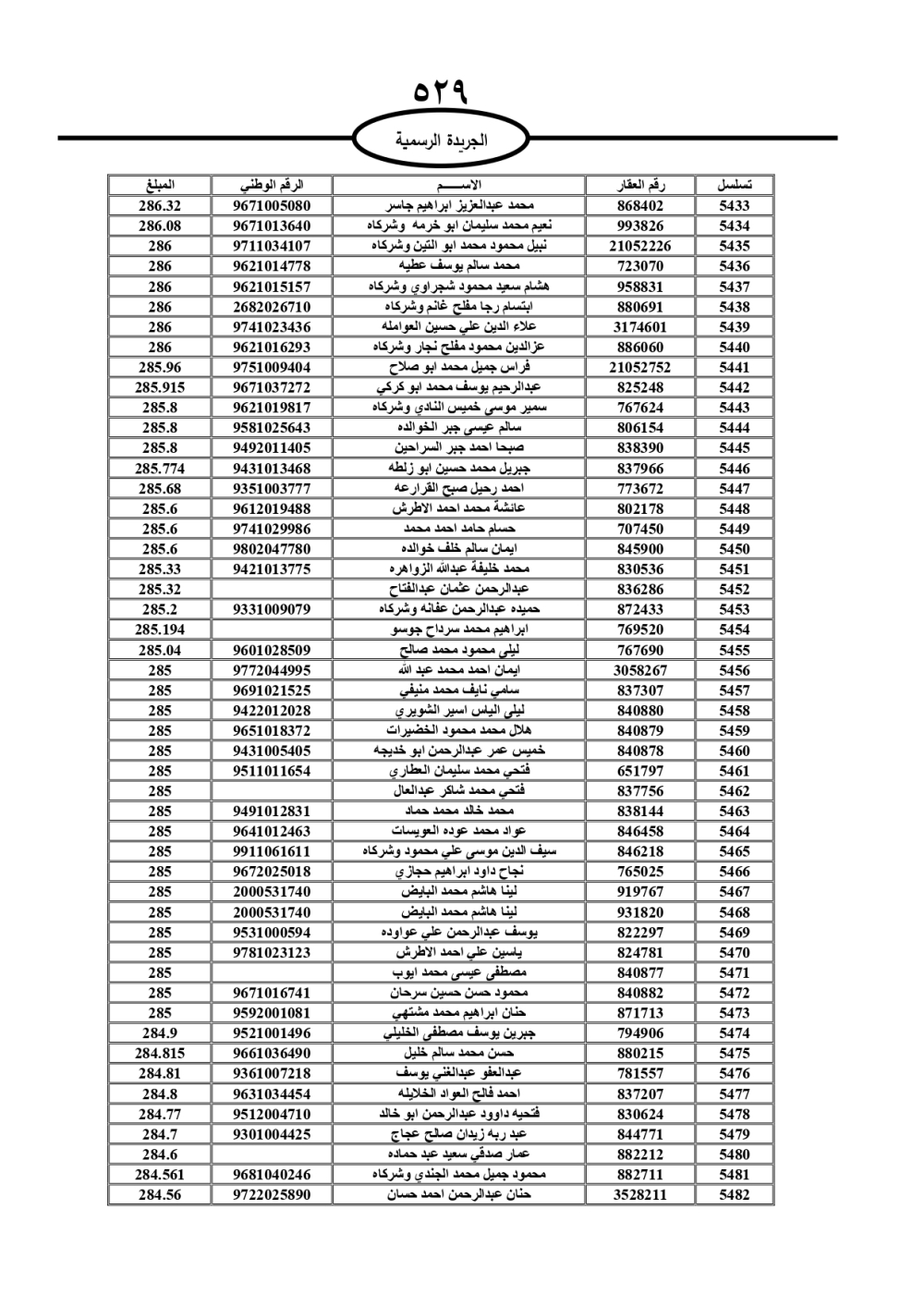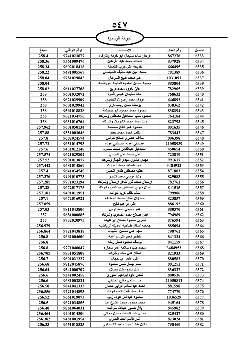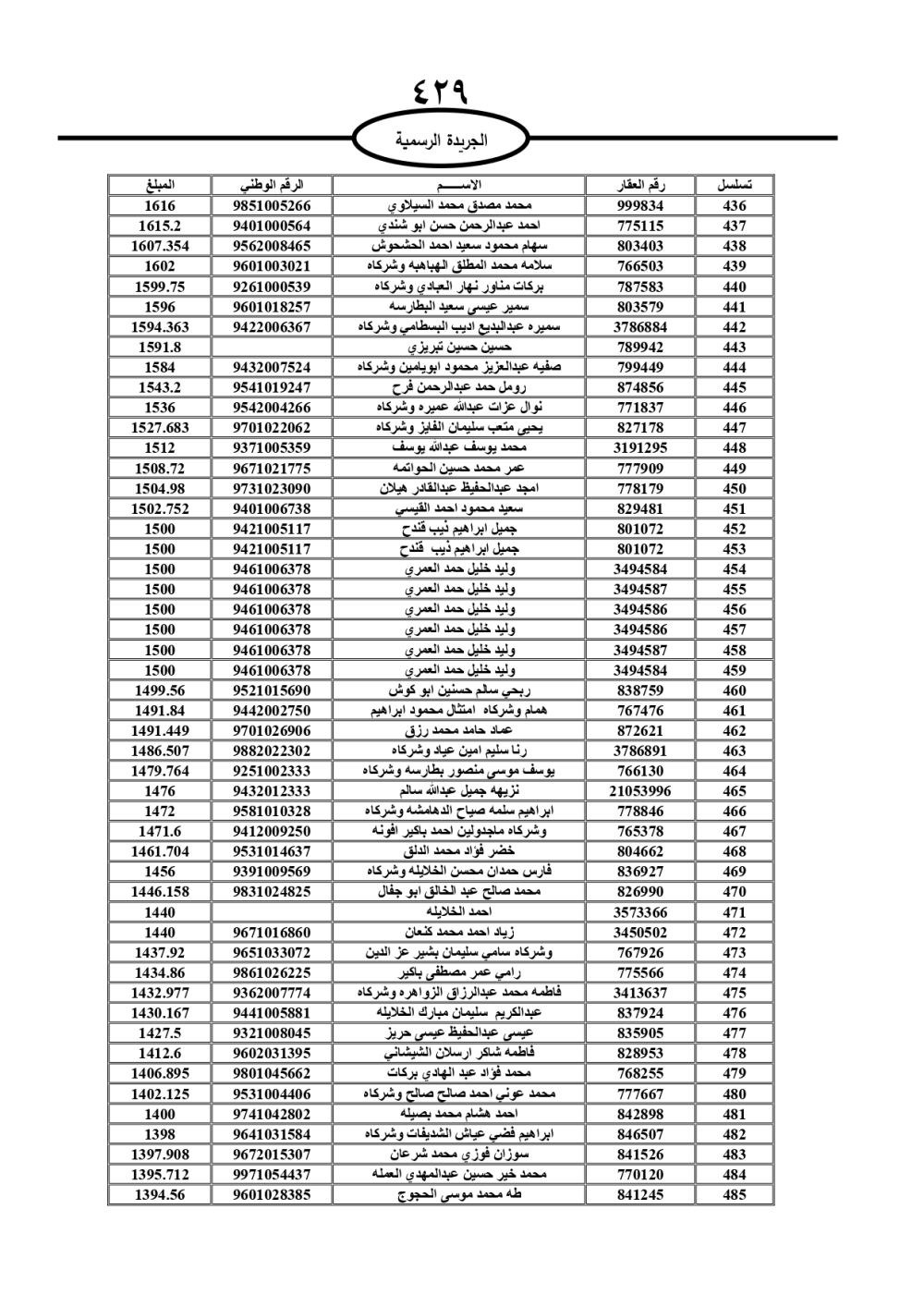 دعت سلطة المياه وبلدية الزرقاء، عشرات آلاف الأردنيين الواردة أسماؤهم بالكشوفات المرفقة، إلى ضرورة مراجعتها لتسوية أوضاعهم المالية كونه ترتب عليهم ذمم مالية، وذلك لتجنب الحجز على الأموال المنقولة وغير المنقولة بعد انقضاء 60 يوما من تاريخ النشر، علما أنه تم نشر هذه الأسماء في الجريدة الرسمية بتاريخ 16/2/2025.