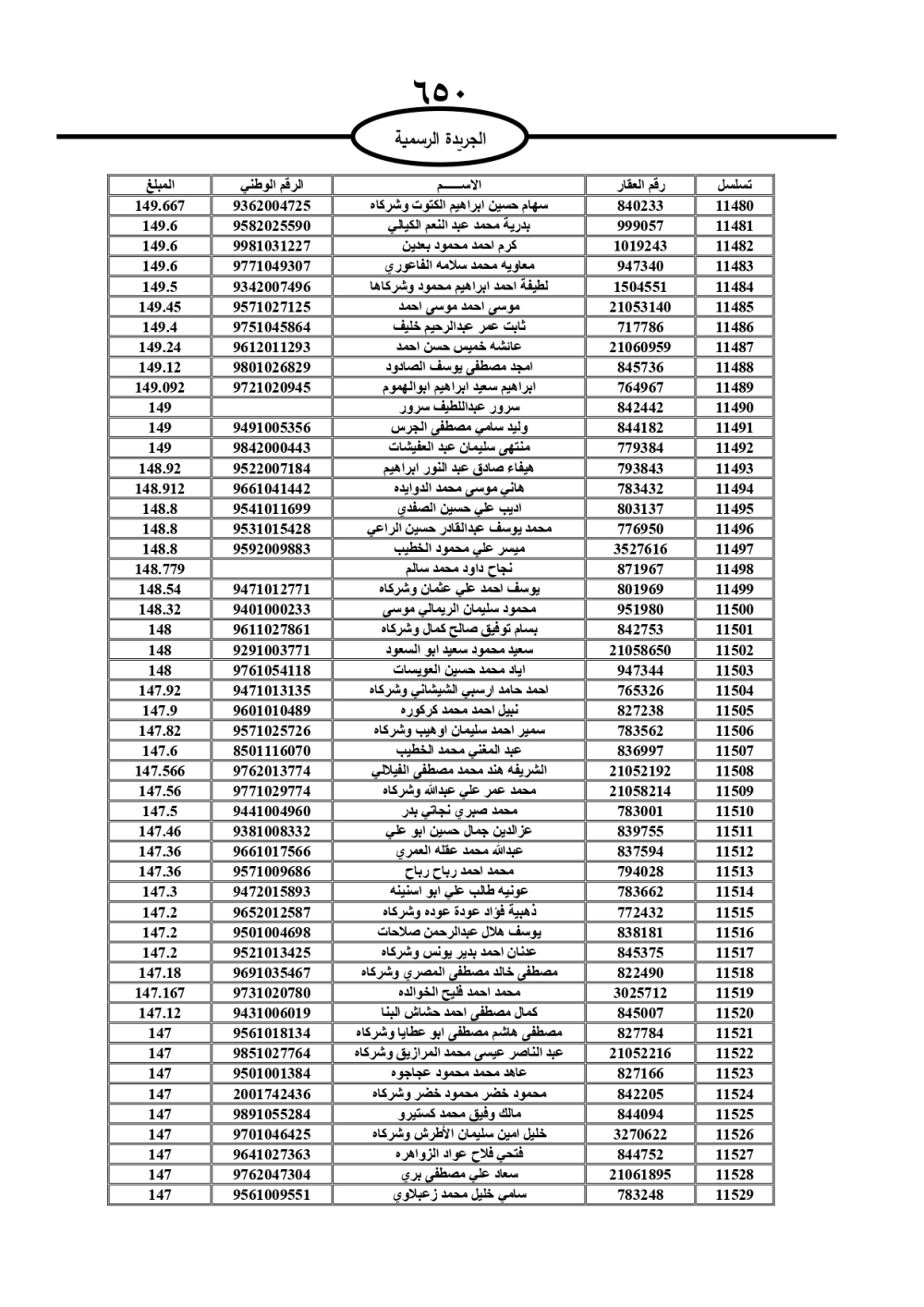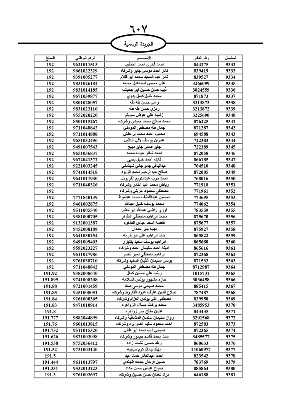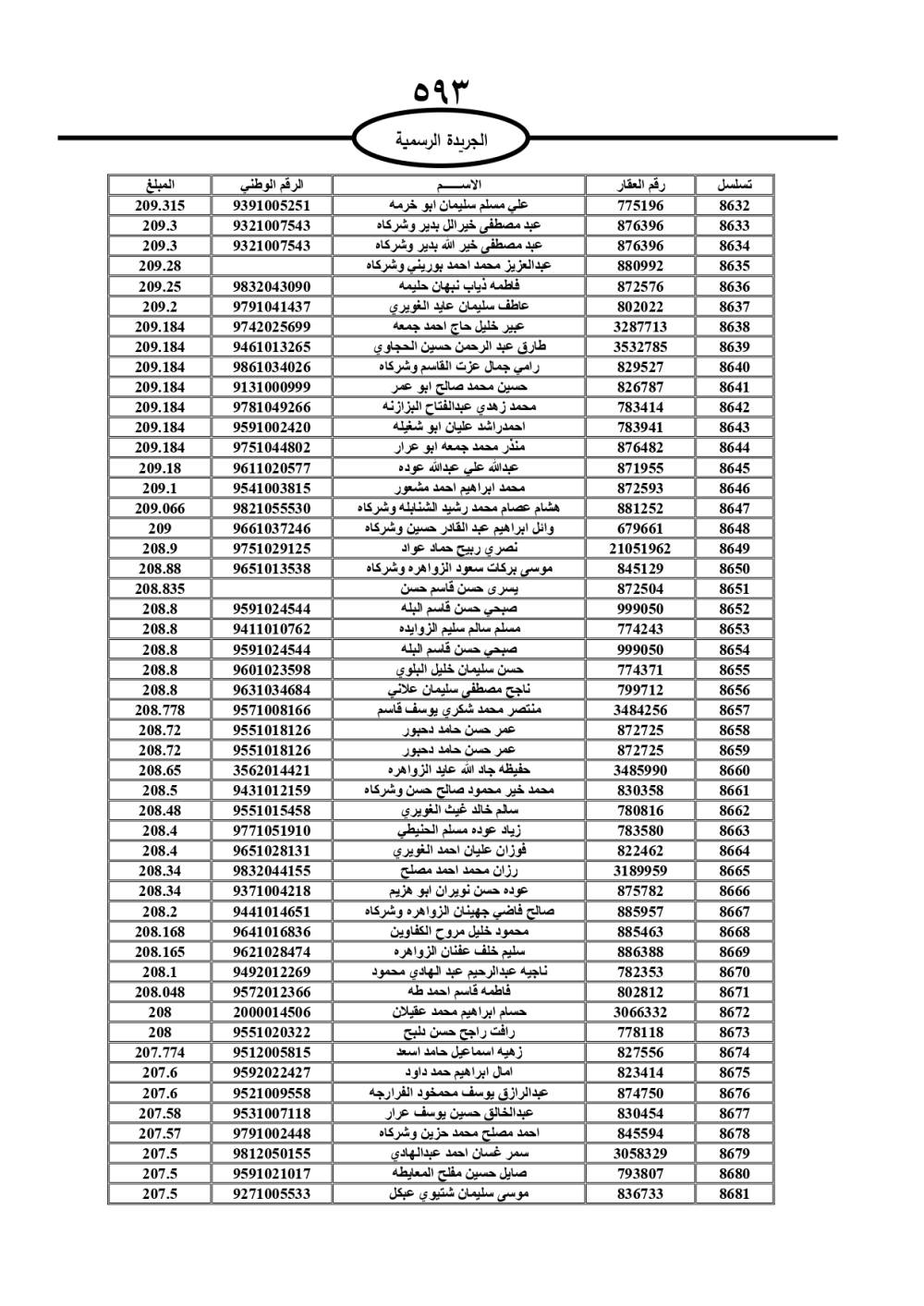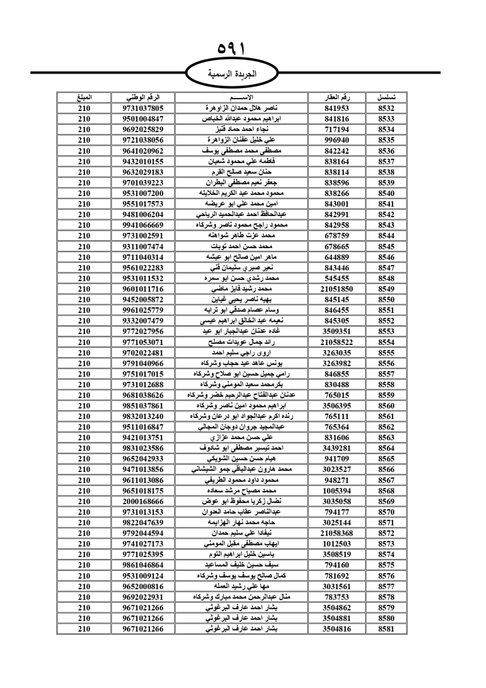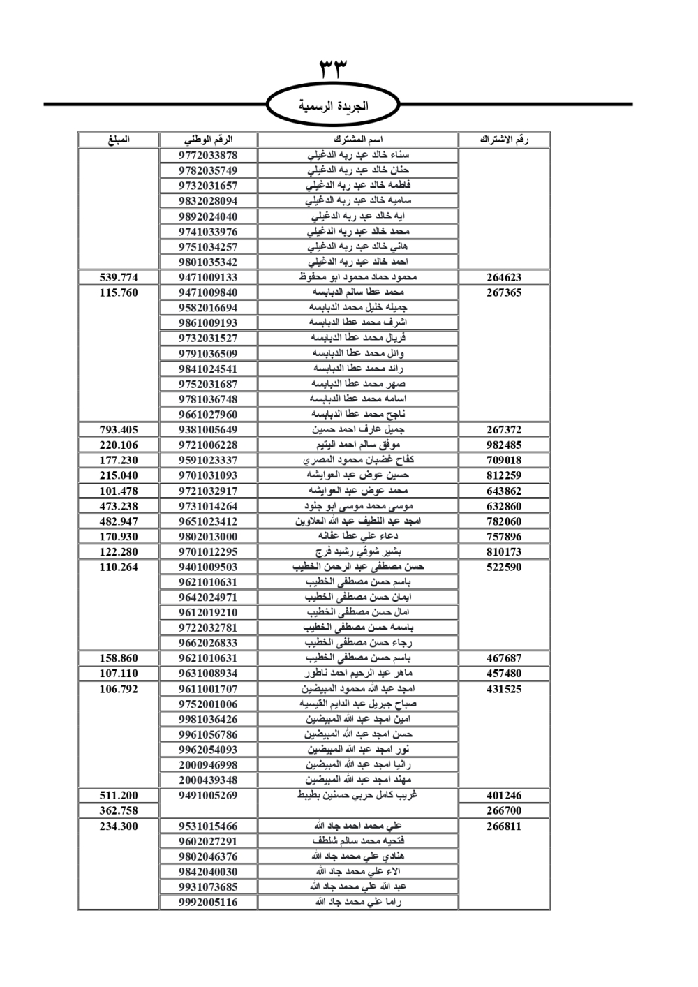 دعت سلطة المياه وبلدية الزرقاء، عشرات آلاف الأردنيين الواردة أسماؤهم بالكشوفات المرفقة، إلى ضرورة مراجعتها لتسوية أوضاعهم المالية كونه ترتب عليهم ذمم مالية، وذلك لتجنب الحجز على الأموال المنقولة وغير المنقولة بعد انقضاء 60 يوما من تاريخ النشر، علما أنه تم نشر هذه الأسماء في الجريدة الرسمية بتاريخ 16/2/2025.