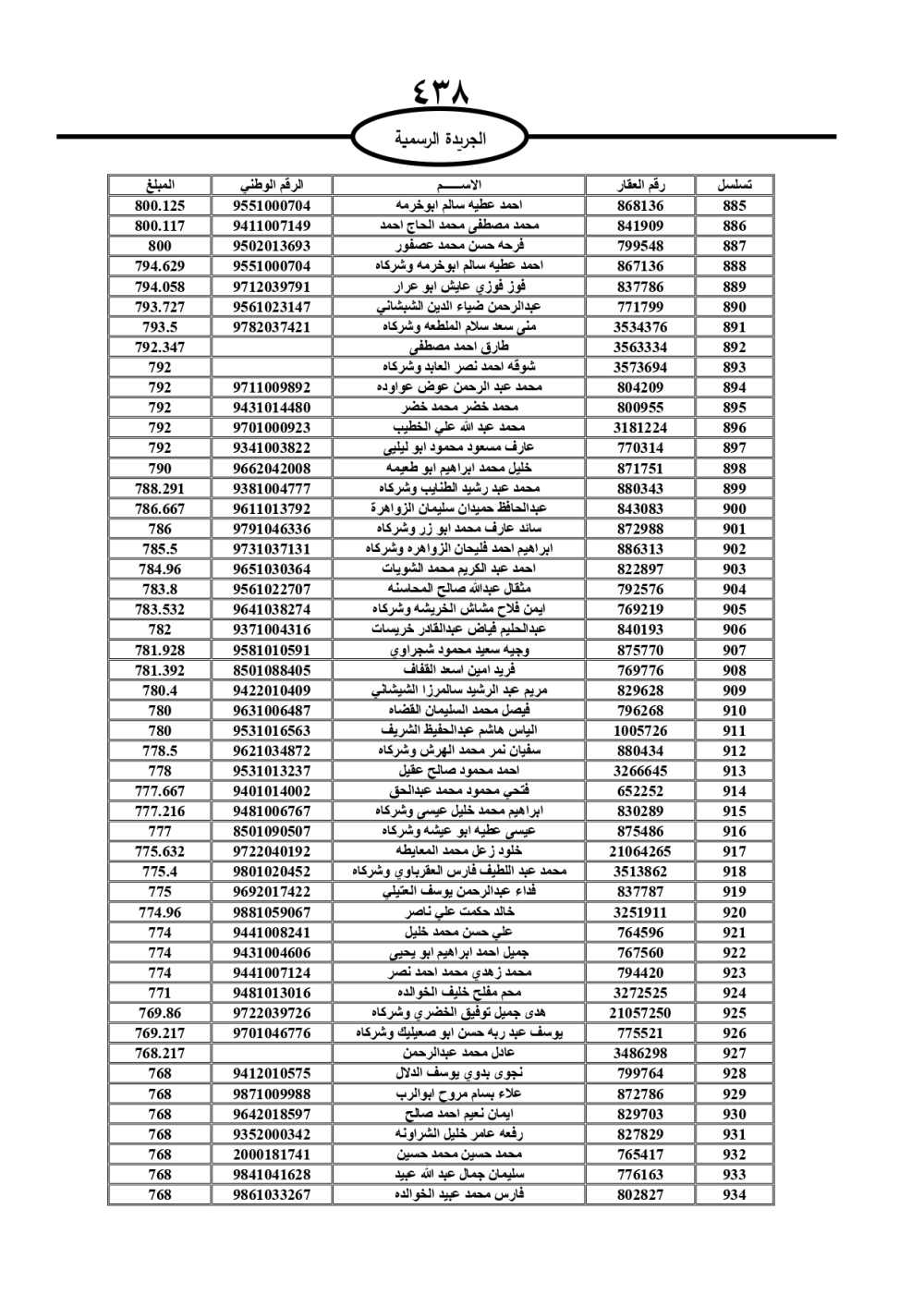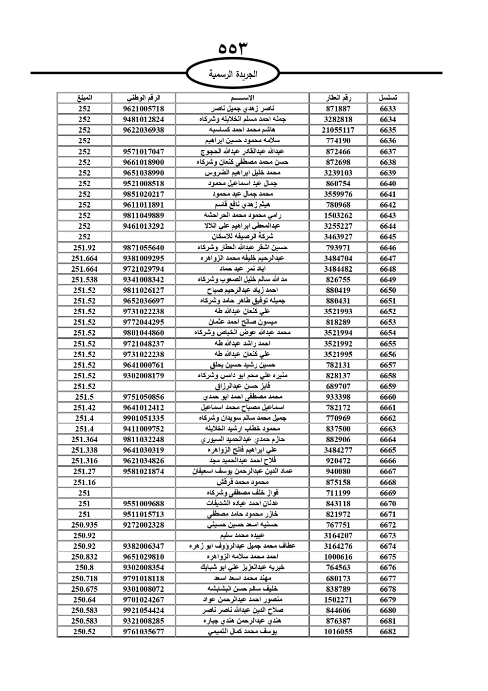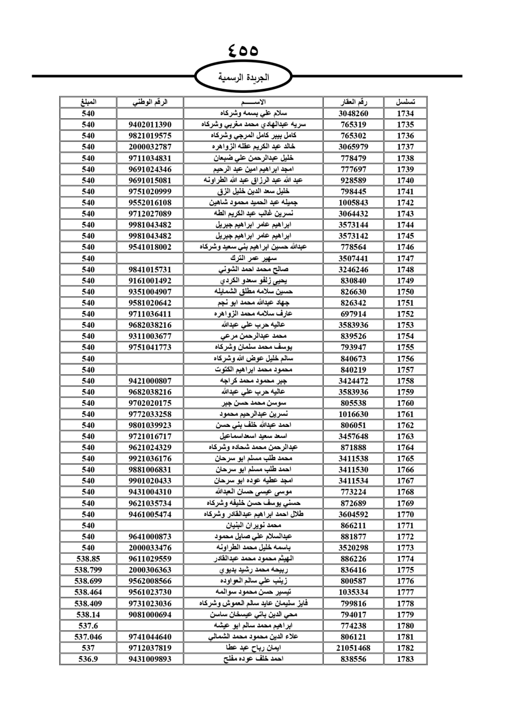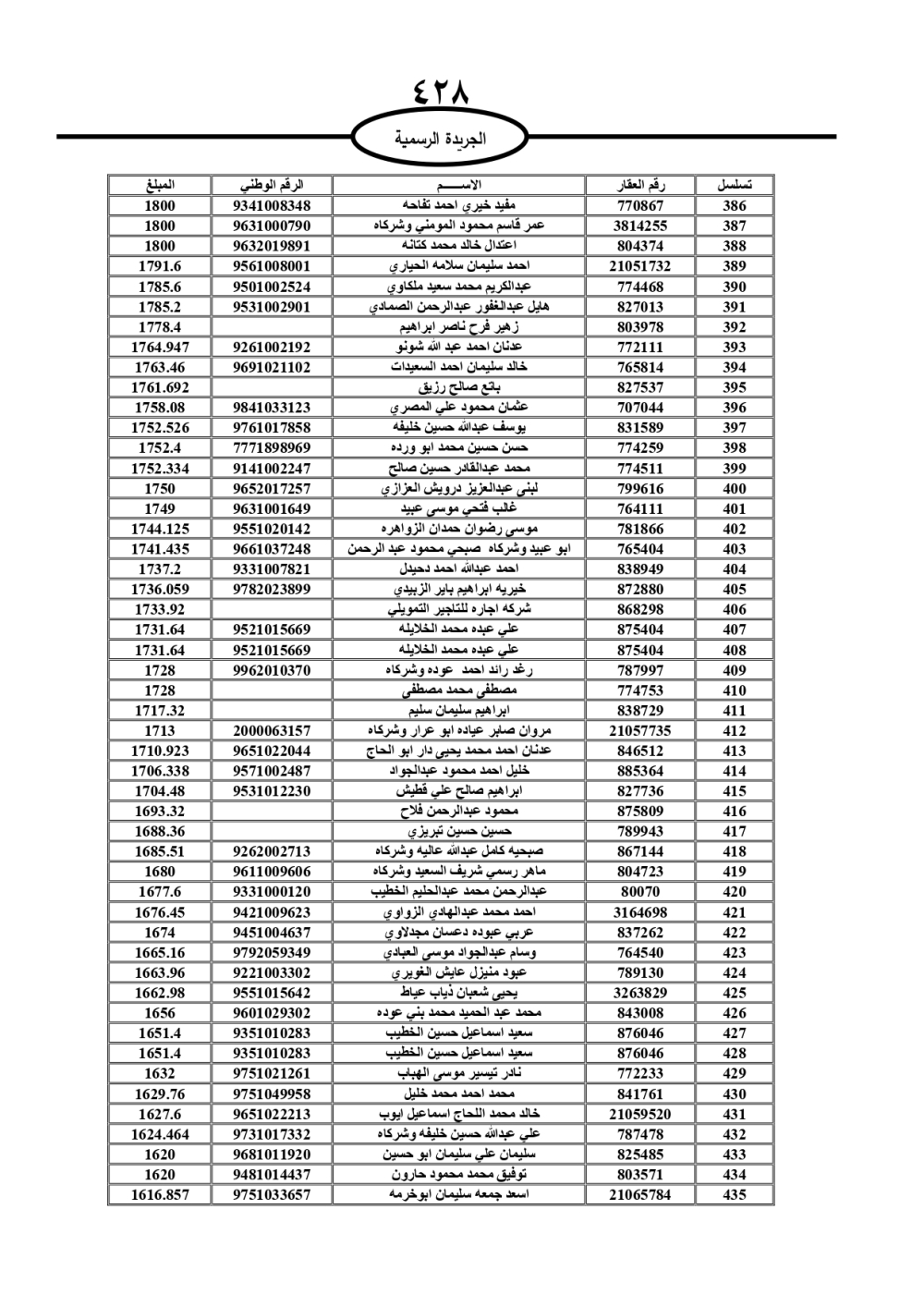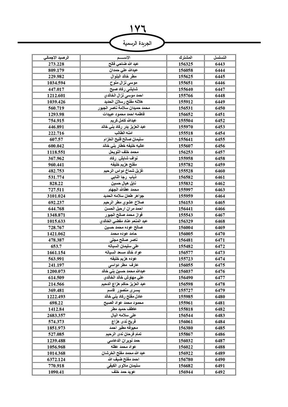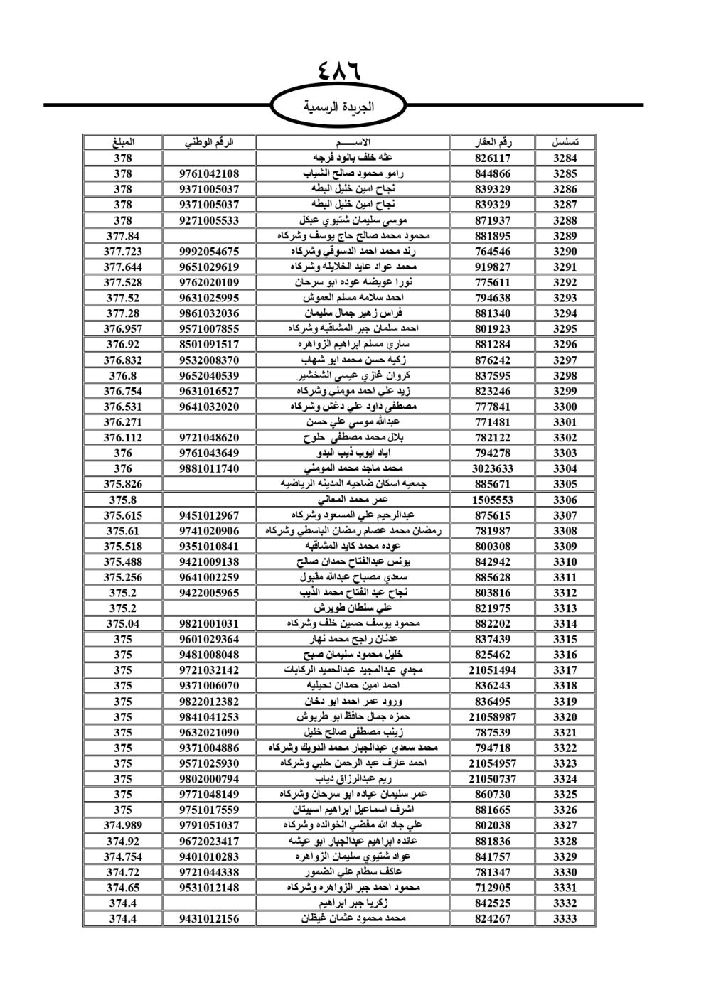 دعت سلطة المياه وبلدية الزرقاء، عشرات آلاف الأردنيين الواردة أسماؤهم بالكشوفات المرفقة، إلى ضرورة مراجعتها لتسوية أوضاعهم المالية كونه ترتب عليهم ذمم مالية، وذلك لتجنب الحجز على الأموال المنقولة وغير المنقولة بعد انقضاء 60 يوما من تاريخ النشر، علما أنه تم نشر هذه الأسماء في الجريدة الرسمية بتاريخ 16/2/2025.