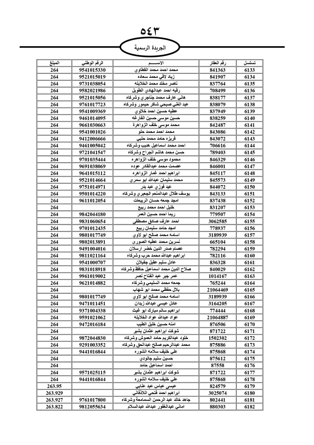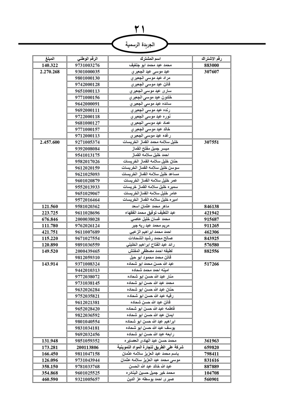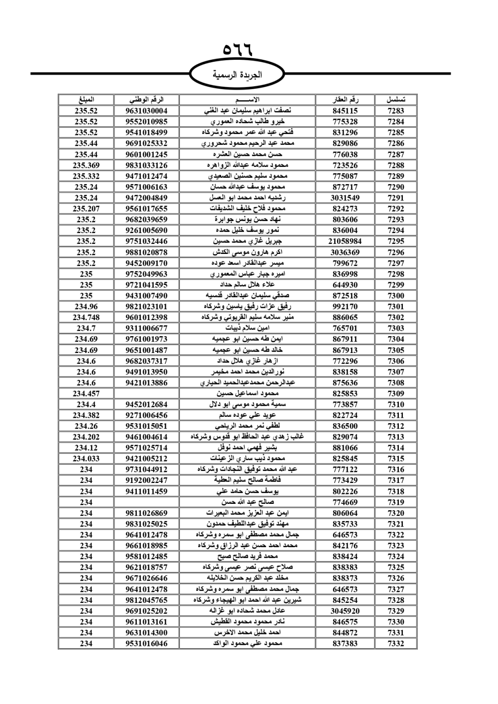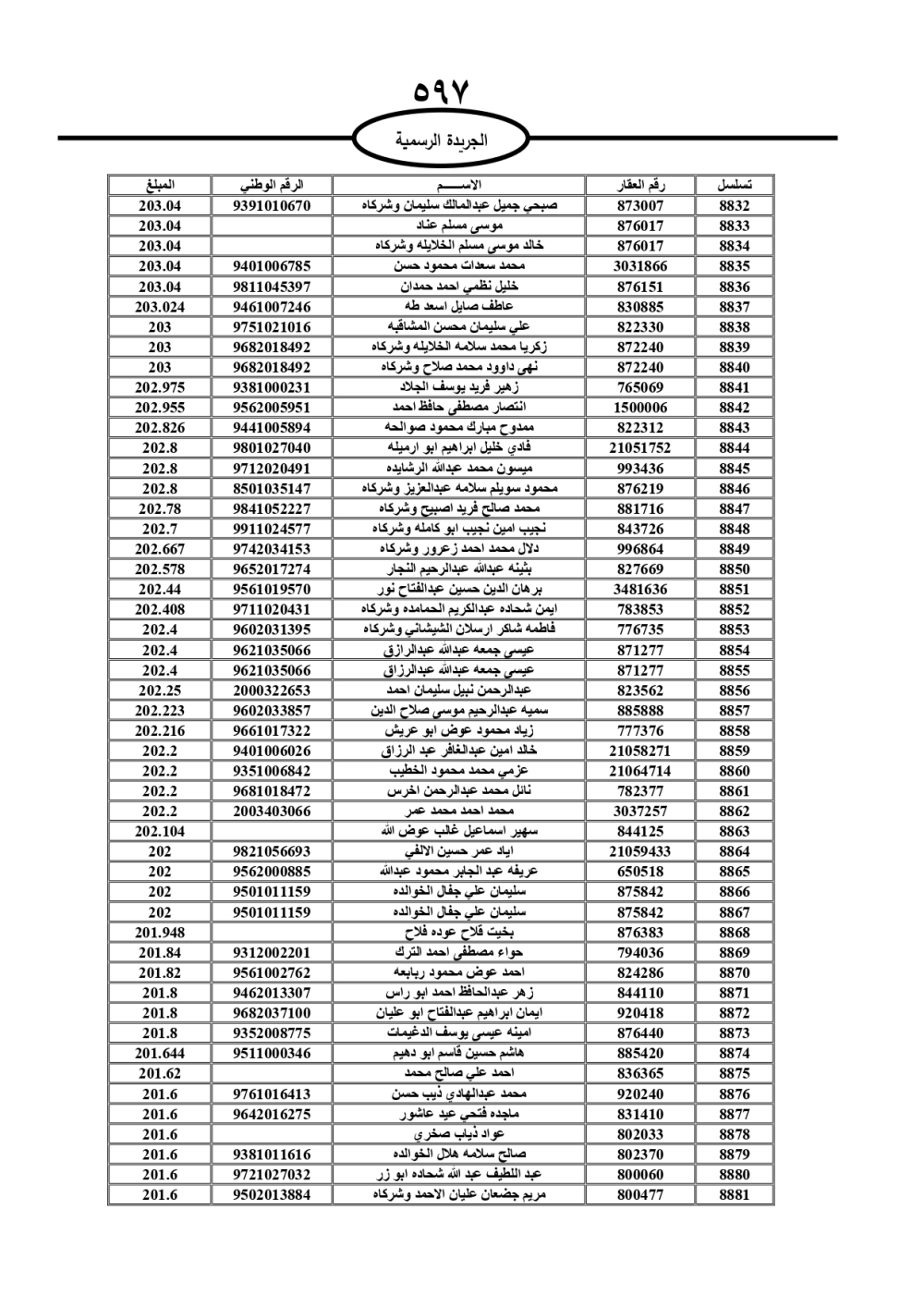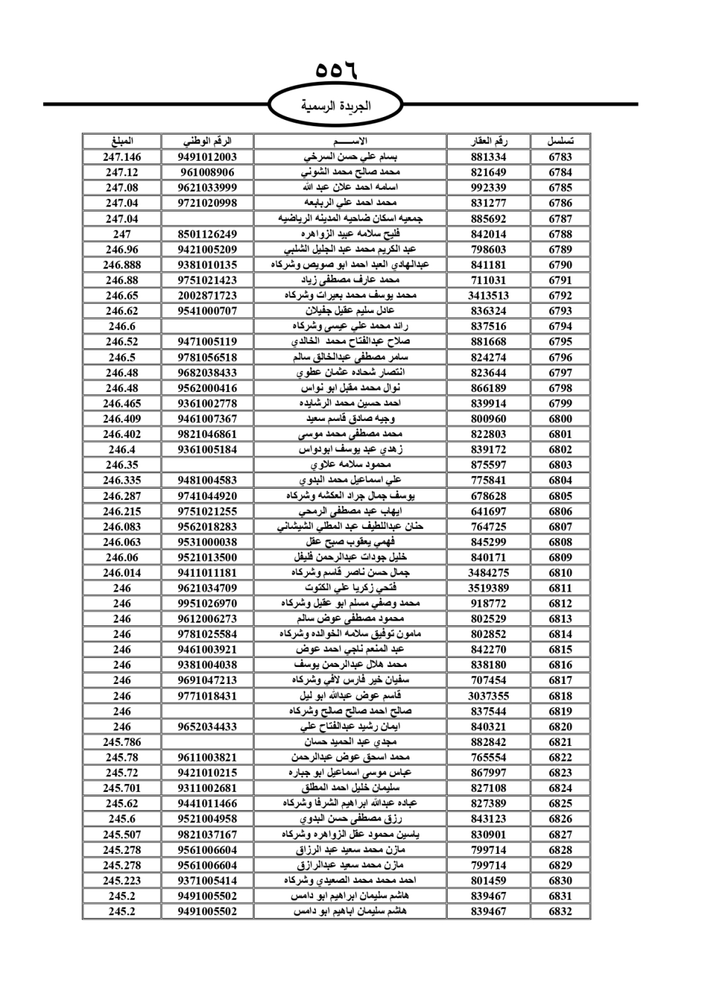 دعت سلطة المياه وبلدية الزرقاء، عشرات آلاف الأردنيين الواردة أسماؤهم بالكشوفات المرفقة، إلى ضرورة مراجعتها لتسوية أوضاعهم المالية كونه ترتب عليهم ذمم مالية، وذلك لتجنب الحجز على الأموال المنقولة وغير المنقولة بعد انقضاء 60 يوما من تاريخ النشر، علما أنه تم نشر هذه الأسماء في الجريدة الرسمية بتاريخ 16/2/2025.