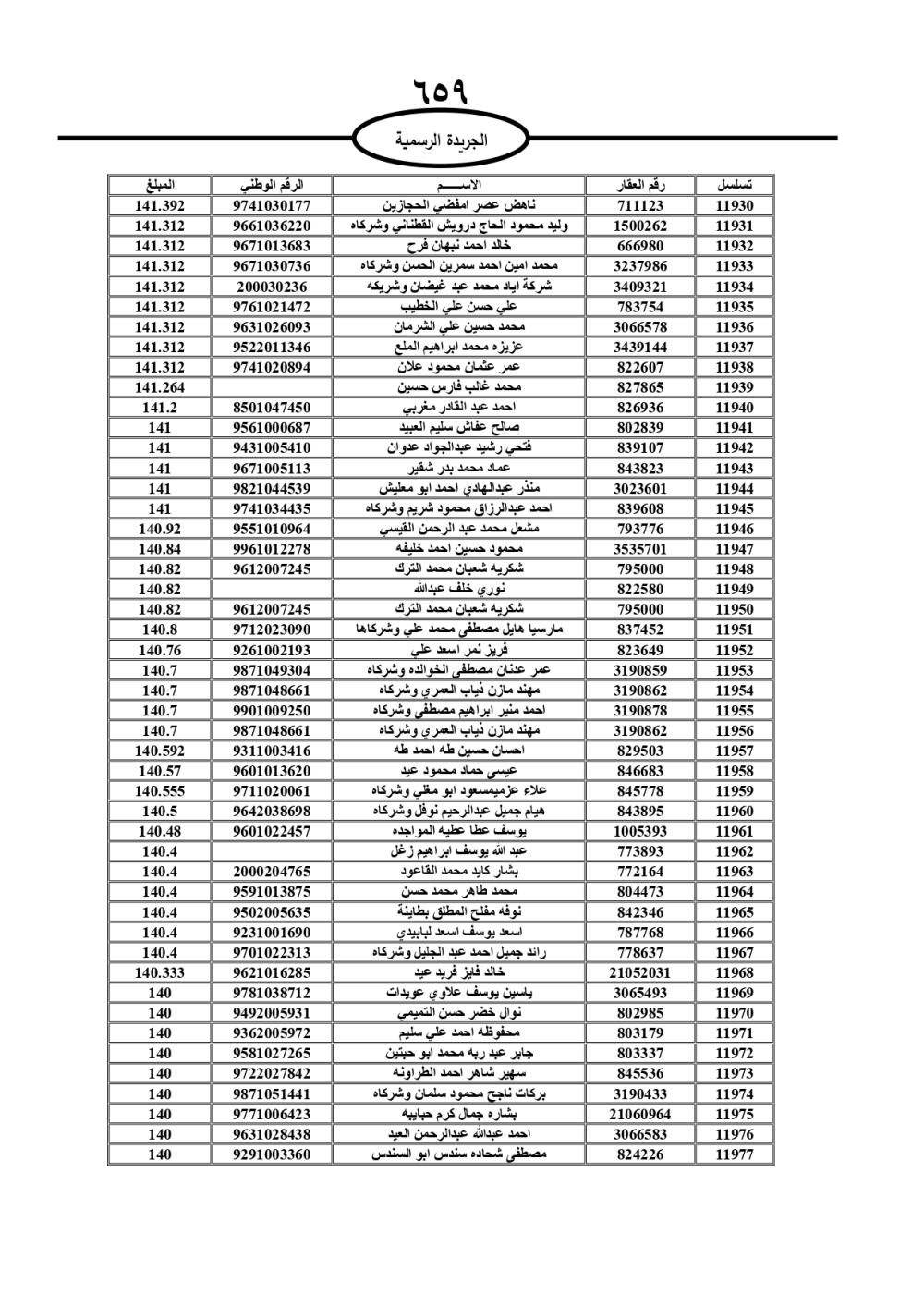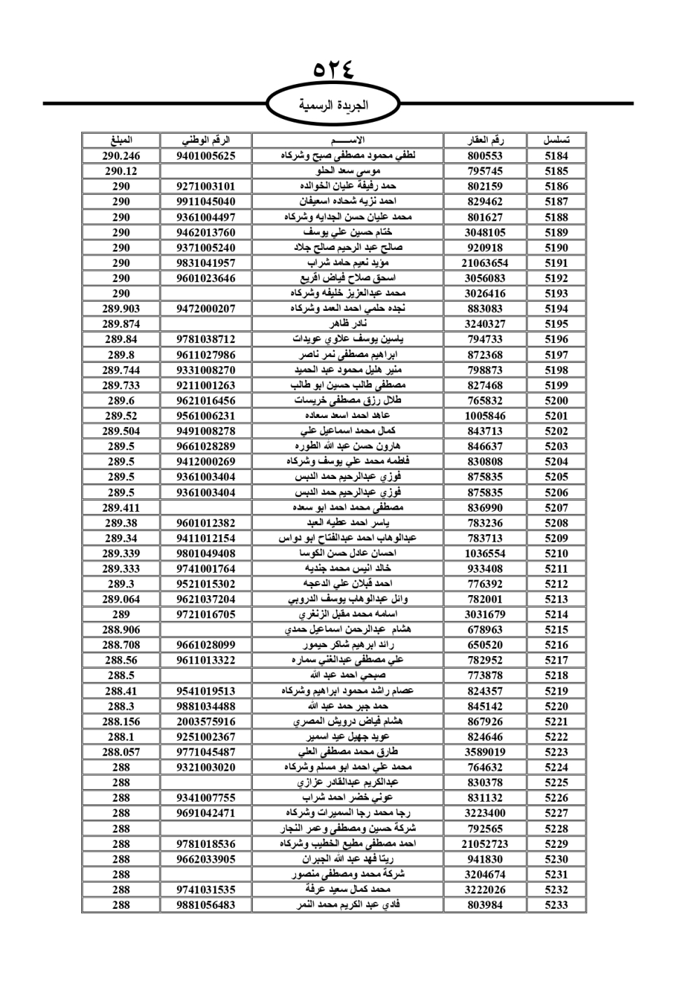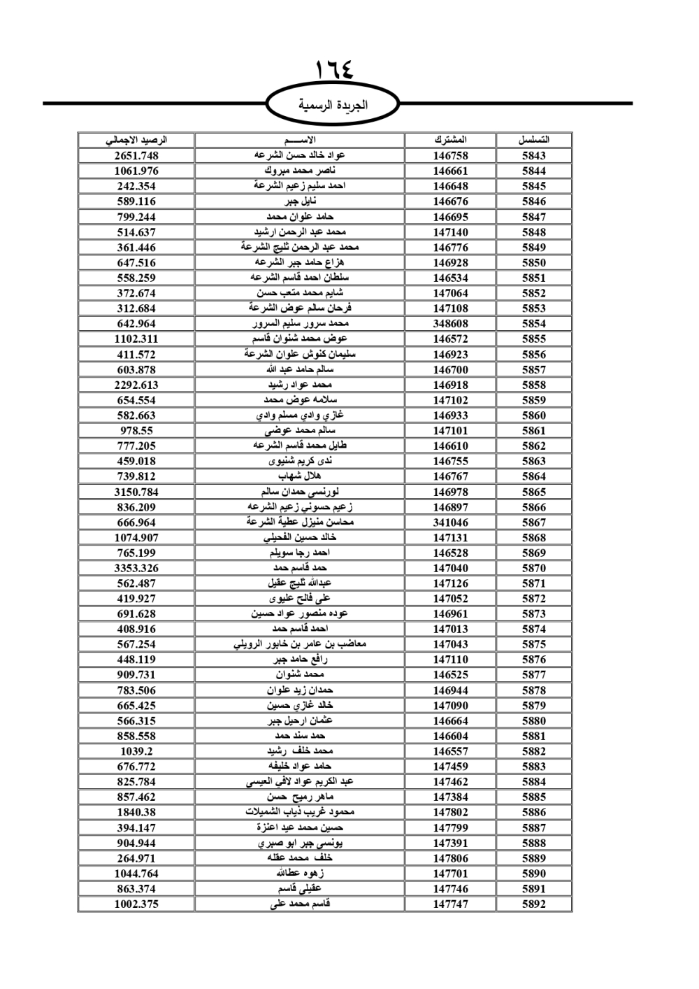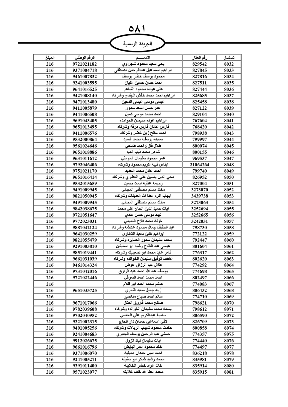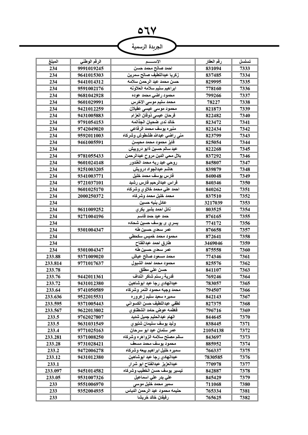 دعت سلطة المياه وبلدية الزرقاء، عشرات آلاف الأردنيين الواردة أسماؤهم بالكشوفات المرفقة، إلى ضرورة مراجعتها لتسوية أوضاعهم المالية كونه ترتب عليهم ذمم مالية، وذلك لتجنب الحجز على الأموال المنقولة وغير المنقولة بعد انقضاء 60 يوما من تاريخ النشر، علما أنه تم نشر هذه الأسماء في الجريدة الرسمية بتاريخ 16/2/2025.