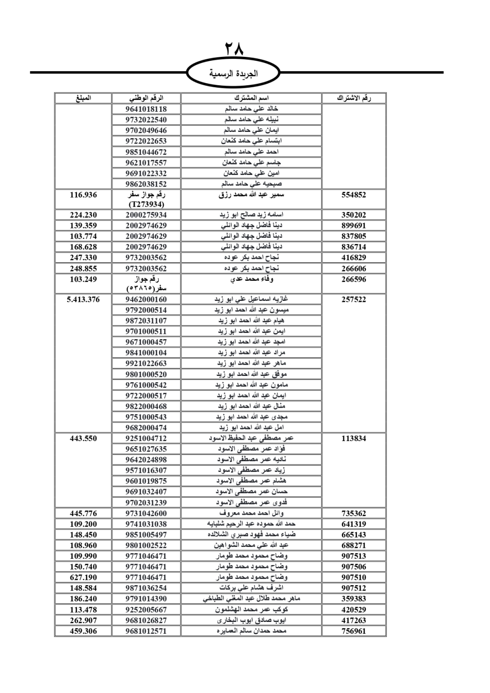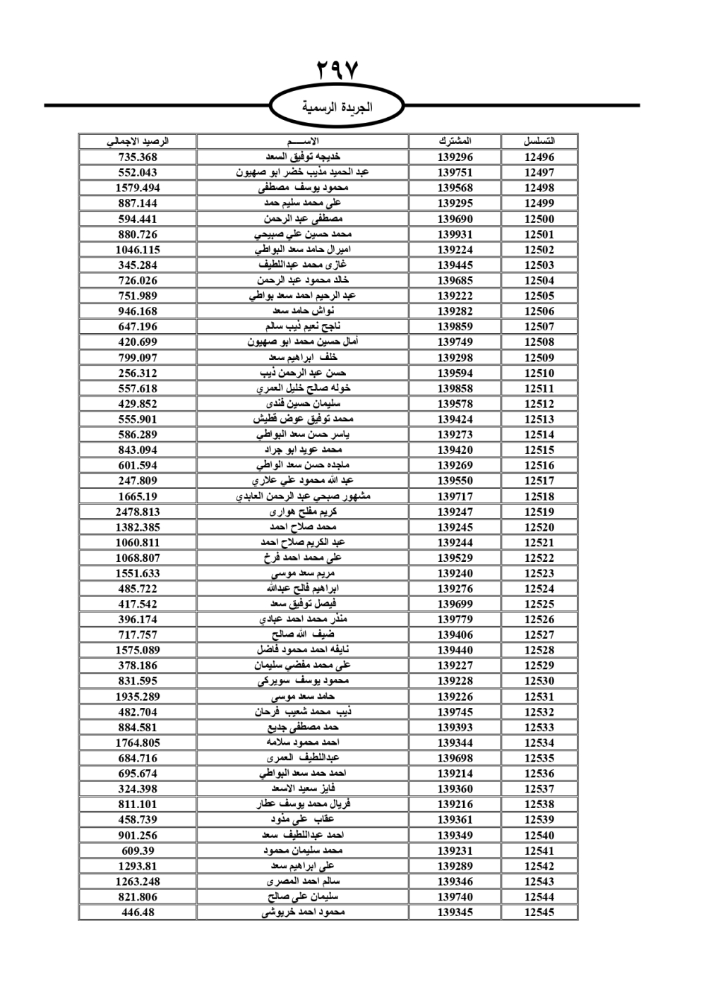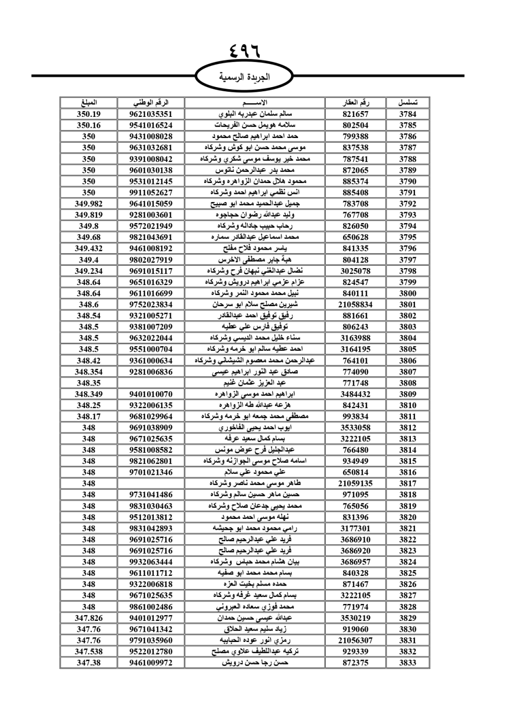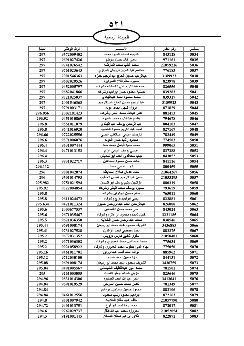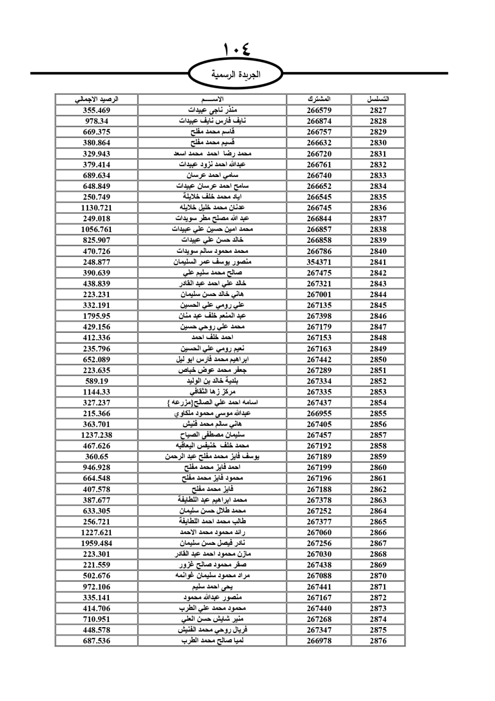 دعت سلطة المياه وبلدية الزرقاء، عشرات آلاف الأردنيين الواردة أسماؤهم بالكشوفات المرفقة، إلى ضرورة مراجعتها لتسوية أوضاعهم المالية كونه ترتب عليهم ذمم مالية، وذلك لتجنب الحجز على الأموال المنقولة وغير المنقولة بعد انقضاء 60 يوما من تاريخ النشر، علما أنه تم نشر هذه الأسماء في الجريدة الرسمية بتاريخ 16/2/2025.