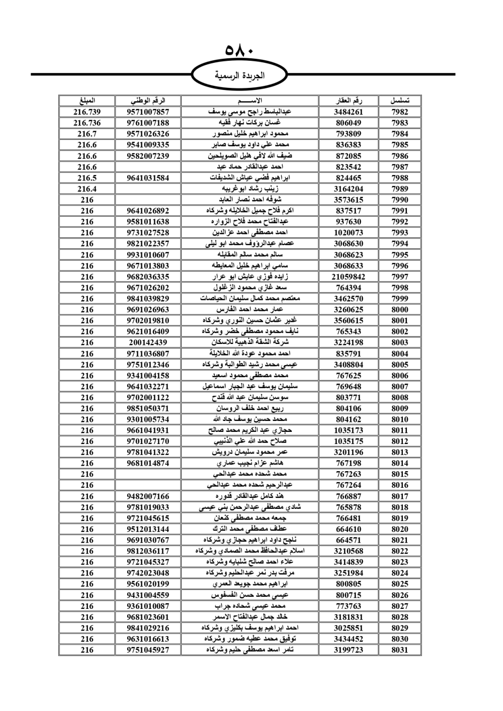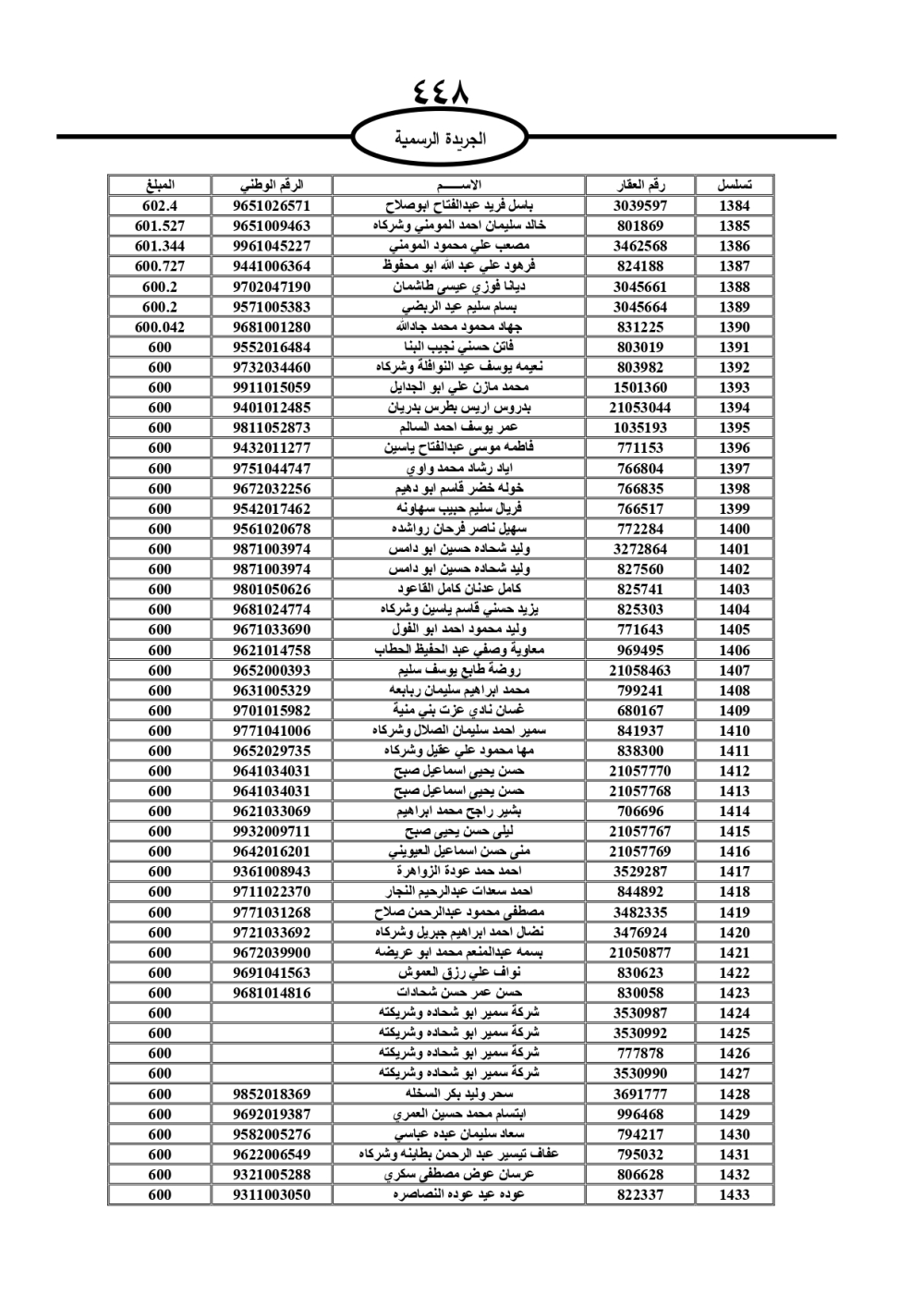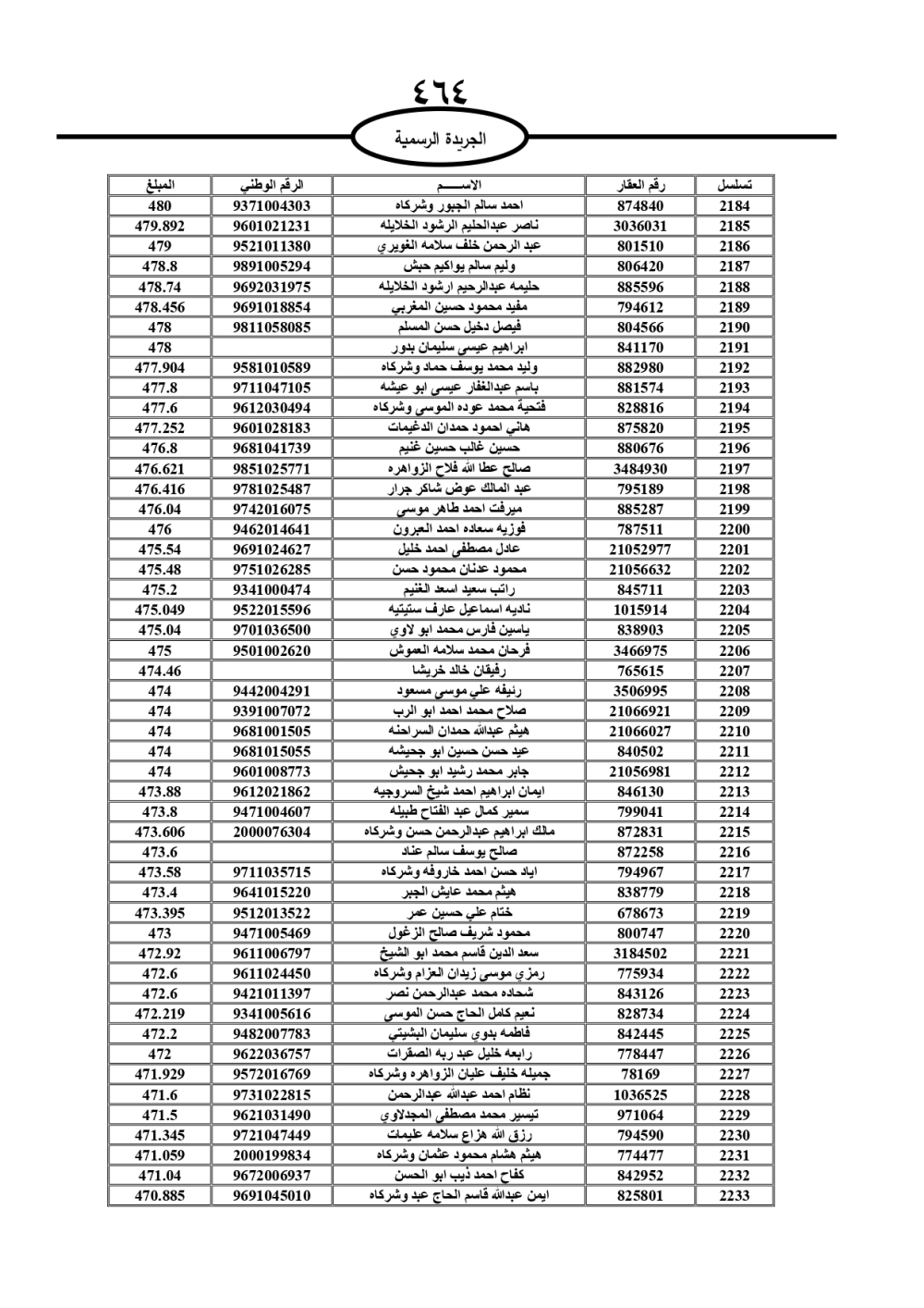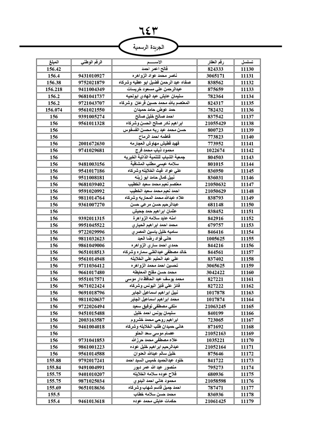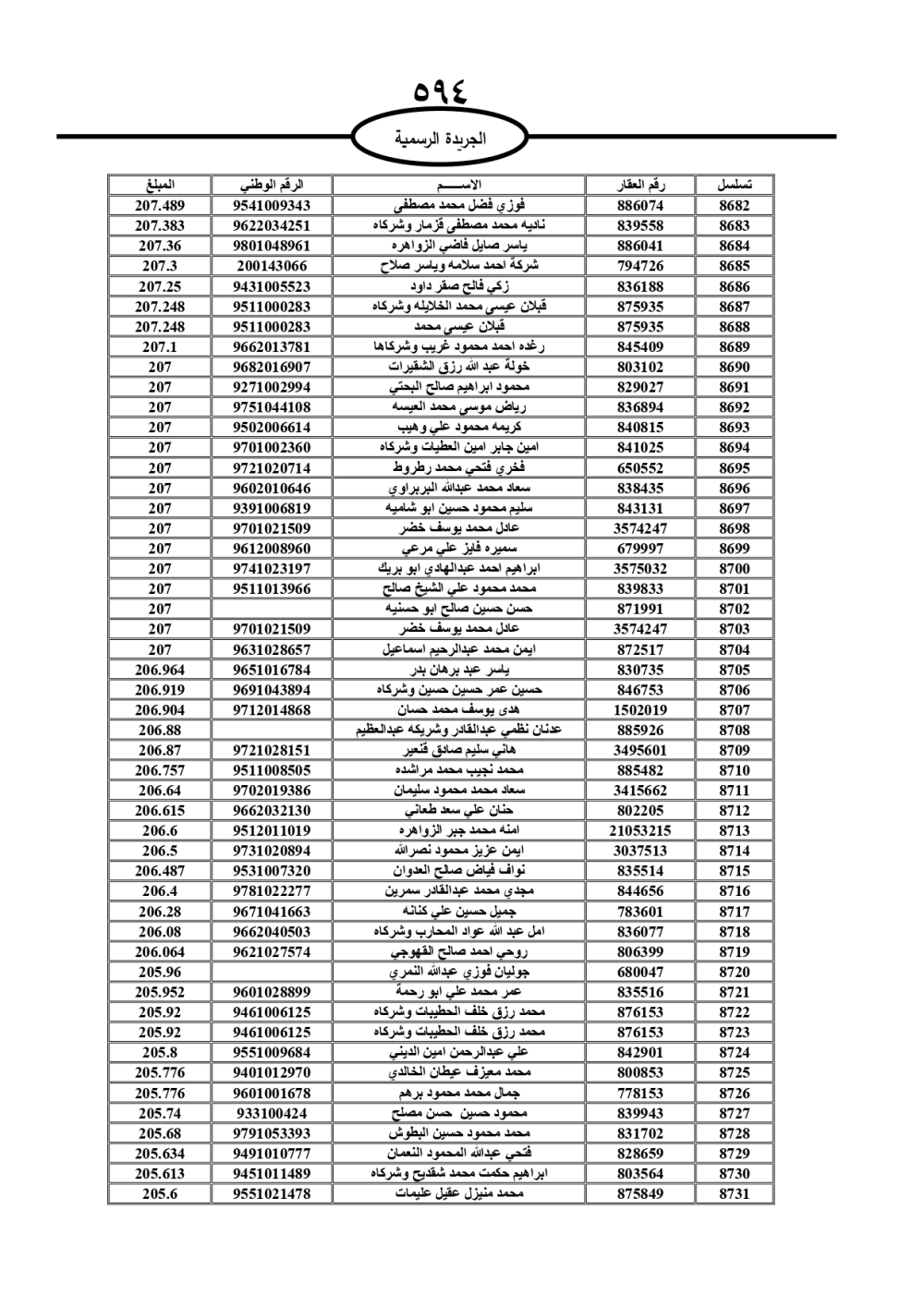 دعت سلطة المياه وبلدية الزرقاء، عشرات آلاف الأردنيين الواردة أسماؤهم بالكشوفات المرفقة، إلى ضرورة مراجعتها لتسوية أوضاعهم المالية كونه ترتب عليهم ذمم مالية، وذلك لتجنب الحجز على الأموال المنقولة وغير المنقولة بعد انقضاء 60 يوما من تاريخ النشر، علما أنه تم نشر هذه الأسماء في الجريدة الرسمية بتاريخ 16/2/2025.