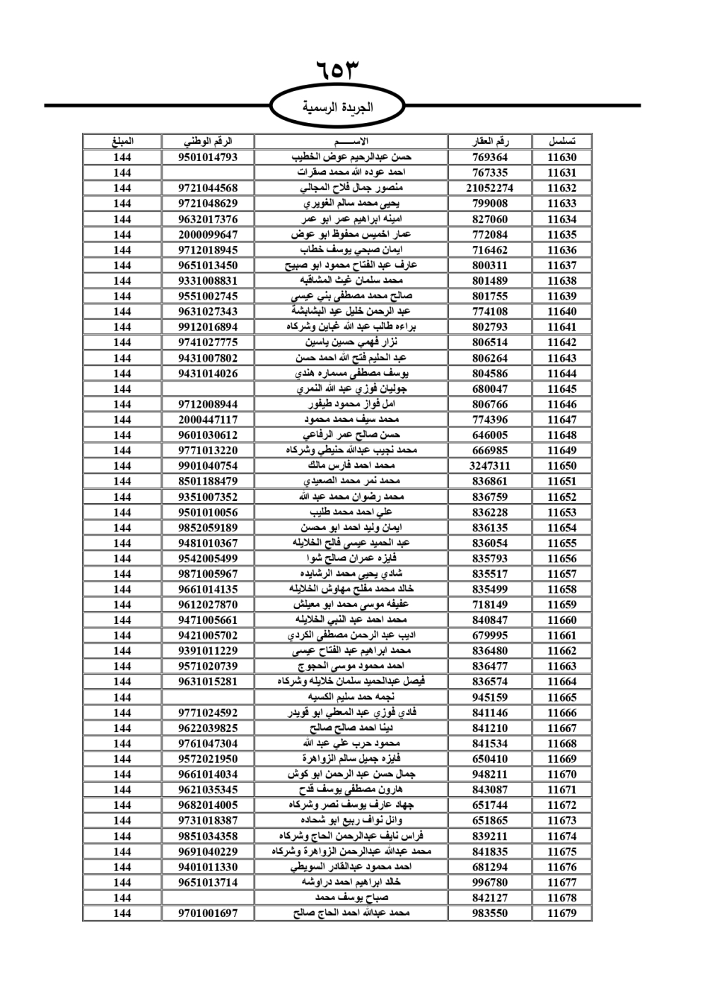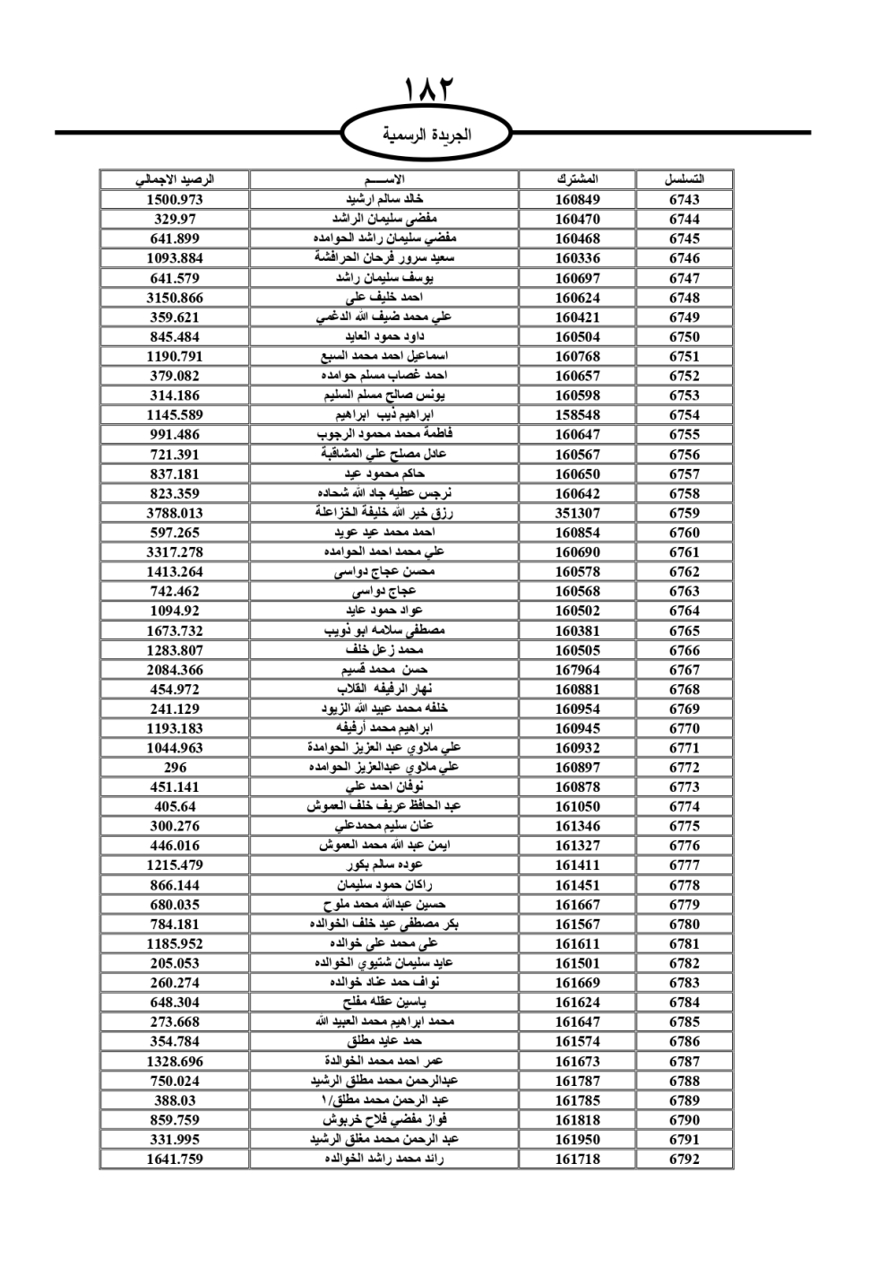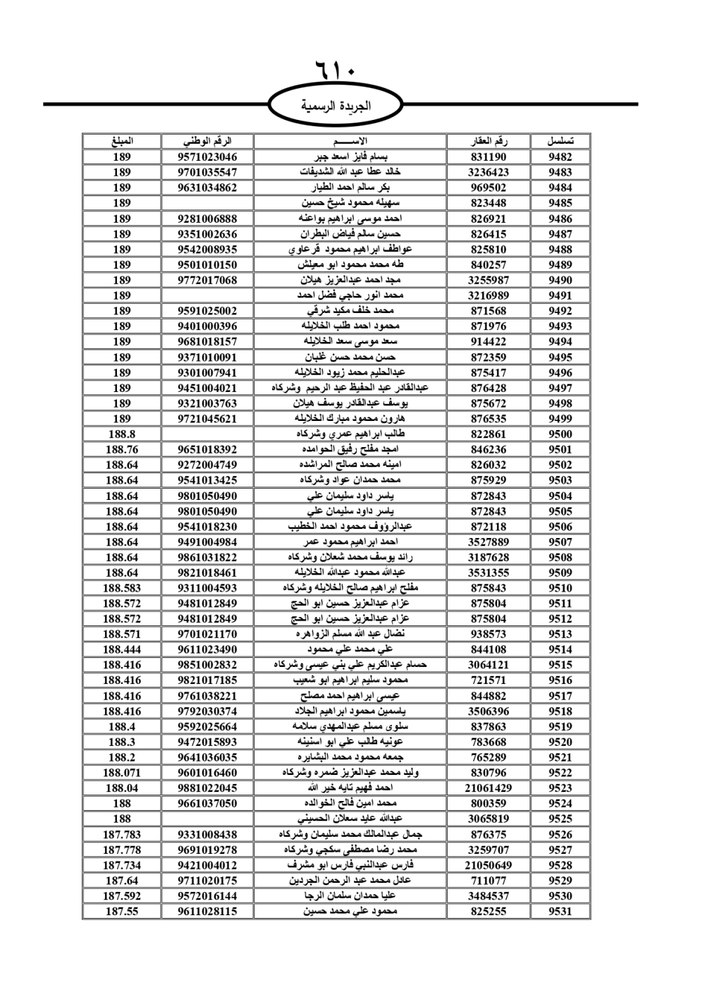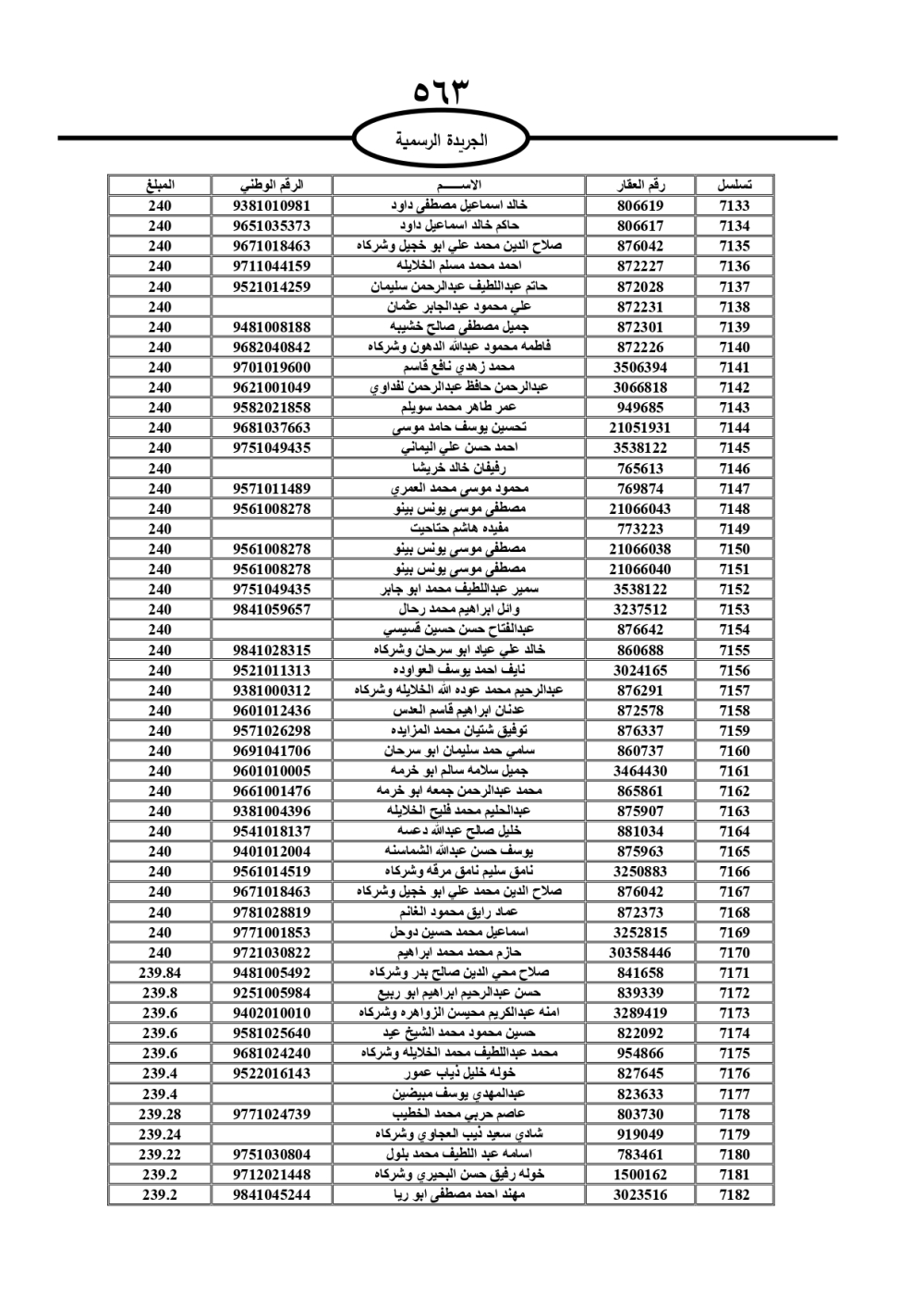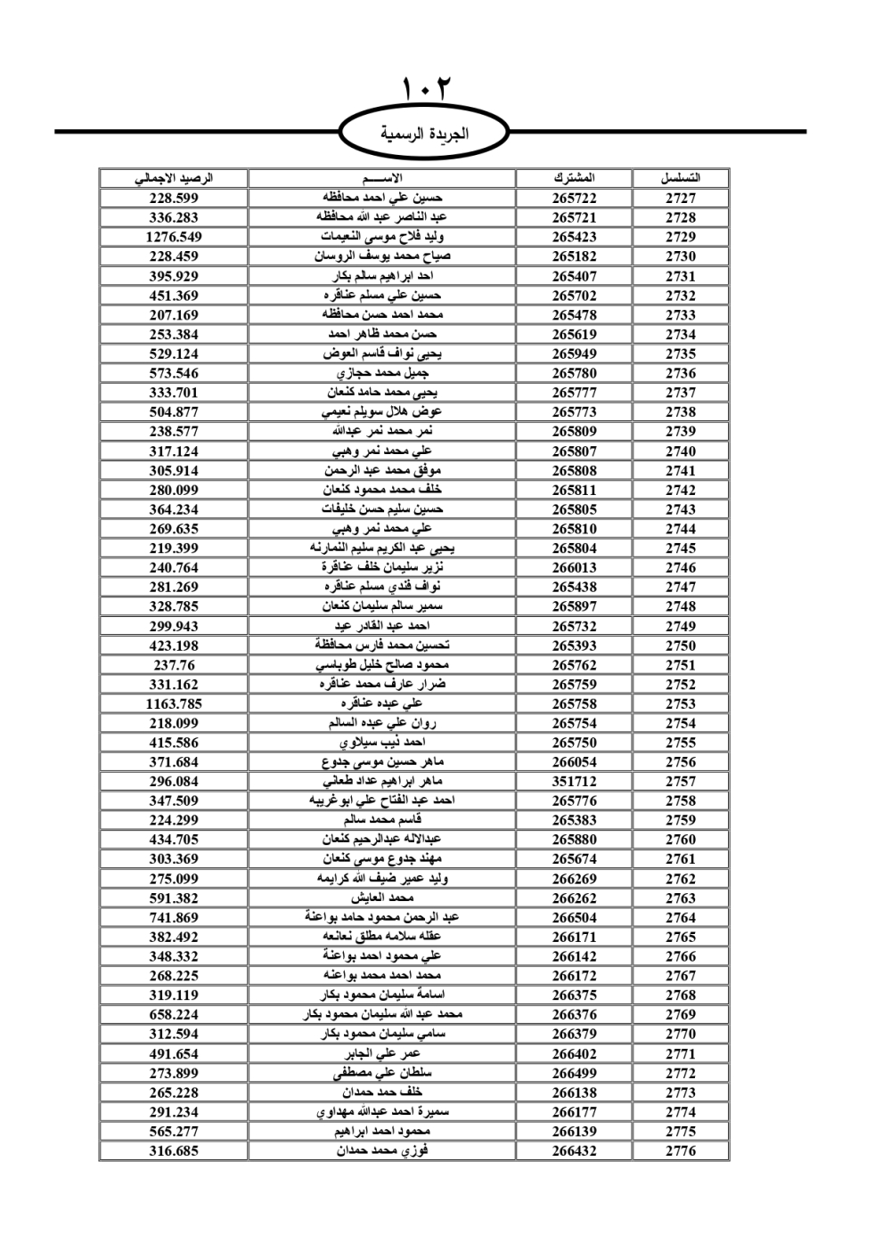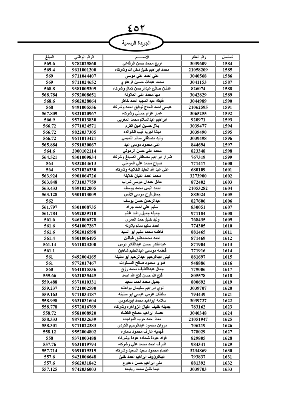 دعت سلطة المياه وبلدية الزرقاء، عشرات آلاف الأردنيين الواردة أسماؤهم بالكشوفات المرفقة، إلى ضرورة مراجعتها لتسوية أوضاعهم المالية كونه ترتب عليهم ذمم مالية، وذلك لتجنب الحجز على الأموال المنقولة وغير المنقولة بعد انقضاء 60 يوما من تاريخ النشر، علما أنه تم نشر هذه الأسماء في الجريدة الرسمية بتاريخ 16/2/2025.