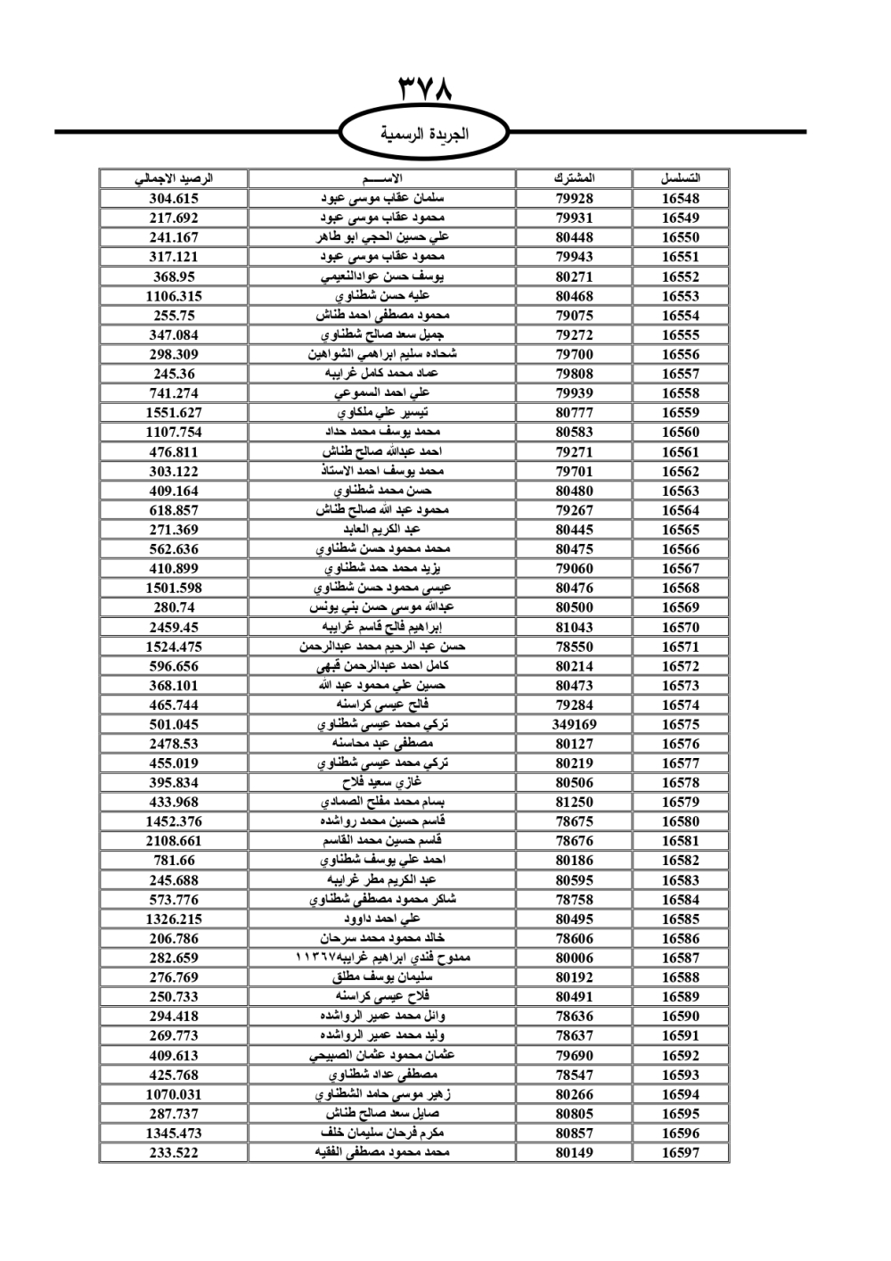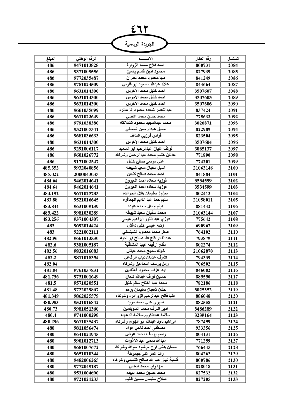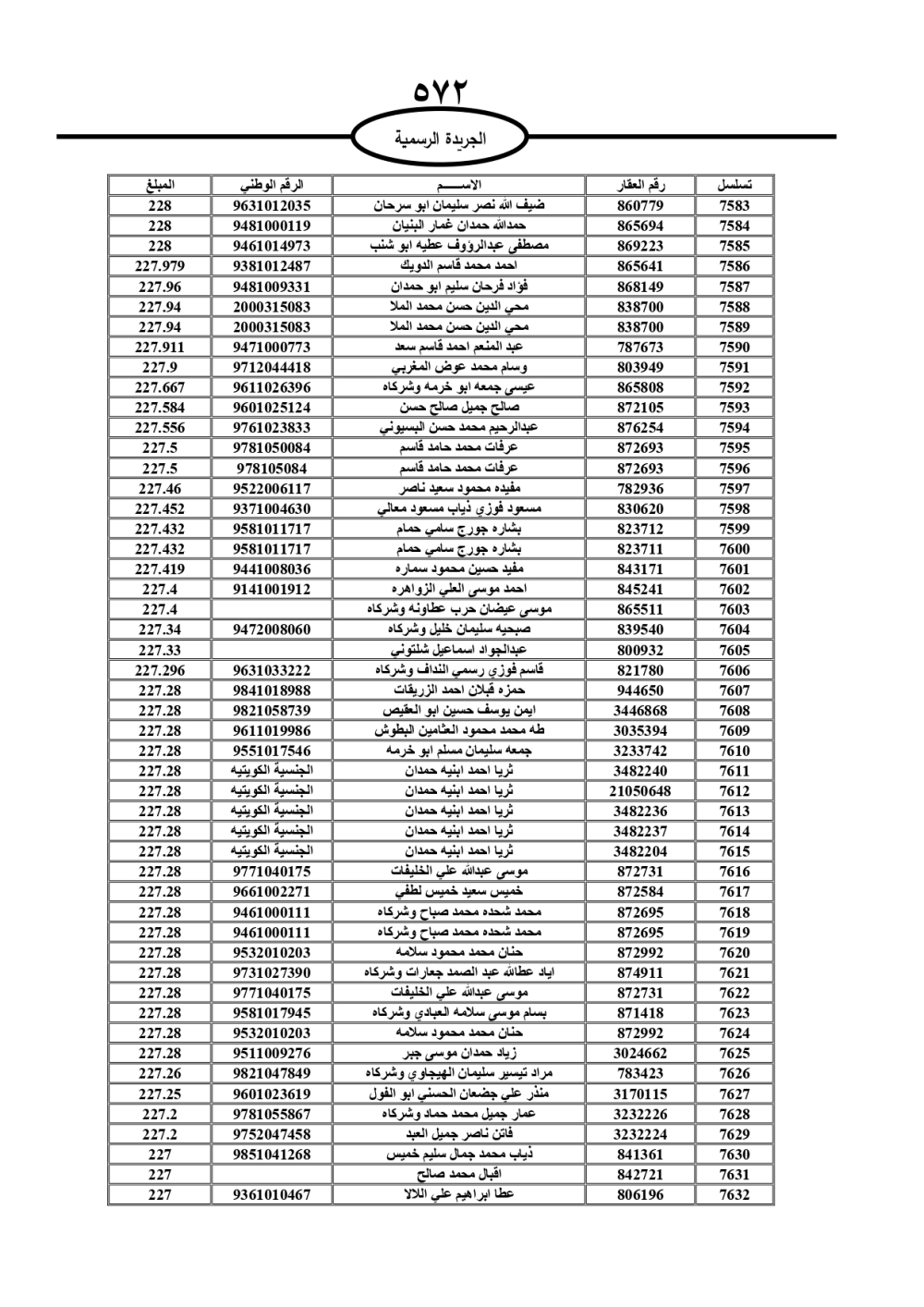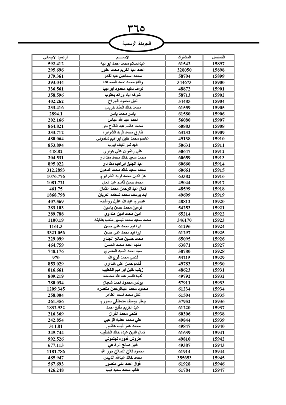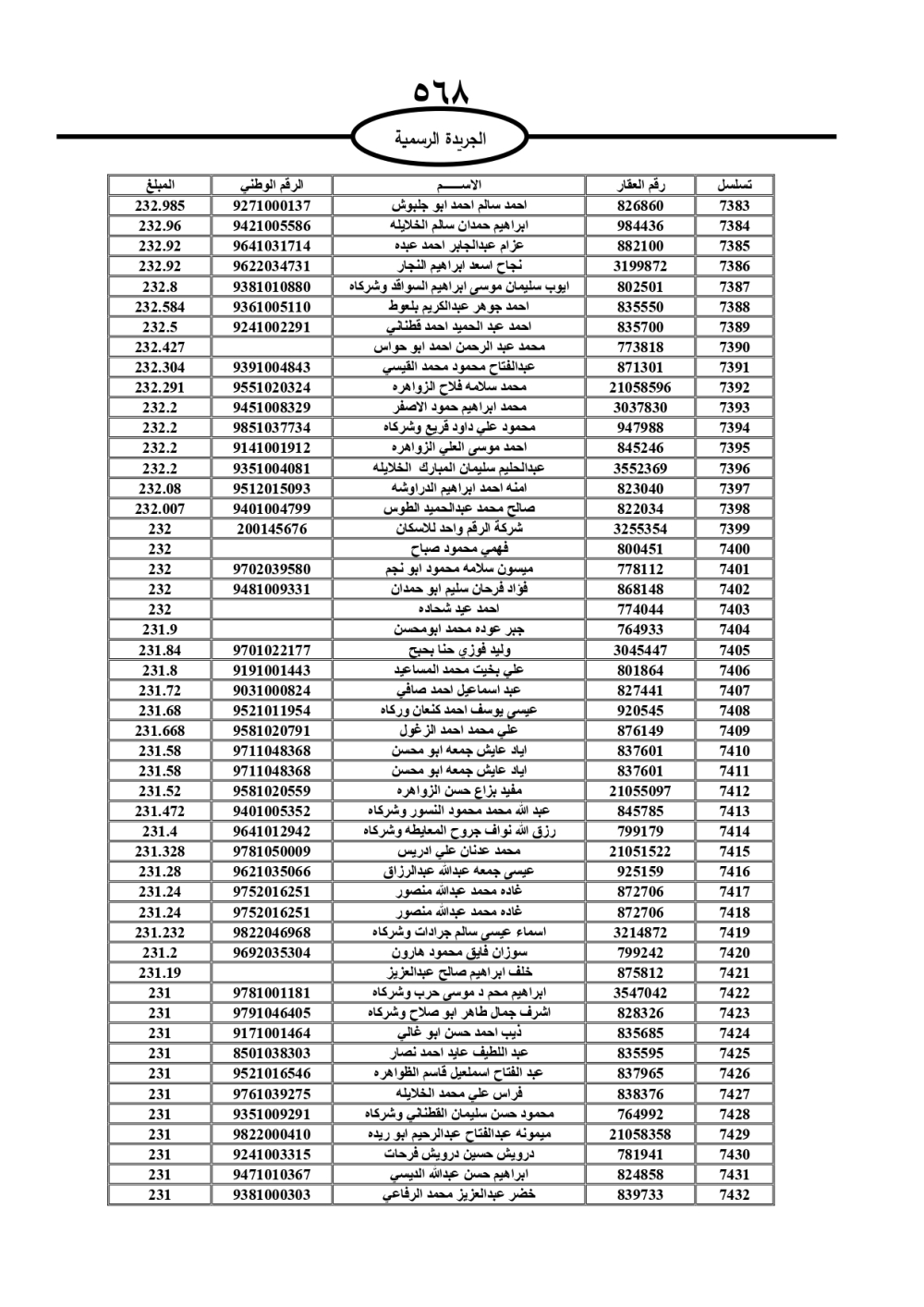 دعت سلطة المياه وبلدية الزرقاء، عشرات آلاف الأردنيين الواردة أسماؤهم بالكشوفات المرفقة، إلى ضرورة مراجعتها لتسوية أوضاعهم المالية كونه ترتب عليهم ذمم مالية، وذلك لتجنب الحجز على الأموال المنقولة وغير المنقولة بعد انقضاء 60 يوما من تاريخ النشر، علما أنه تم نشر هذه الأسماء في الجريدة الرسمية بتاريخ 16/2/2025.