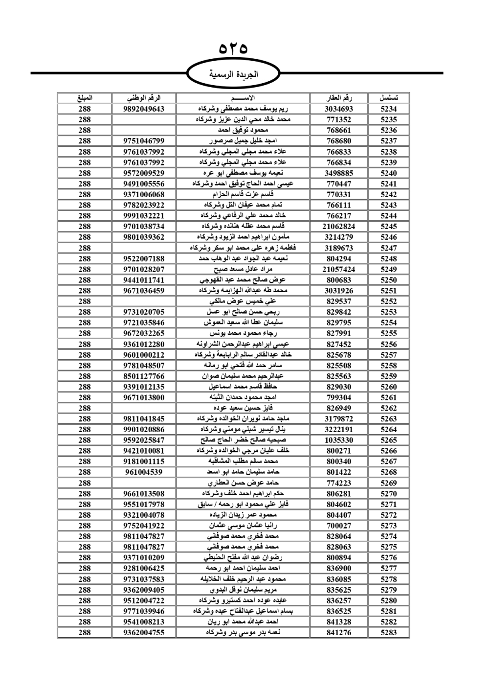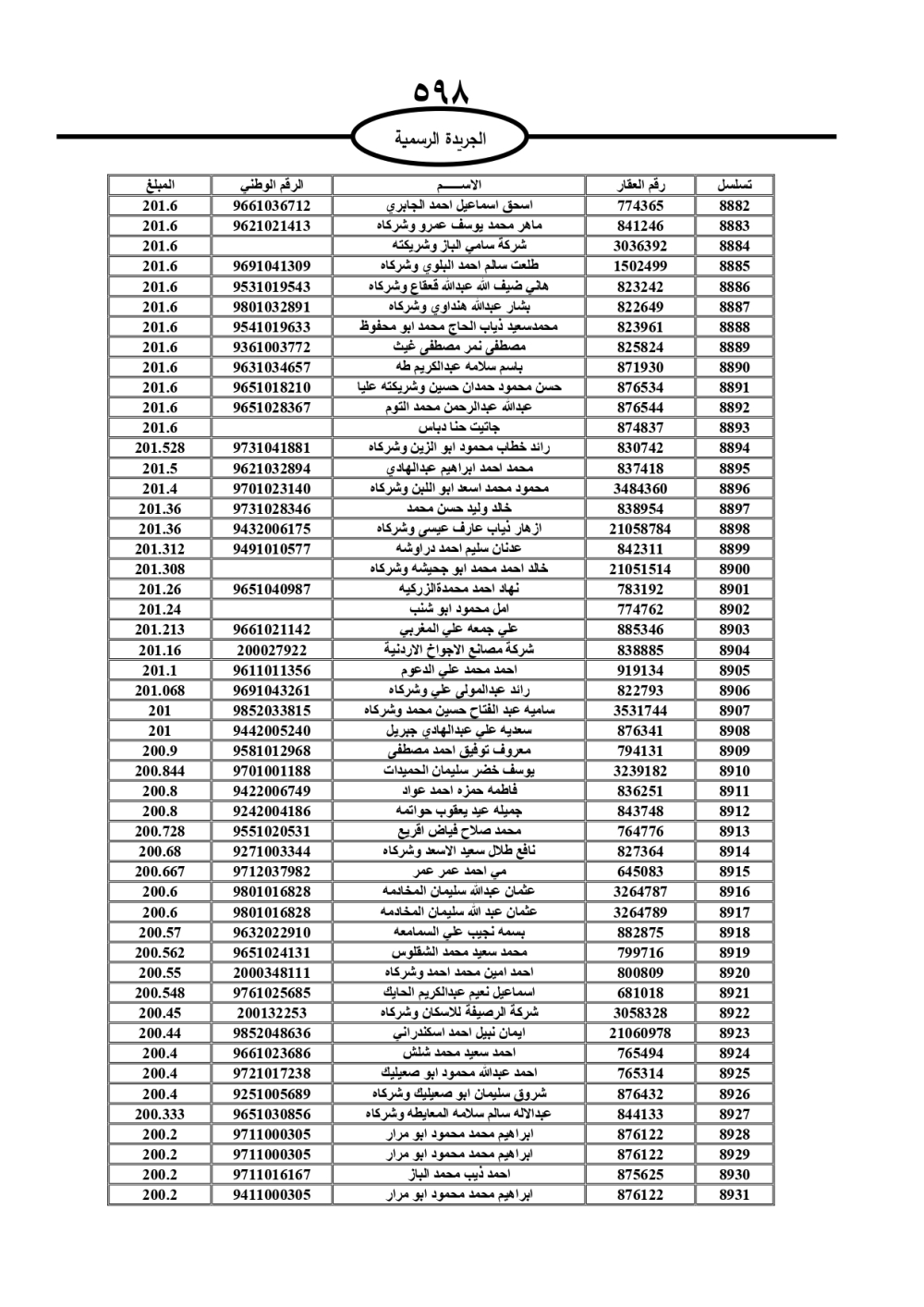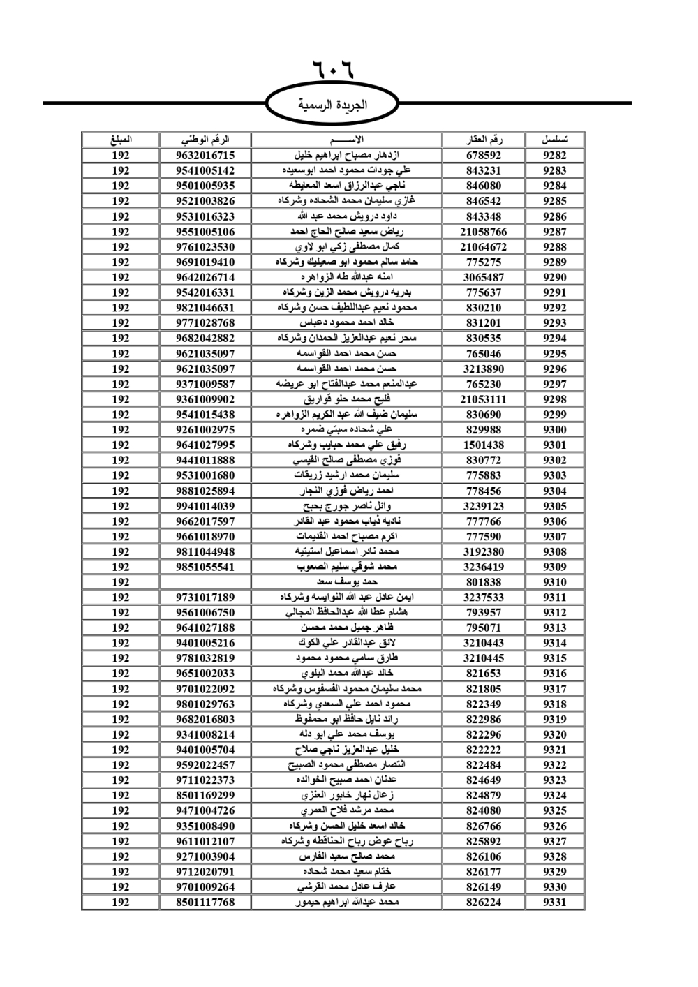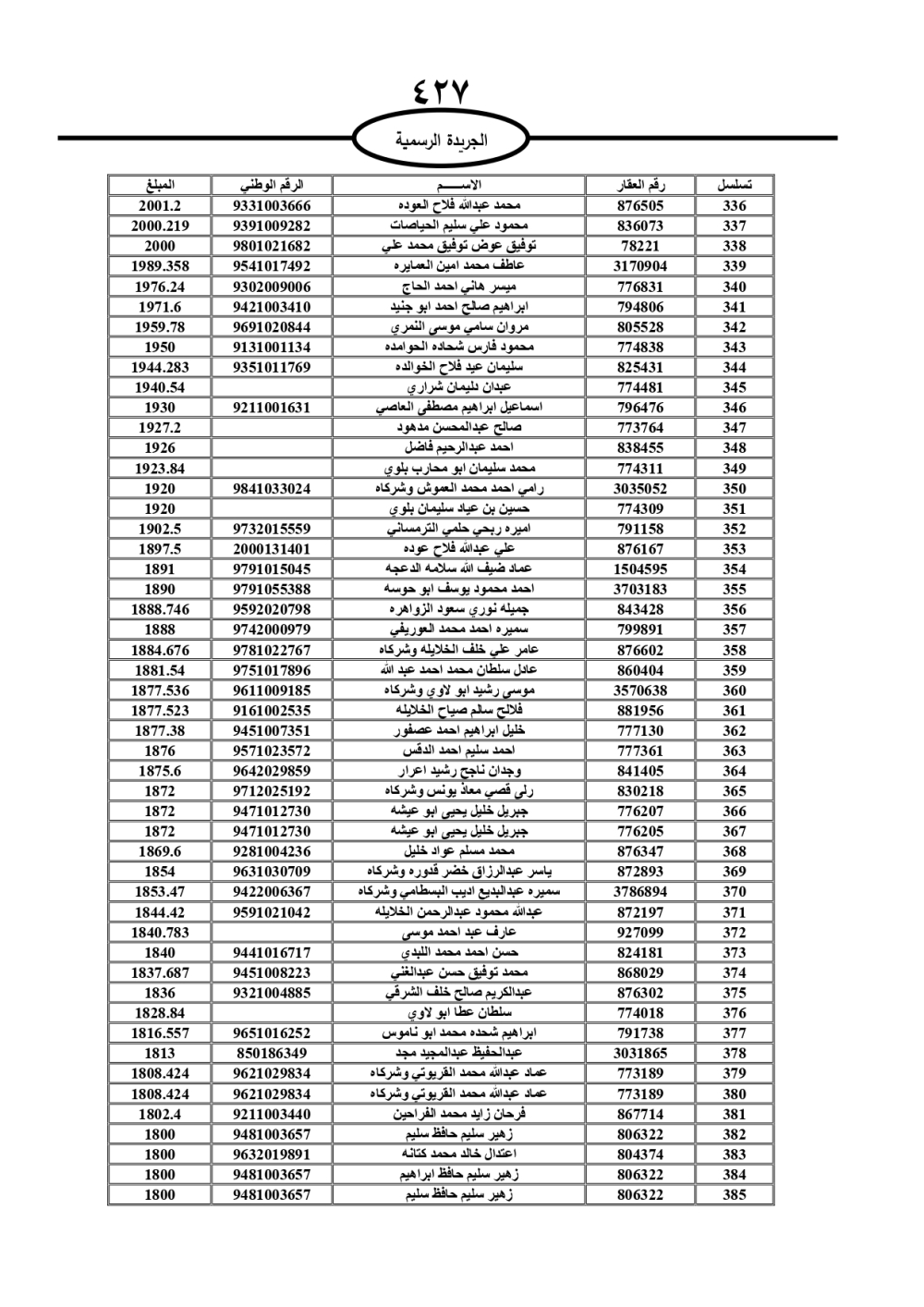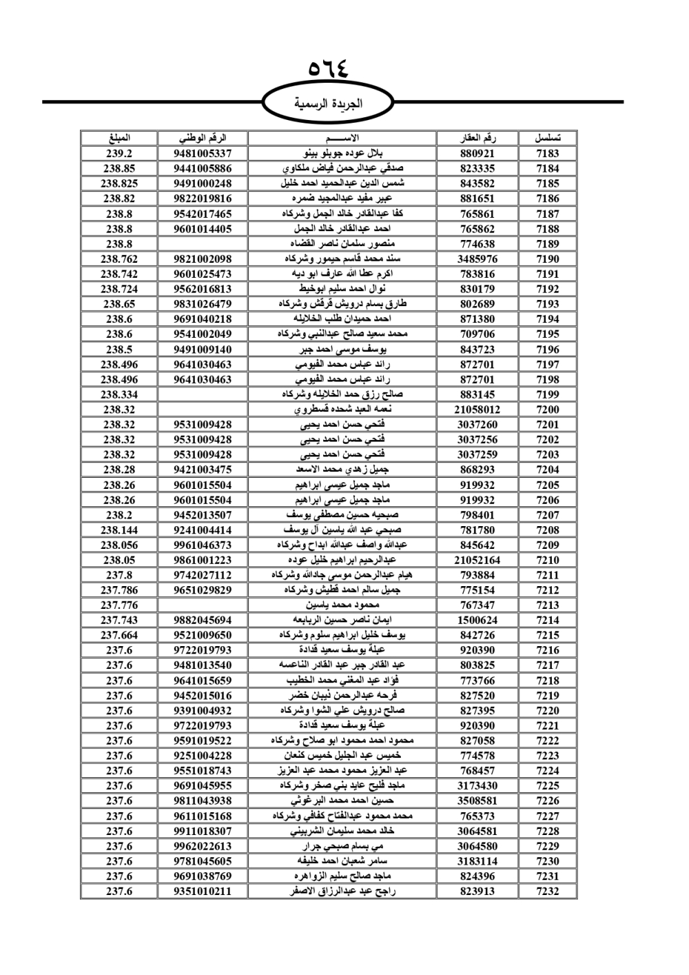 دعت سلطة المياه وبلدية الزرقاء، عشرات آلاف الأردنيين الواردة أسماؤهم بالكشوفات المرفقة، إلى ضرورة مراجعتها لتسوية أوضاعهم المالية كونه ترتب عليهم ذمم مالية، وذلك لتجنب الحجز على الأموال المنقولة وغير المنقولة بعد انقضاء 60 يوما من تاريخ النشر، علما أنه تم نشر هذه الأسماء في الجريدة الرسمية بتاريخ 16/2/2025.