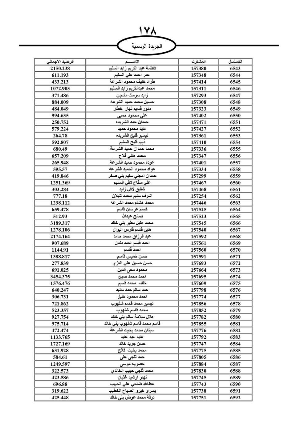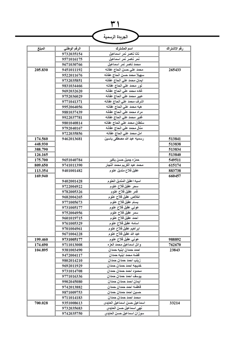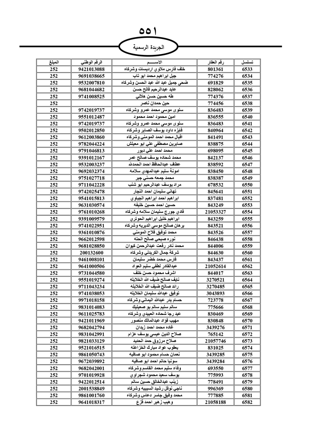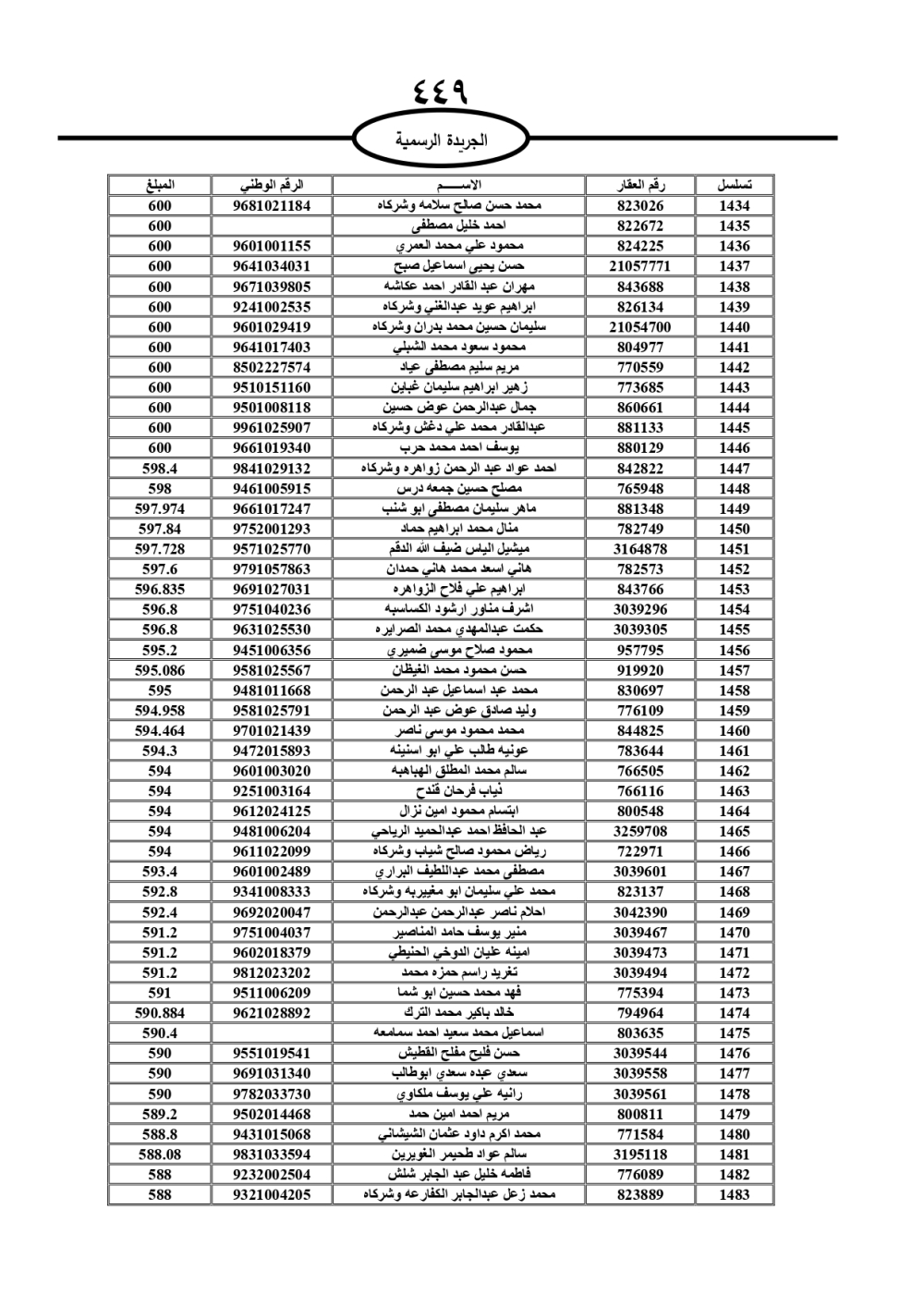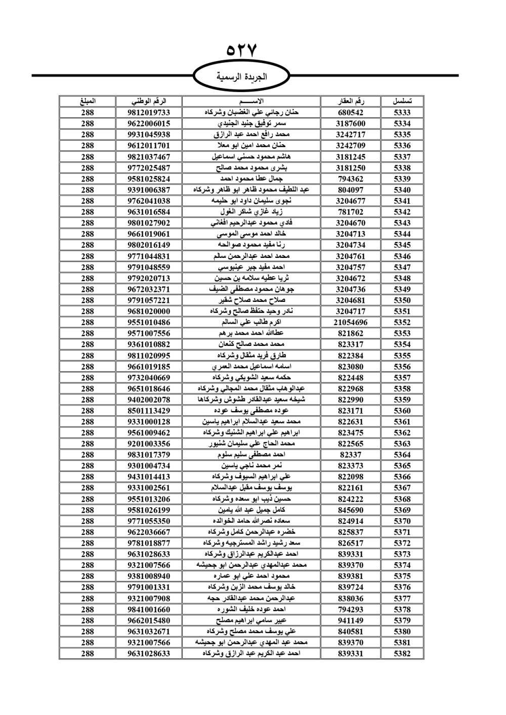 دعت سلطة المياه وبلدية الزرقاء، عشرات آلاف الأردنيين الواردة أسماؤهم بالكشوفات المرفقة، إلى ضرورة مراجعتها لتسوية أوضاعهم المالية كونه ترتب عليهم ذمم مالية، وذلك لتجنب الحجز على الأموال المنقولة وغير المنقولة بعد انقضاء 60 يوما من تاريخ النشر، علما أنه تم نشر هذه الأسماء في الجريدة الرسمية بتاريخ 16/2/2025.