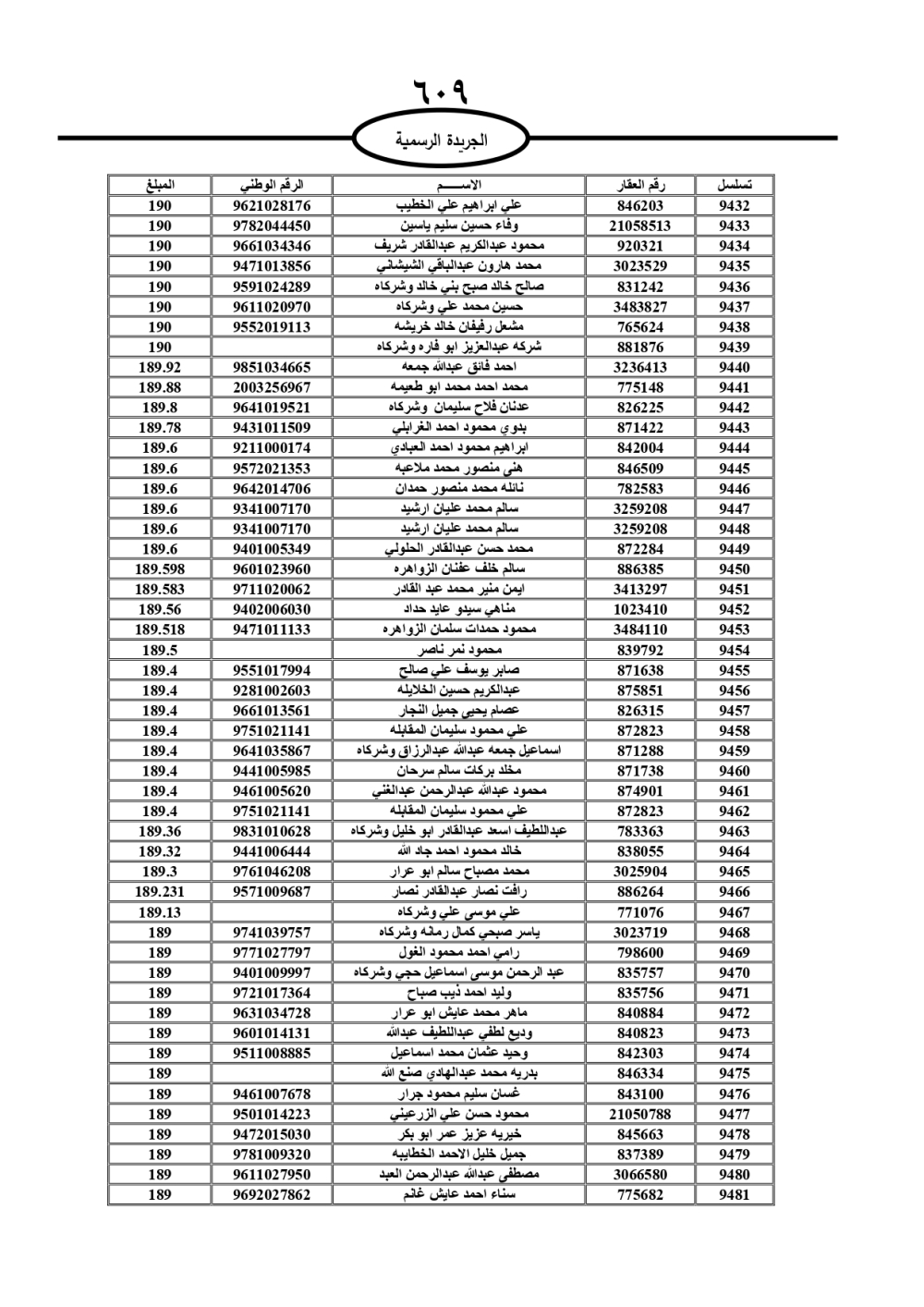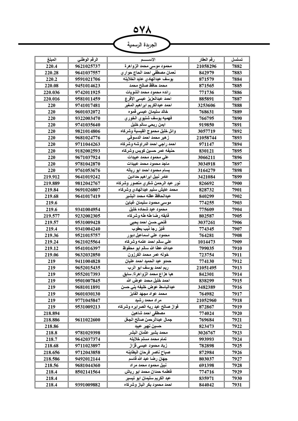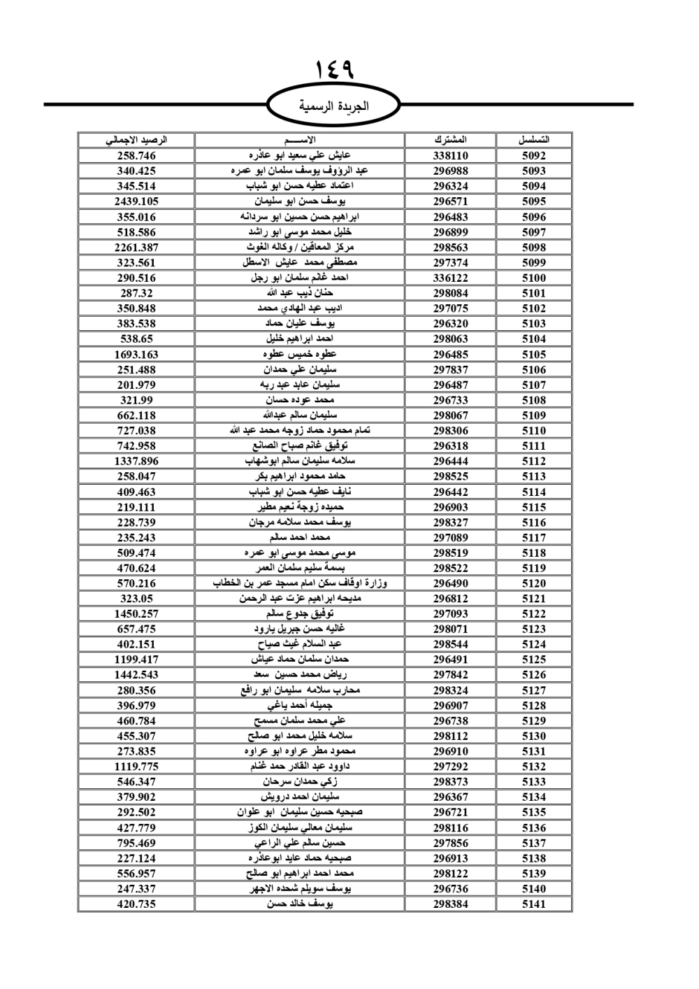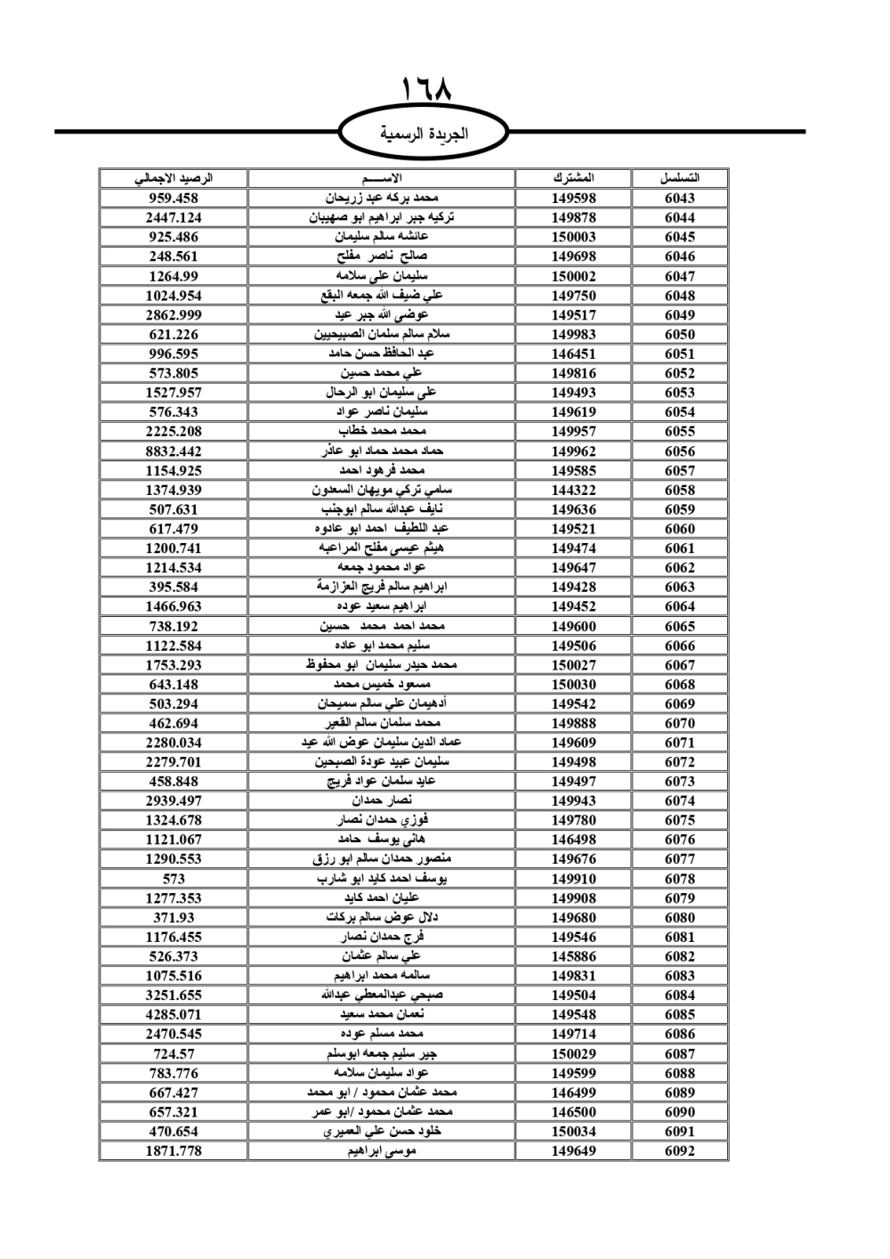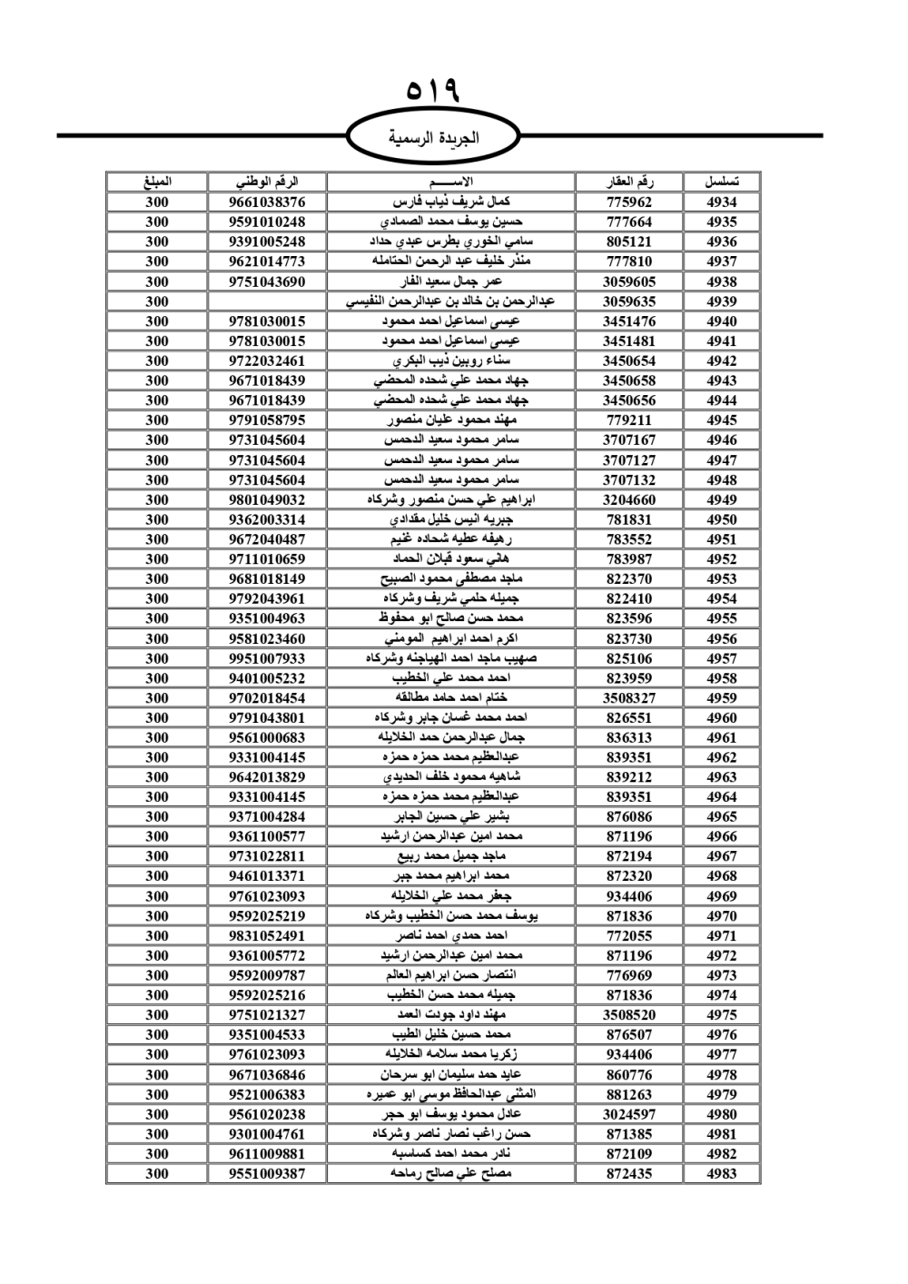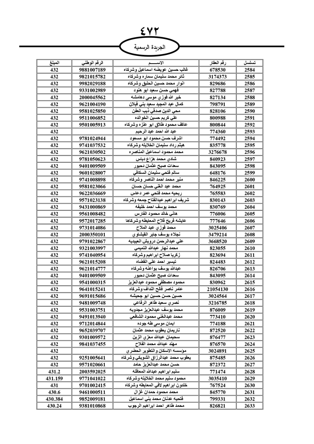دعت سلطة المياه وبلدية الزرقاء، عشرات آلاف الأردنيين الواردة أسماؤهم بالكشوفات المرفقة، إلى ضرورة مراجعتها لتسوية أوضاعهم المالية كونه ترتب عليهم ذمم مالية، وذلك لتجنب الحجز على الأموال المنقولة وغير المنقولة بعد انقضاء 60 يوما من تاريخ النشر، علما أنه تم نشر هذه الأسماء في الجريدة الرسمية بتاريخ 16/2/2025.