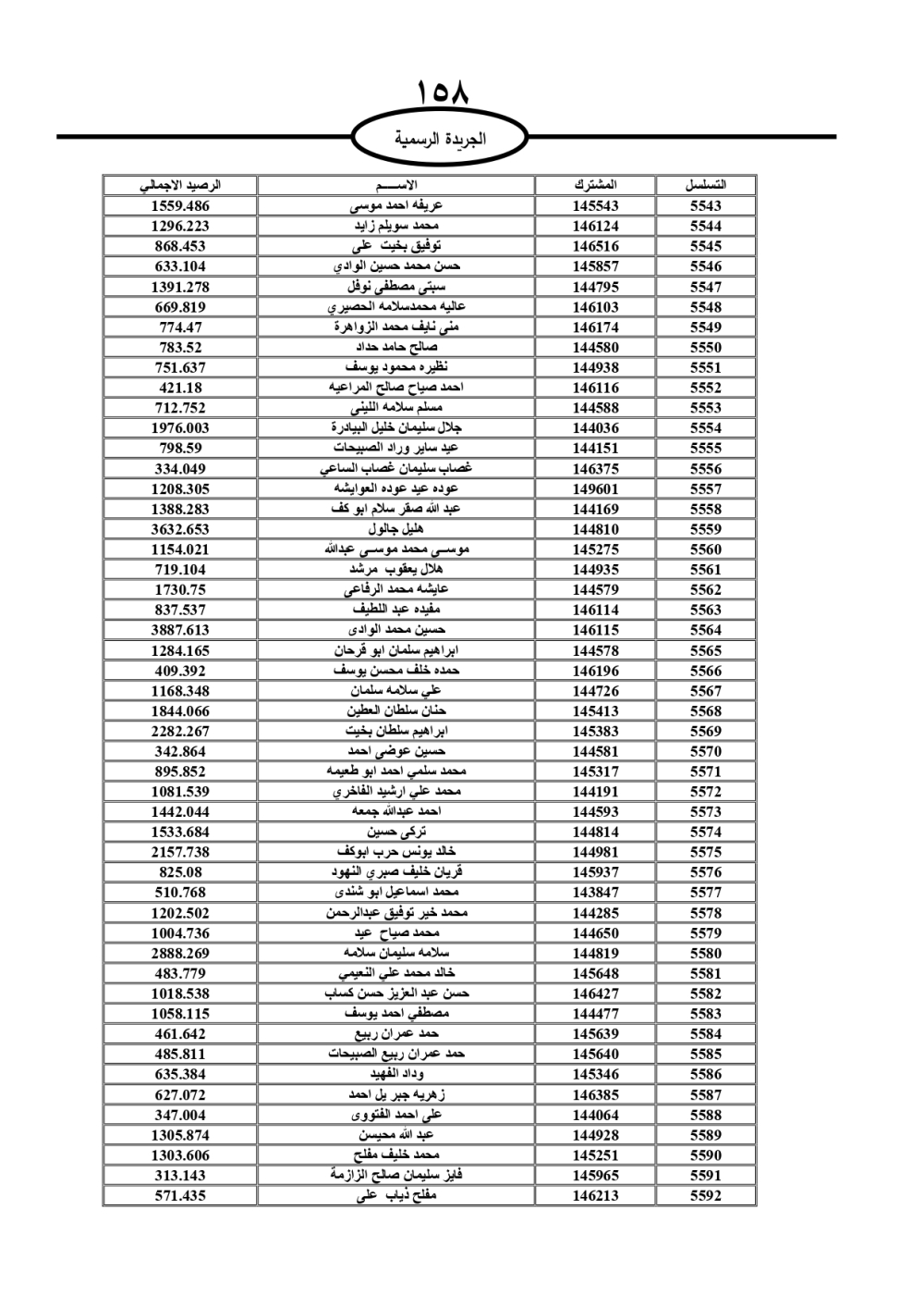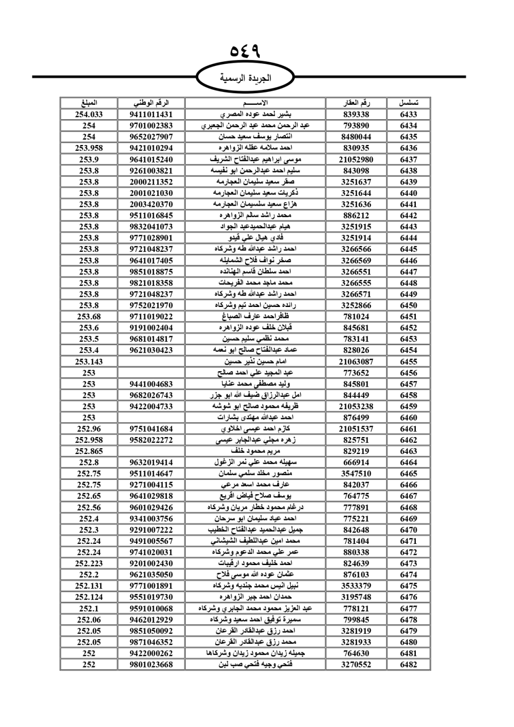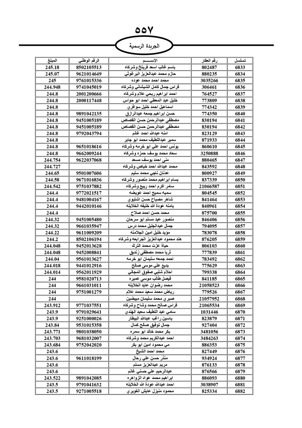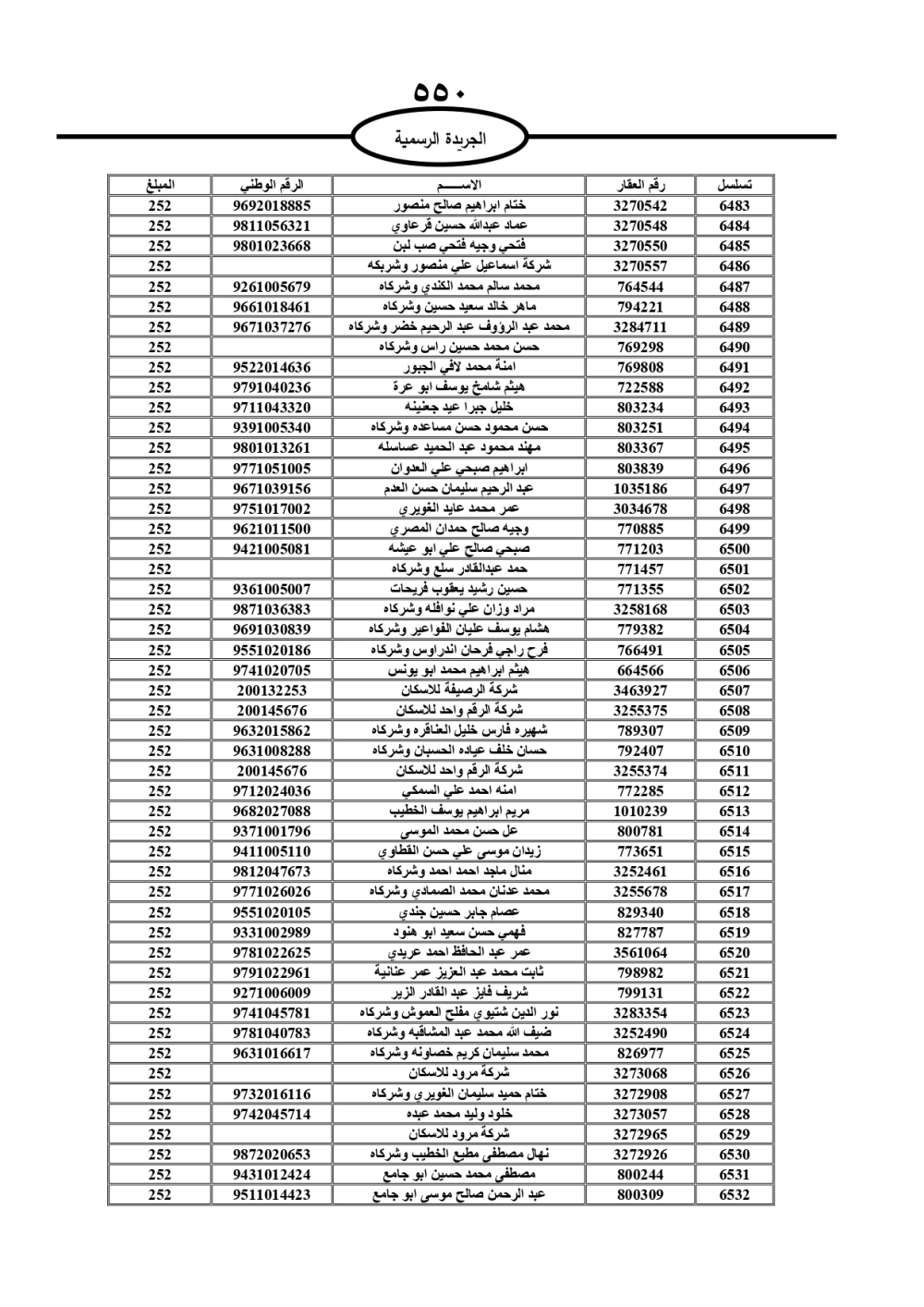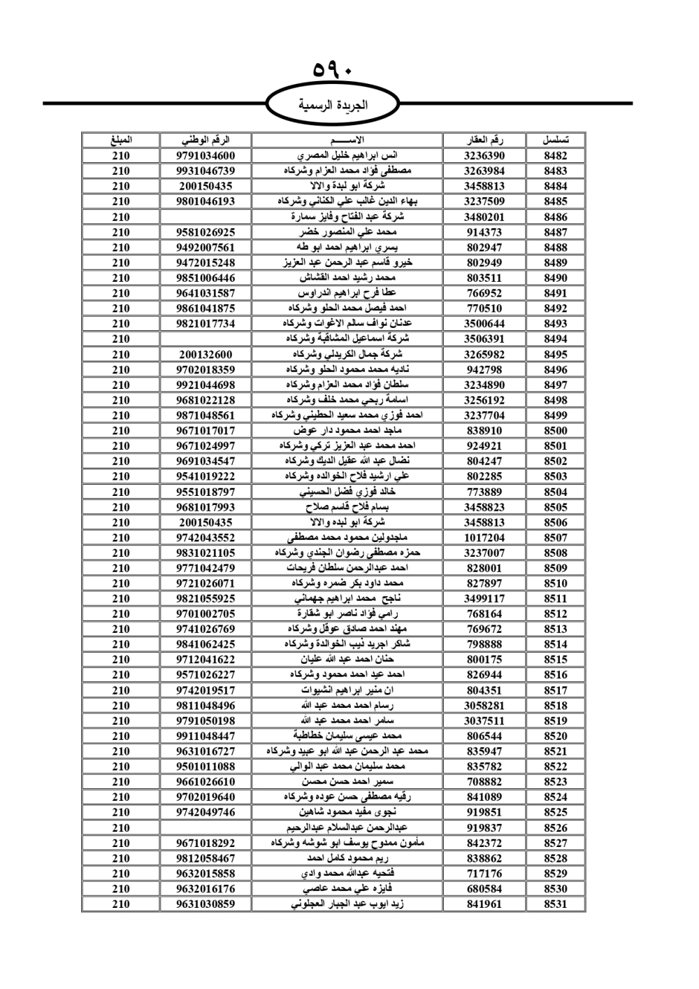 دعت سلطة المياه وبلدية الزرقاء، عشرات آلاف الأردنيين الواردة أسماؤهم بالكشوفات المرفقة، إلى ضرورة مراجعتها لتسوية أوضاعهم المالية كونه ترتب عليهم ذمم مالية، وذلك لتجنب الحجز على الأموال المنقولة وغير المنقولة بعد انقضاء 60 يوما من تاريخ النشر، علما أنه تم نشر هذه الأسماء في الجريدة الرسمية بتاريخ 16/2/2025.