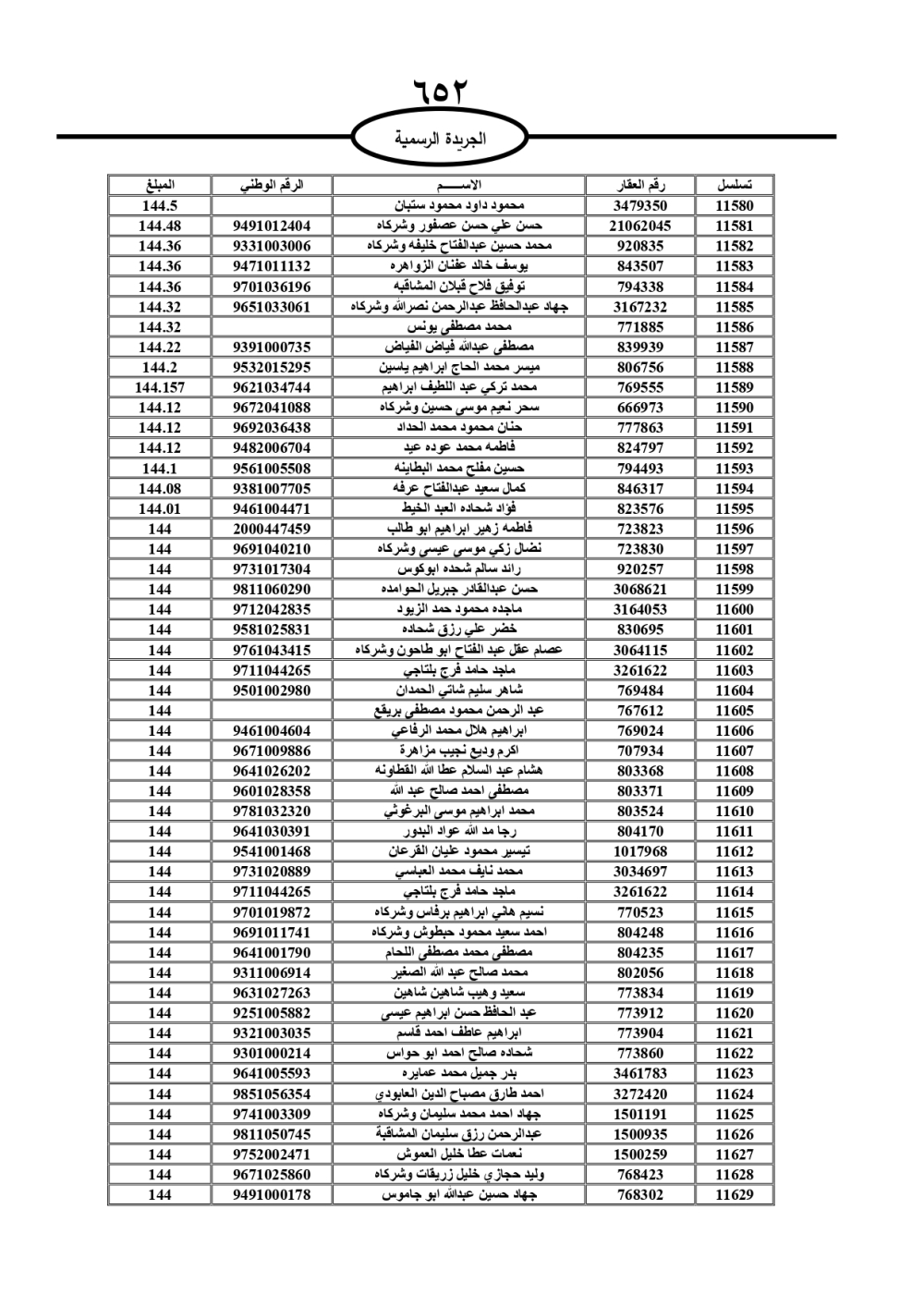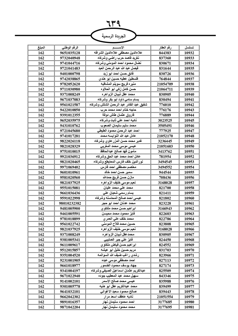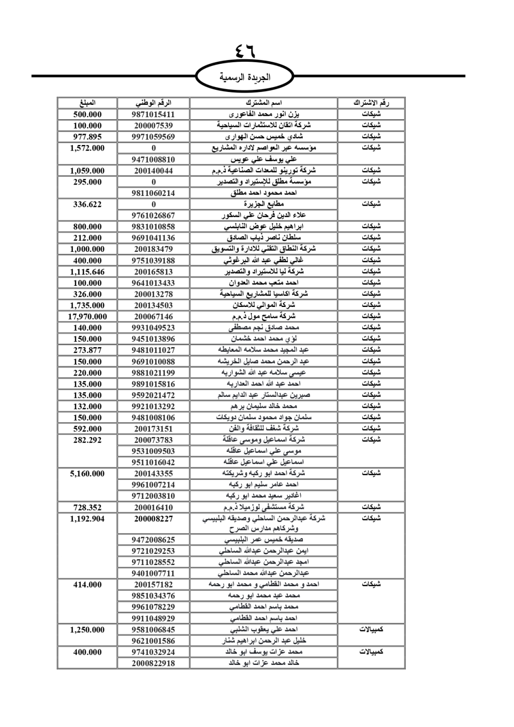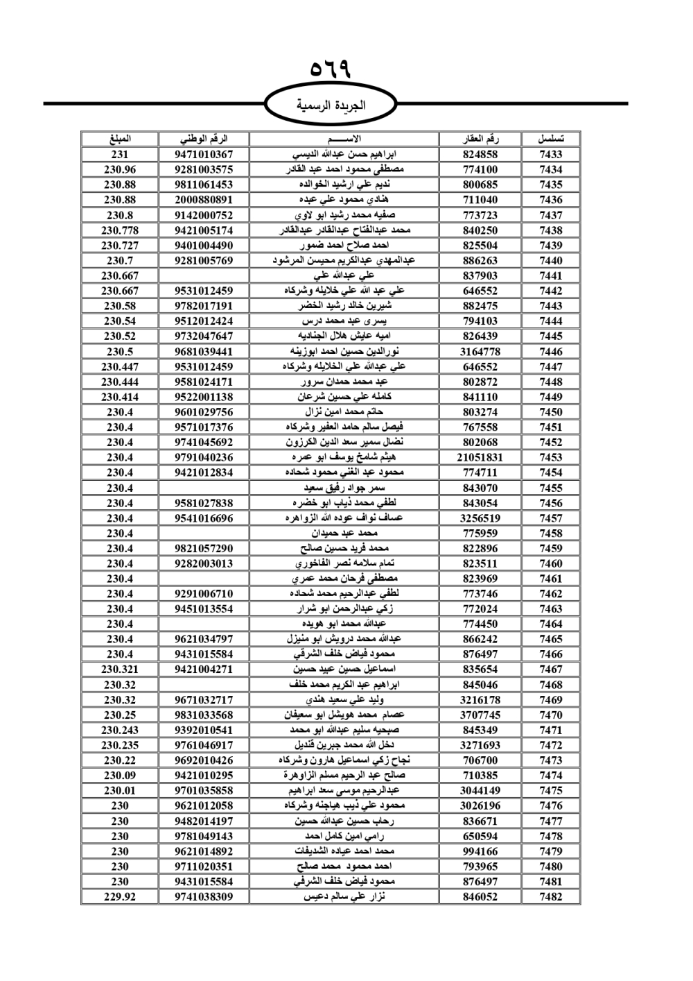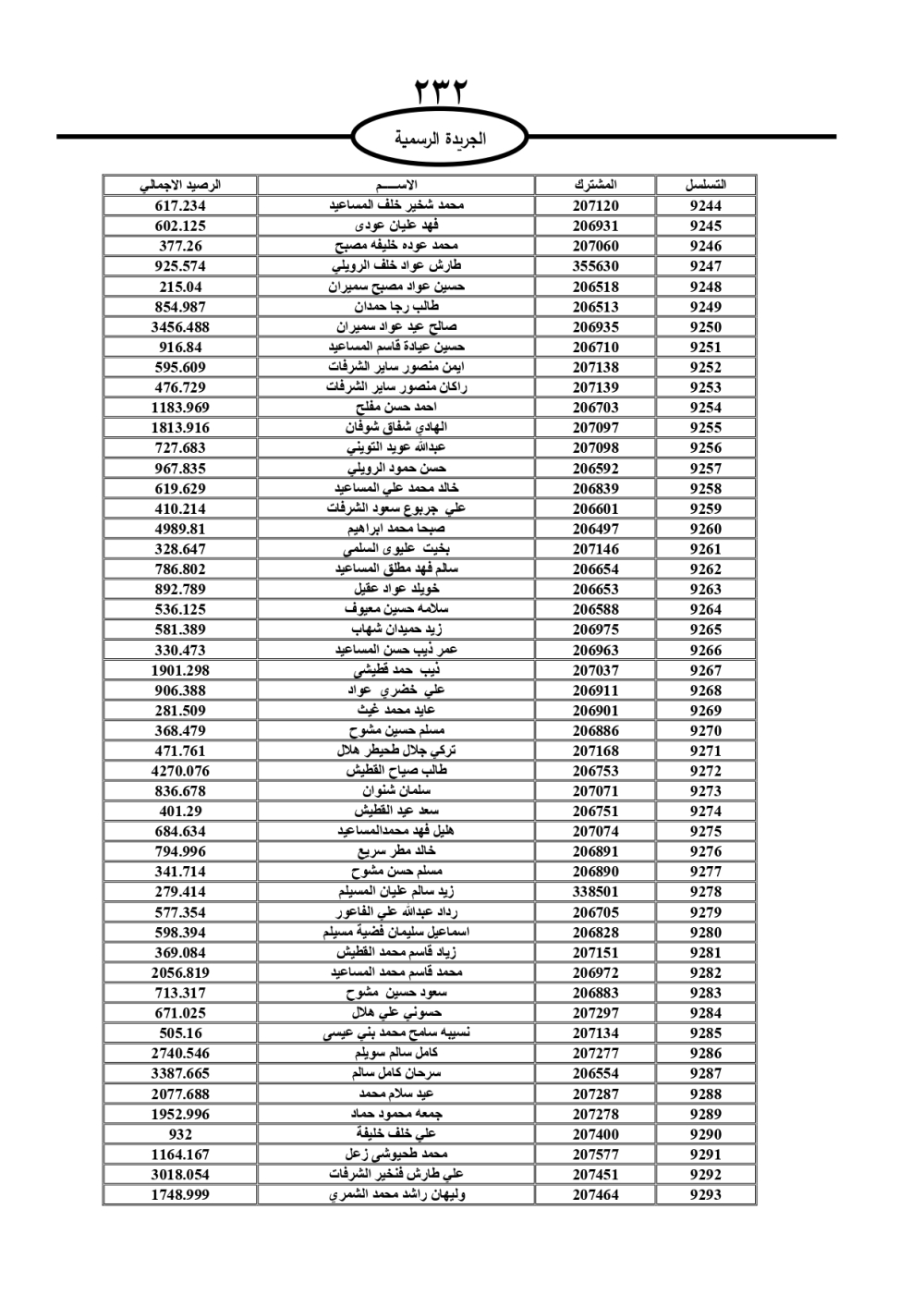 دعت سلطة المياه وبلدية الزرقاء، عشرات آلاف الأردنيين الواردة أسماؤهم بالكشوفات المرفقة، إلى ضرورة مراجعتها لتسوية أوضاعهم المالية كونه ترتب عليهم ذمم مالية، وذلك لتجنب الحجز على الأموال المنقولة وغير المنقولة بعد انقضاء 60 يوما من تاريخ النشر، علما أنه تم نشر هذه الأسماء في الجريدة الرسمية بتاريخ 16/2/2025.