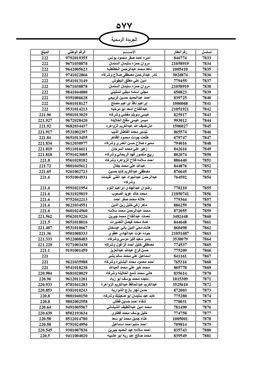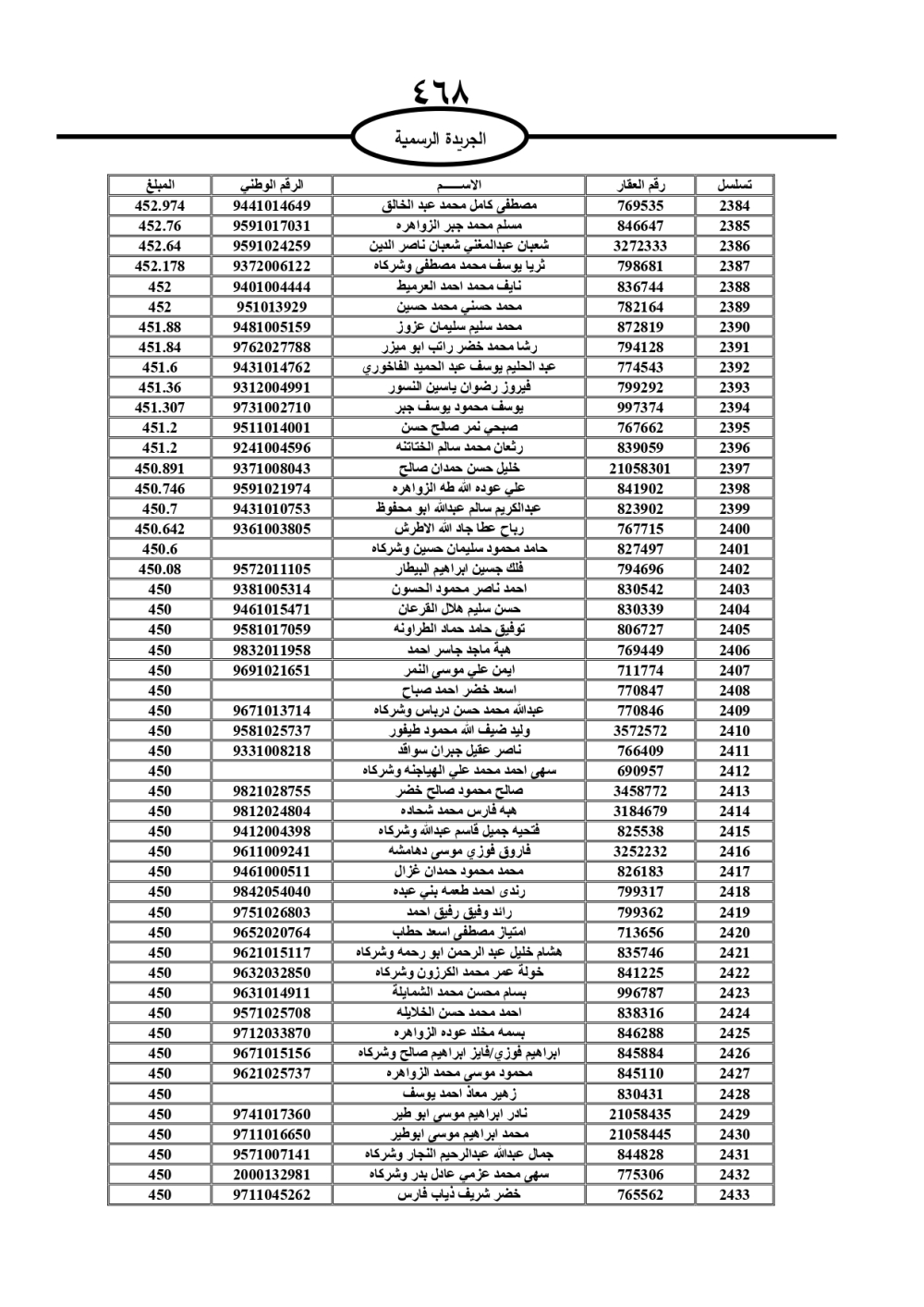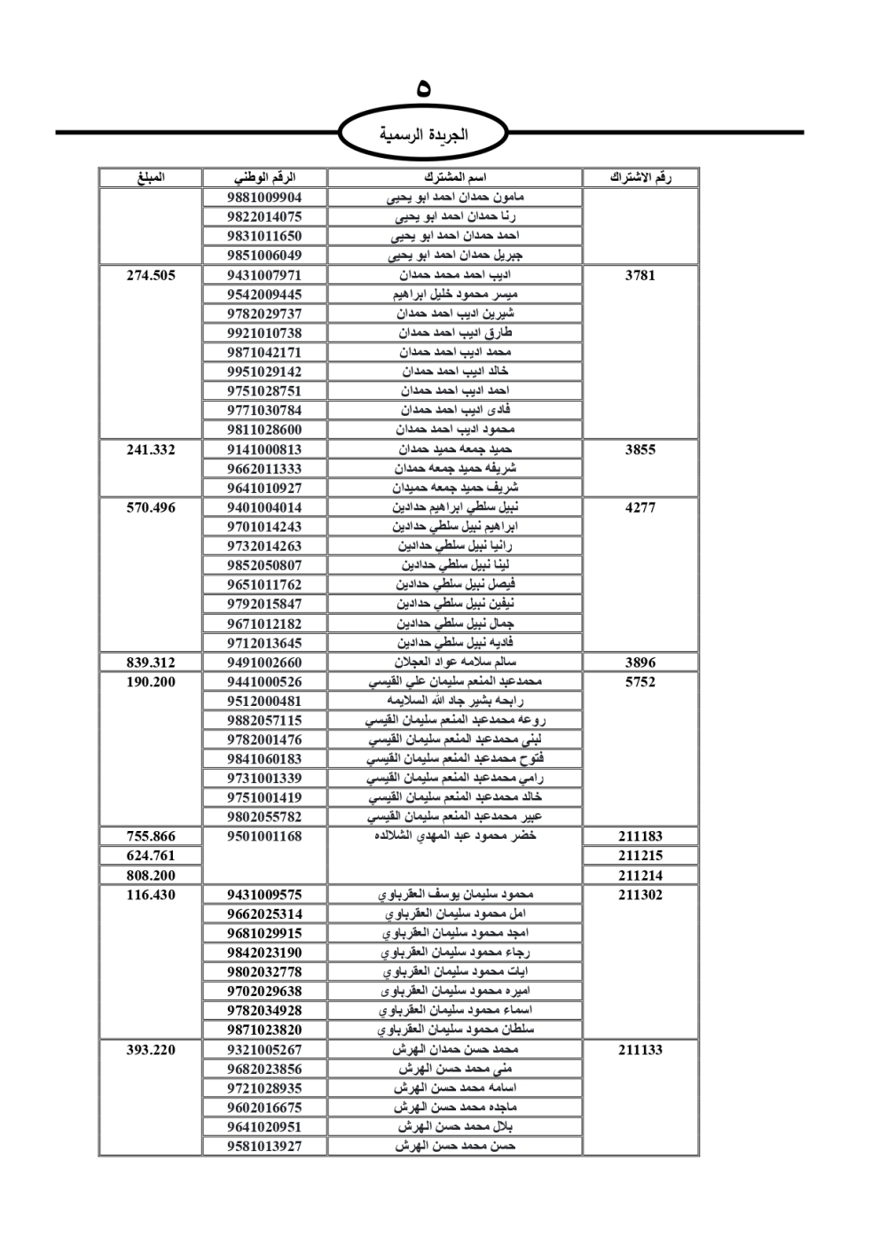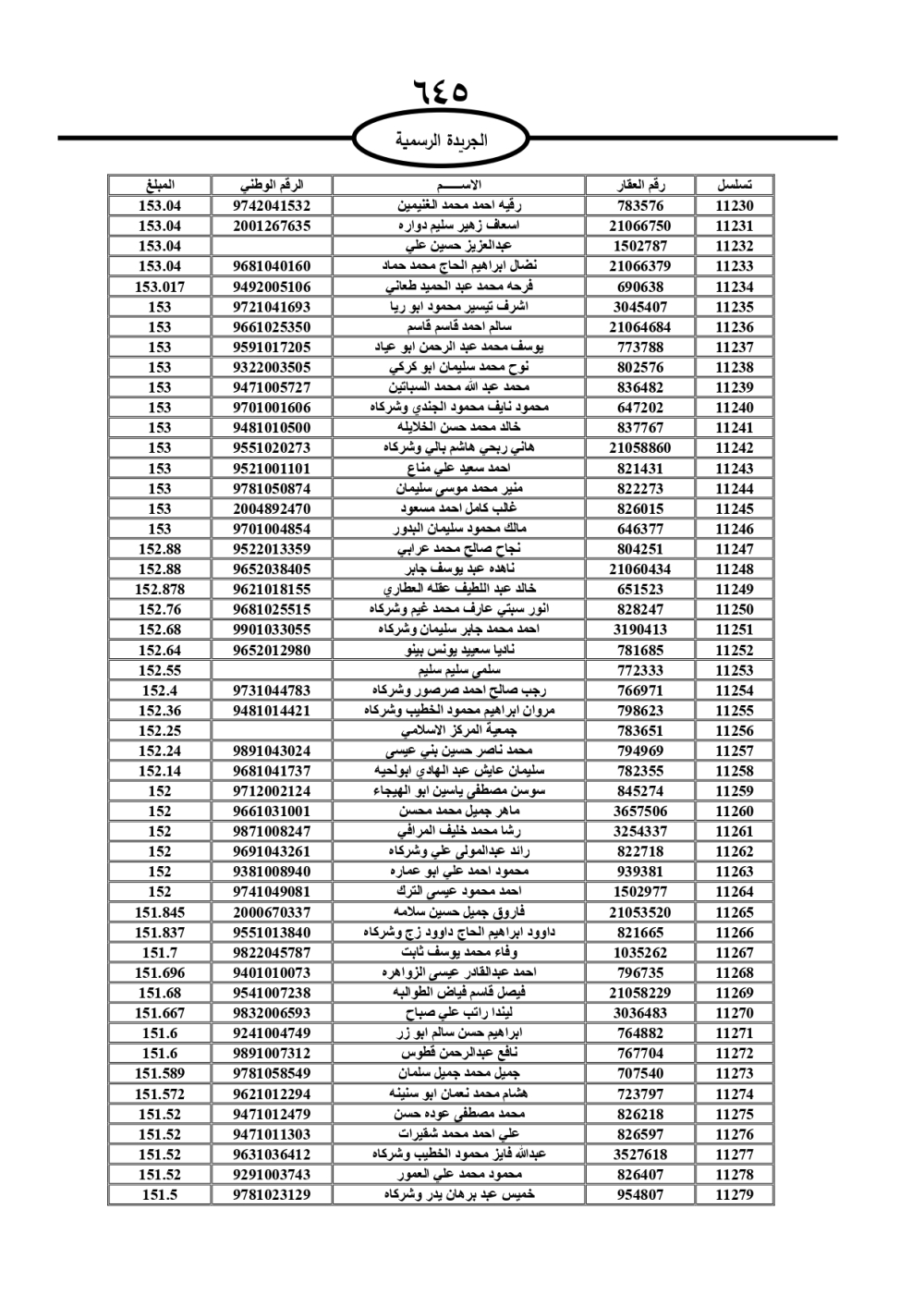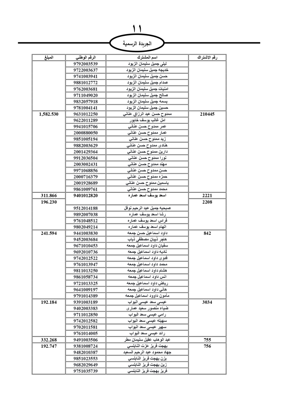 دعت سلطة المياه وبلدية الزرقاء، عشرات آلاف الأردنيين الواردة أسماؤهم بالكشوفات المرفقة، إلى ضرورة مراجعتها لتسوية أوضاعهم المالية كونه ترتب عليهم ذمم مالية، وذلك لتجنب الحجز على الأموال المنقولة وغير المنقولة بعد انقضاء 60 يوما من تاريخ النشر، علما أنه تم نشر هذه الأسماء في الجريدة الرسمية بتاريخ 16/2/2025.