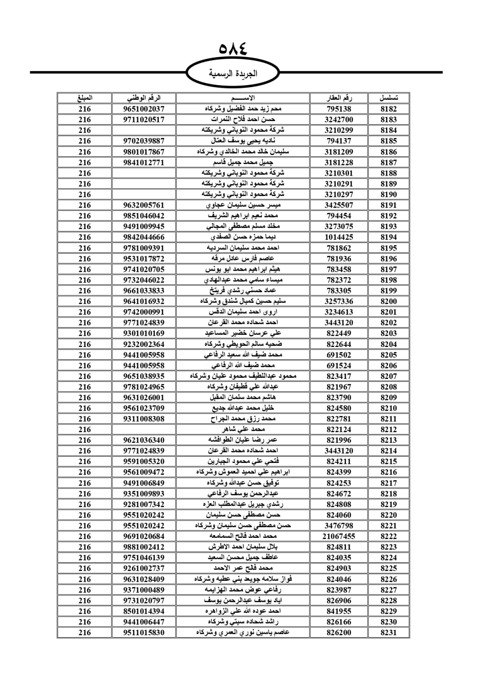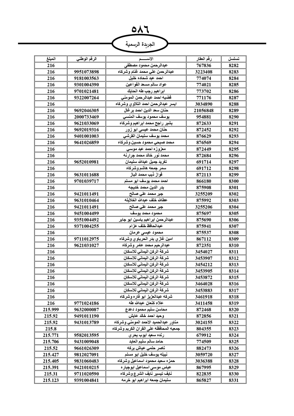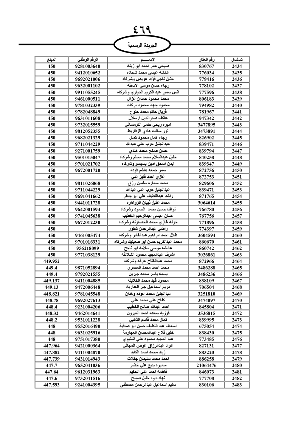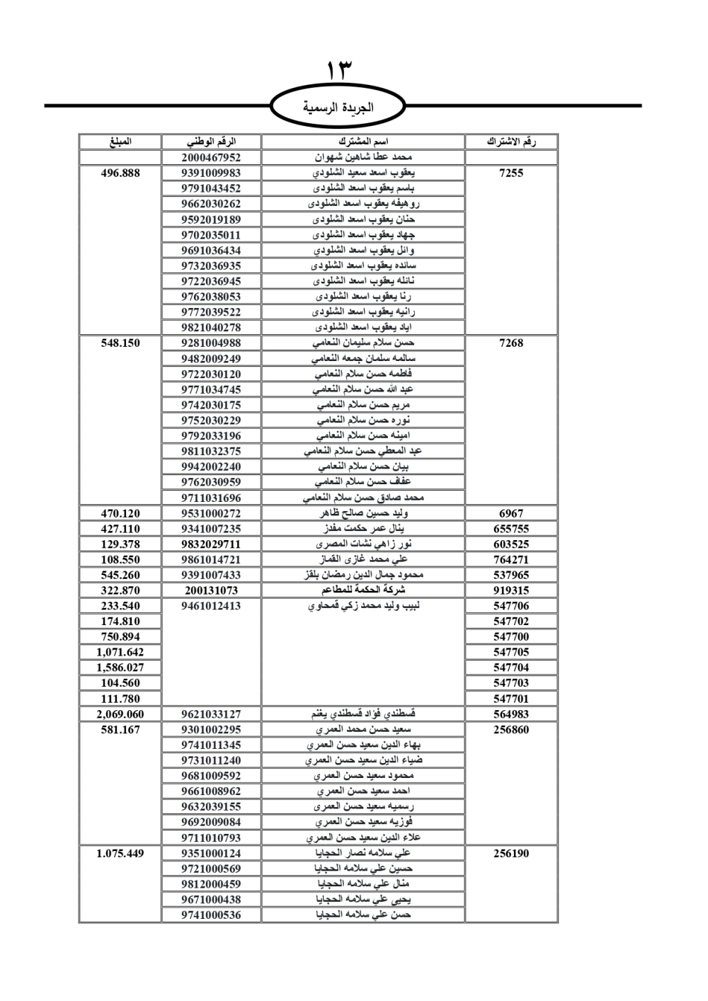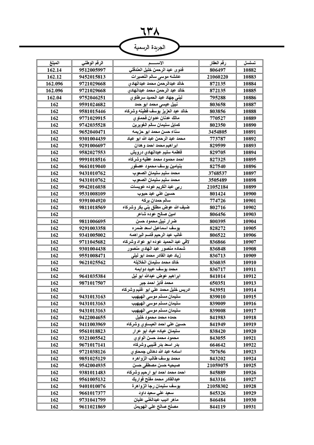 دعت سلطة المياه وبلدية الزرقاء، عشرات آلاف الأردنيين الواردة أسماؤهم بالكشوفات المرفقة، إلى ضرورة مراجعتها لتسوية أوضاعهم المالية كونه ترتب عليهم ذمم مالية، وذلك لتجنب الحجز على الأموال المنقولة وغير المنقولة بعد انقضاء 60 يوما من تاريخ النشر، علما أنه تم نشر هذه الأسماء في الجريدة الرسمية بتاريخ 16/2/2025.