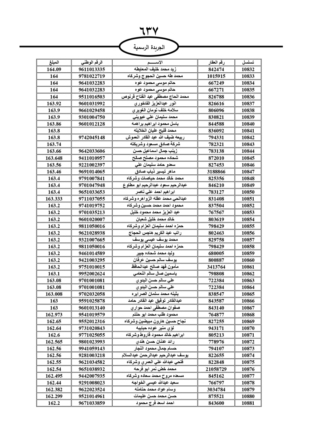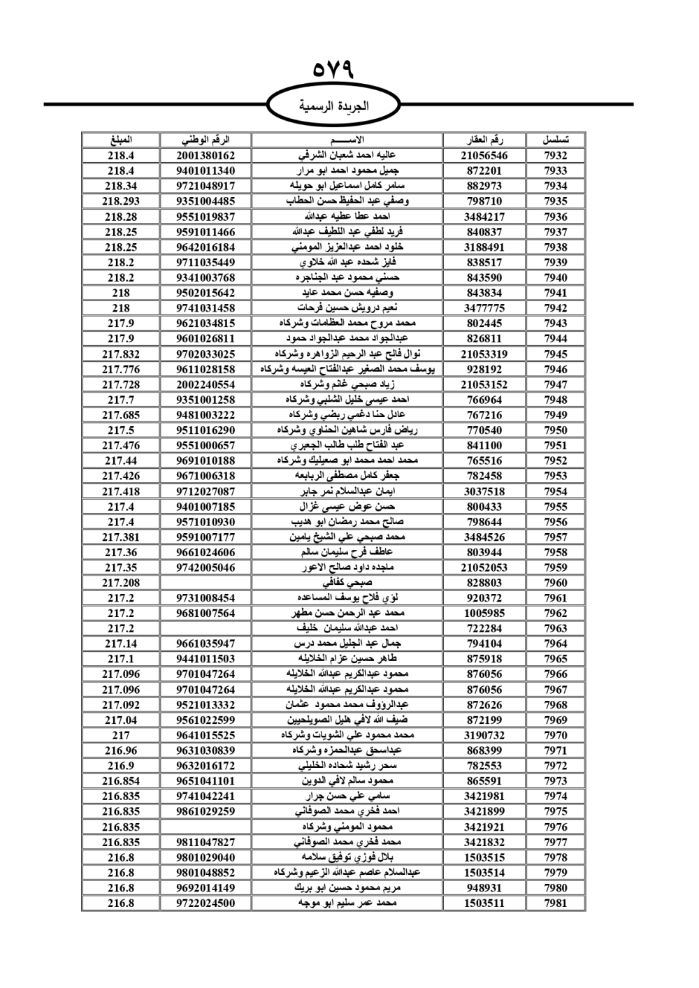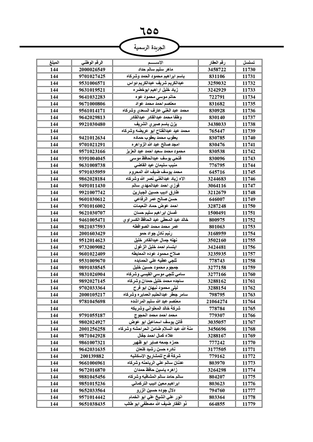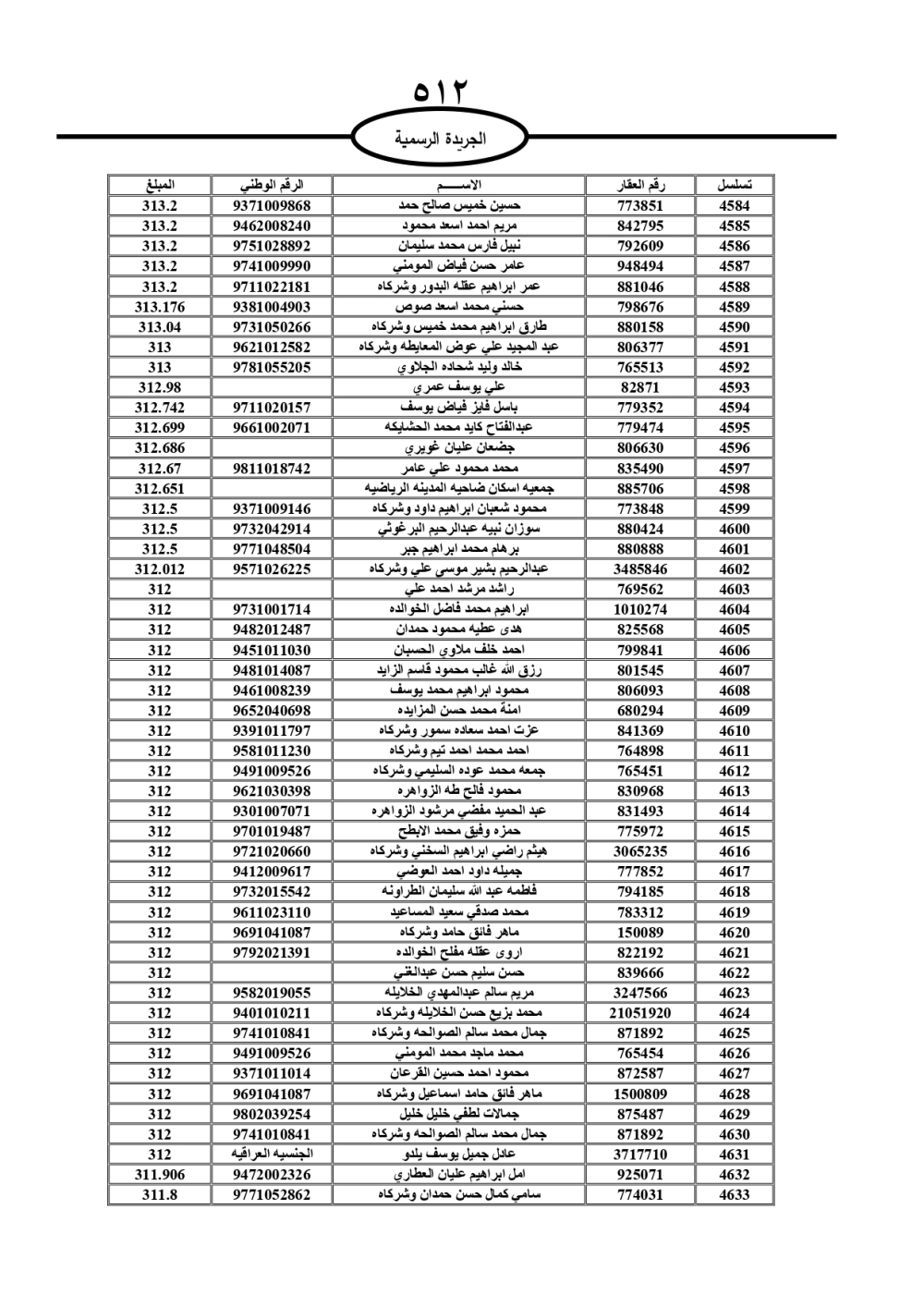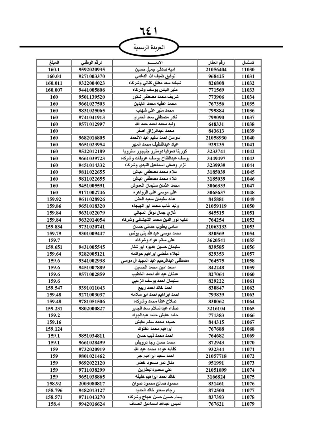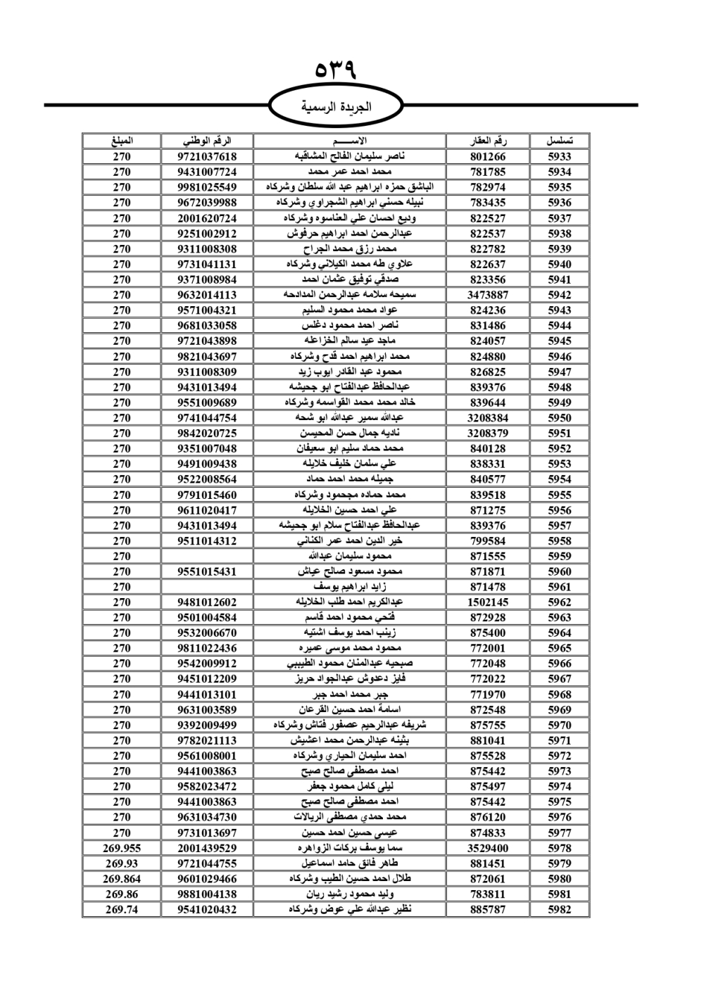 دعت سلطة المياه وبلدية الزرقاء، عشرات آلاف الأردنيين الواردة أسماؤهم بالكشوفات المرفقة، إلى ضرورة مراجعتها لتسوية أوضاعهم المالية كونه ترتب عليهم ذمم مالية، وذلك لتجنب الحجز على الأموال المنقولة وغير المنقولة بعد انقضاء 60 يوما من تاريخ النشر، علما أنه تم نشر هذه الأسماء في الجريدة الرسمية بتاريخ 16/2/2025.