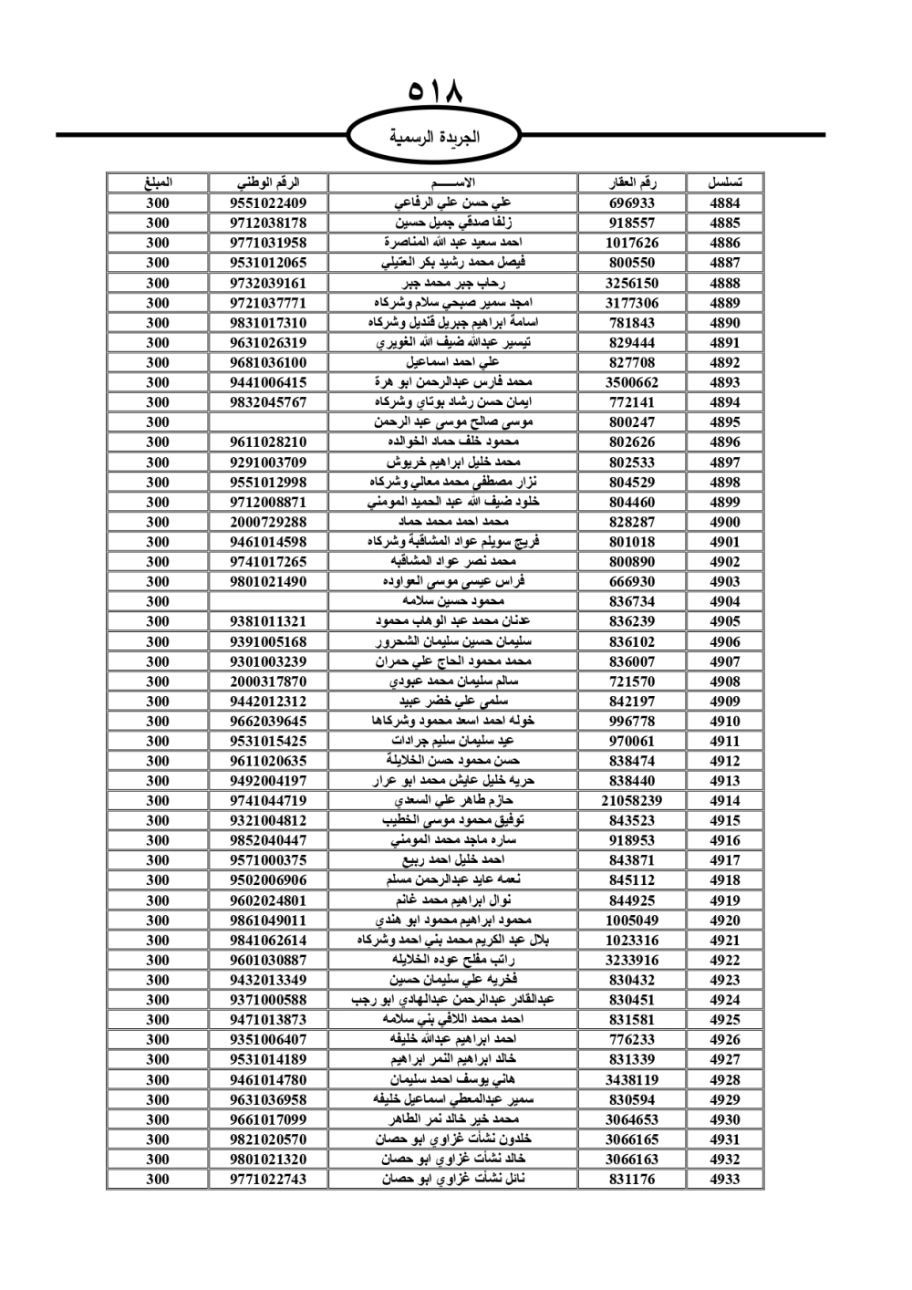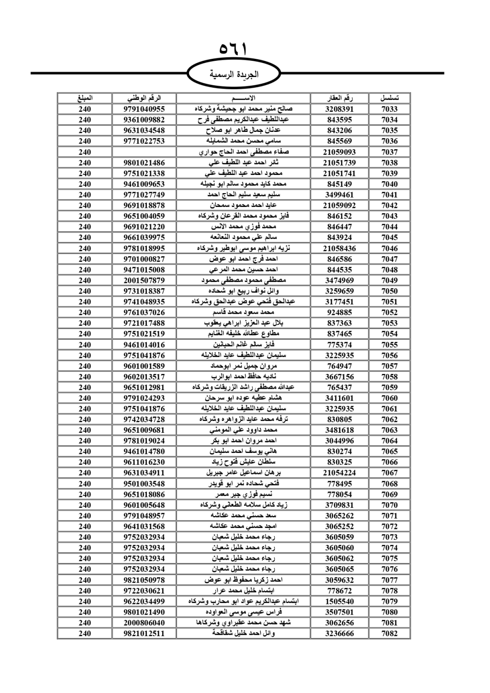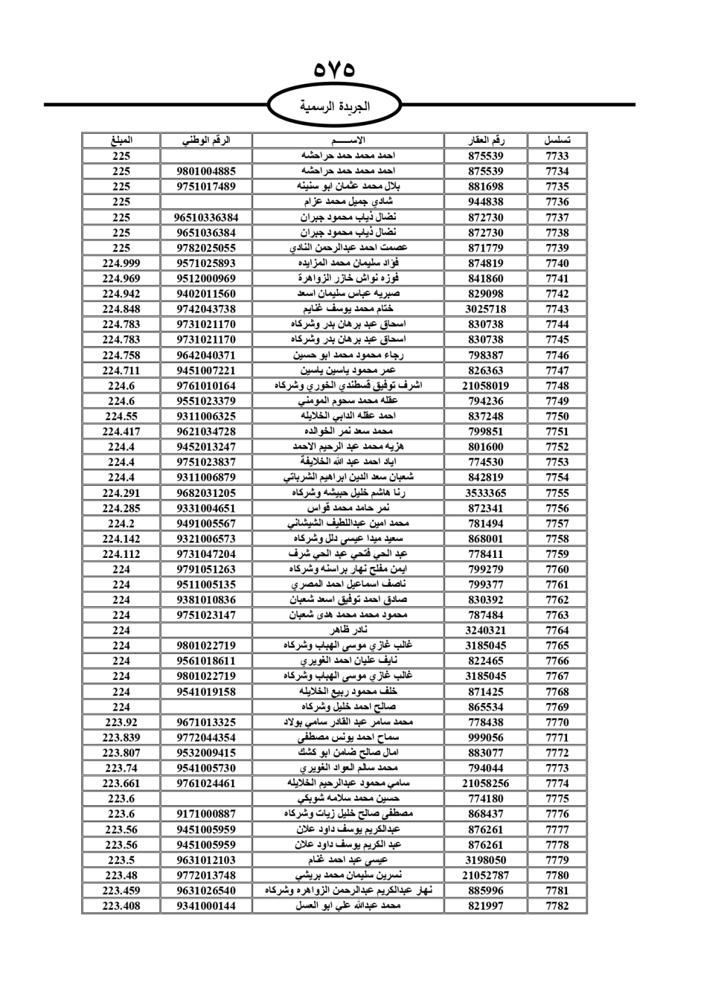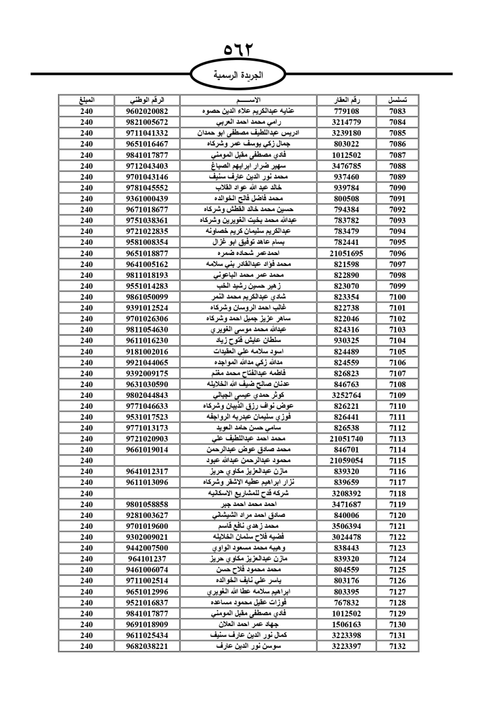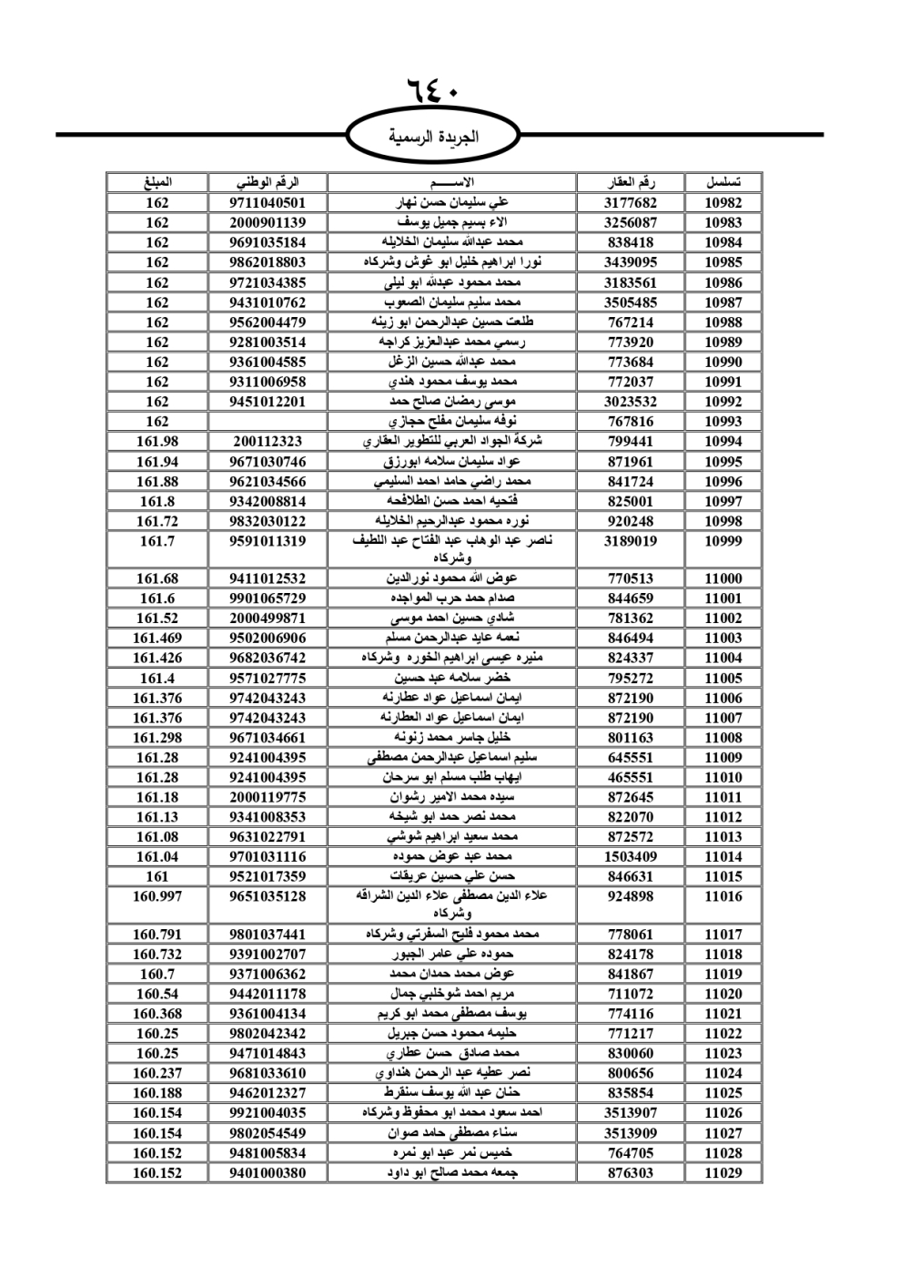 دعت سلطة المياه وبلدية الزرقاء، عشرات آلاف الأردنيين الواردة أسماؤهم بالكشوفات المرفقة، إلى ضرورة مراجعتها لتسوية أوضاعهم المالية كونه ترتب عليهم ذمم مالية، وذلك لتجنب الحجز على الأموال المنقولة وغير المنقولة بعد انقضاء 60 يوما من تاريخ النشر، علما أنه تم نشر هذه الأسماء في الجريدة الرسمية بتاريخ 16/2/2025.