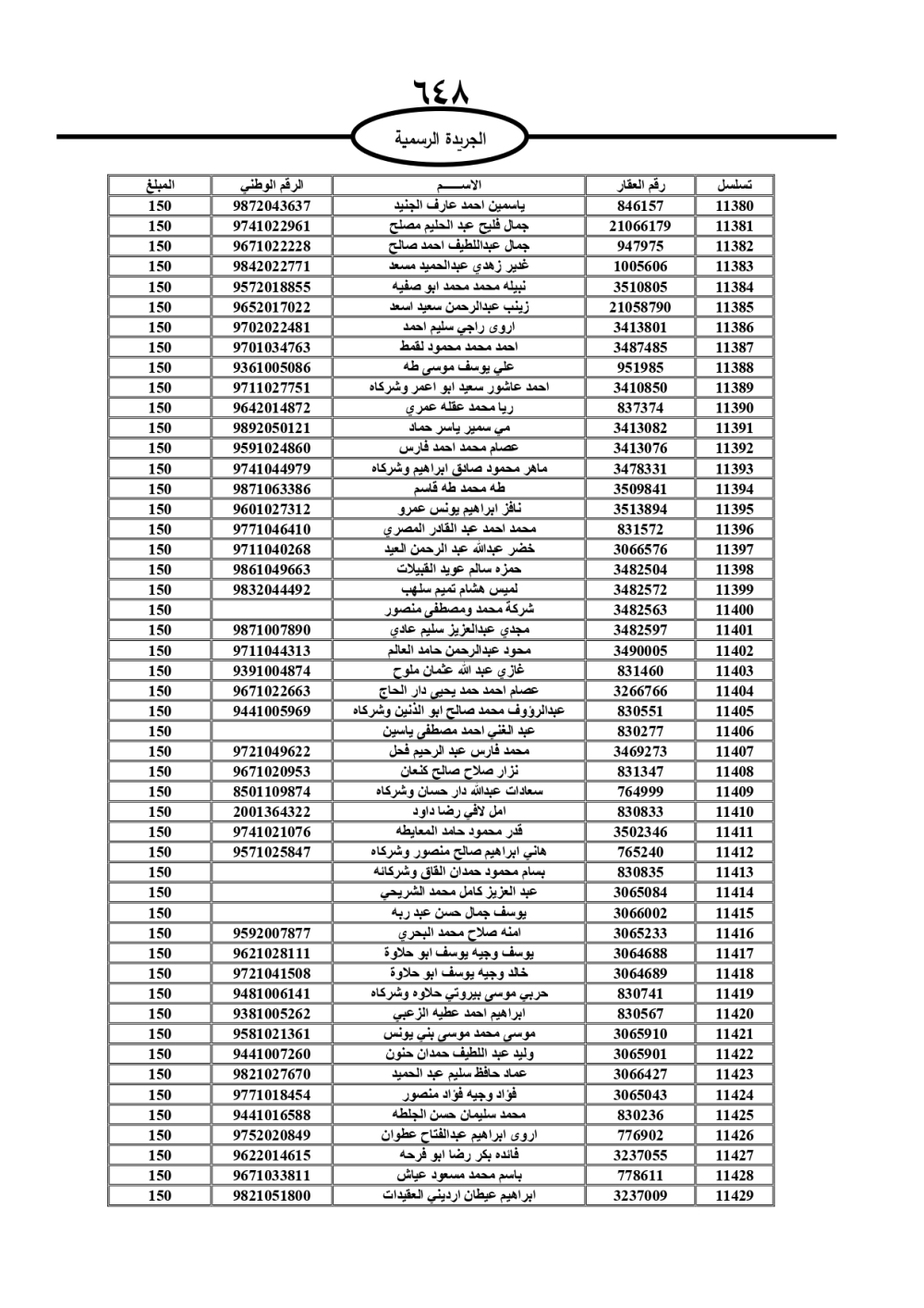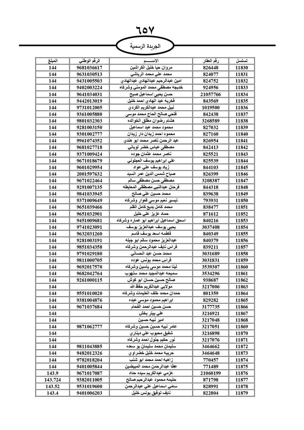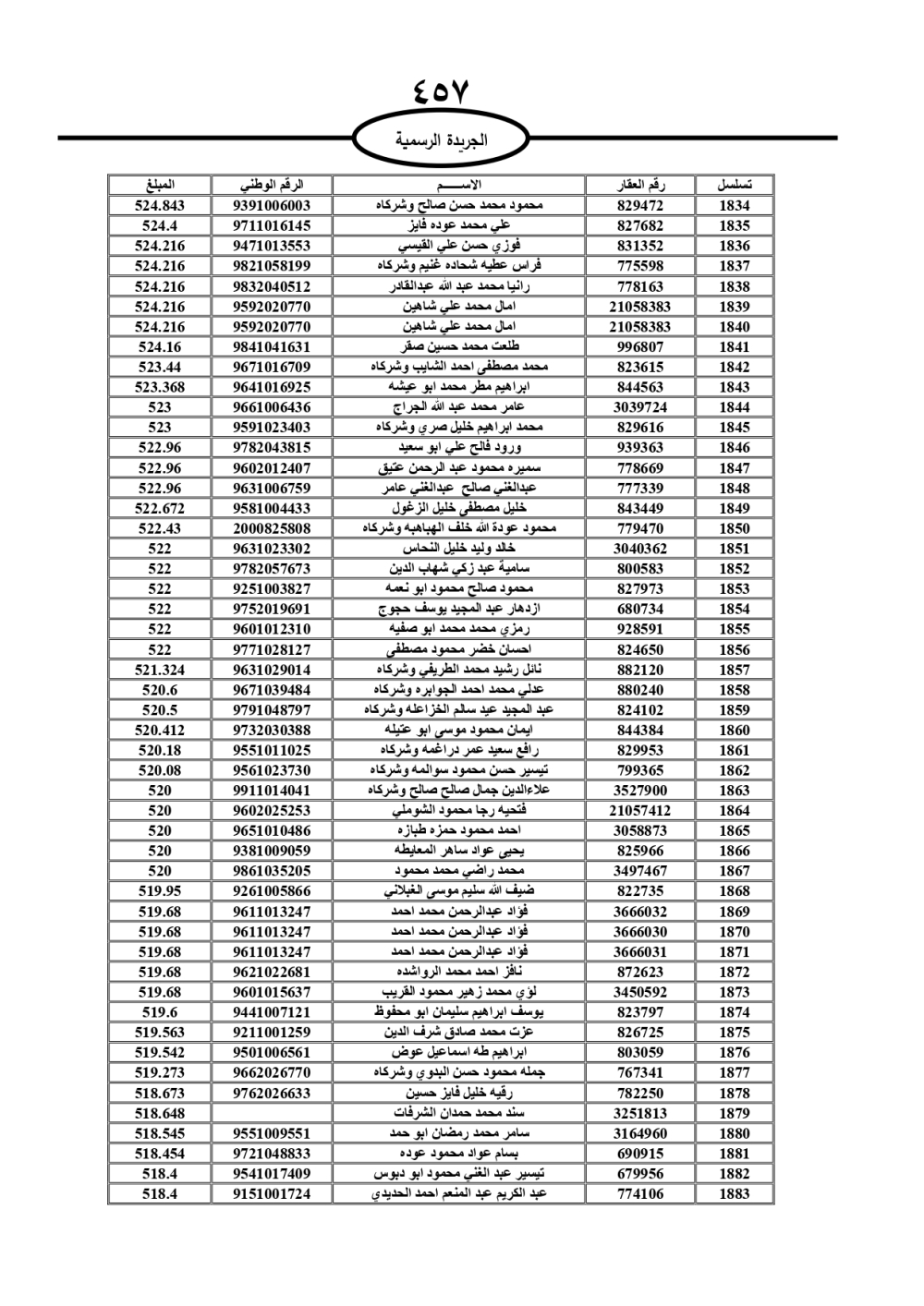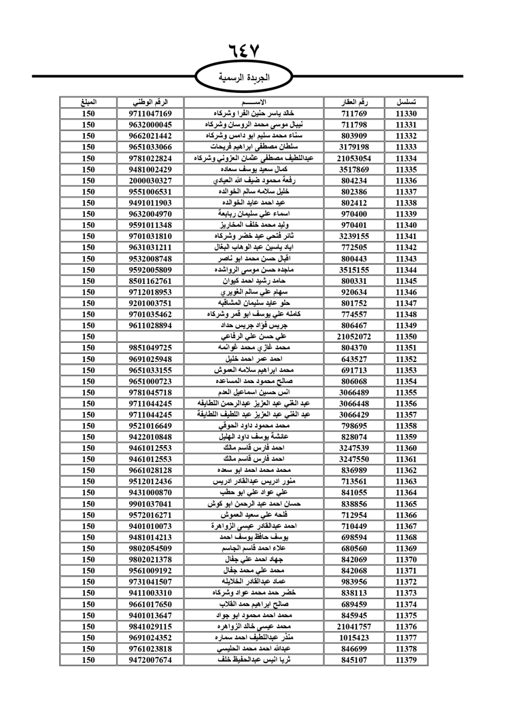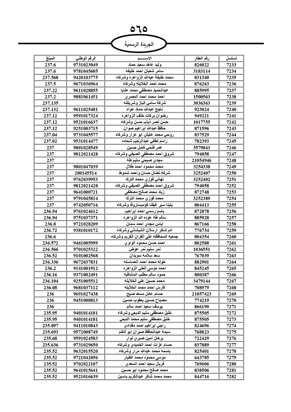 دعت سلطة المياه وبلدية الزرقاء، عشرات آلاف الأردنيين الواردة أسماؤهم بالكشوفات المرفقة، إلى ضرورة مراجعتها لتسوية أوضاعهم المالية كونه ترتب عليهم ذمم مالية، وذلك لتجنب الحجز على الأموال المنقولة وغير المنقولة بعد انقضاء 60 يوما من تاريخ النشر، علما أنه تم نشر هذه الأسماء في الجريدة الرسمية بتاريخ 16/2/2025.