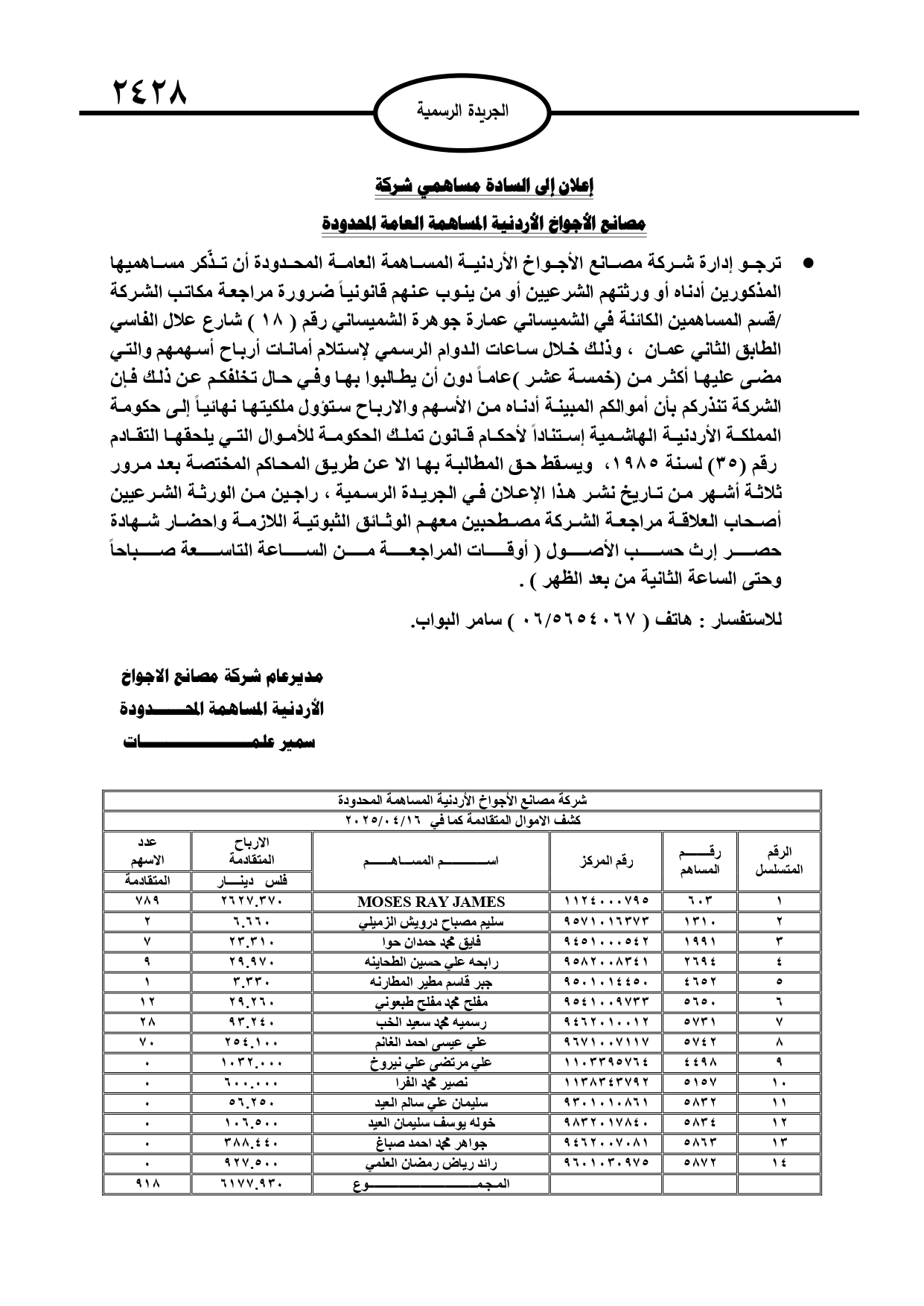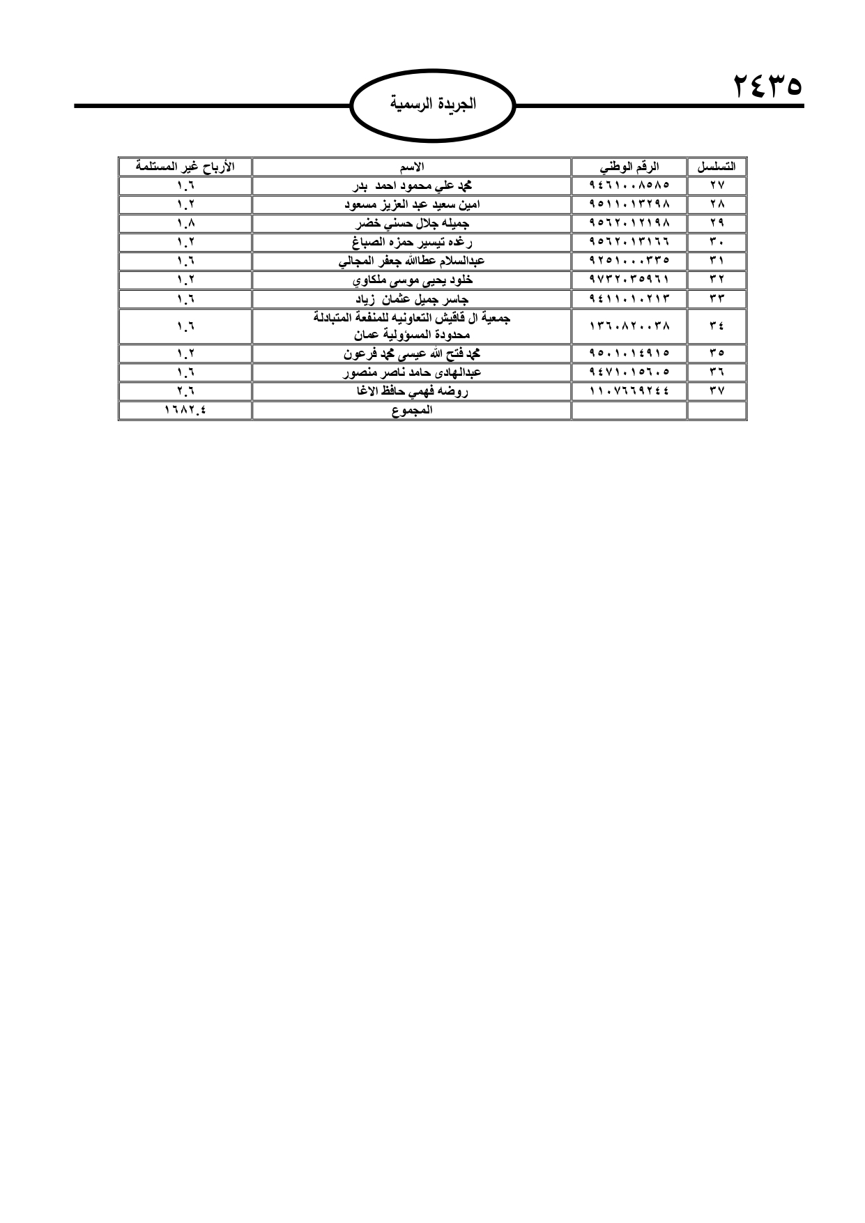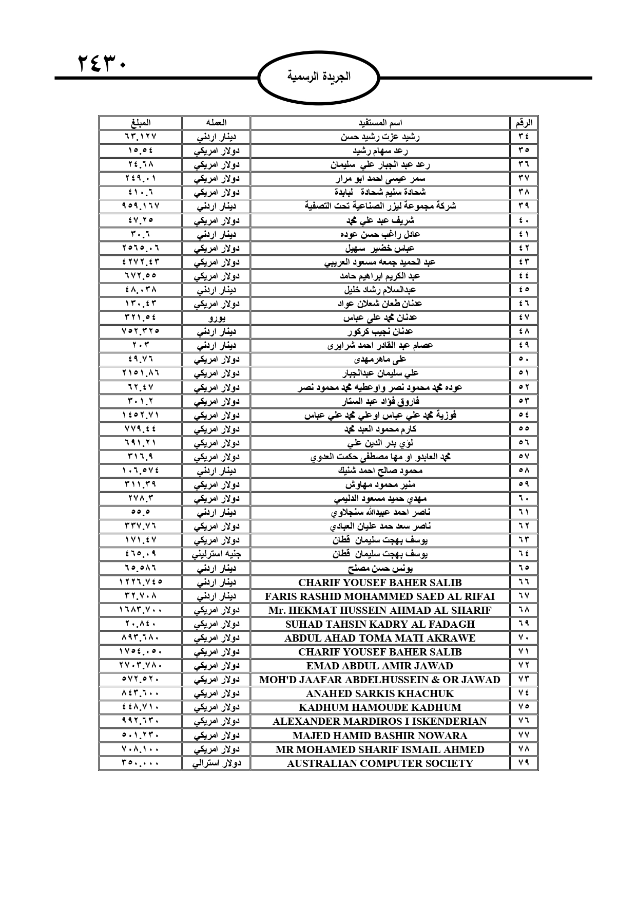 نشرت الجريدة الرسمية الصادرة، الأربعاء، أسماء أردنيين لديهم أموال في بنوك وجهات مالية أخرى، وفي حال عدم مراجعة تلك الجهات ستؤول أموالهم إلى خزينة الدولة.