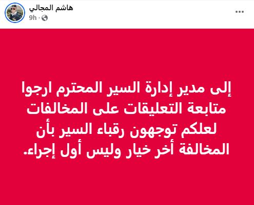 ووجّه المجالي رسالة إلى مدير إدارة السير، طالب فيها بمتابعة تعليقات المواطنين على المخالفات المرورية، معتبرًا أن من شأنها أن تكشف ممارسات تحتاج إلى مراجعة.