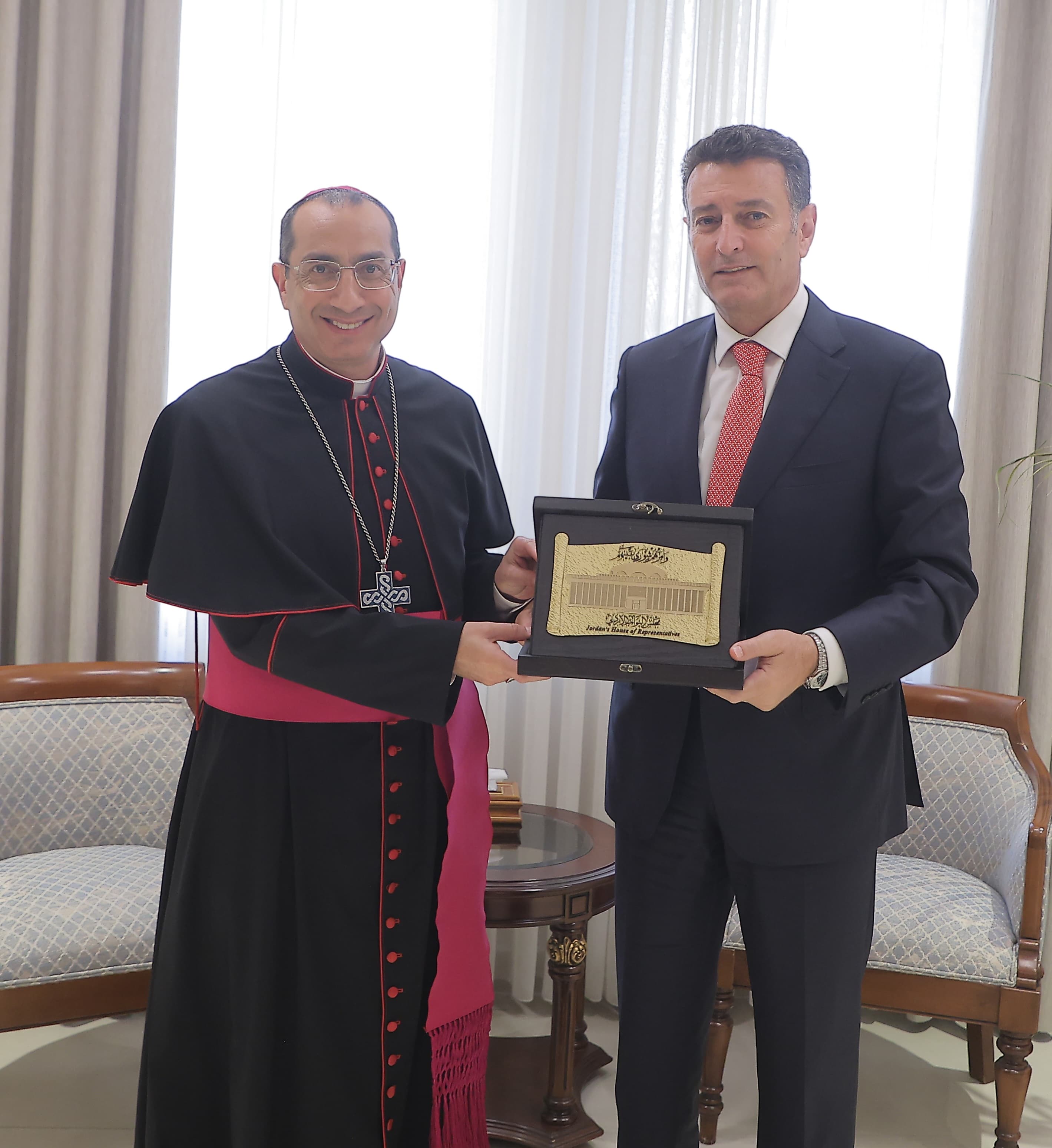 استقبل رئيس مجلس النواب أحمد الصفدي في مكتبه بدار مجلس النواب اليوم الأحد، سيادة المطران إياد الطوال، والوفد المرافق من قدس الآباء الكهنة: الأب عماد علمات، والأب سامر مدانات، والأب شوقي بطريان، والأب سليمان شوباش.