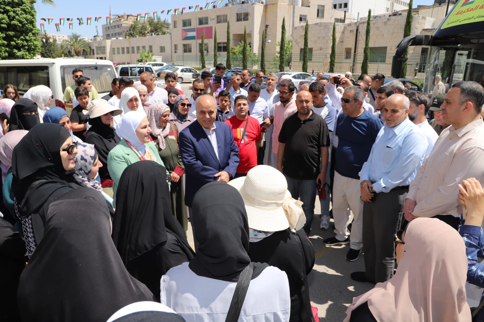 ودع وزير التربية والتعليم الدكتور عزمي محافظة اليوم الأحد، في ساحة الوزارة بعثة الحج المتجهة إلى الديار المقدسة لأداء مناسك الحج من المعلمين والعاملين في الوزارة.