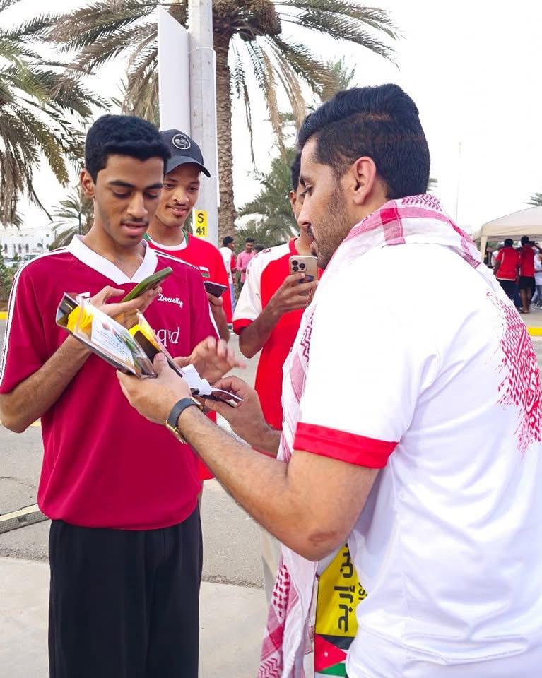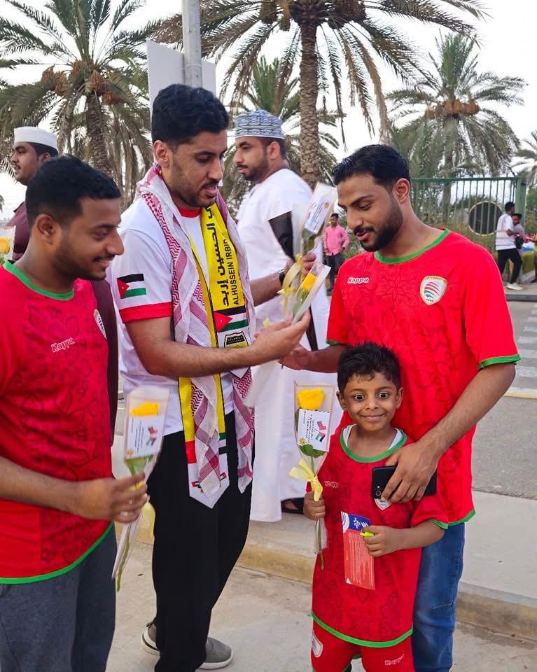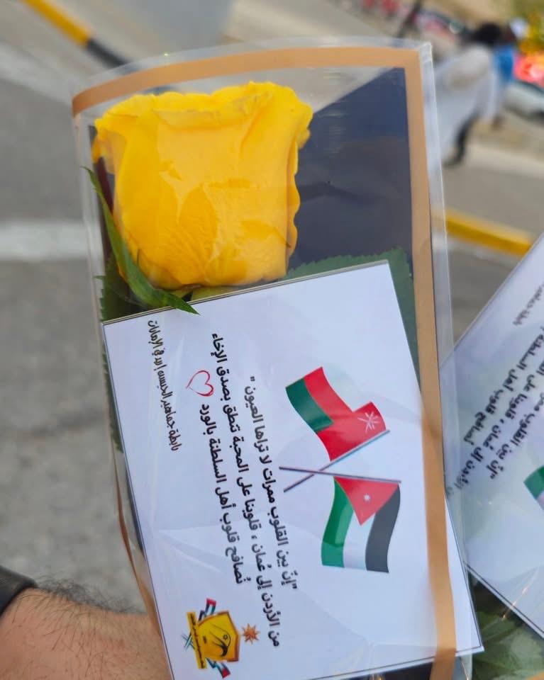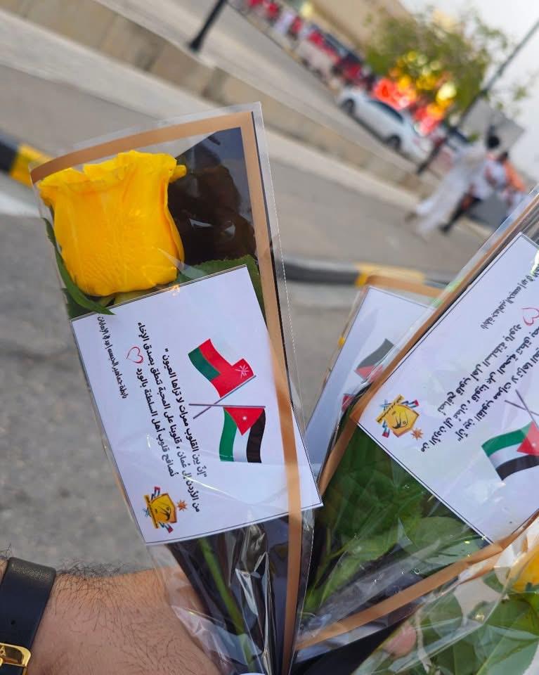 "رابطة الحسين إربد بالإمارات" توزع الورود للجمهور العُماني وتكتب رسالة أخوّة لأهل السلطنة (صور)