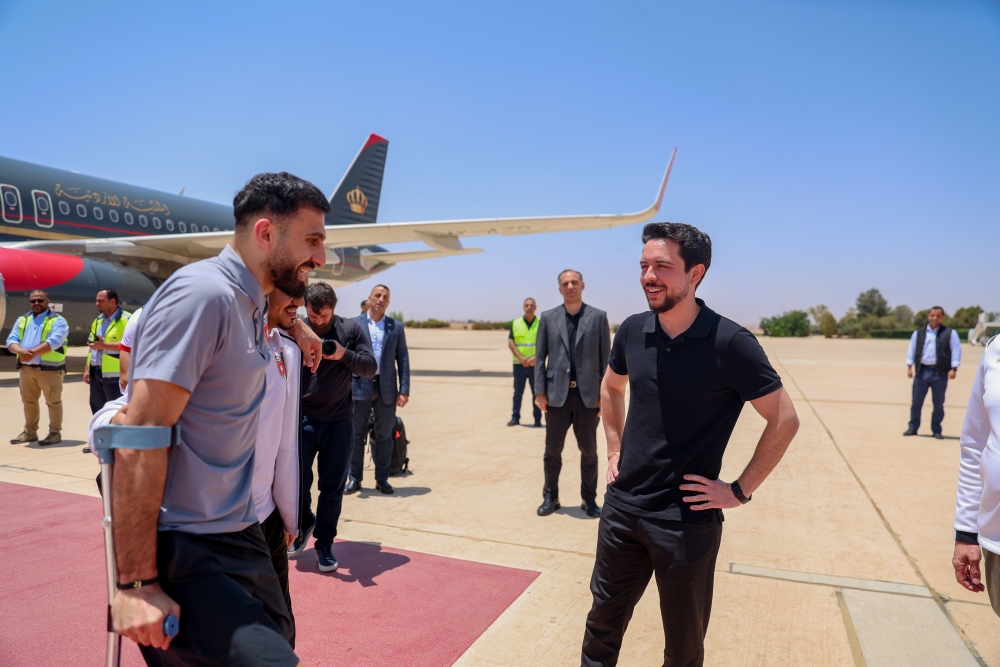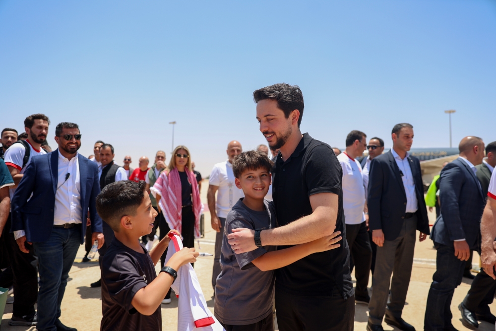 وكان نائب جلالة الملك، سمو الأمير فيصل بن الحسين، رئيس اللجنة الأولمبية الأردنية، وسمو الأمير هاشم بن عبدالله الثاني، في استقبال سمو ولي العهد ولاعبي المنتخب وطواقمه لدى وصولهم مطار الملكة علياء الدولي.