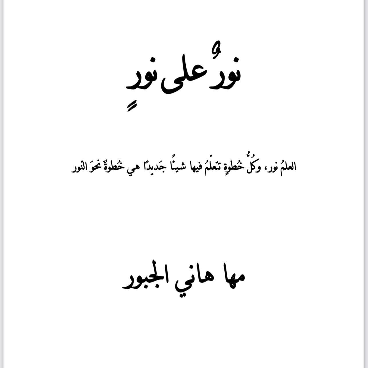 صدر حديثاً عن دار أروقة الفكر في عمّان، كتاب "نورٌ على نور" للكاتبة مها هاني الجبور، وهو عمل يتناول بأسلوب وجداني وتأملي قضايا علم النفس الفردي، وتطوير الشخصية، والهوية الذاتية، والتنمية البشرية، عبر اسلوب من الصدق العميق والمراجعة الذاتية.