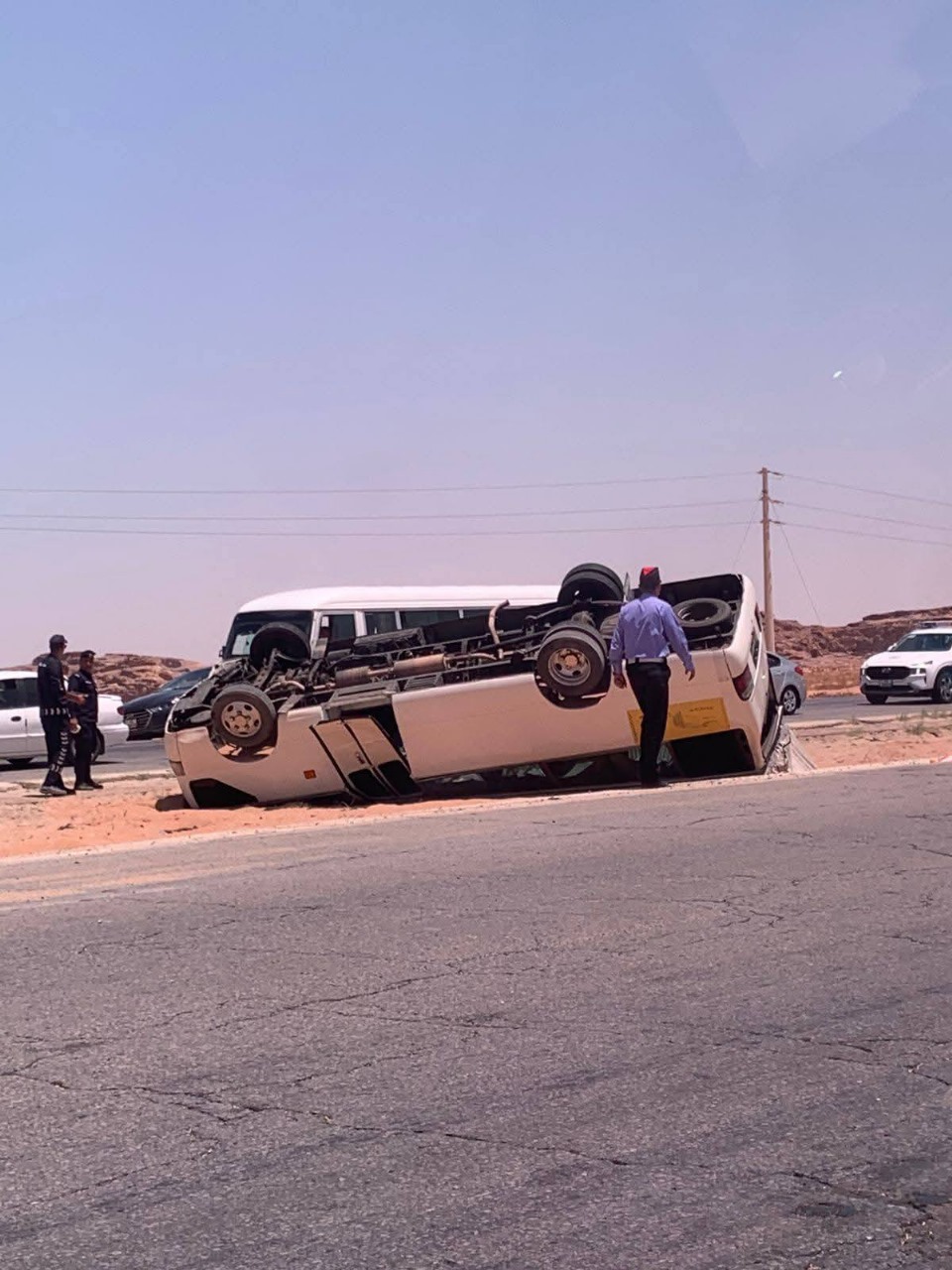 قال الناطق الإعلامي باسم مديرية الأمن العام إنّ فرق الإنقاذ والإسعاف في مديرية دفاع مدني العقبة تعاملت اليوم مع حادث تدهور تعرضت له حافلة ركوب متوسطة بمنطقة القويرة بمحافظةالعقبة.