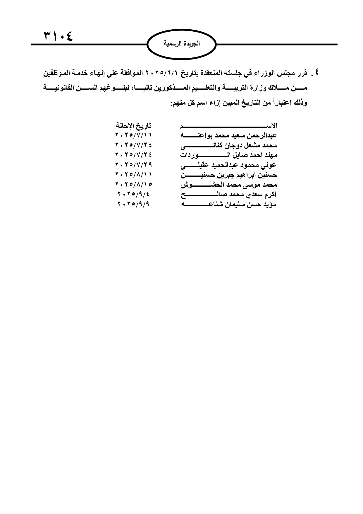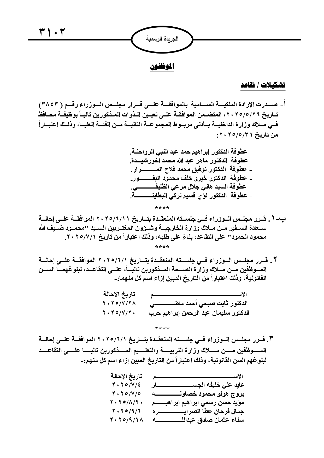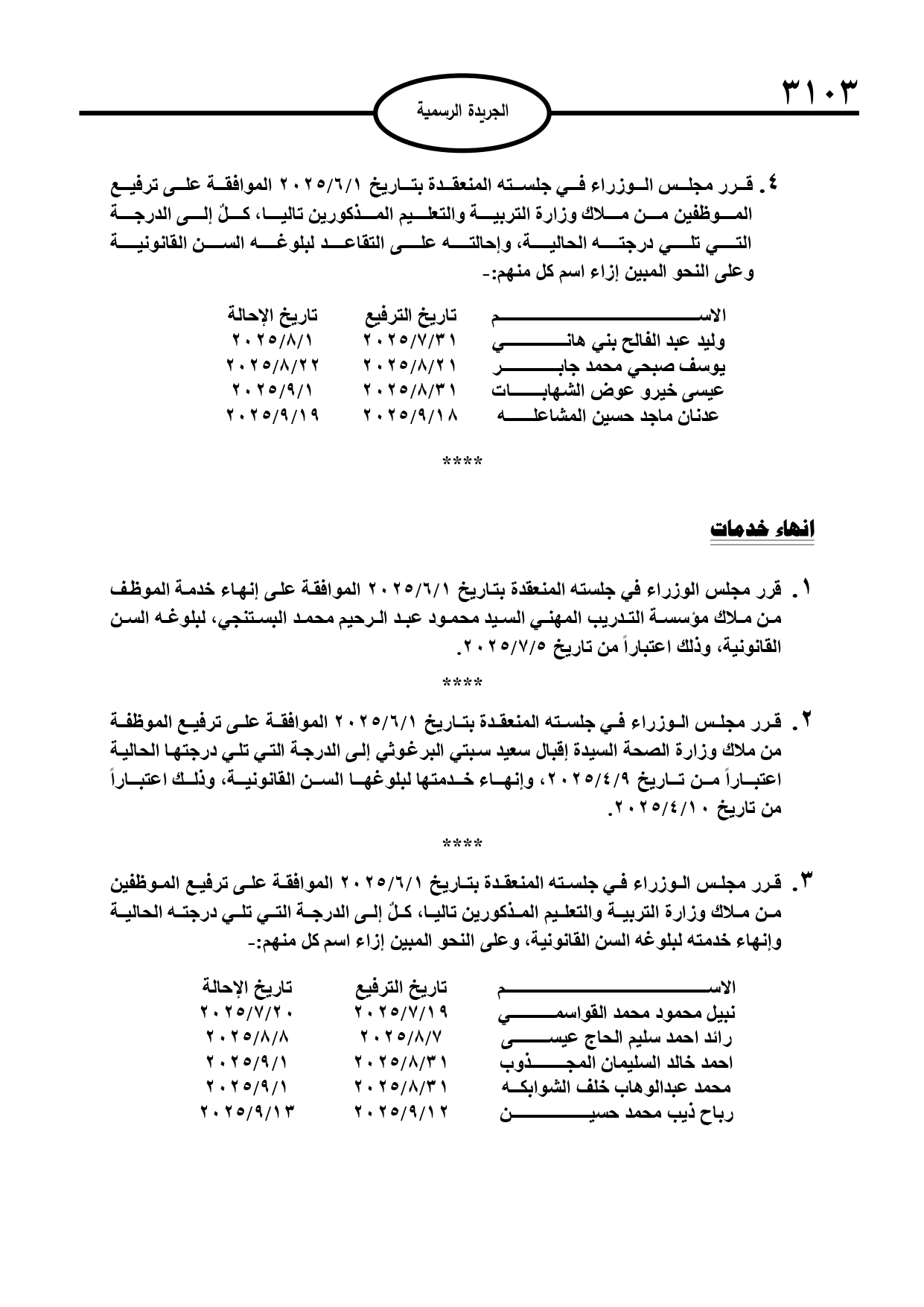 إحالات وترفيعات وإنهاء خدمات (أسماء)
