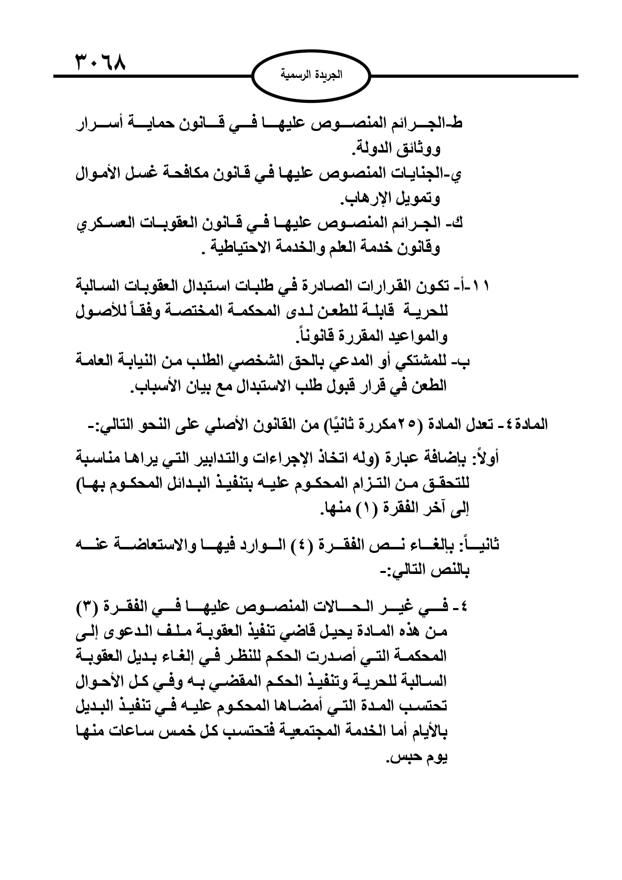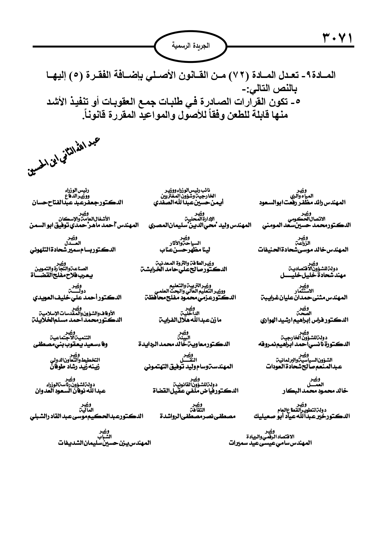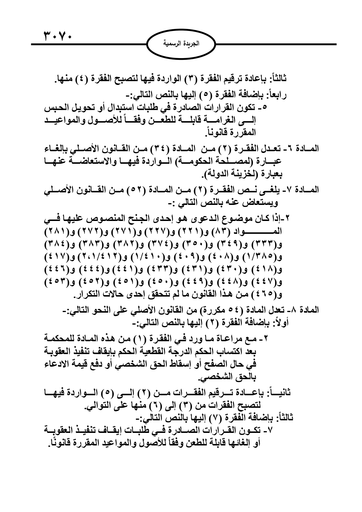 صدر في عدد الجريدة الرسمية الصادر اليوم الاثنين، قانون معدل لقانون العقوبات لسنة 2025.