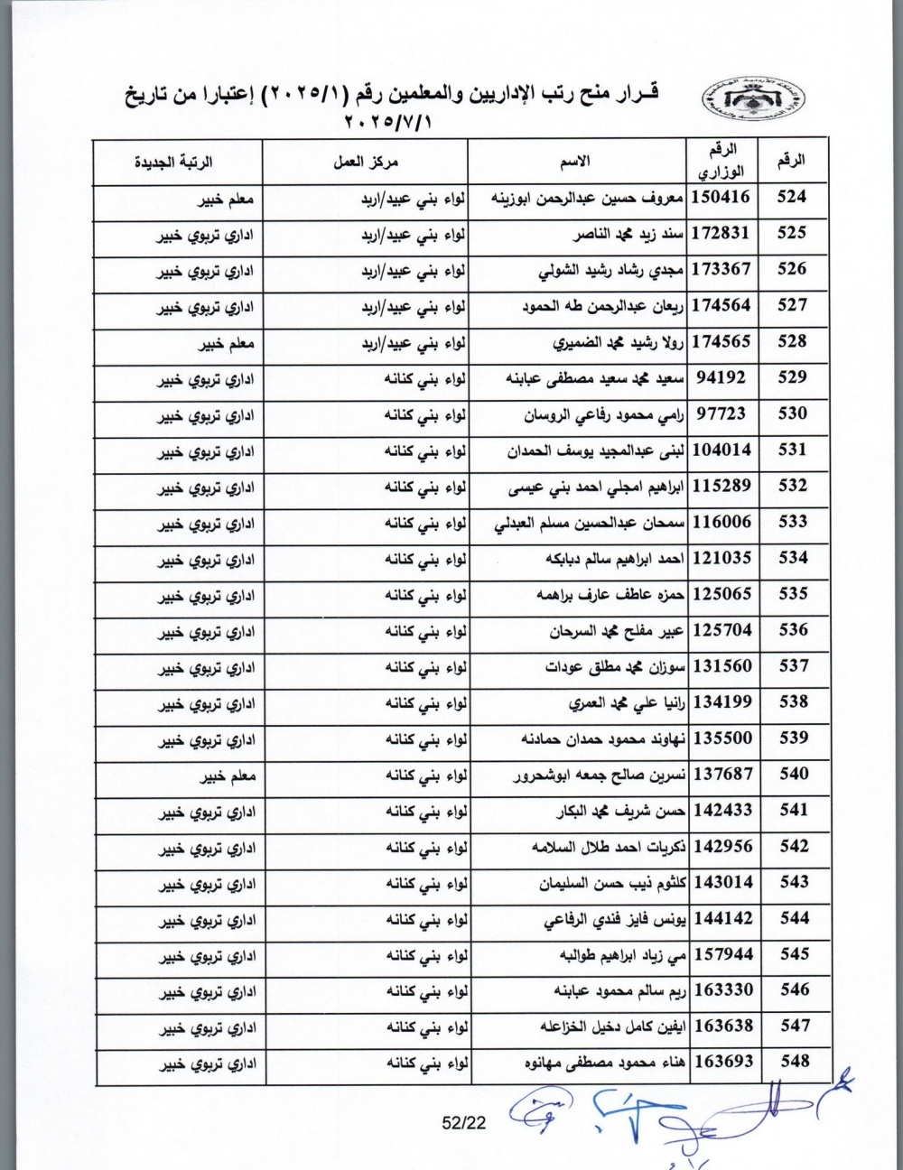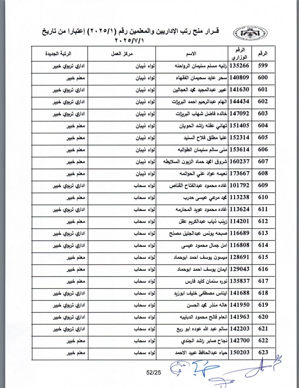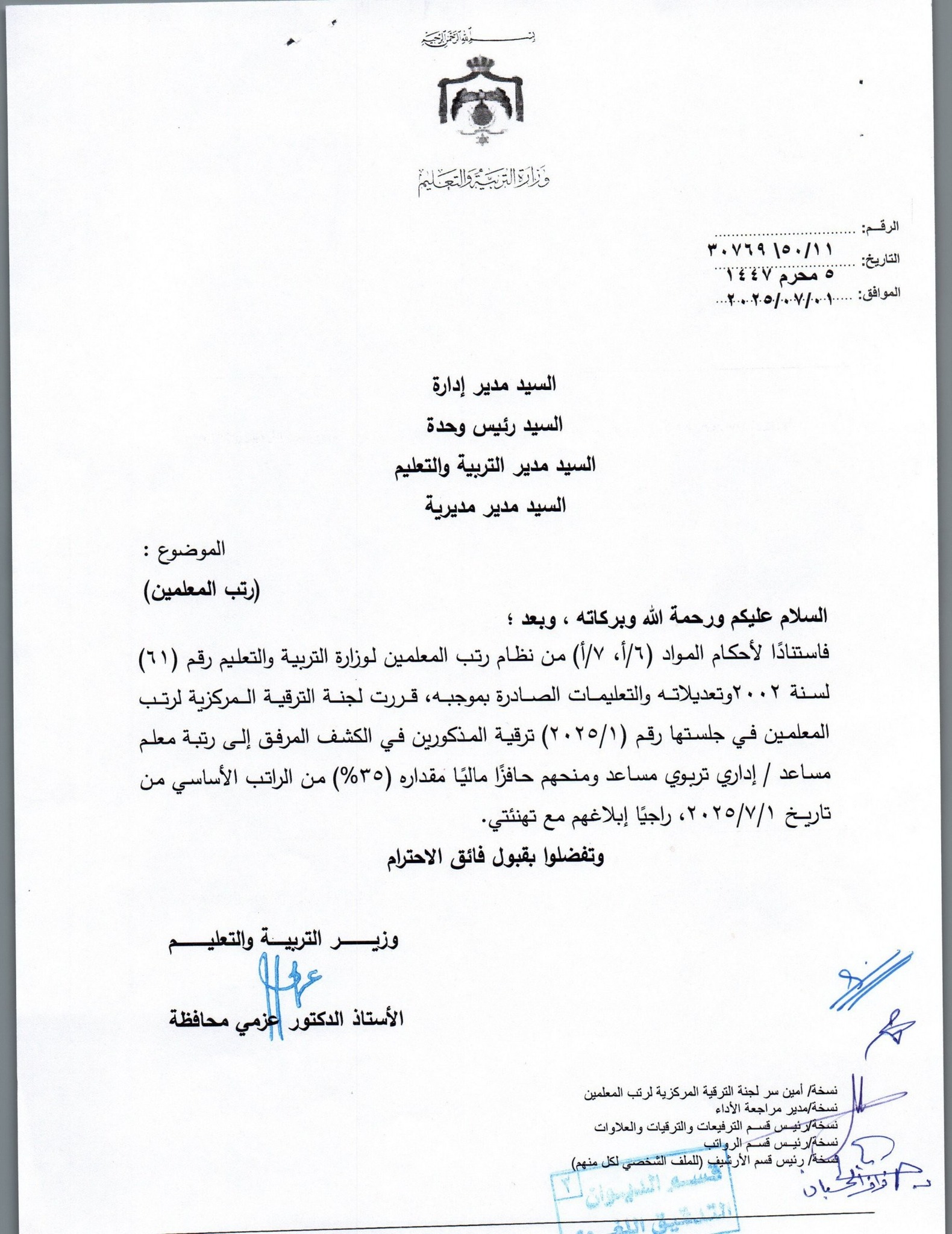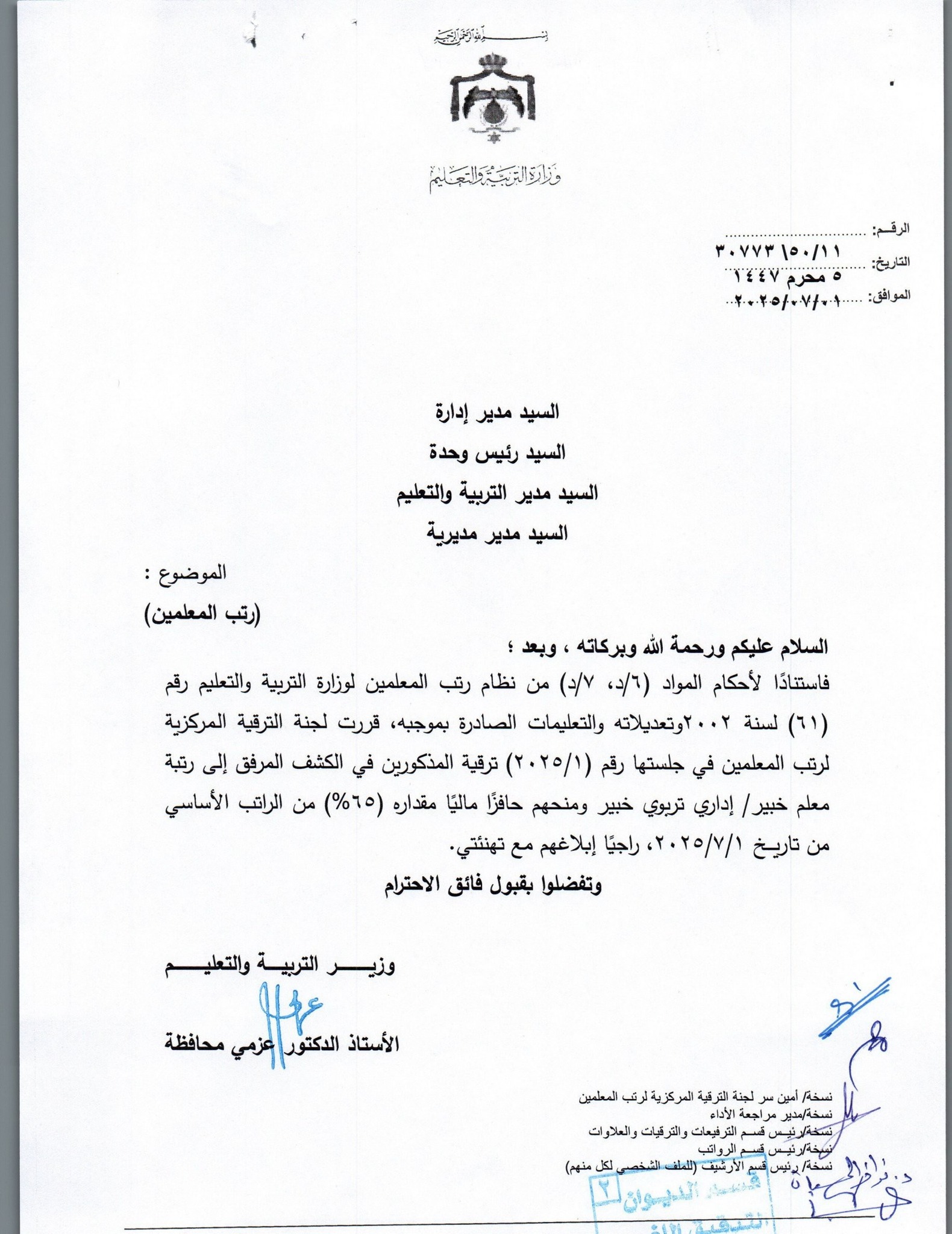 وشملت القوائم ترقية (2070) موظفا وموظفة من الكوادر التربوية والإدارية، موزعين على مختلف الرتب والدرجات، وذلك ضمن سعي الوزارة لتكريم الكفاءات وتحفيز التطوير المهني.