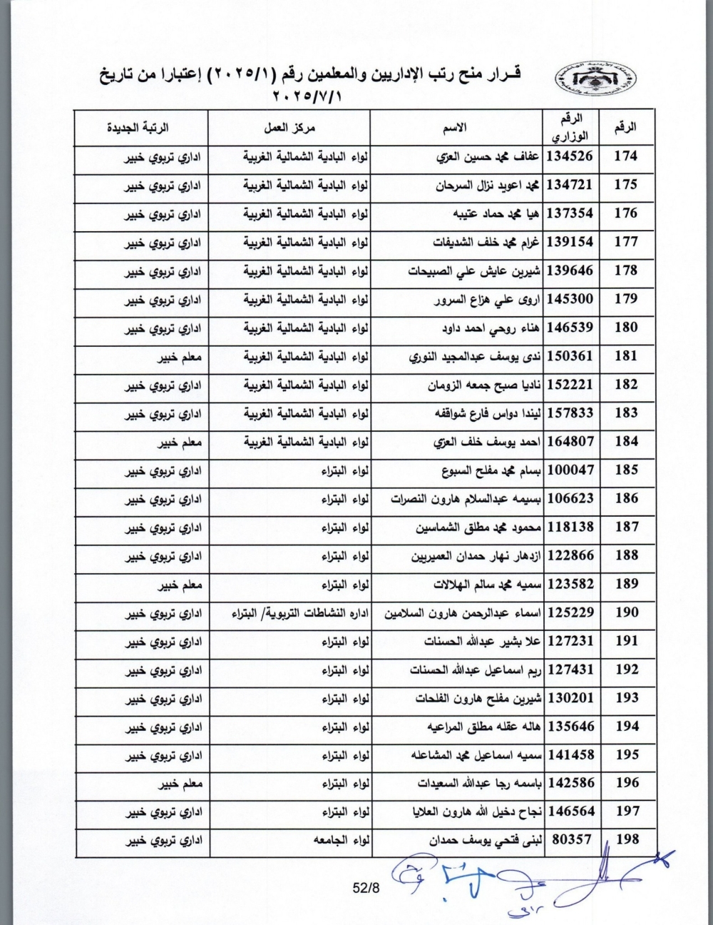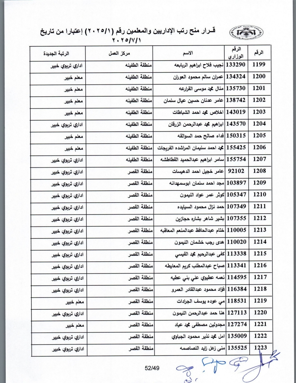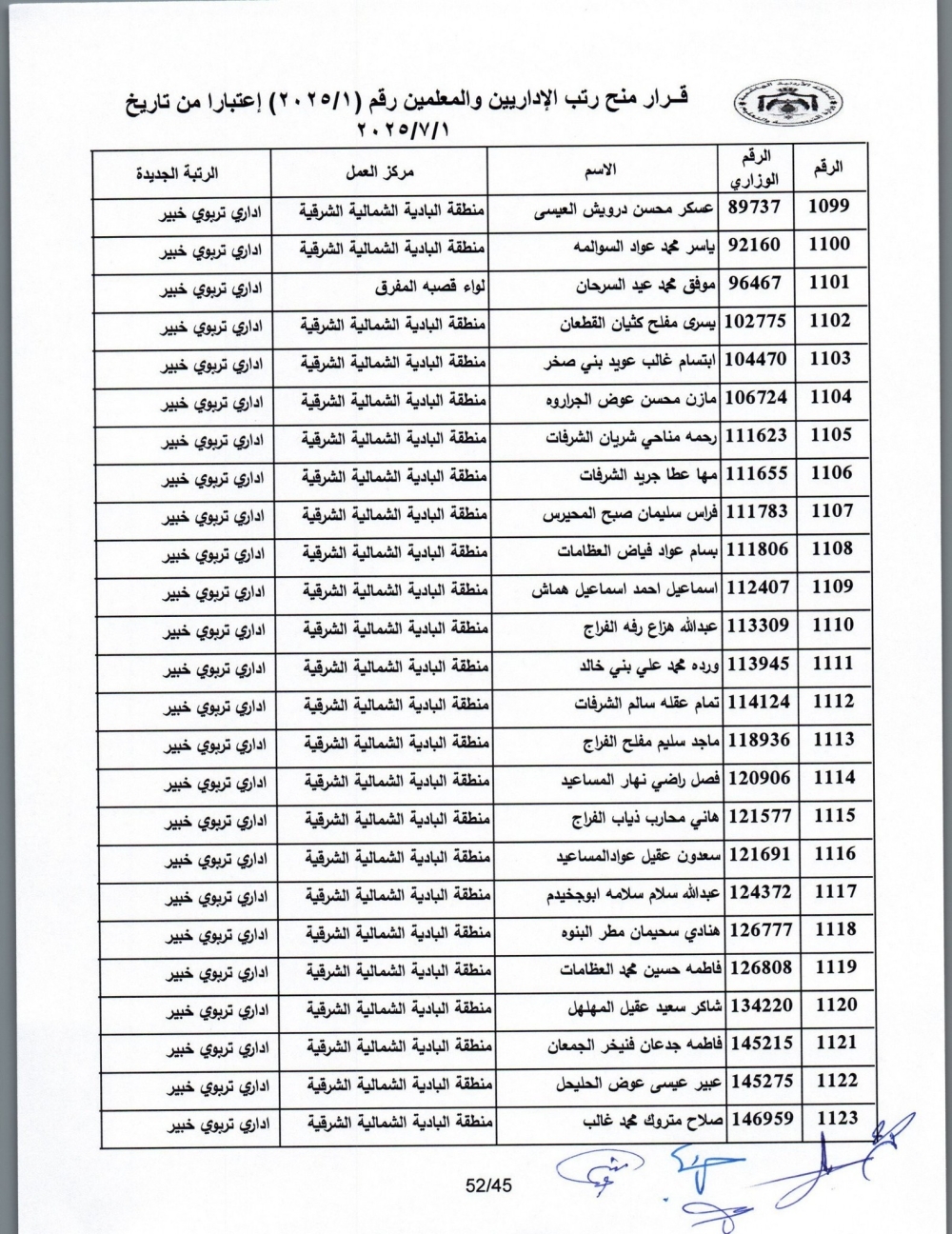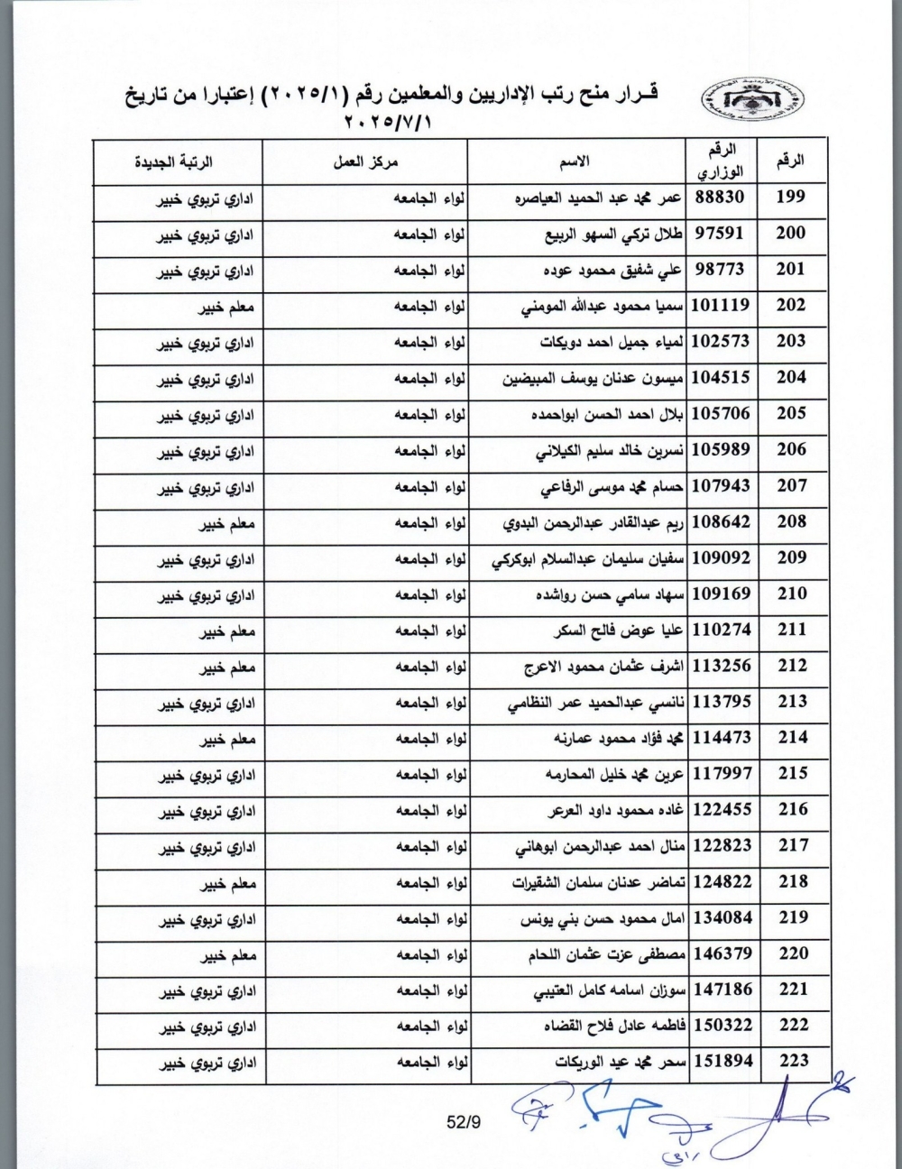وشملت القوائم ترقية (2070) موظفا وموظفة من الكوادر التربوية والإدارية، موزعين على مختلف الرتب والدرجات، وذلك ضمن سعي الوزارة لتكريم الكفاءات وتحفيز التطوير المهني.