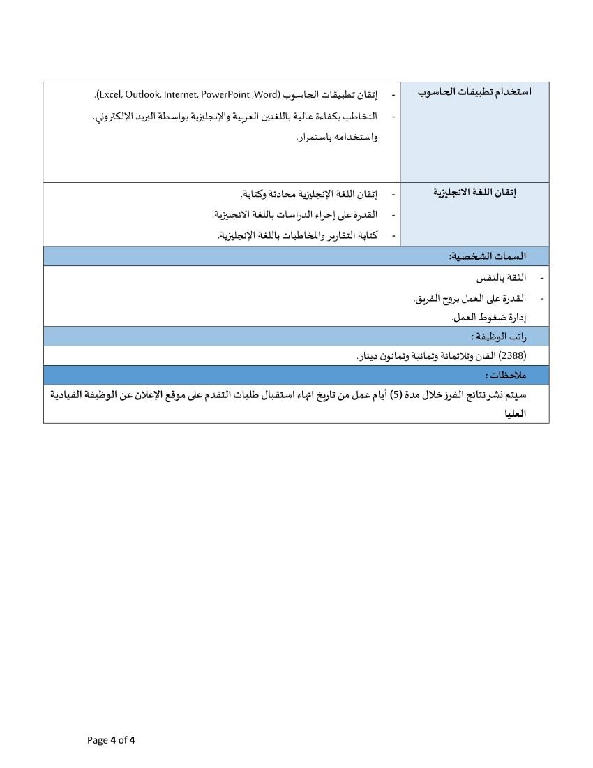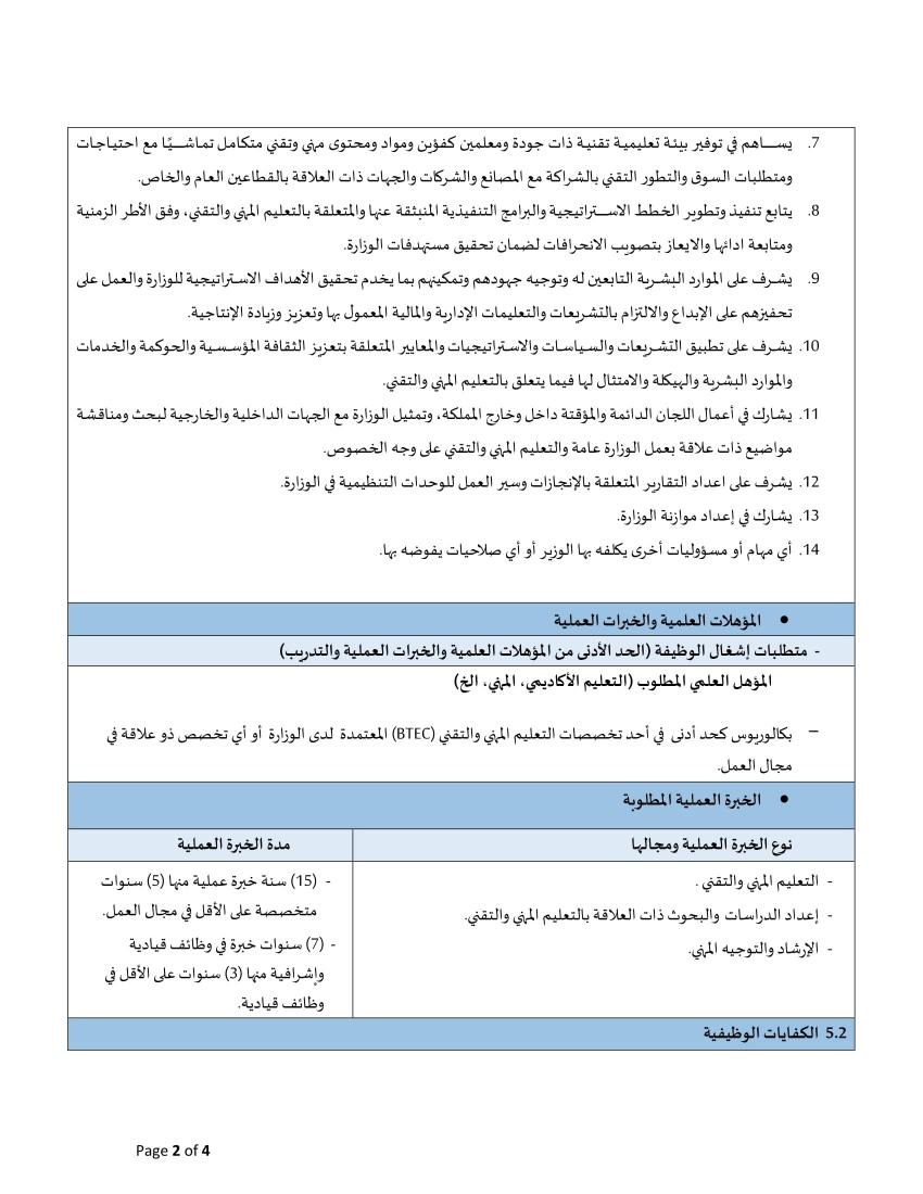 واشترط الإعلان أن يمتلك المتقدّم للوظيفة ما لا يقل عن 15 سنة من الخبرة الفنية، إضافة إلى 7 سنوات في مواقع إشرافية وقيادية.