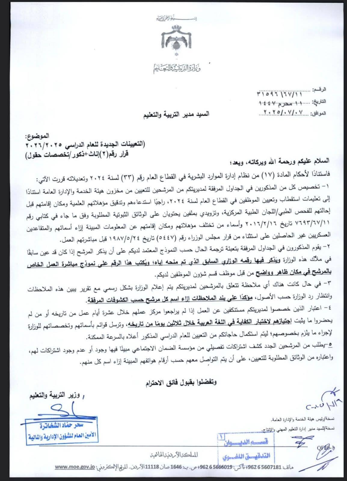 قرر وزير التربية والتعليم الموافقة على استكمال تعيين دفعة جديدة من المرشحين في الوزارة، وتاليا نص القرار والأسماء: