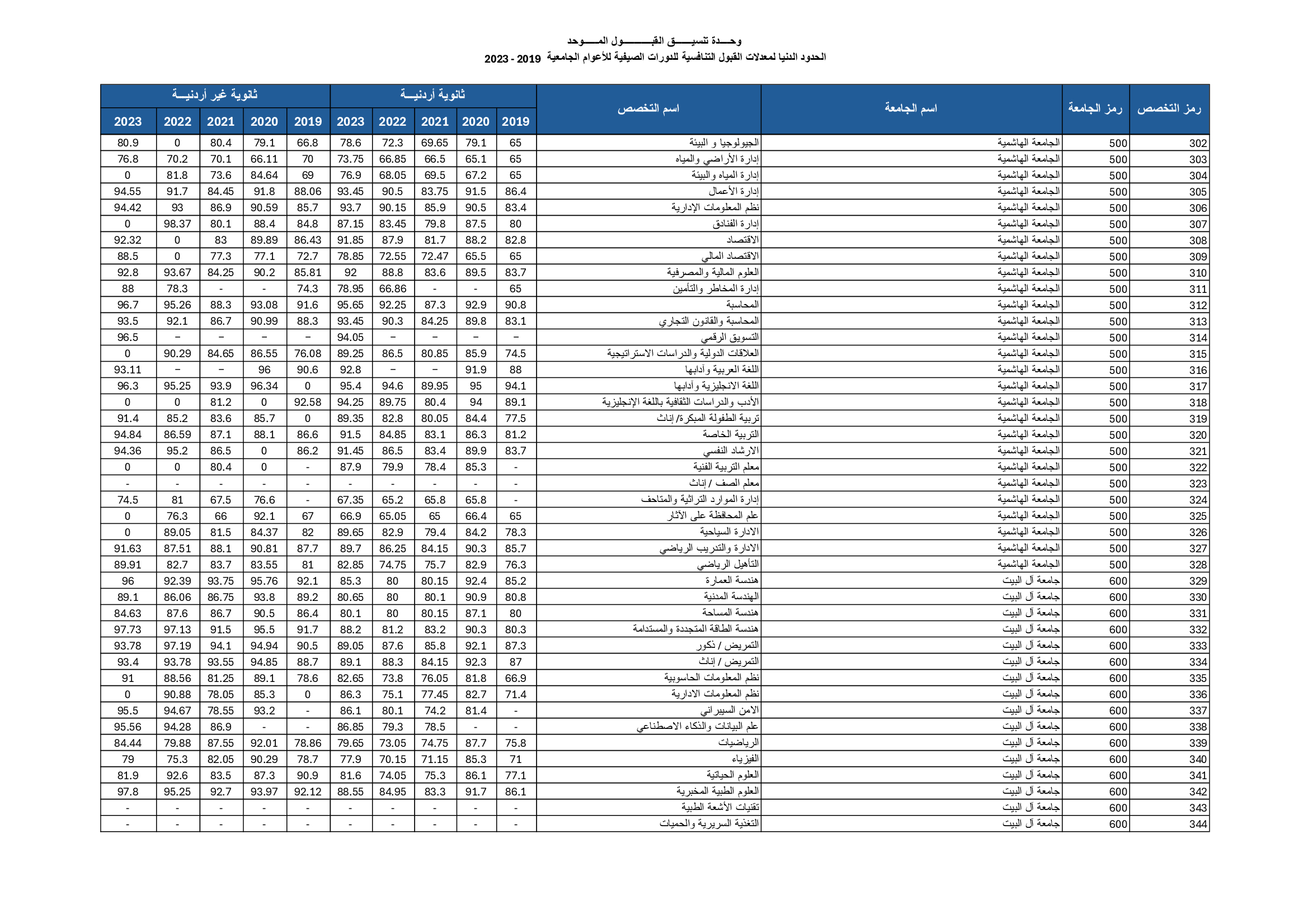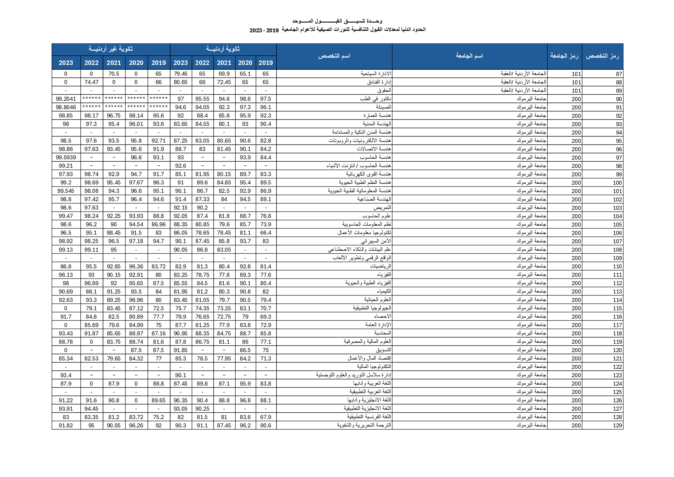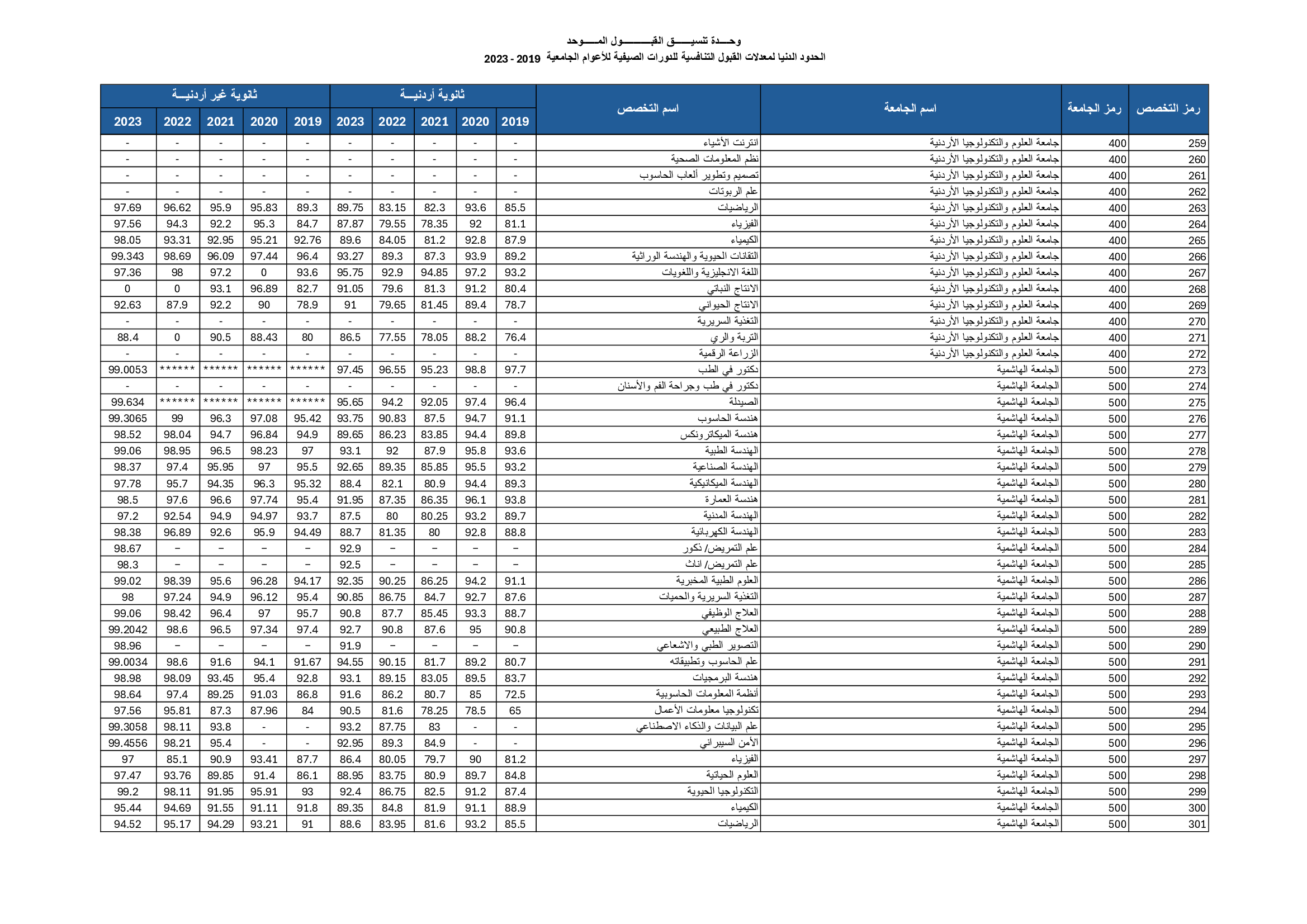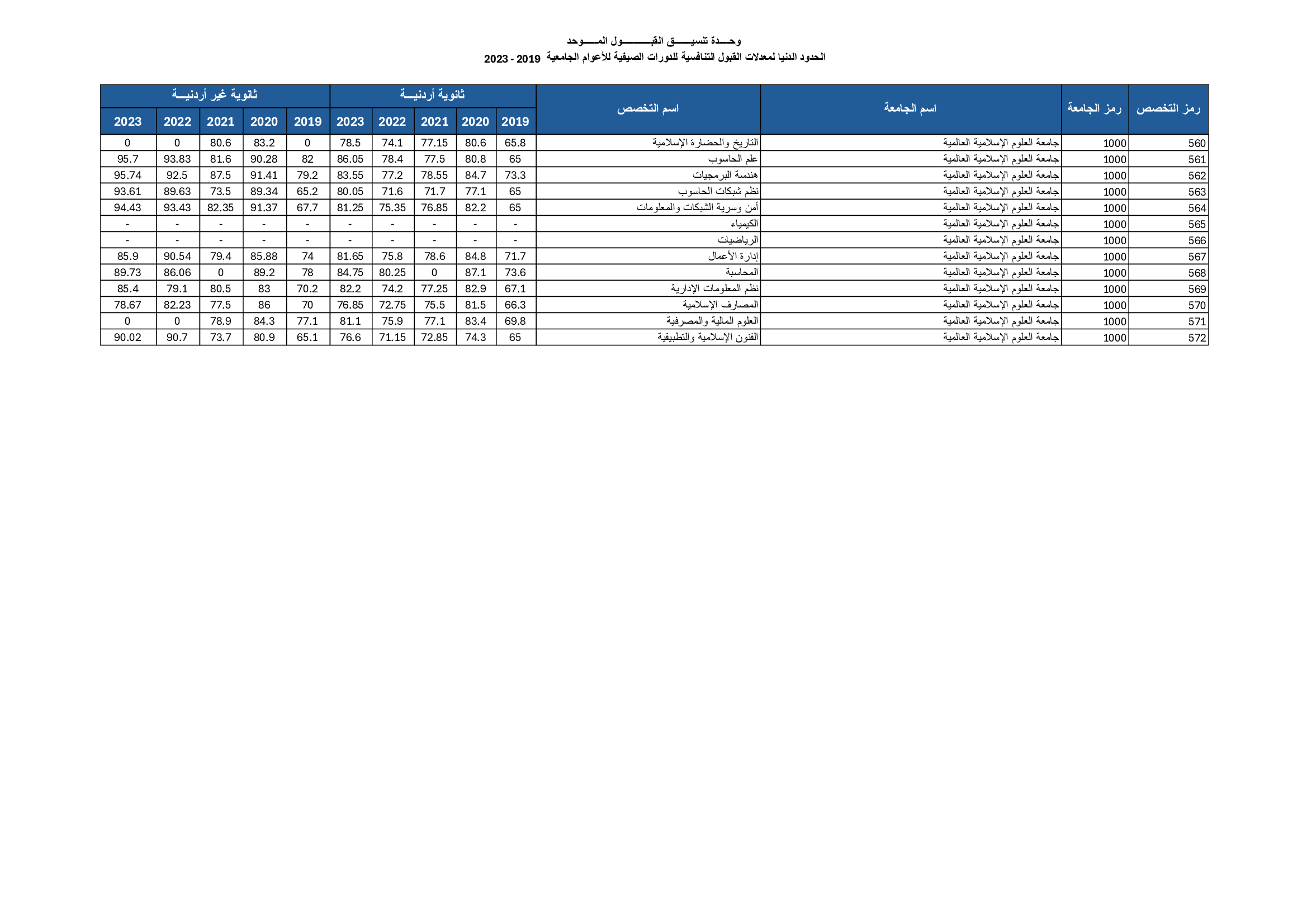 نشرت وحدة تنسيق القبول الموحد التابعة لوزارة التعليم العالي والبحث العلمي، الحدود الدنيا للمعدلات التنافسية للأعوام السابقة.