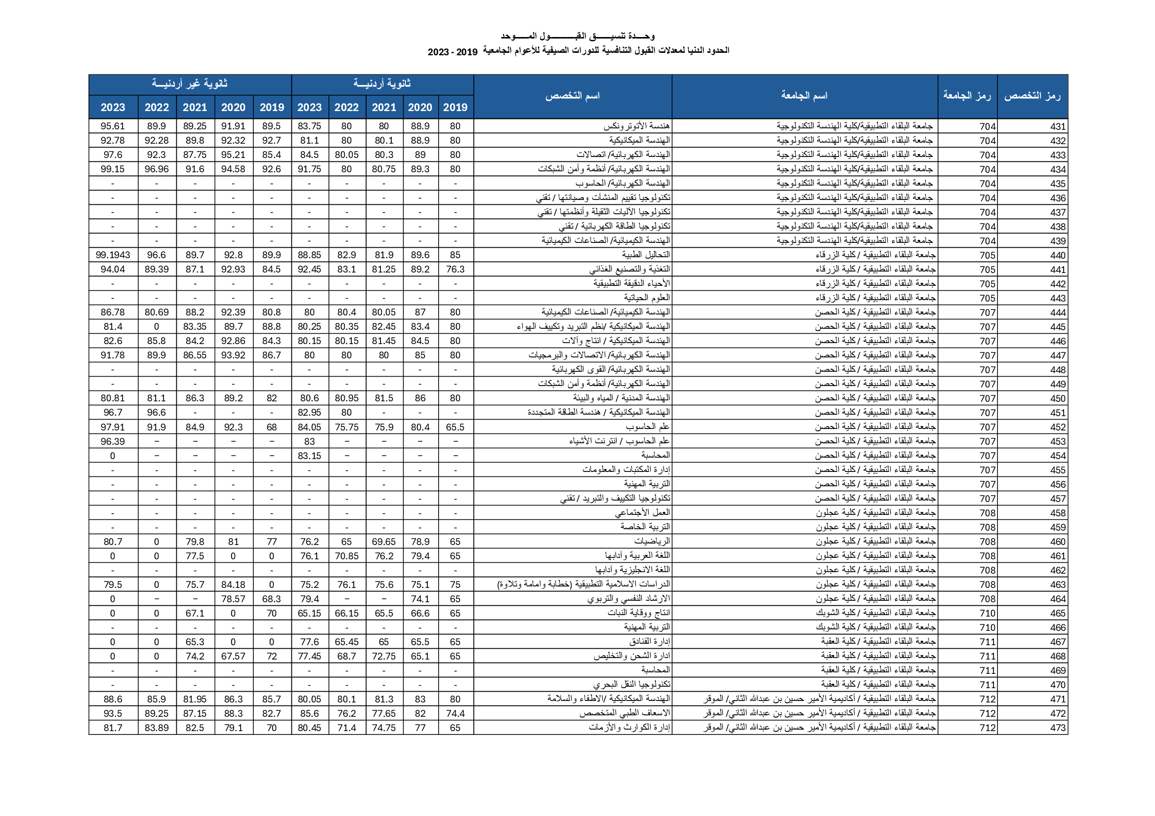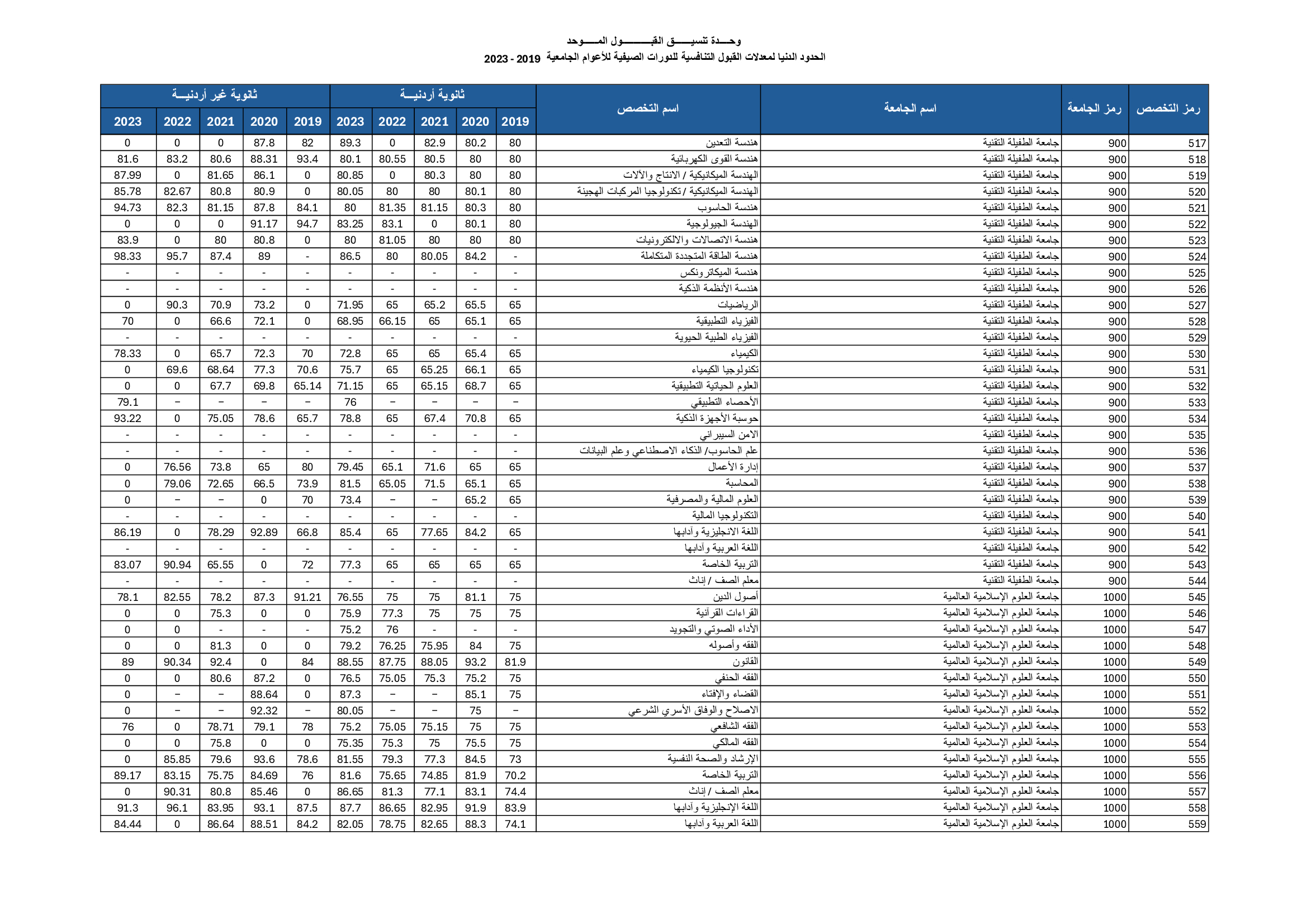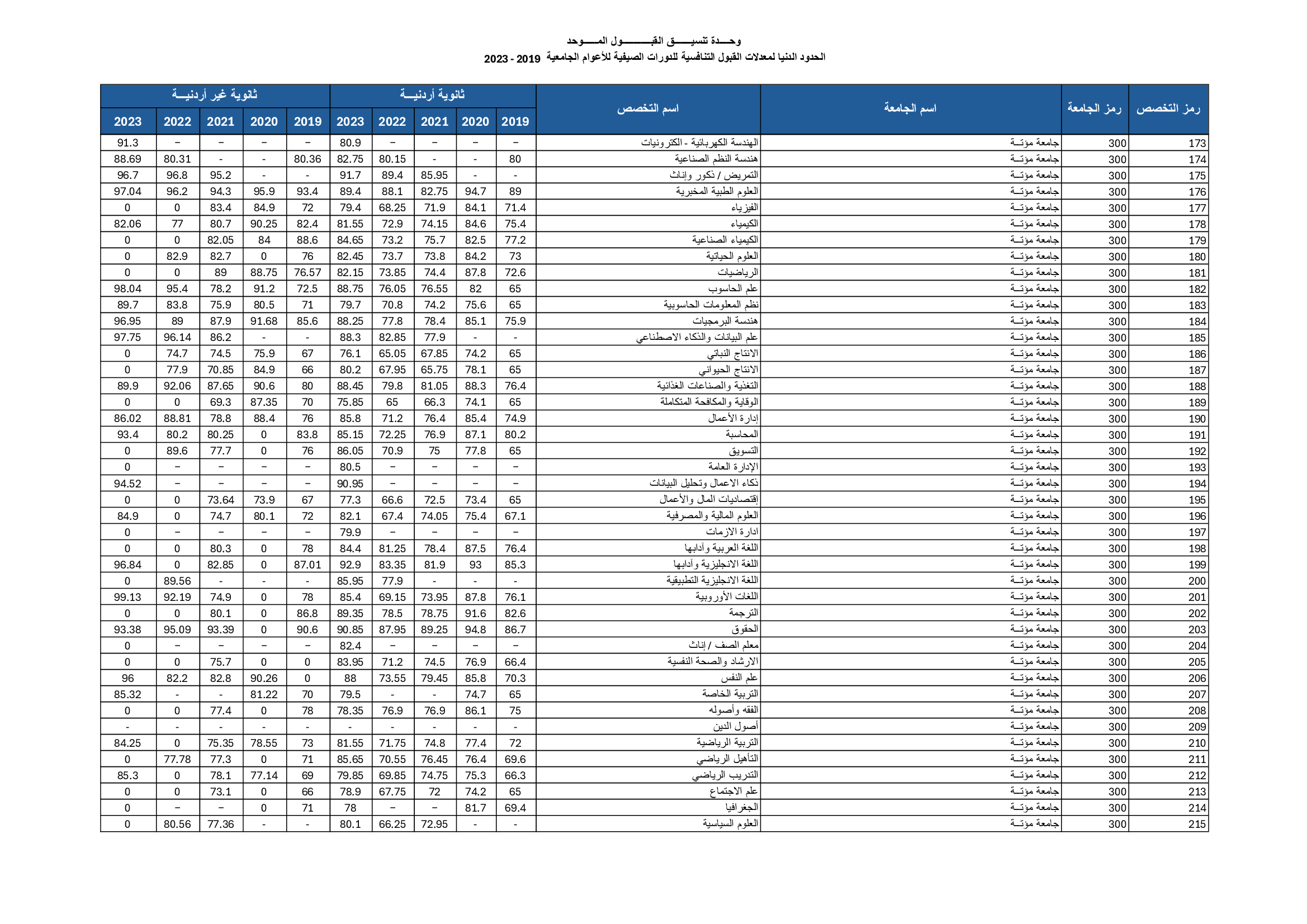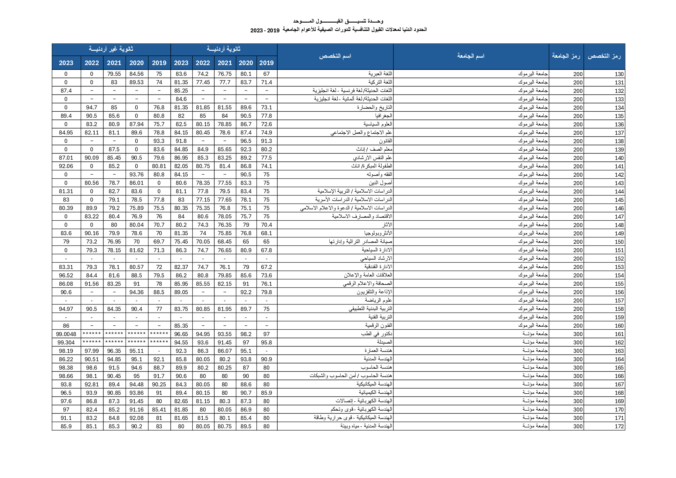 نشرت وحدة تنسيق القبول الموحد التابعة لوزارة التعليم العالي والبحث العلمي، الحدود الدنيا للمعدلات التنافسية للأعوام السابقة.