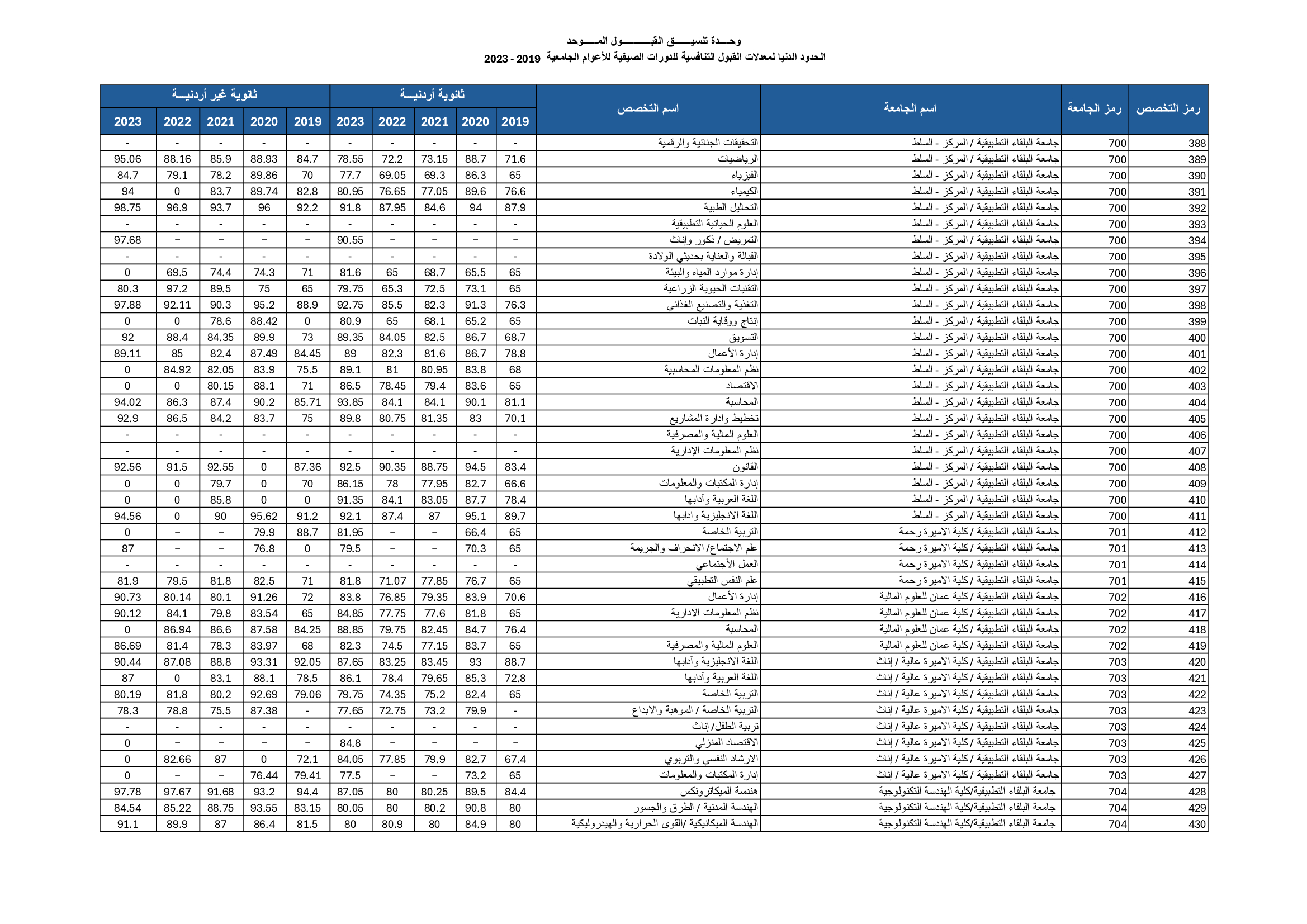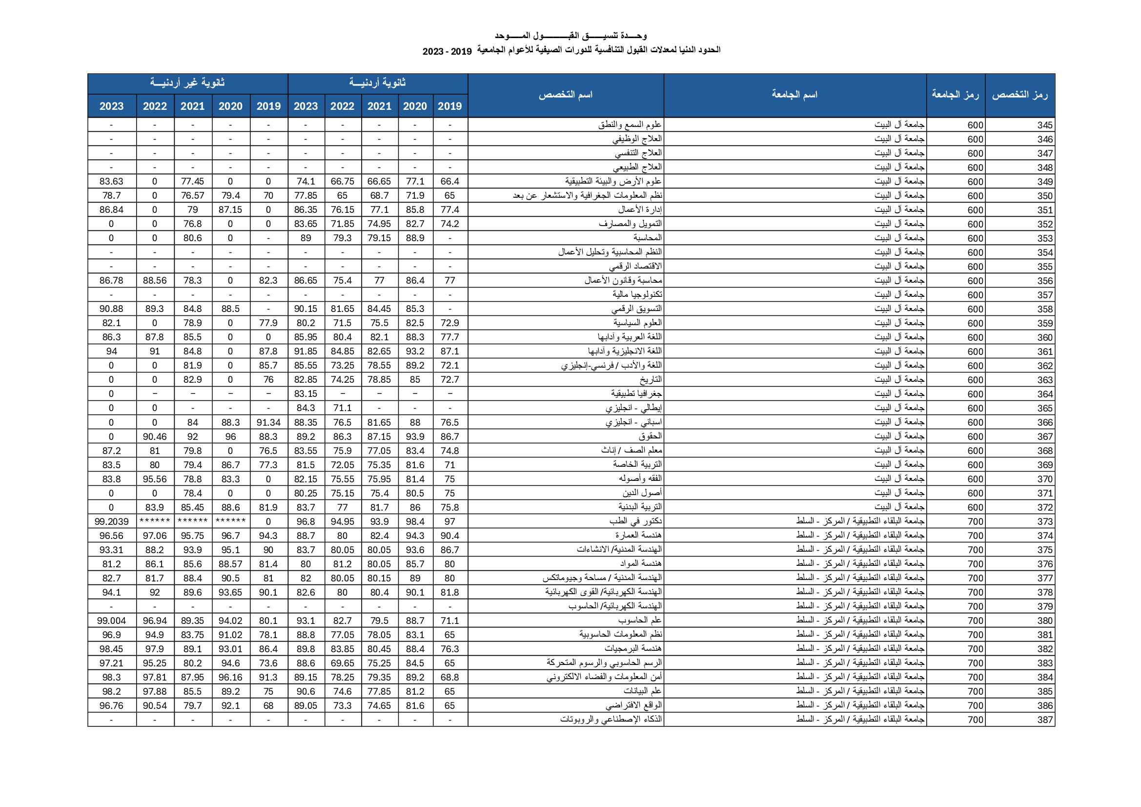 الحدود الدنيا للمعدلات التنافسية للأعوام السابقة