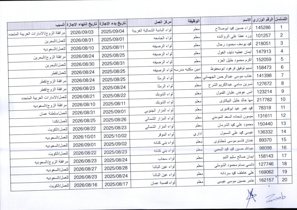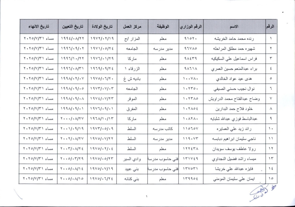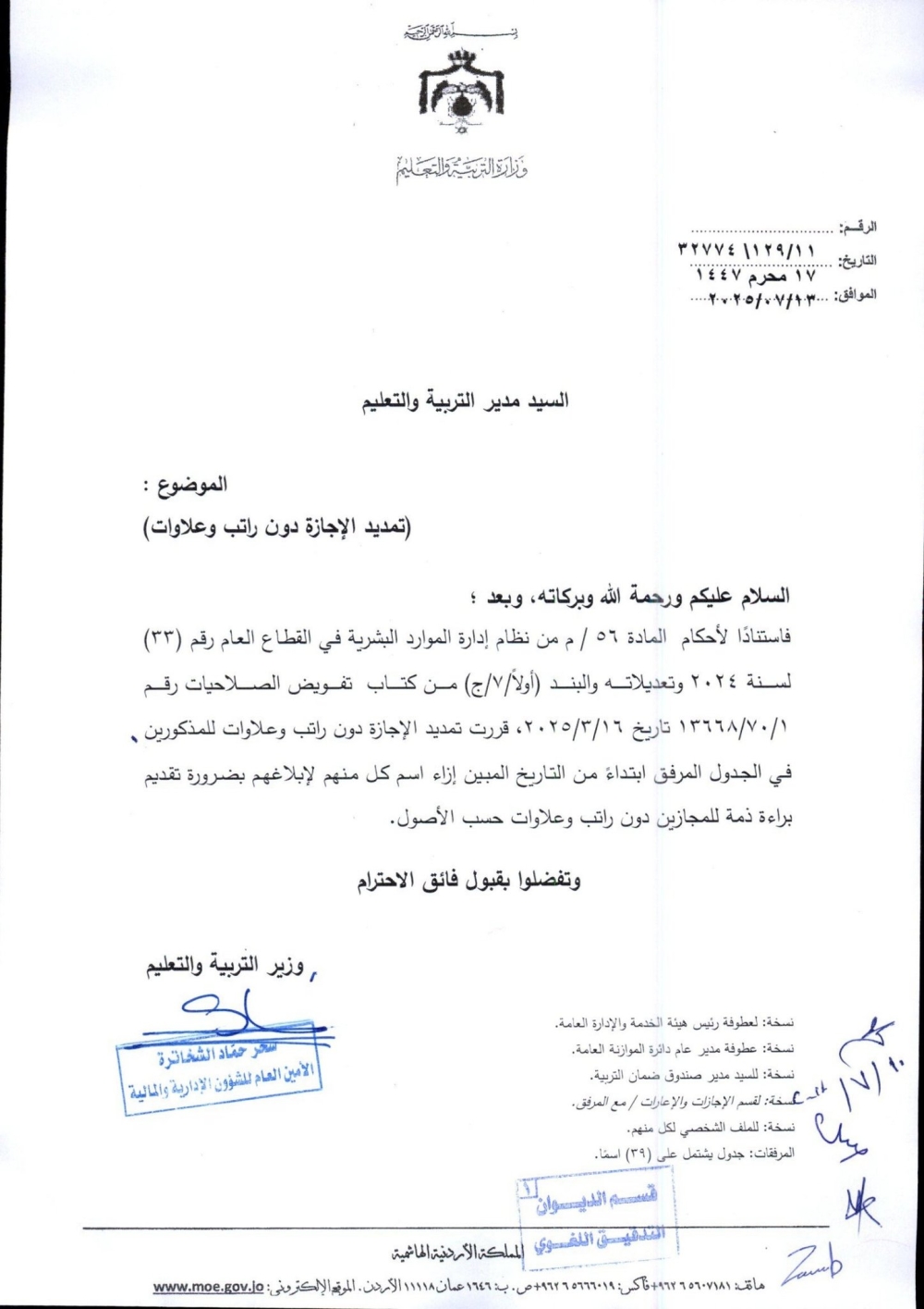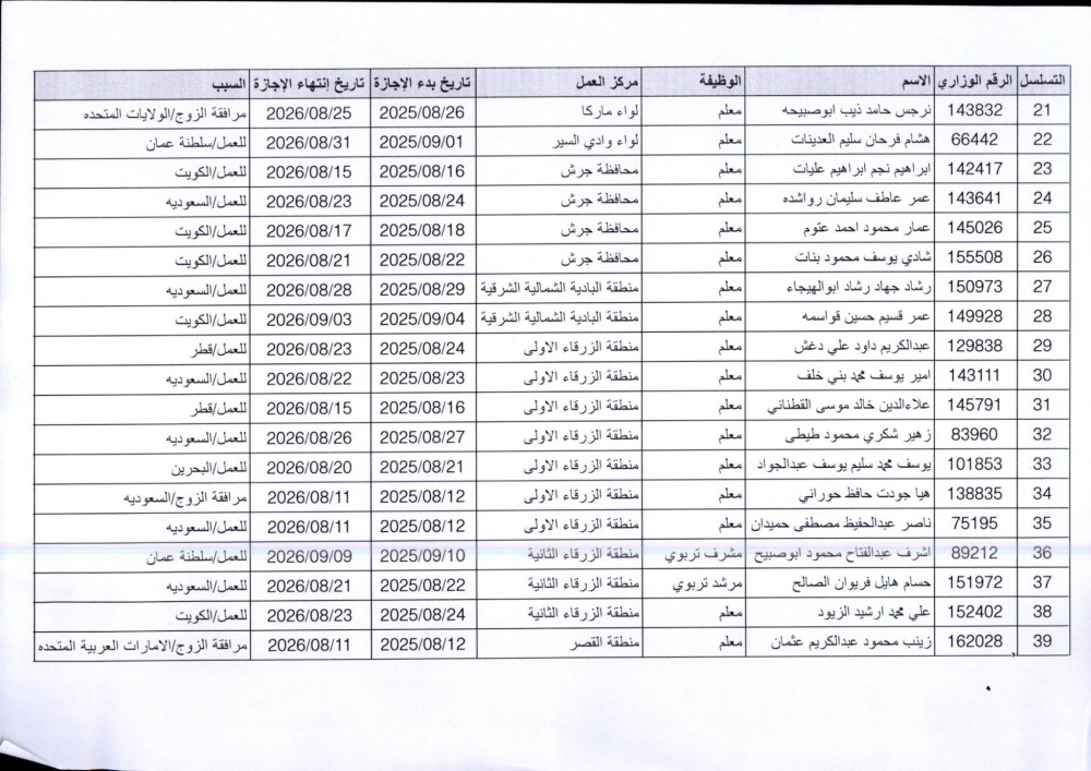 أصدرت وزارة التربية والتعليم عددا من التقاعدات والترفيعات وإنهاء الخدمة وتمديد الإجازة بدون راتب لعدد من موظفيها حسب المرفقات التالية: