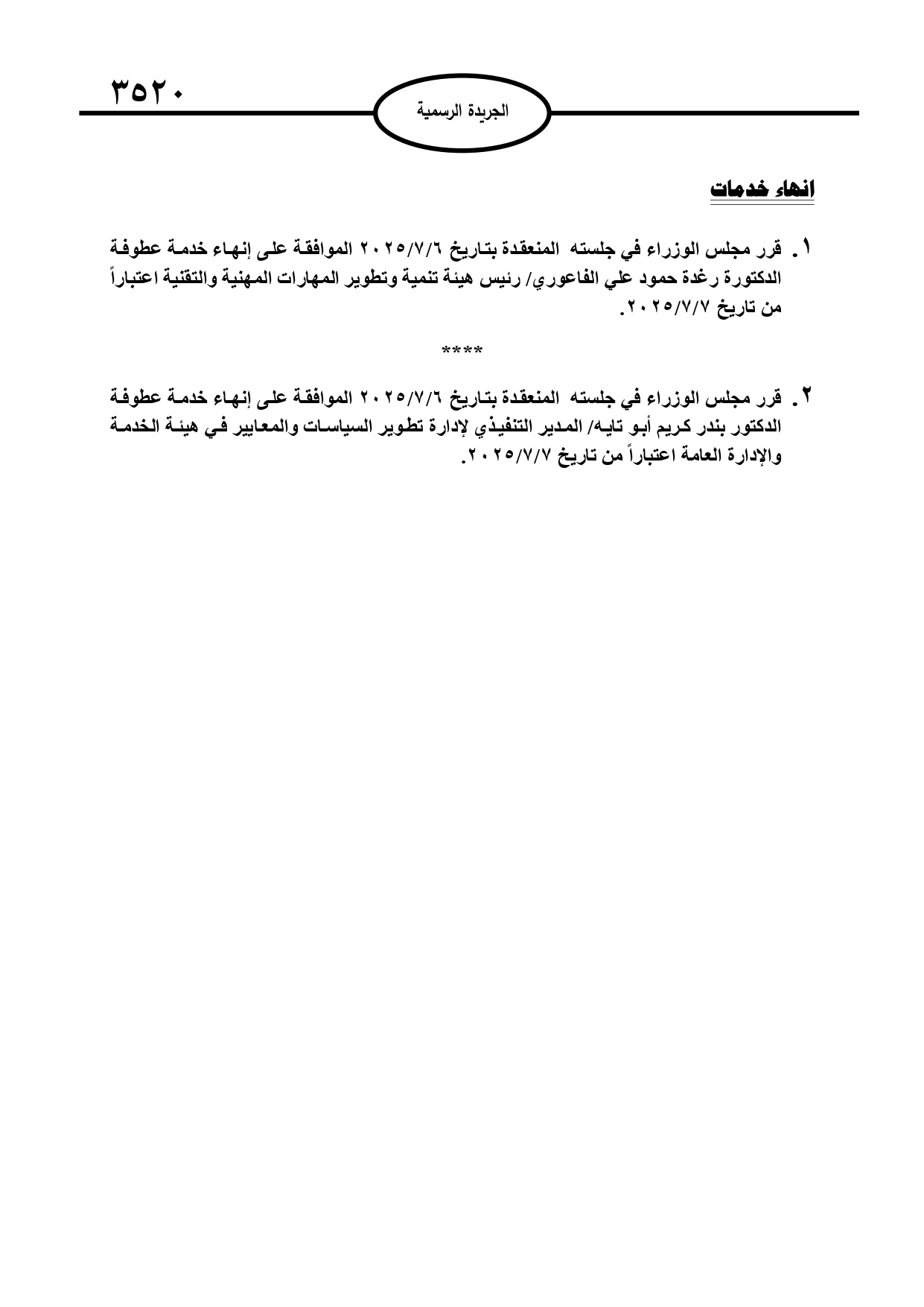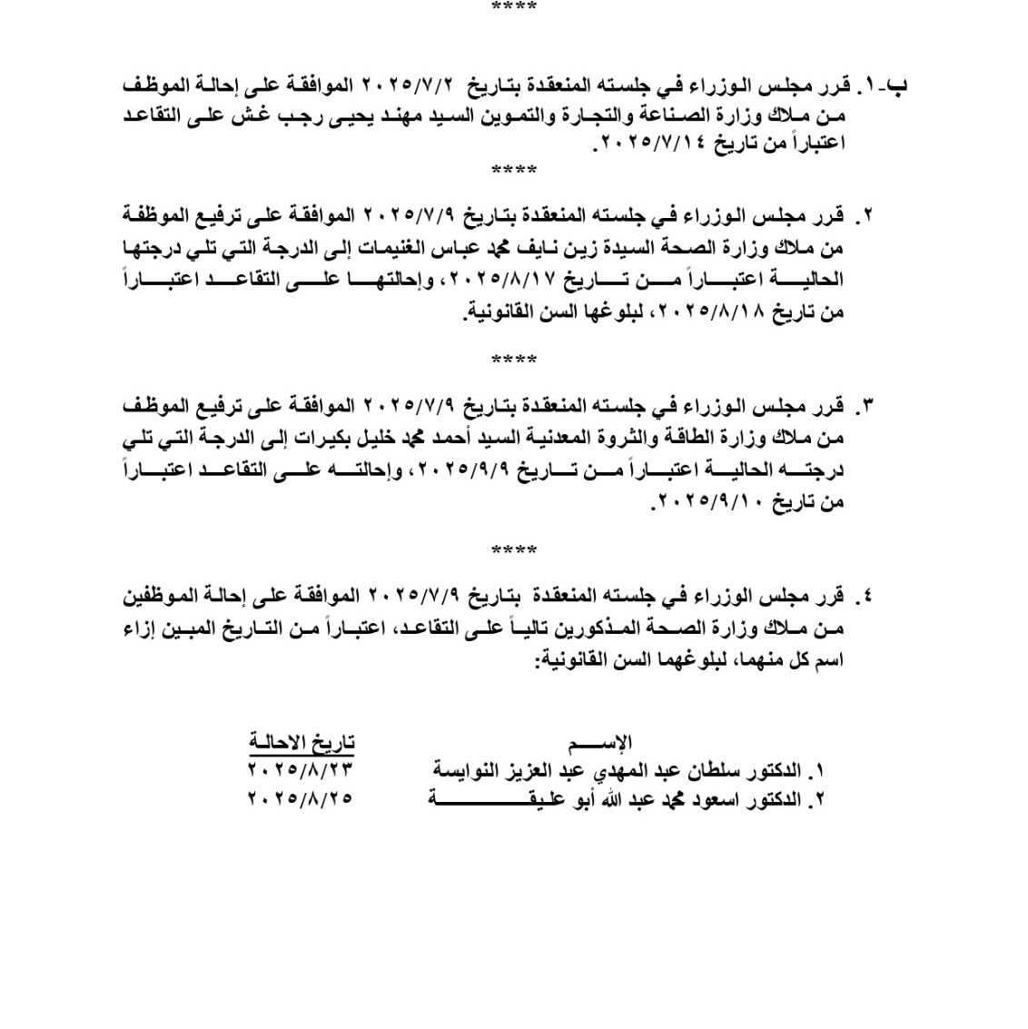 إحالات وترفيعات وإنهاء خدمات (أسماء)