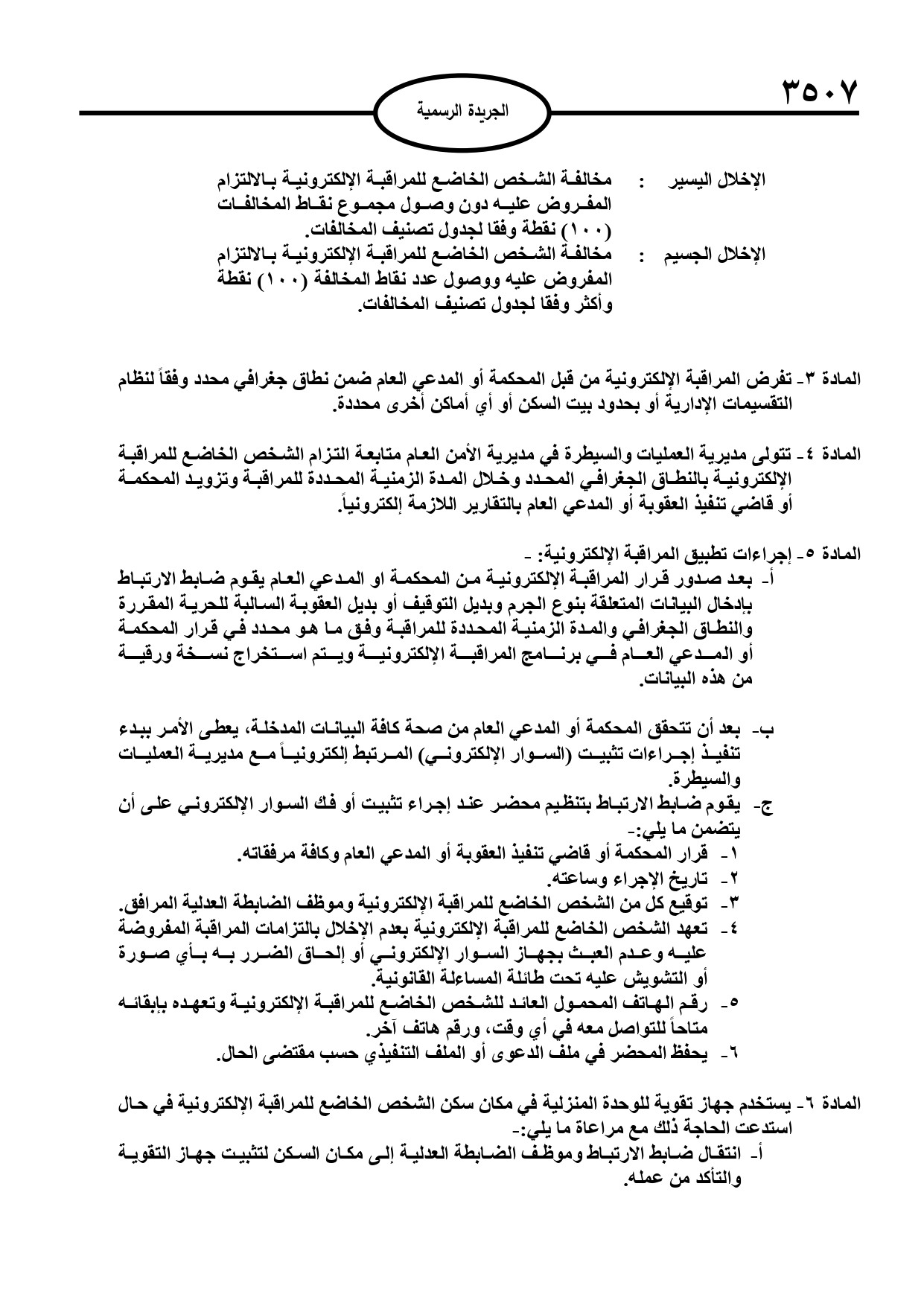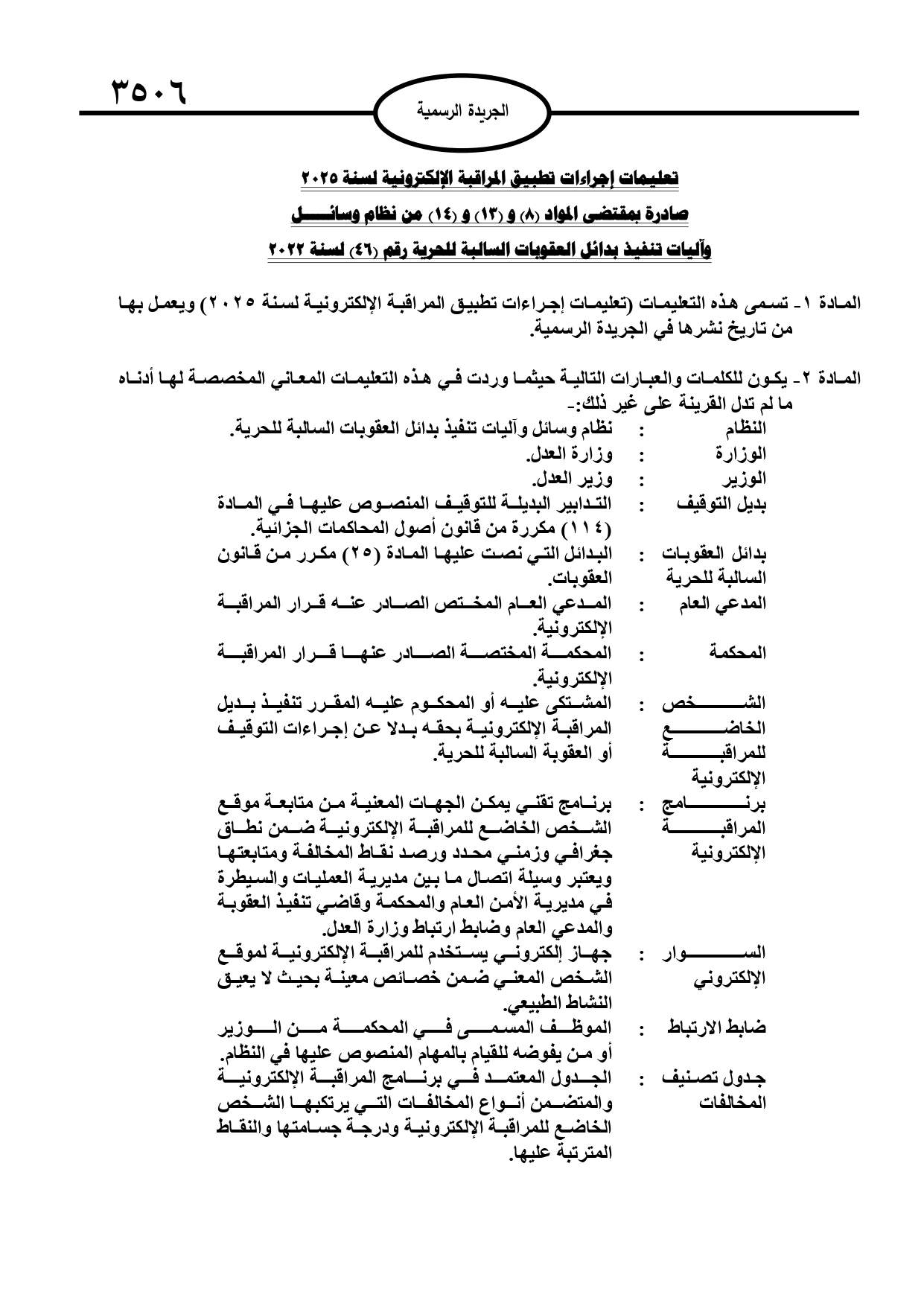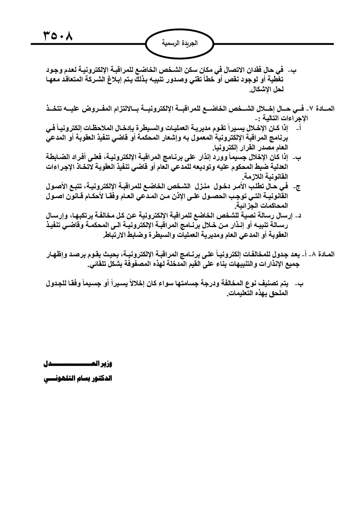 صدر في الجريدة الرسمية تعليمات إجراءات تطبيق المراقبة الإلكترونية لسنة 2025، وتاليا نص التعليمات: