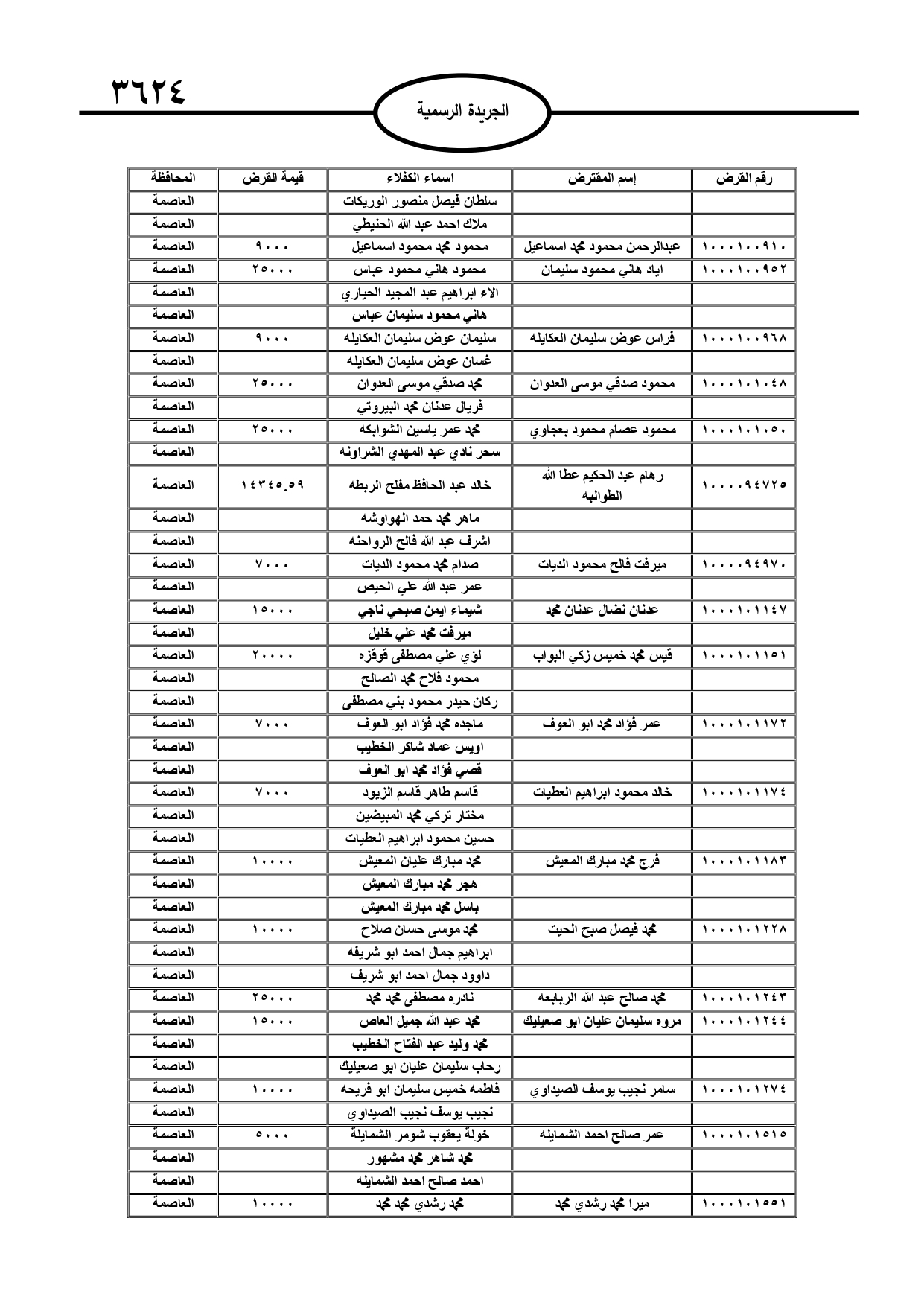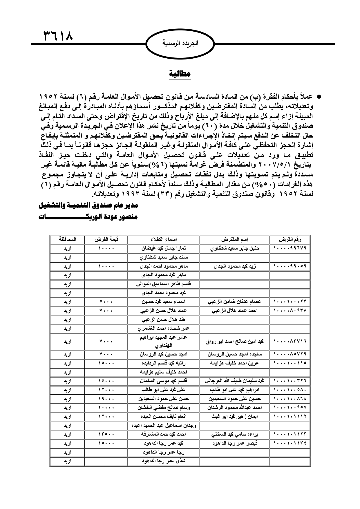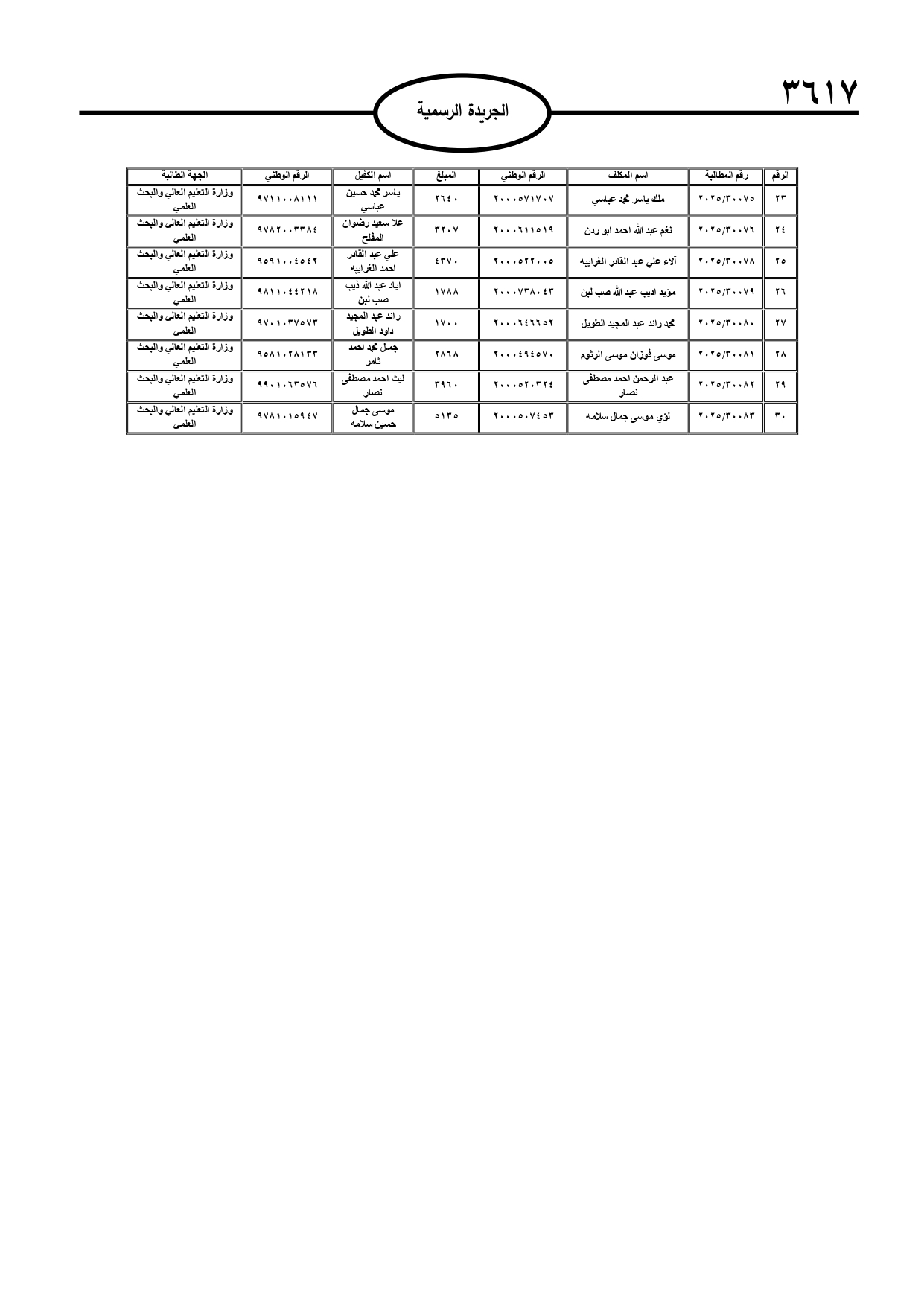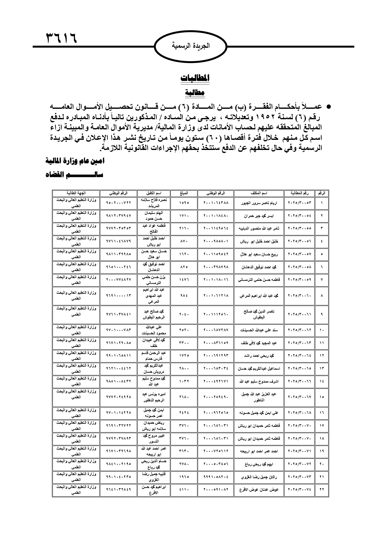 صدرت اليوم الأربعاء في الجريدة الرسمية، مطالبات بحق مئات الأردنيين لصالح وزارات ومؤسسات، وتاليا التفاصيل والأسماء: